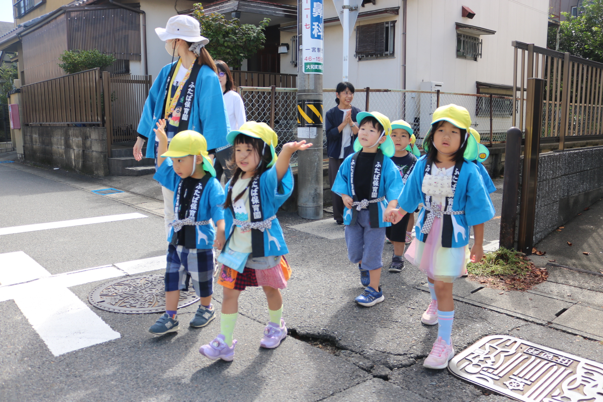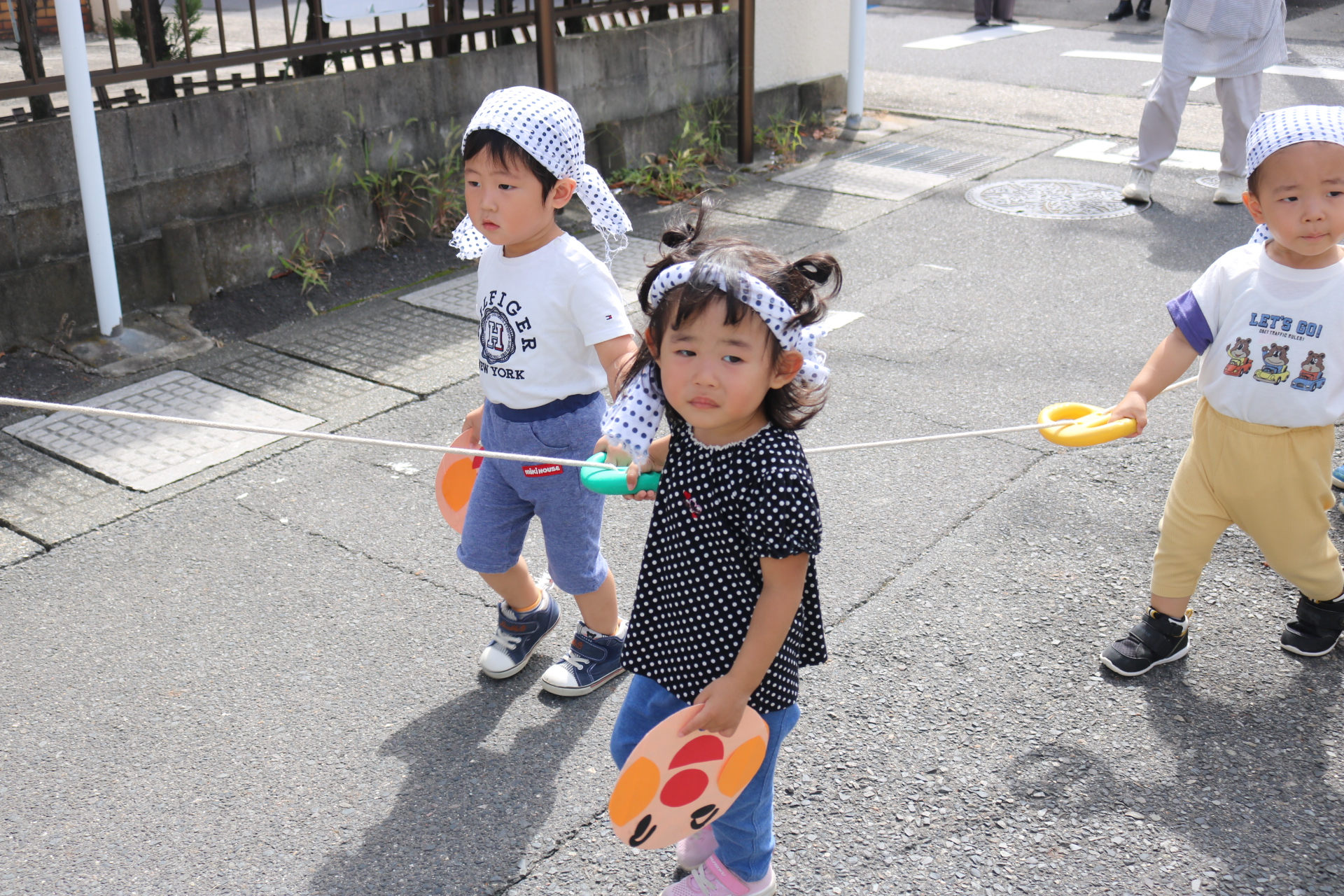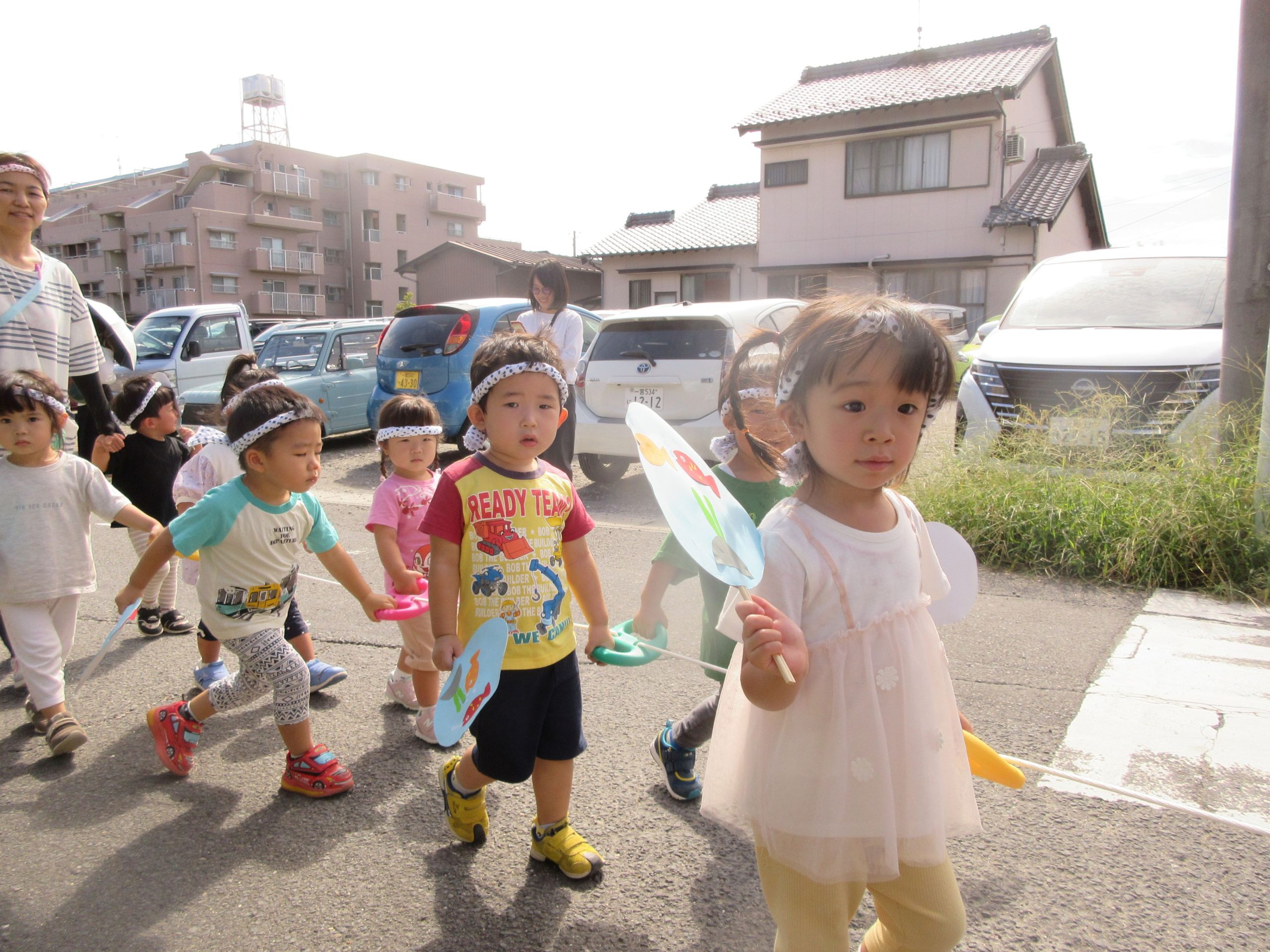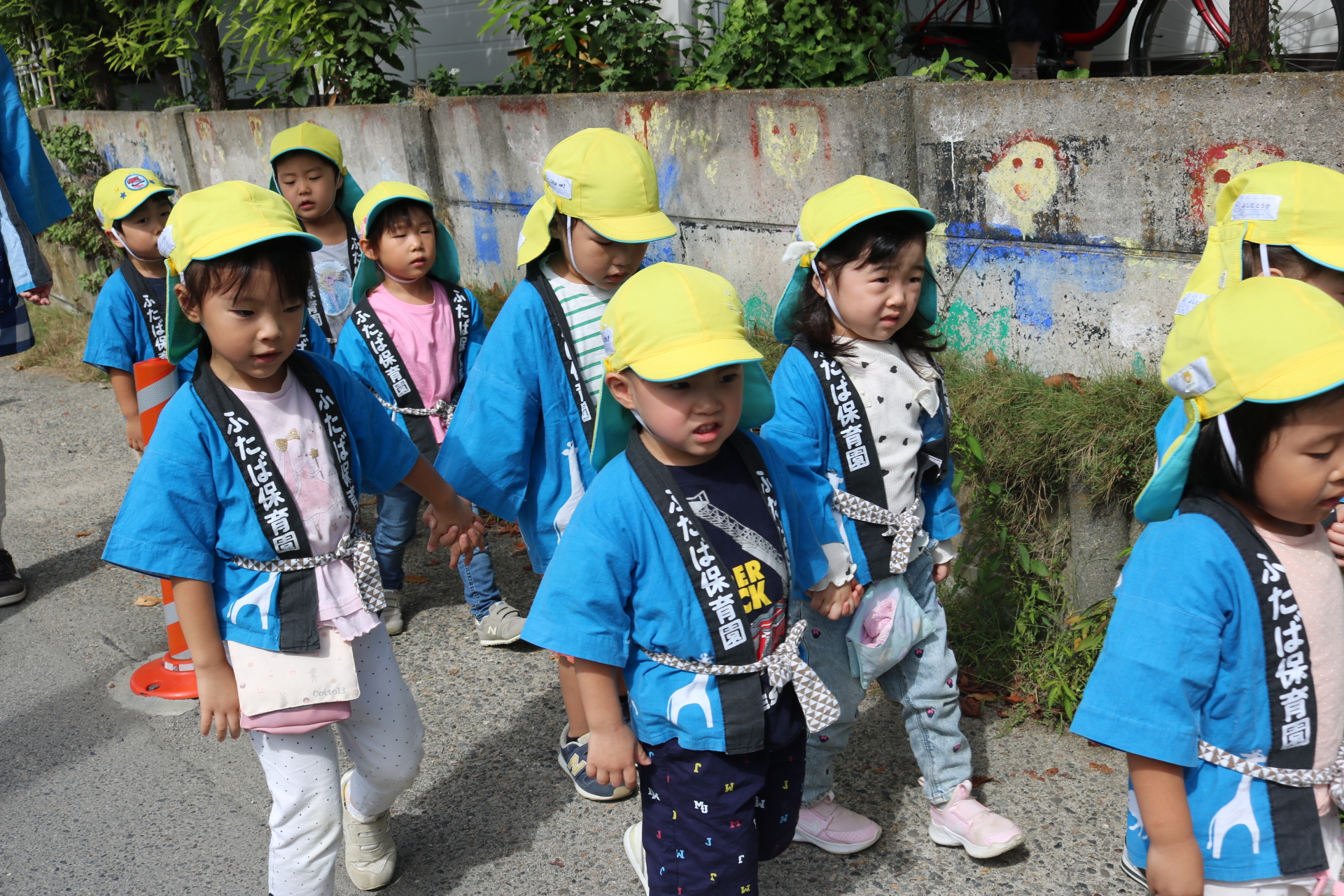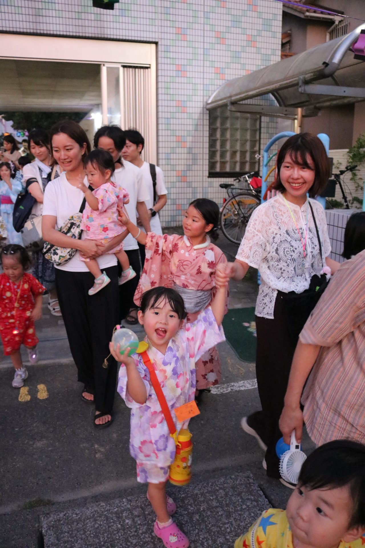 お祭りごっこを楽しんだ子どもたち。お神輿を担いで、近所を歩いてまわりましたよ😊