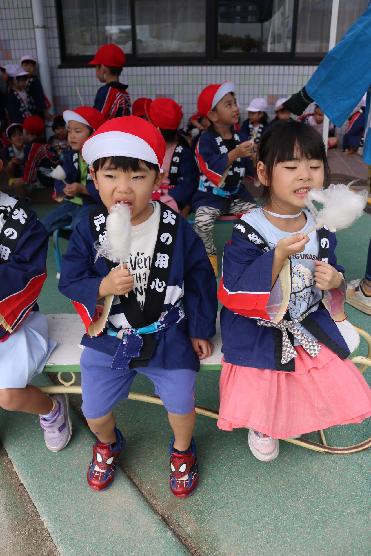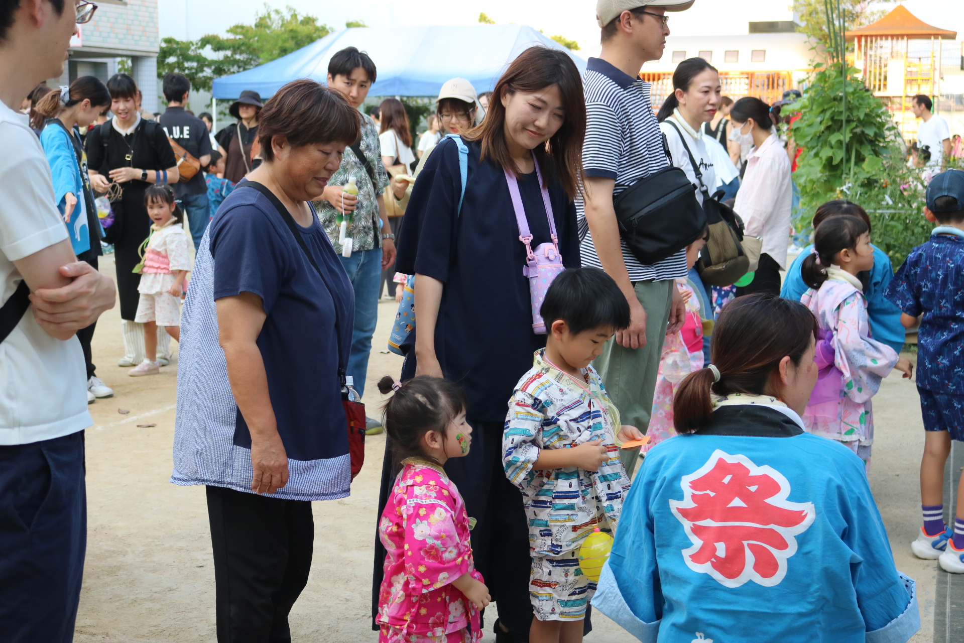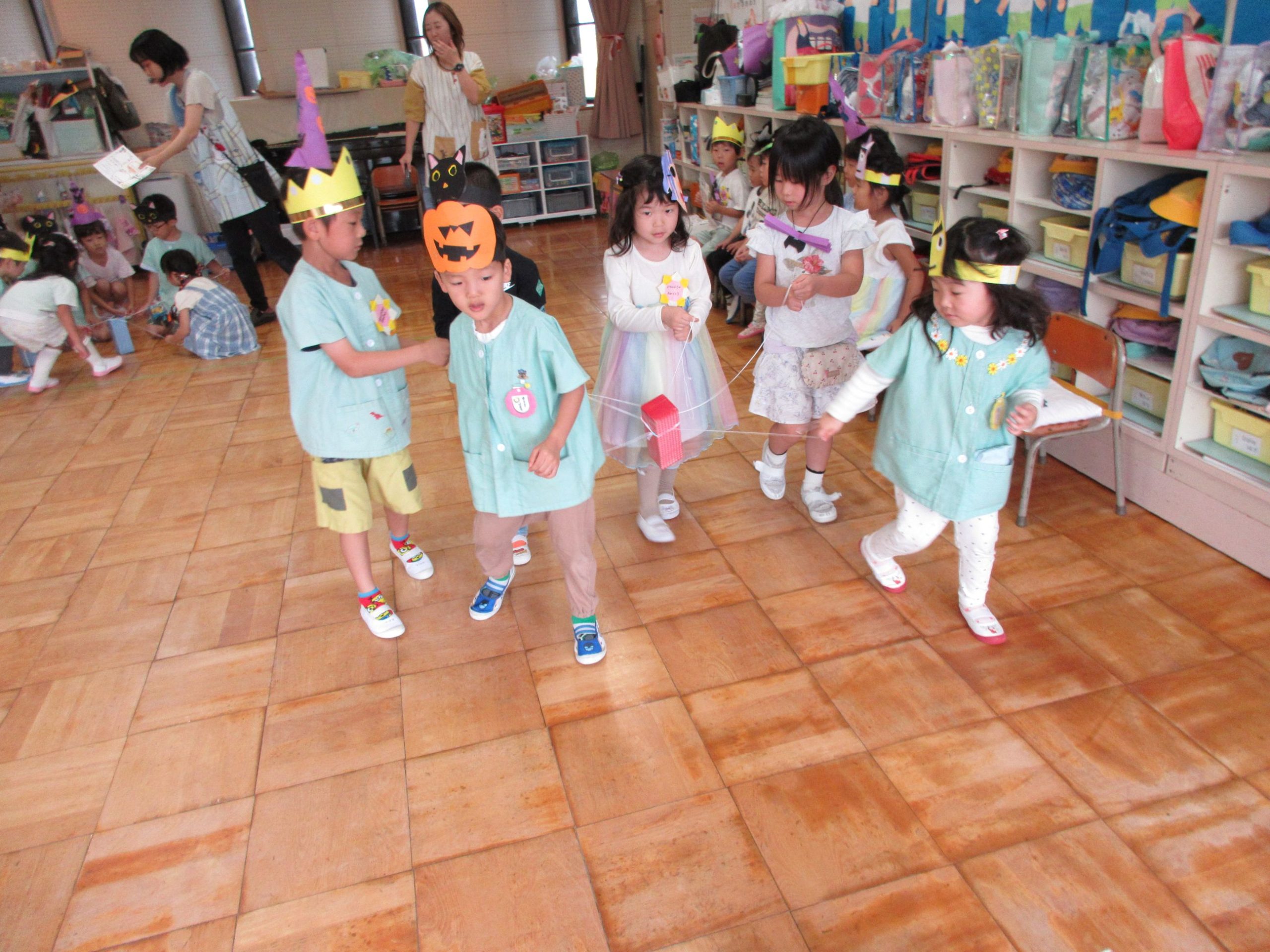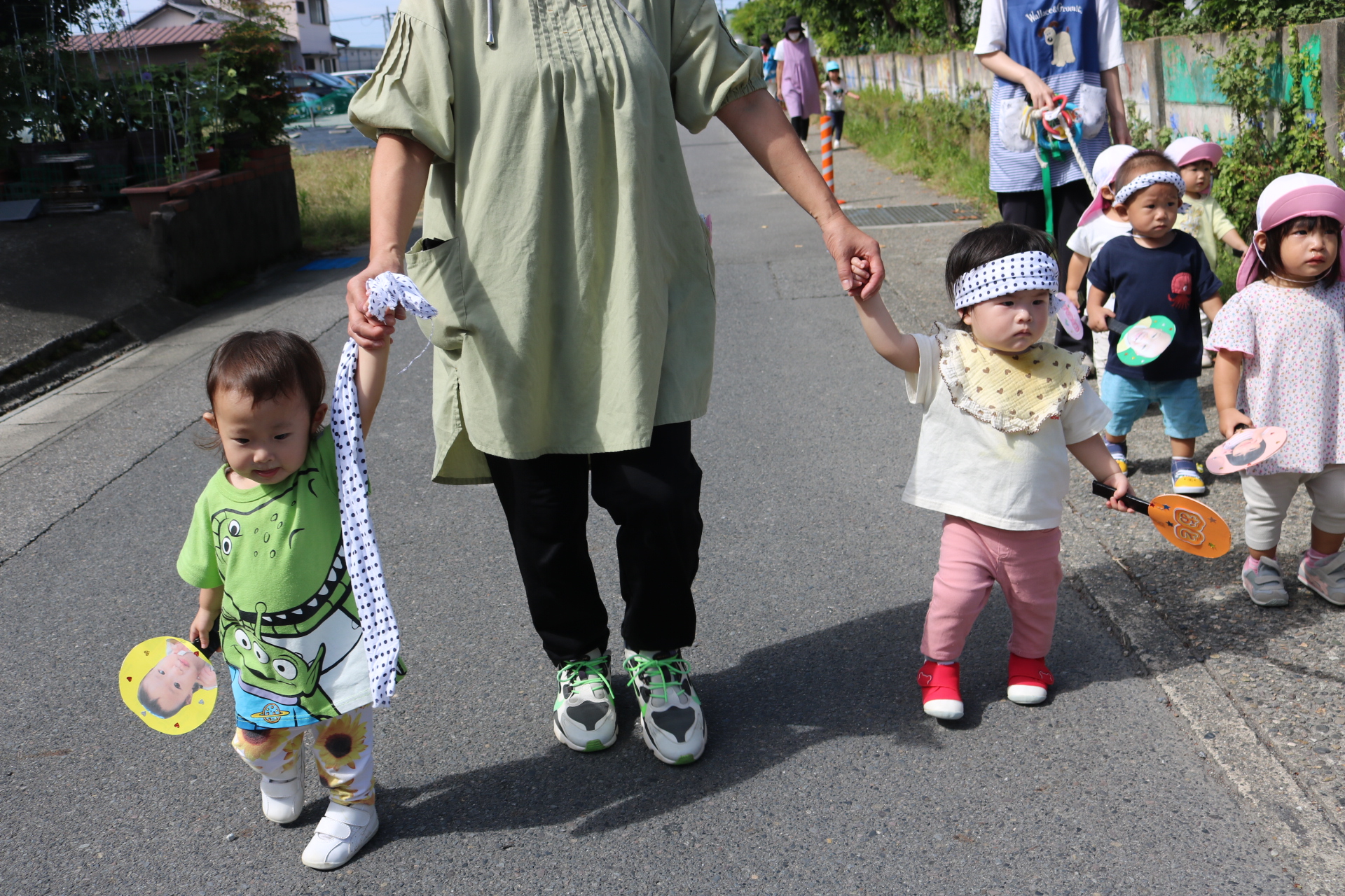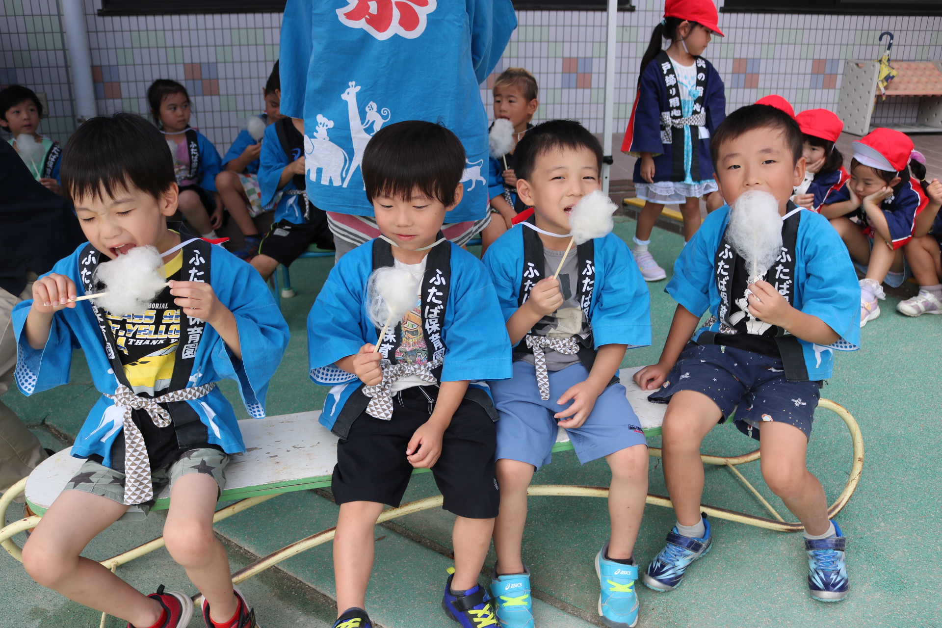 お祭りごっこを楽しんだ子どもたち。お神輿を担いで、近所を歩いてまわりましたよ😊