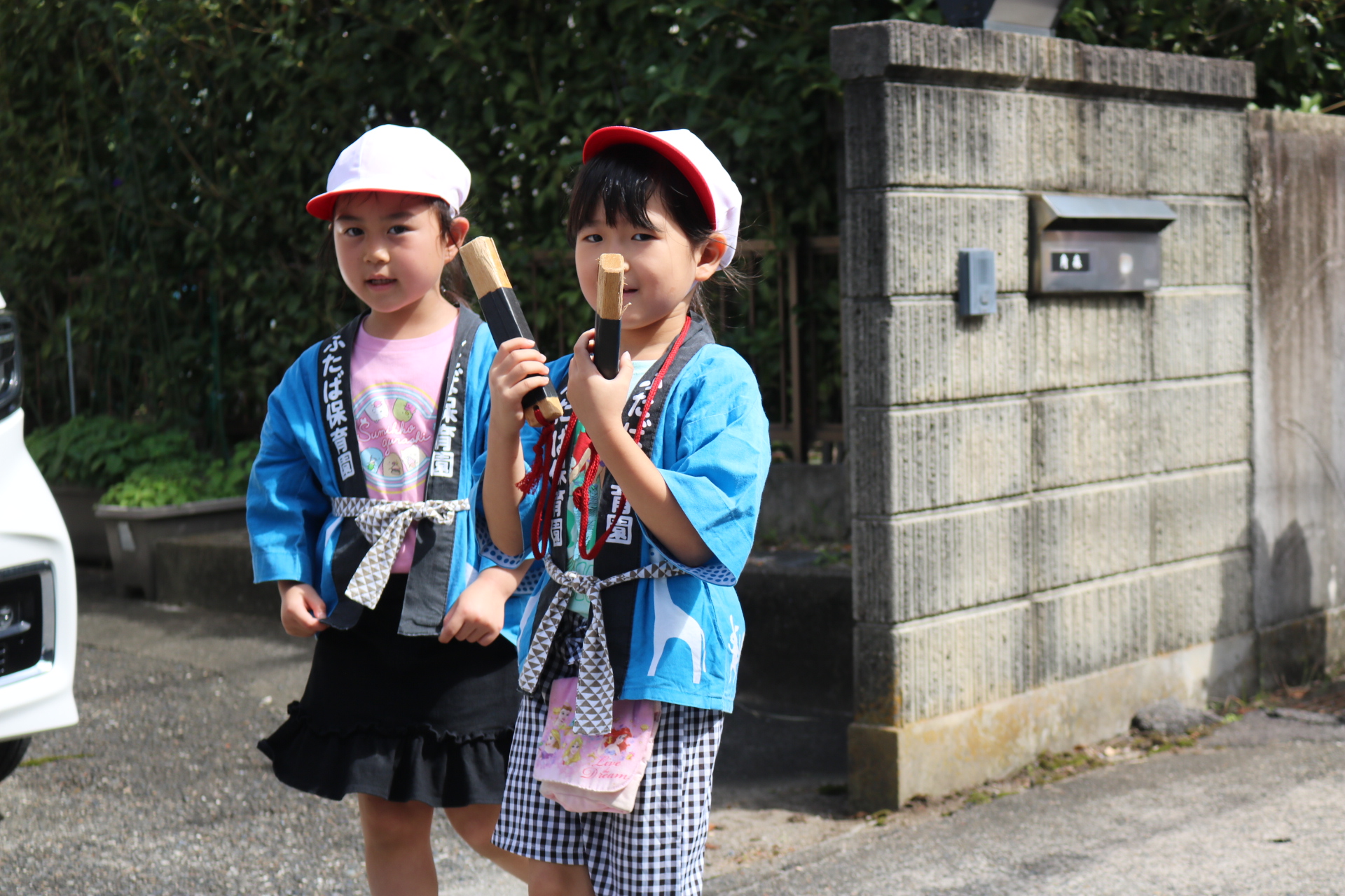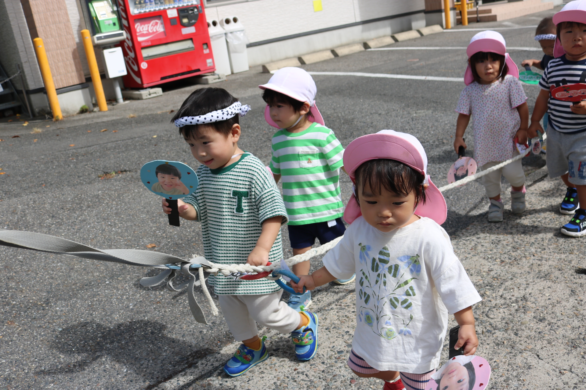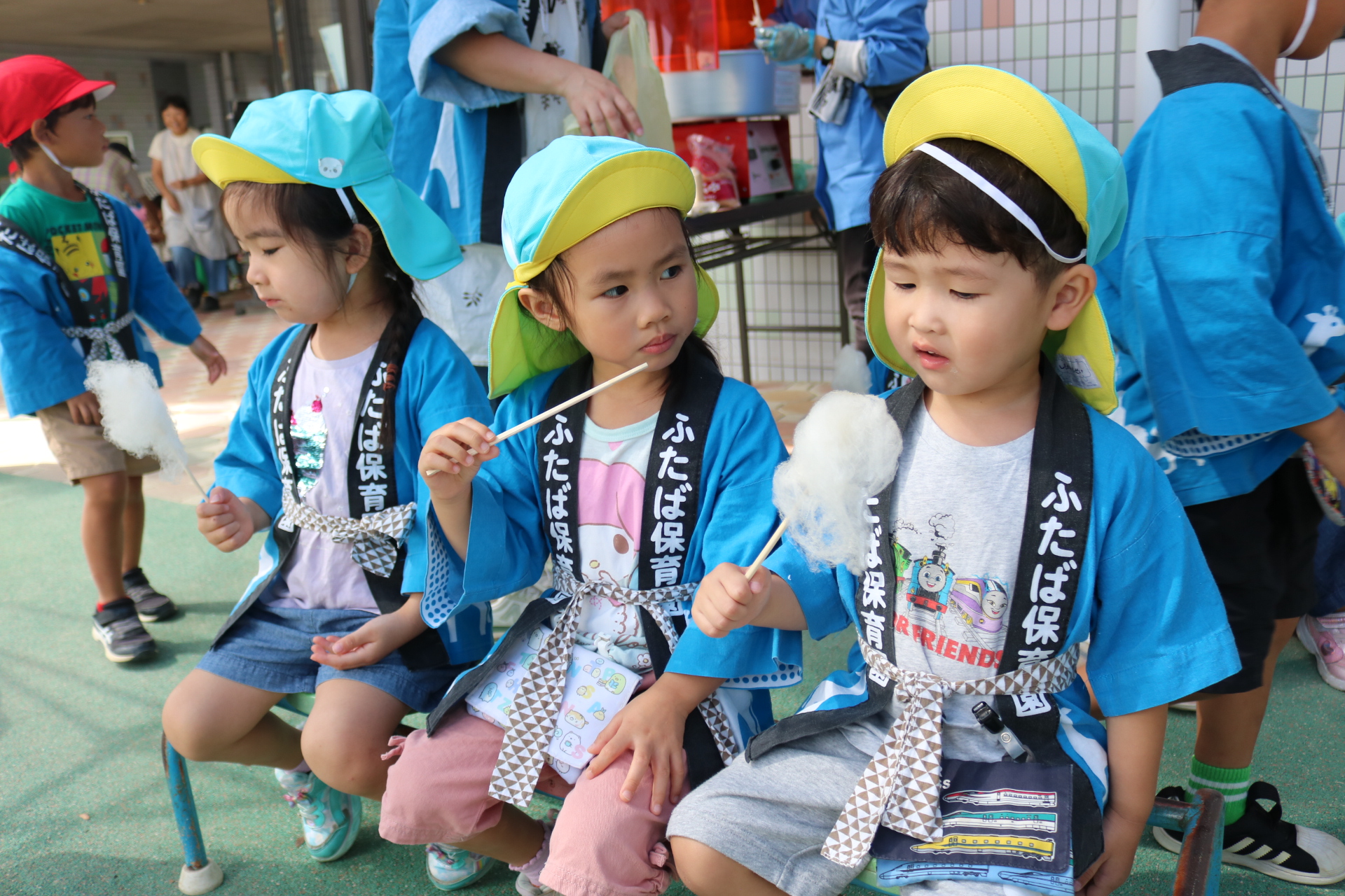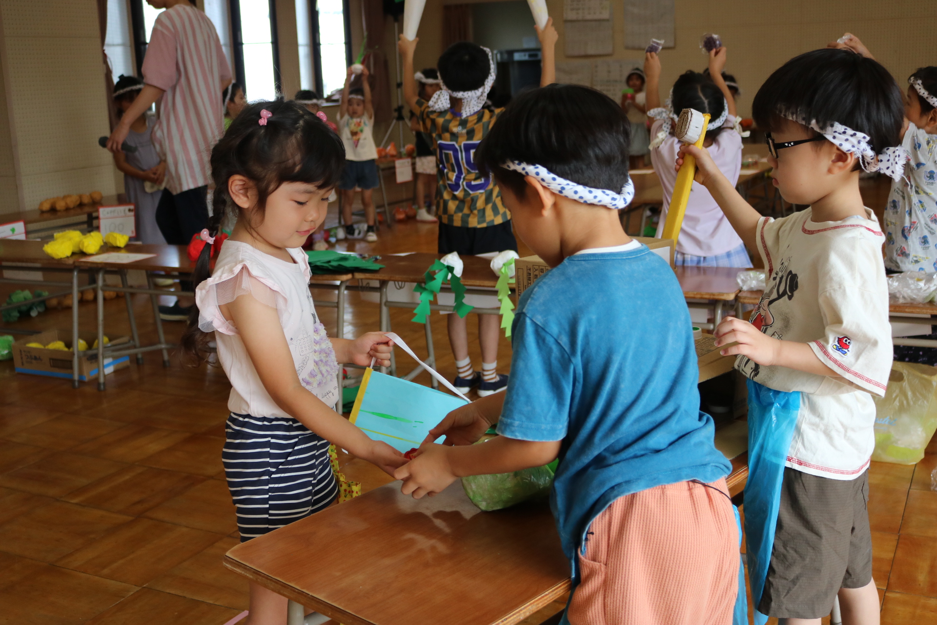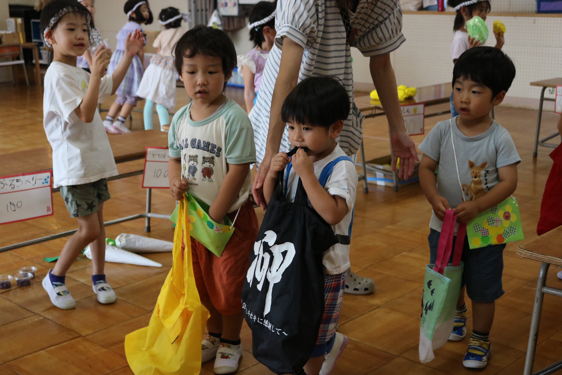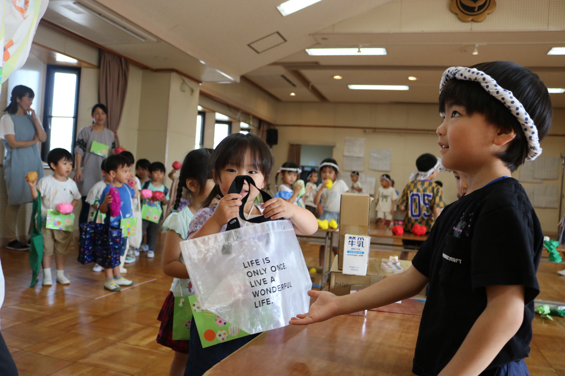 お祭りごっこを楽しんだ子どもたち。お神輿を担いで、近所を歩いてまわりましたよ😊
