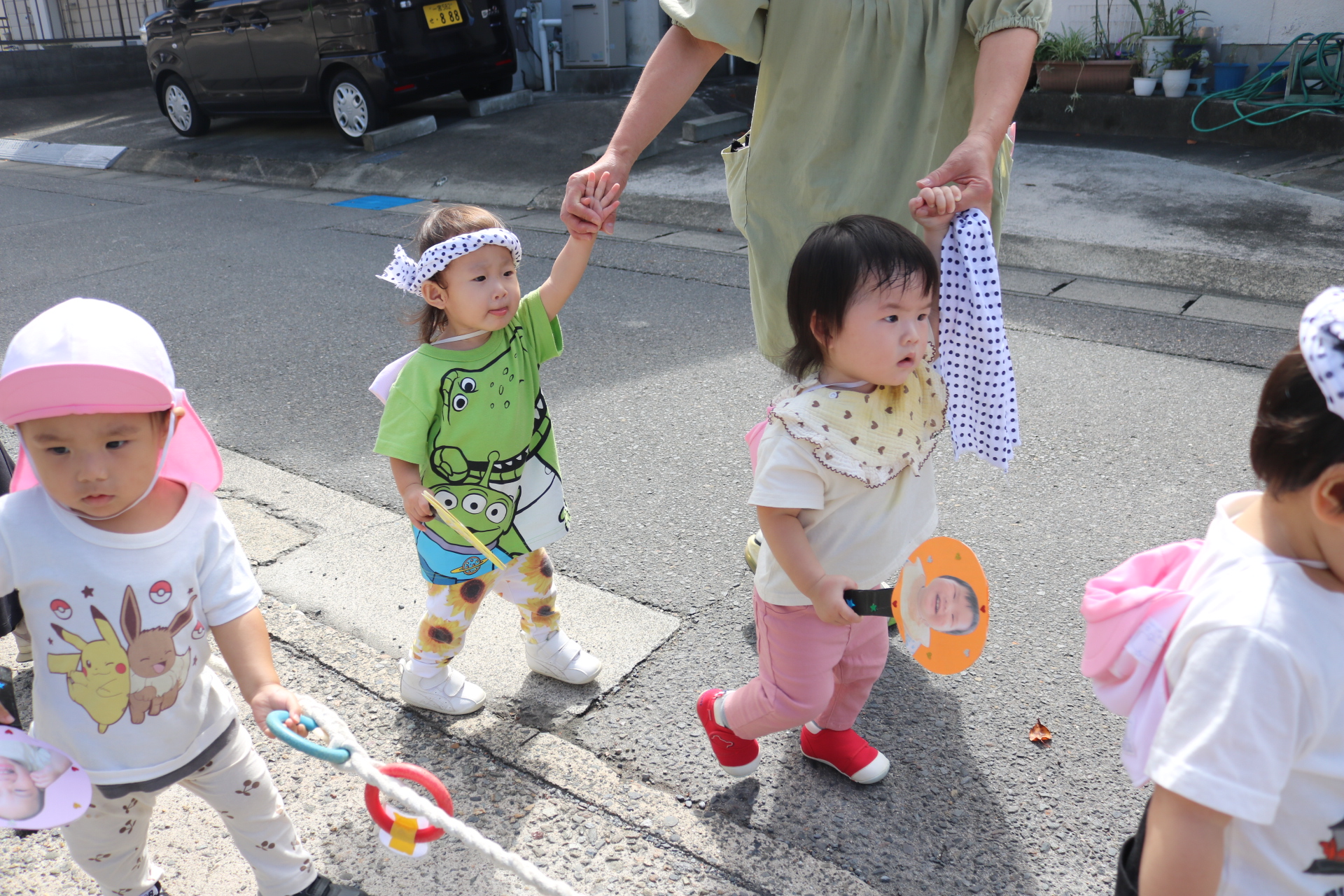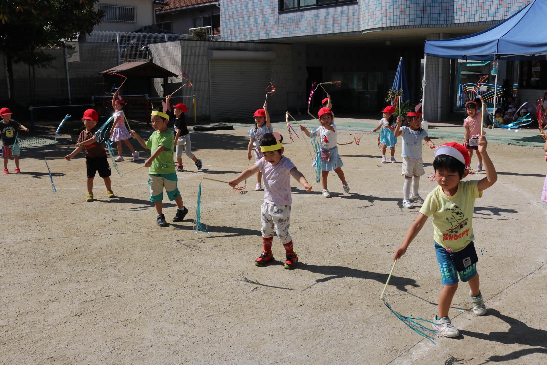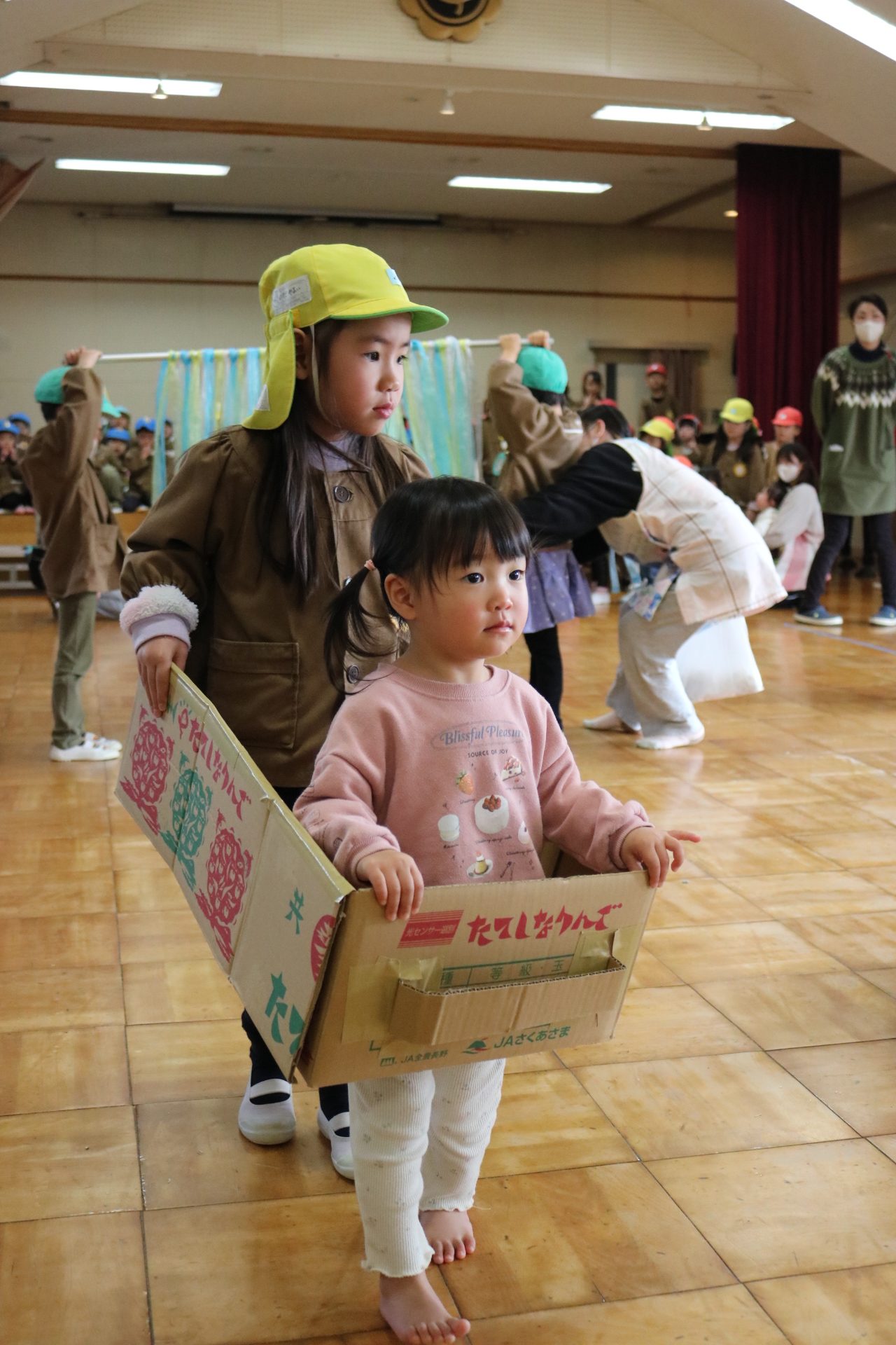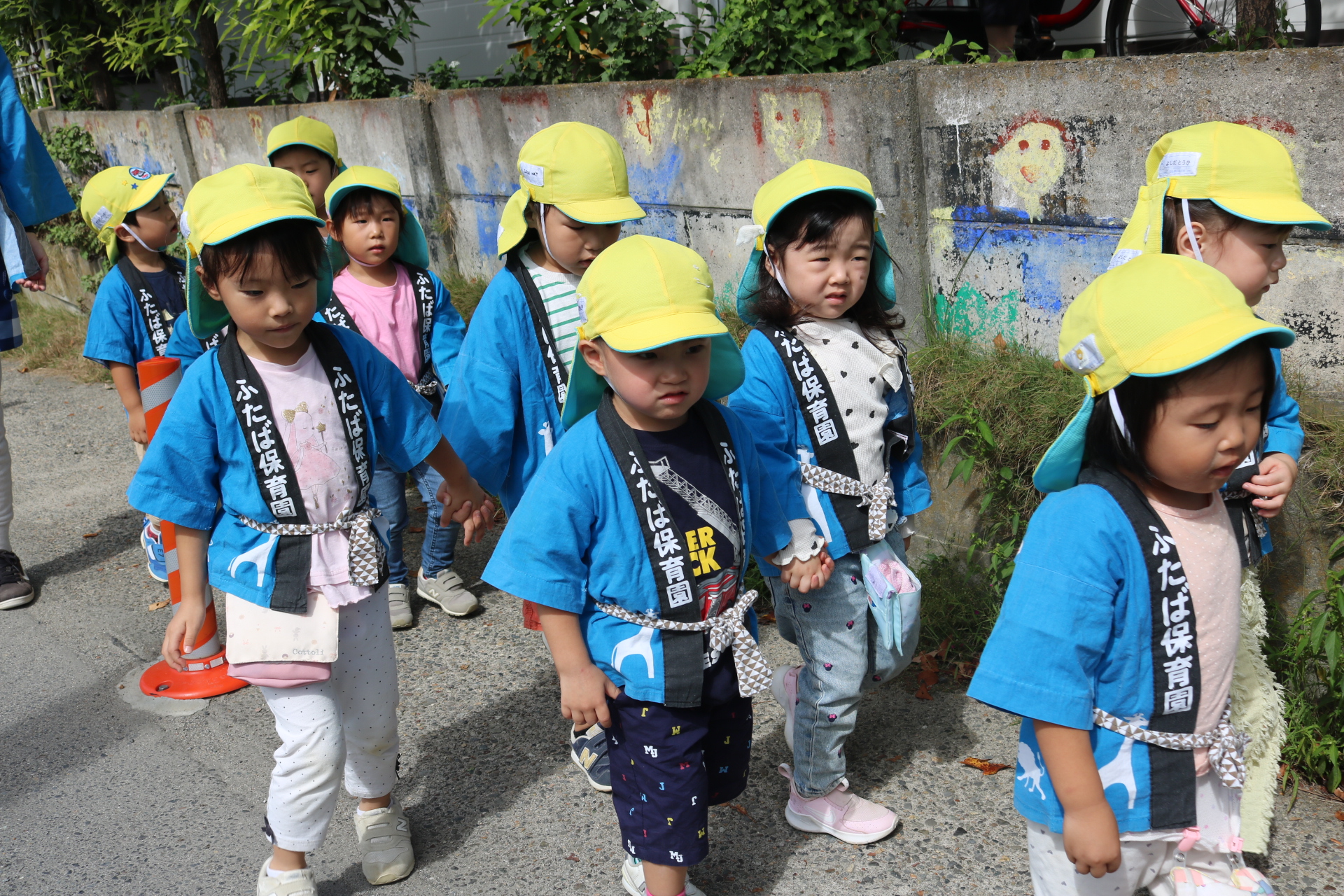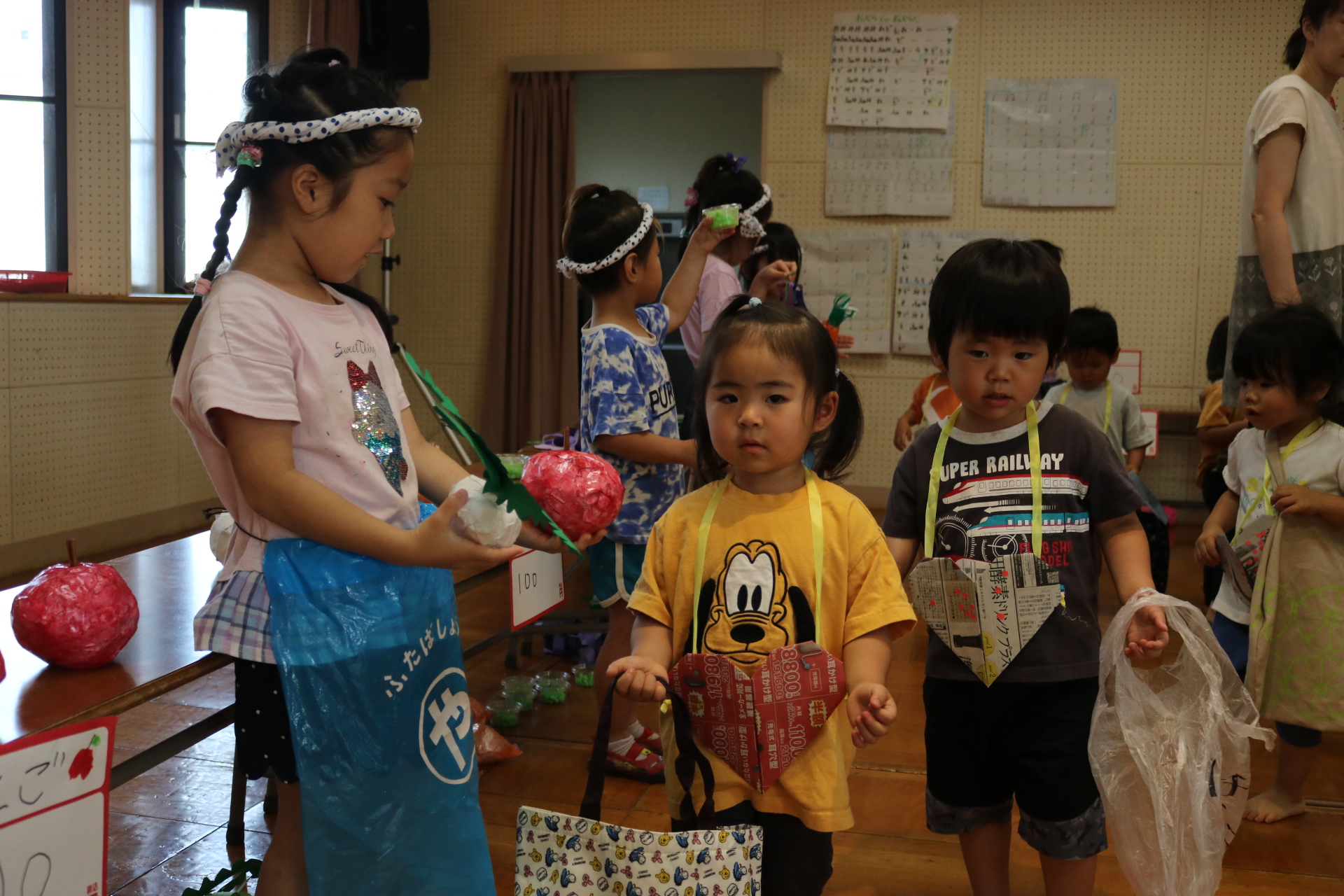 お祭りごっこを楽しんだ子どもたち。お神輿を担いで、近所を歩いてまわりましたよ😊