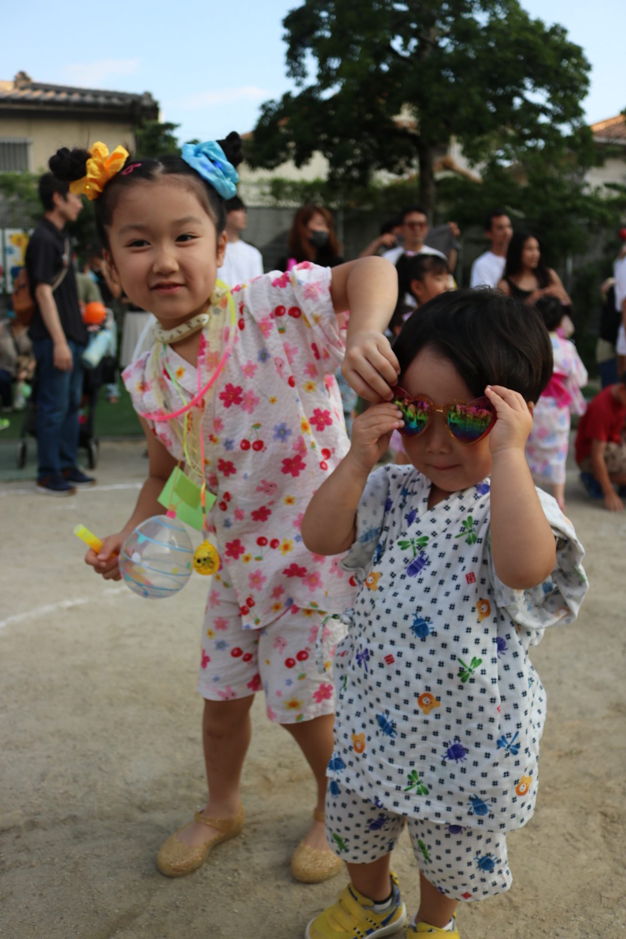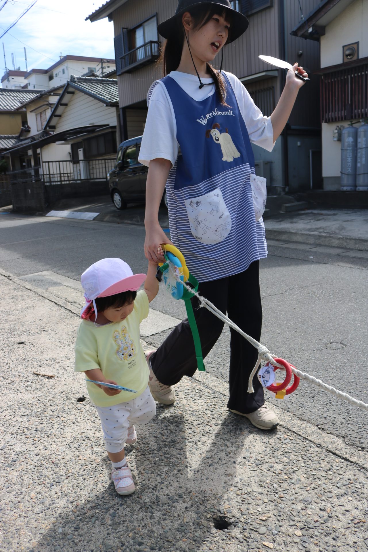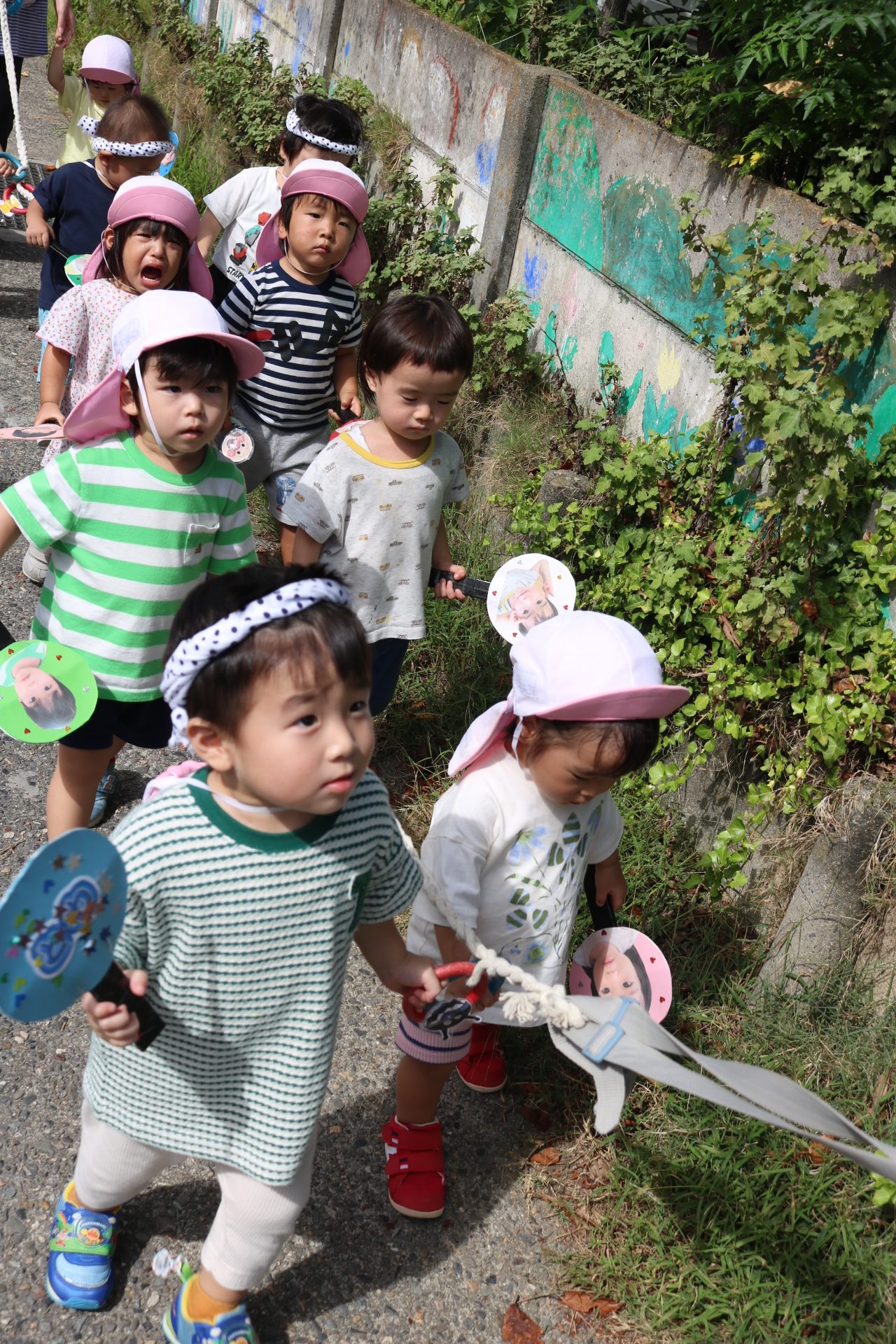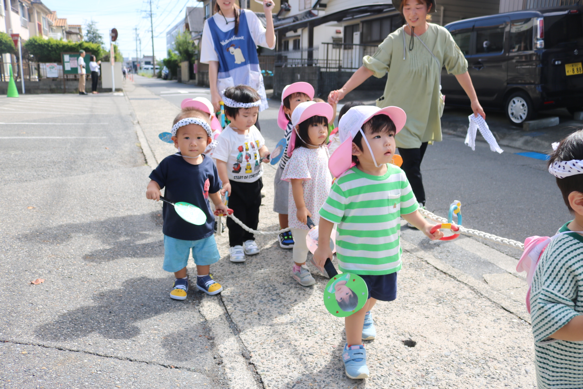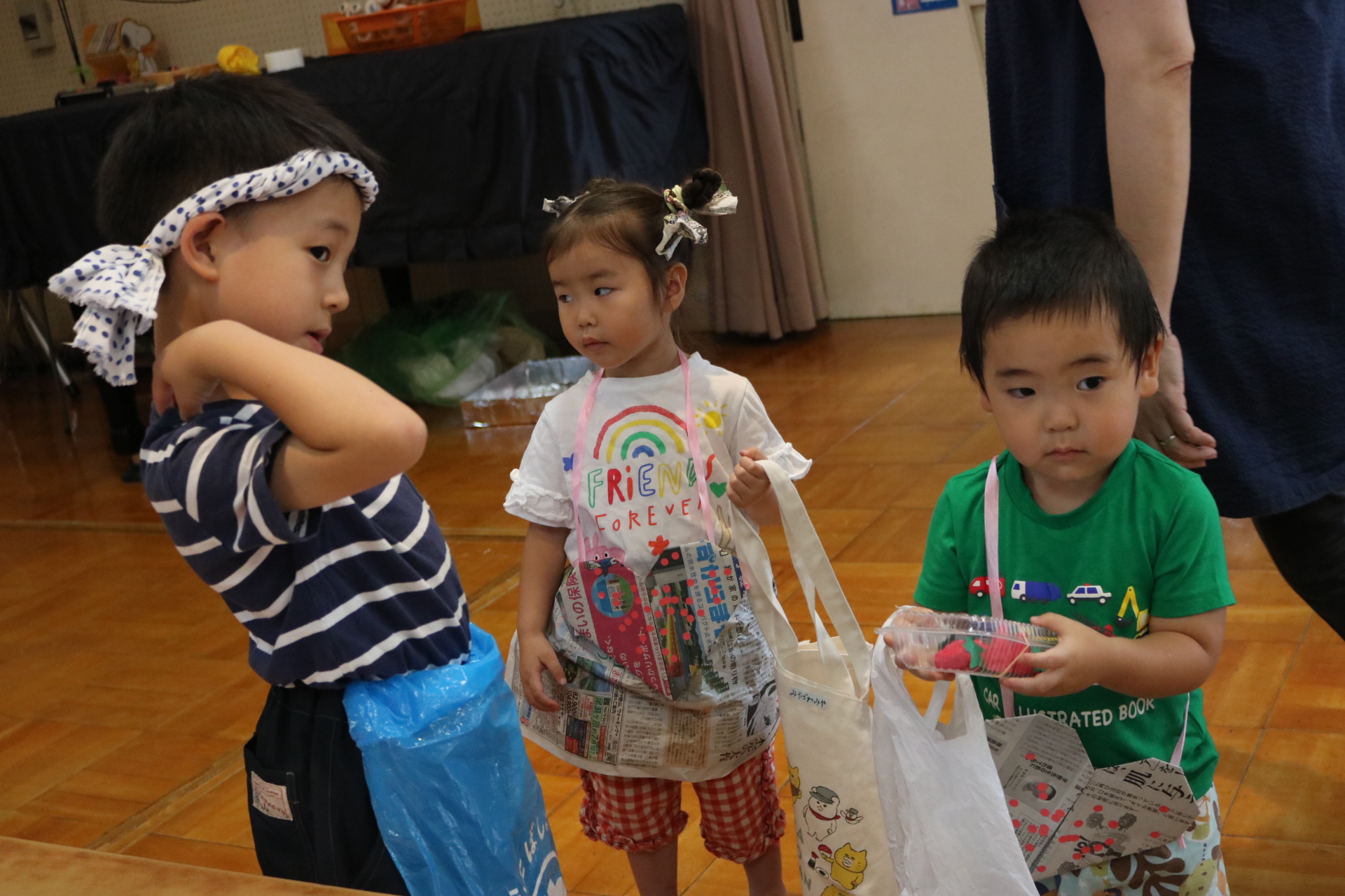 お祭りごっこを楽しんだ子どもたち。お神輿を担いで、近所を歩いてまわりましたよ😊