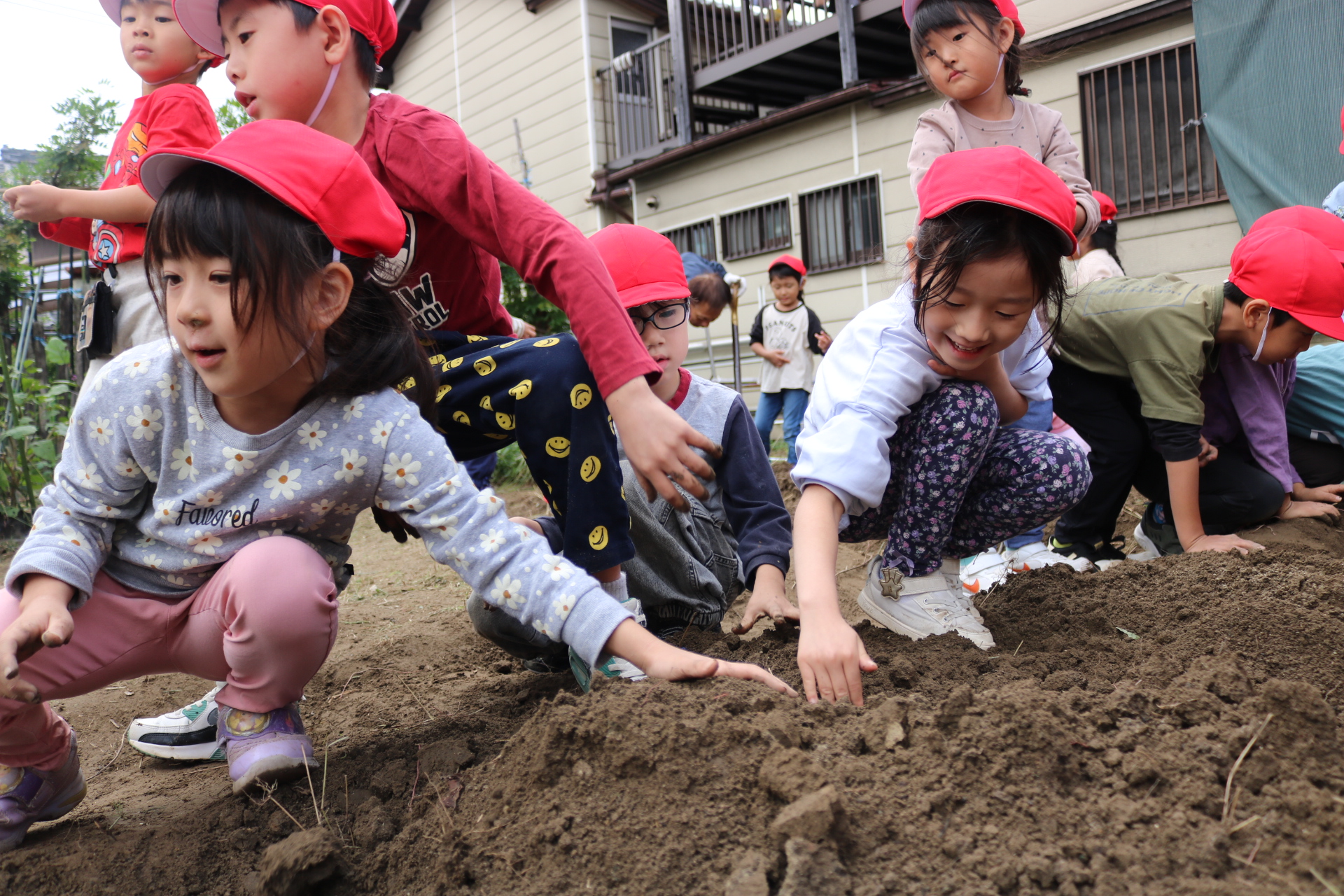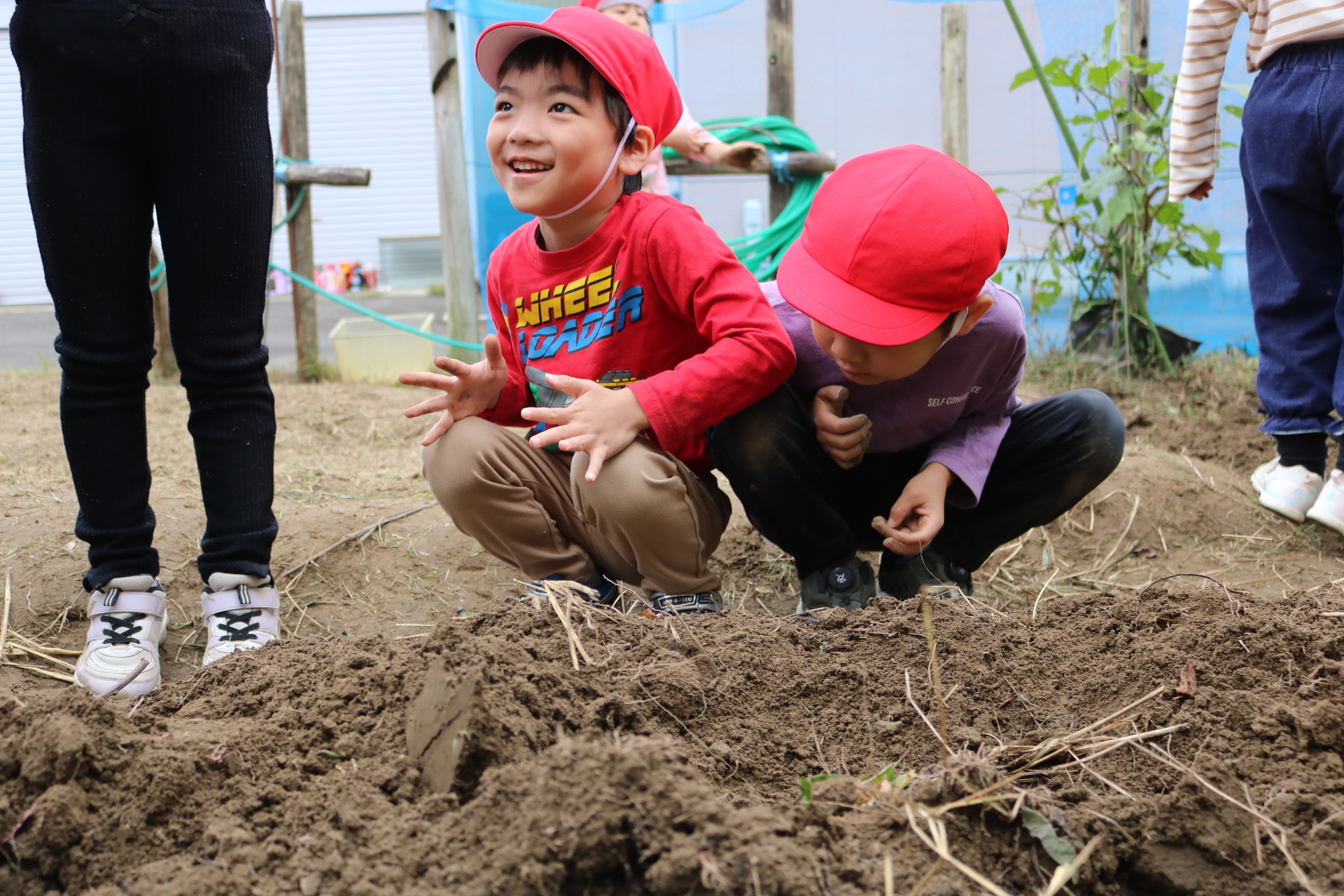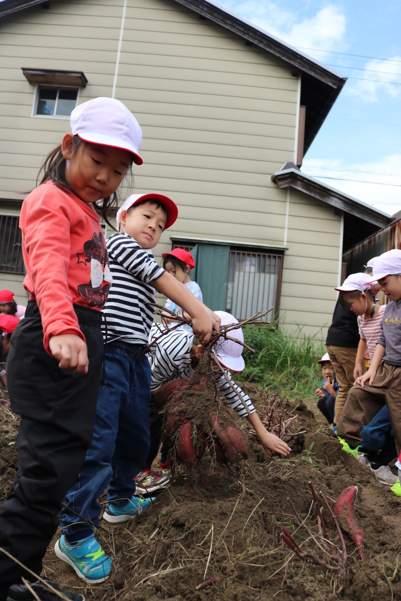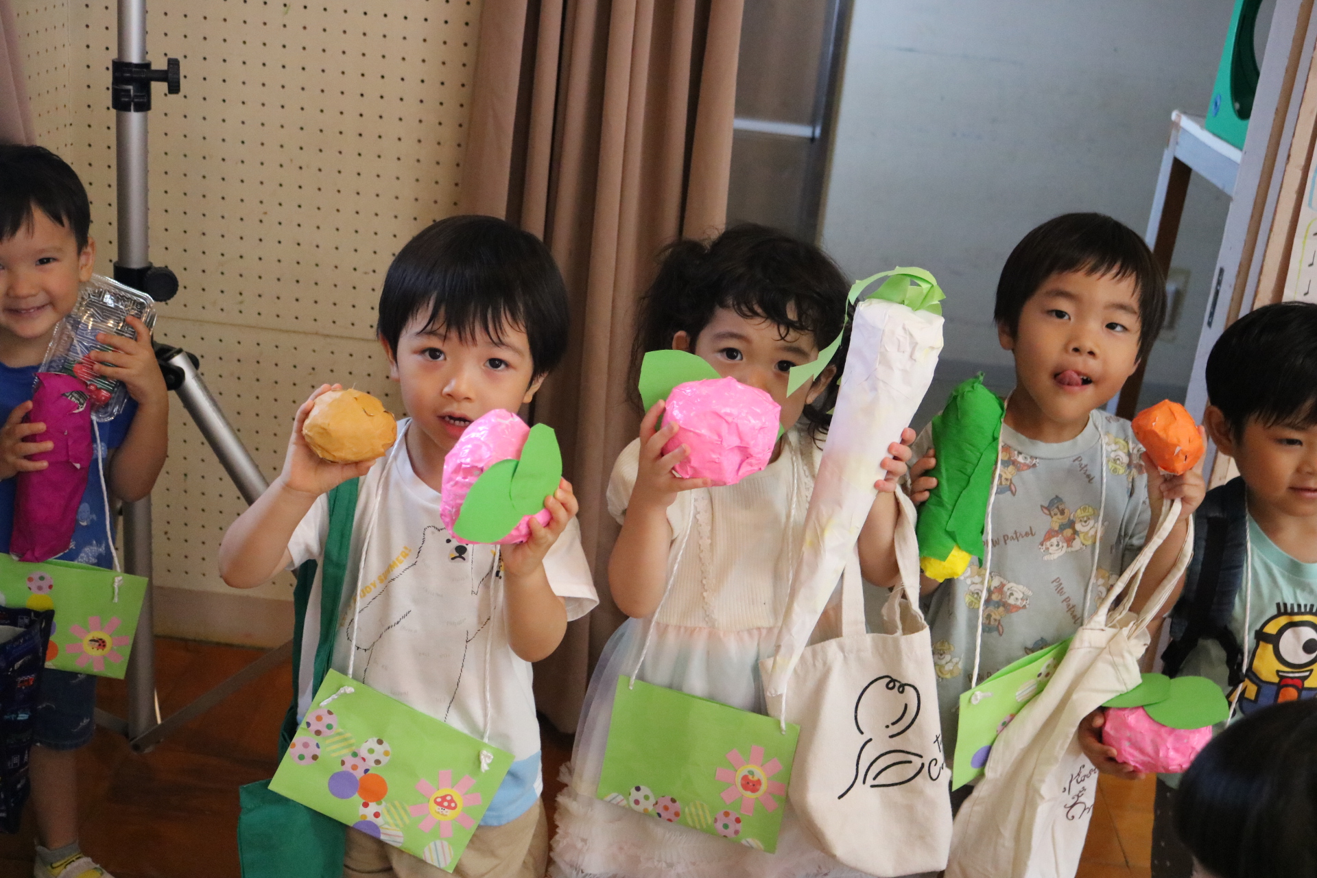 今日は年中さんが畑に行き、玉ねぎを収穫してきました。たくさん収穫できて大喜びの子どもたちでした😊