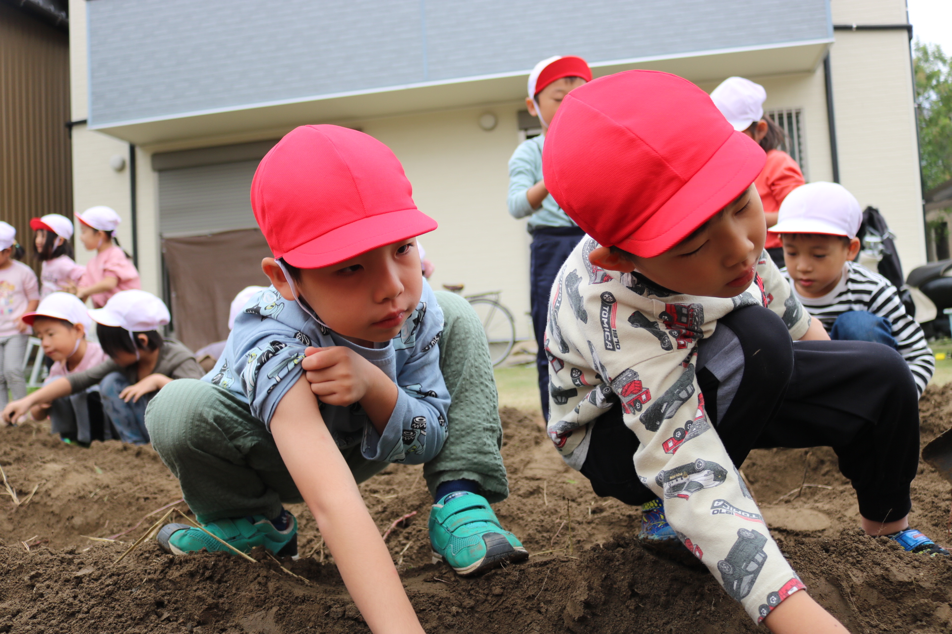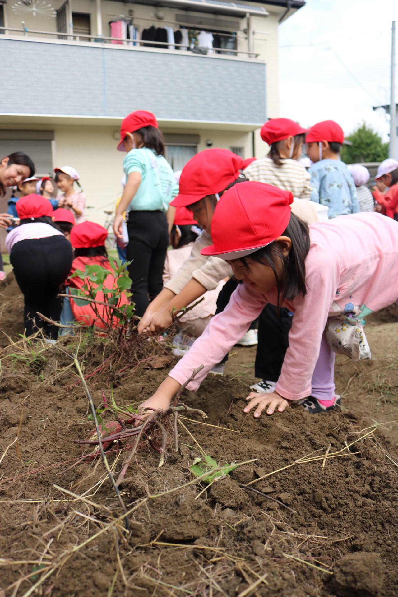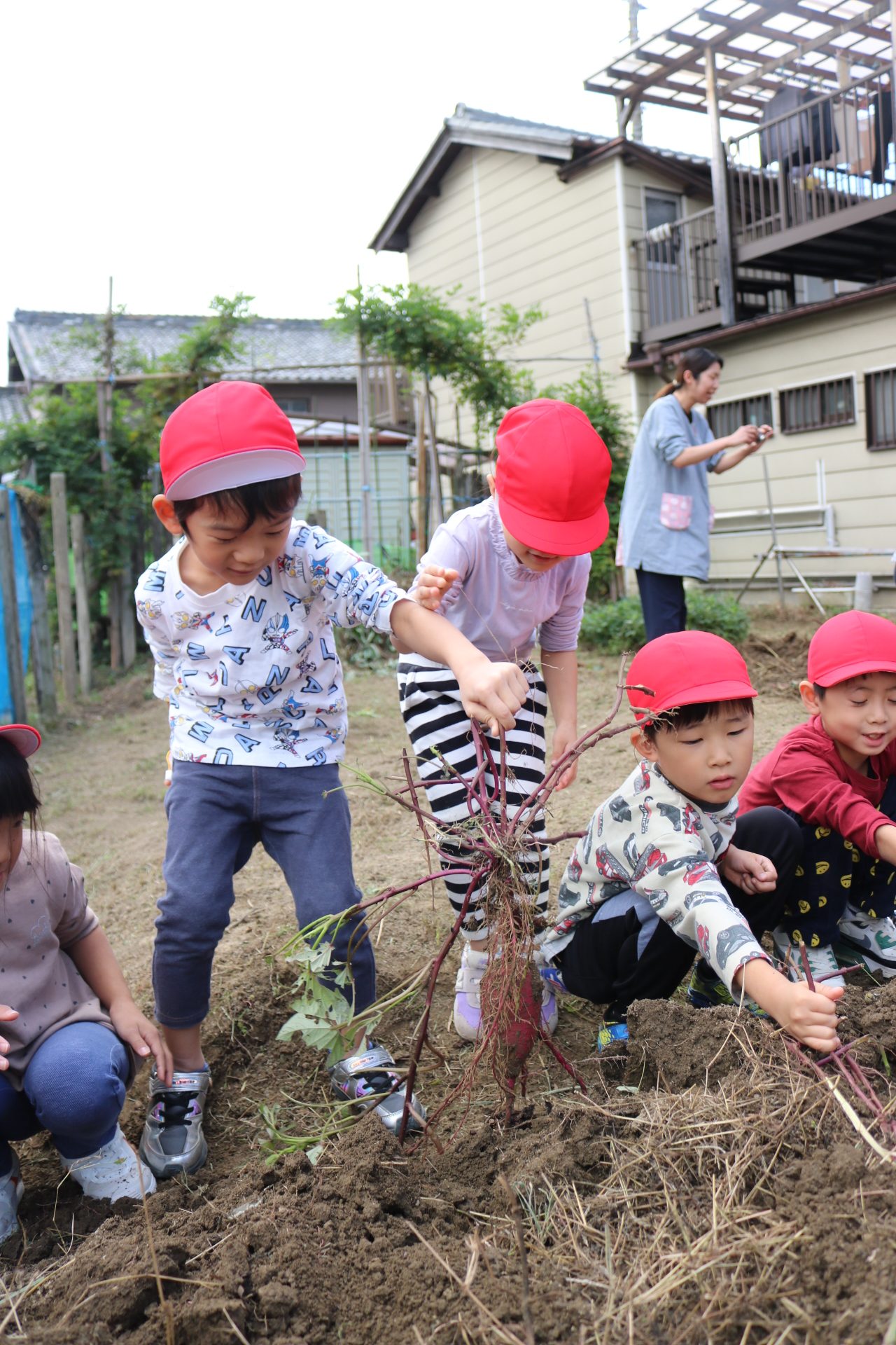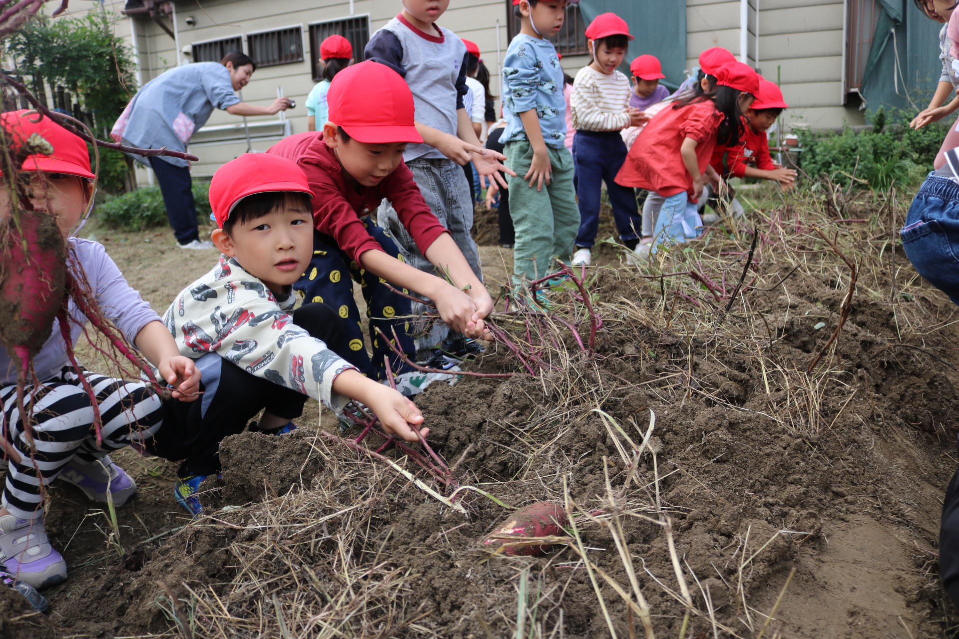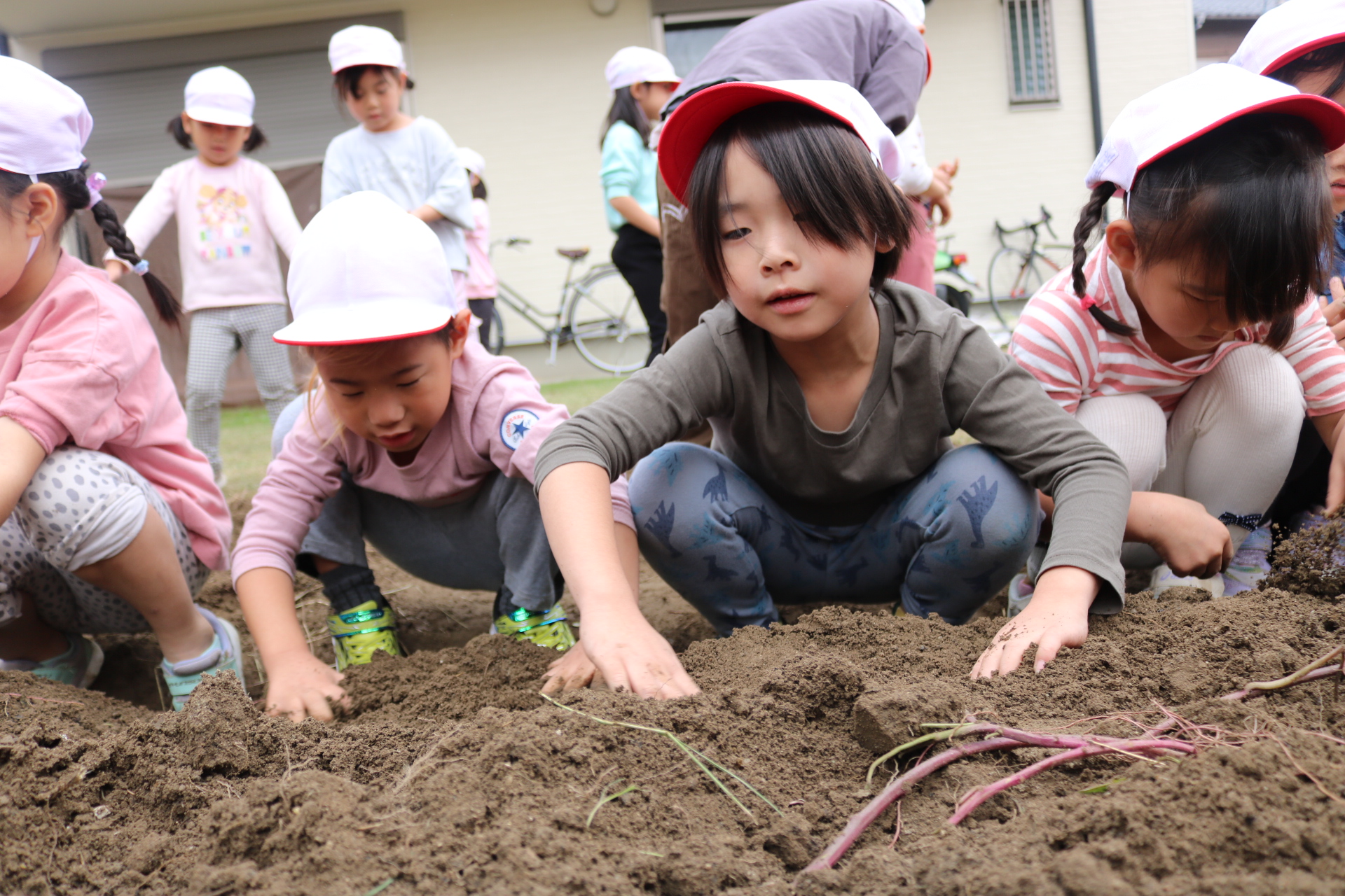 今日は年中さんが畑に行き、玉ねぎを収穫してきました。たくさん収穫できて大喜びの子どもたちでした😊