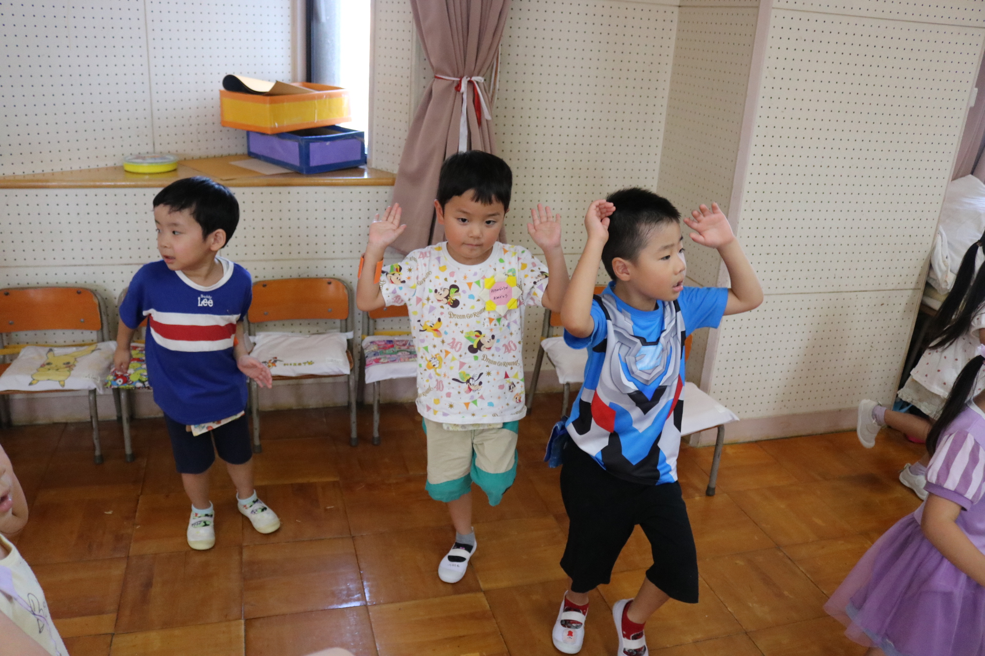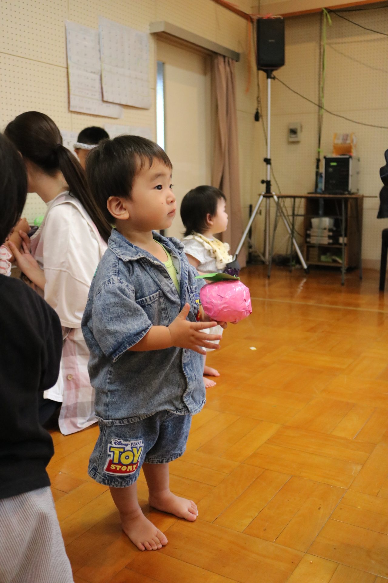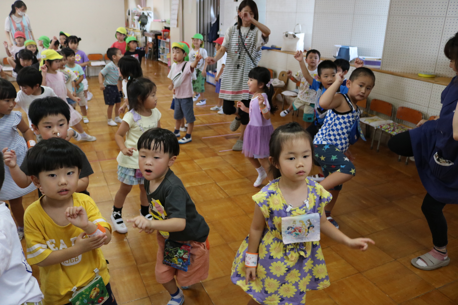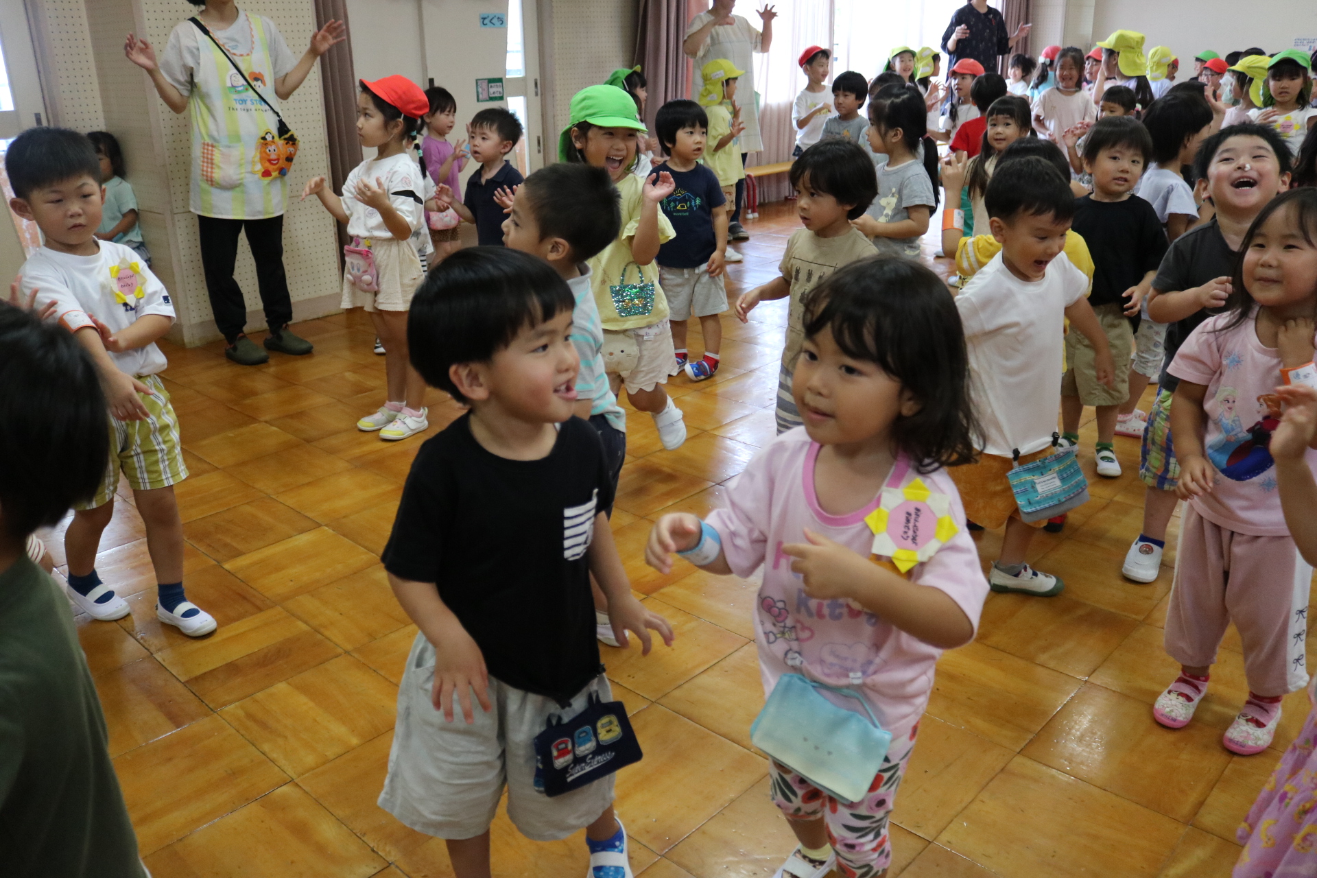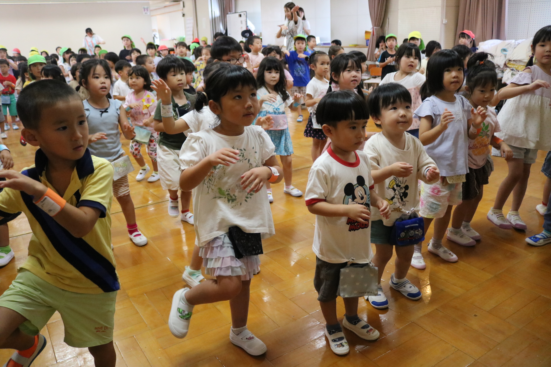スティッチの曲に合わせて踊る子どもたち!キラキラの棒を上手に振って踊っています😊