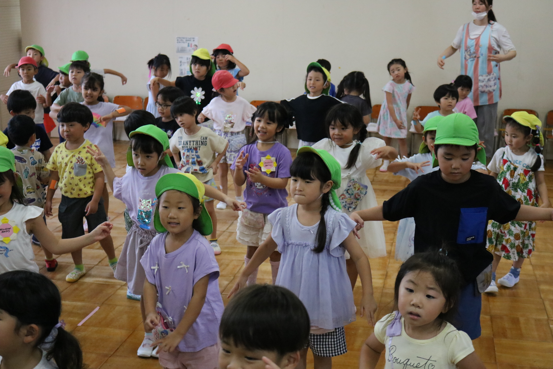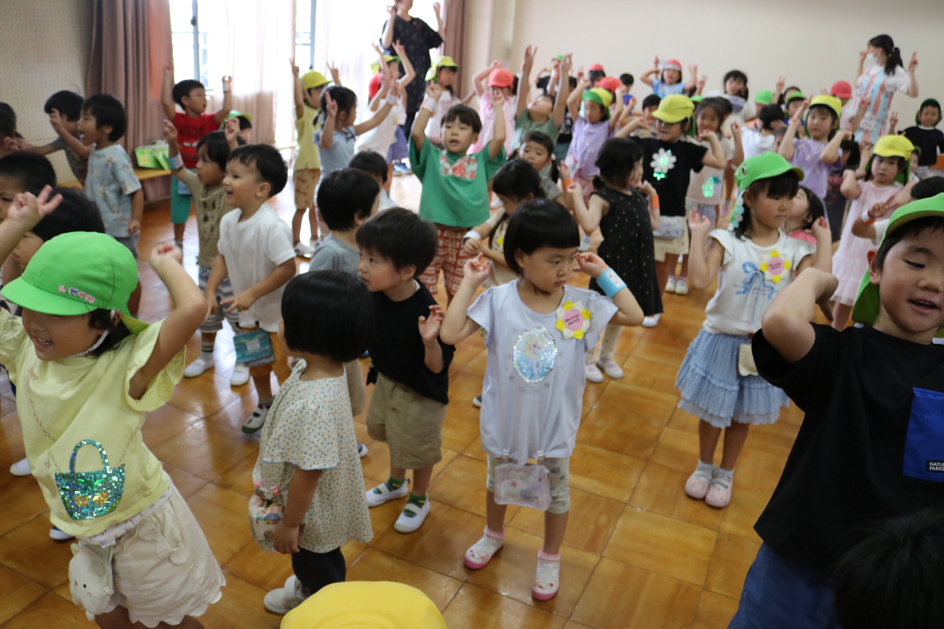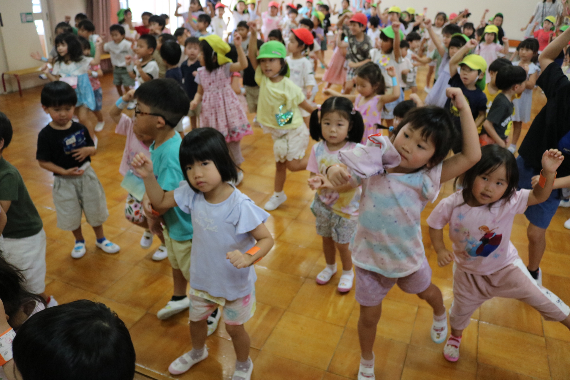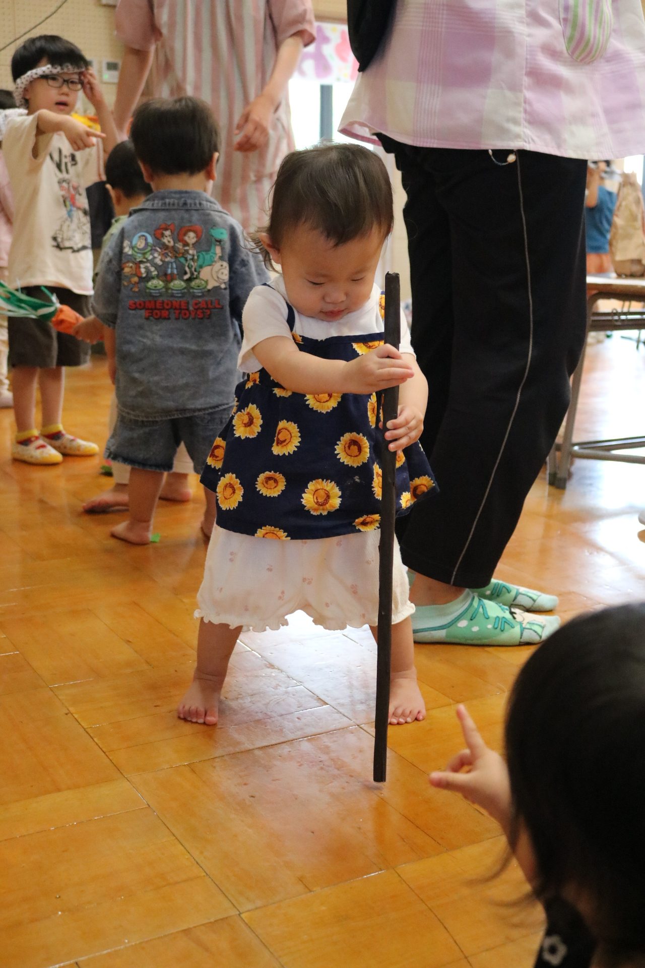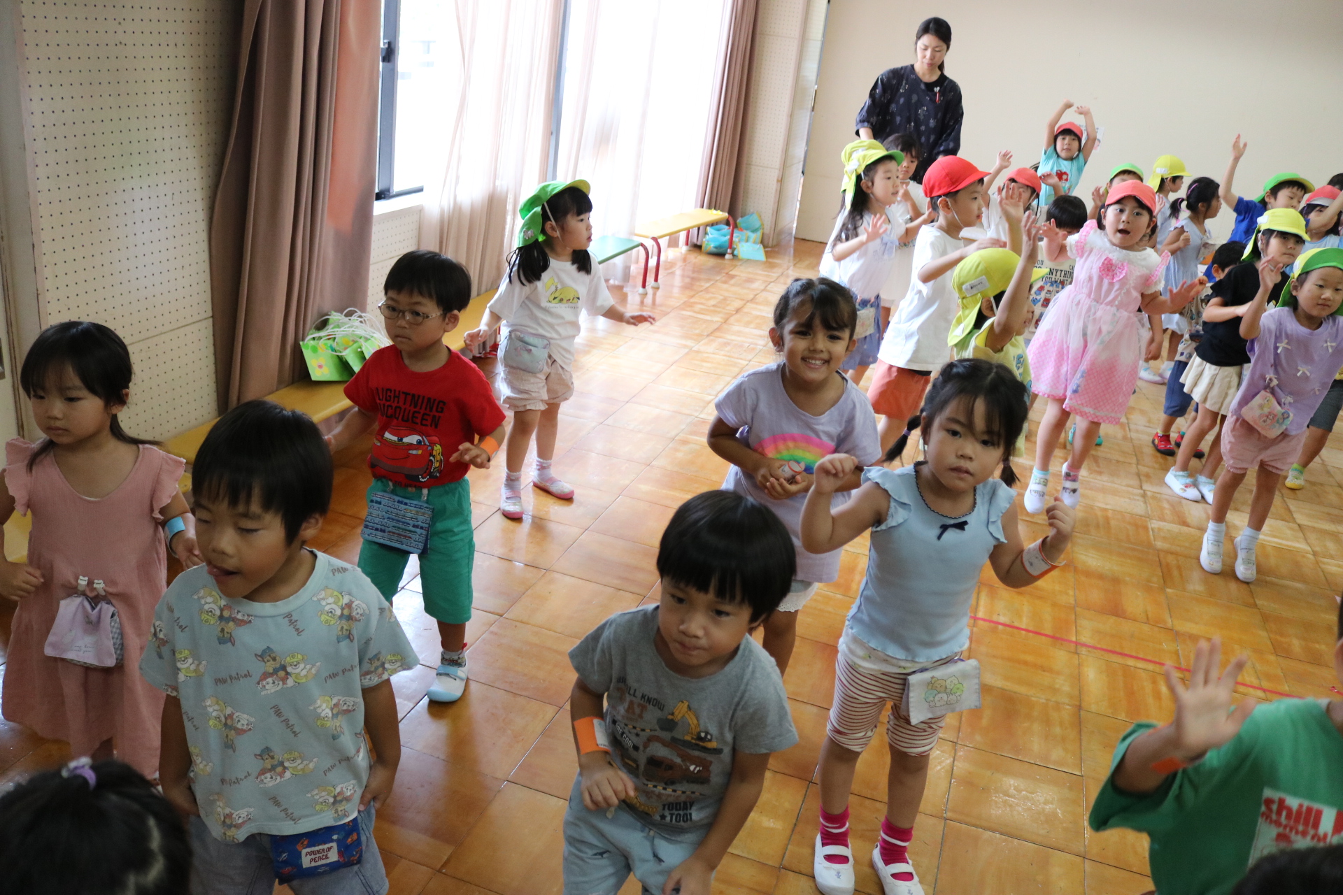 スティッチの曲に合わせて踊る子どもたち!キラキラの棒を上手に振って踊っています😊