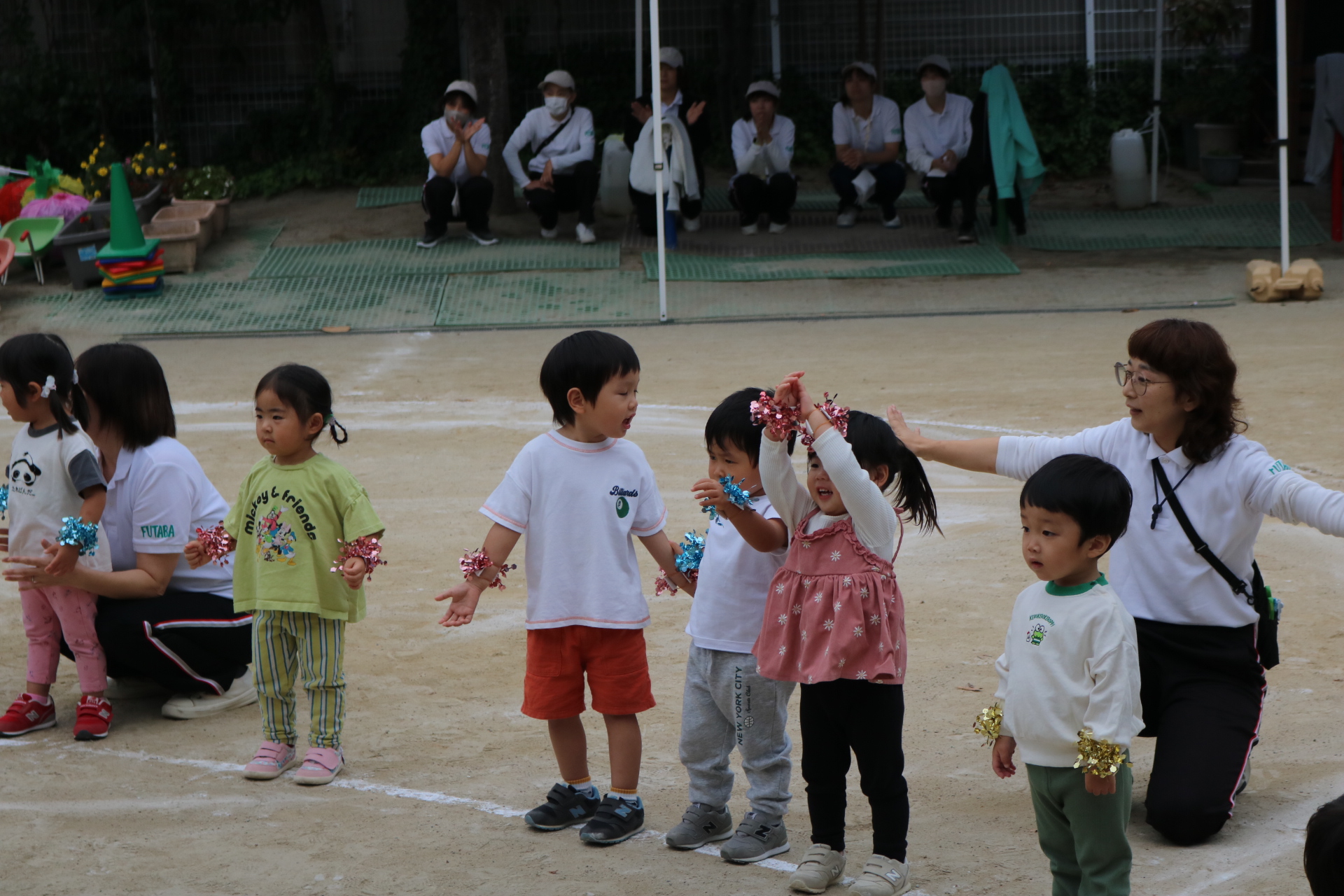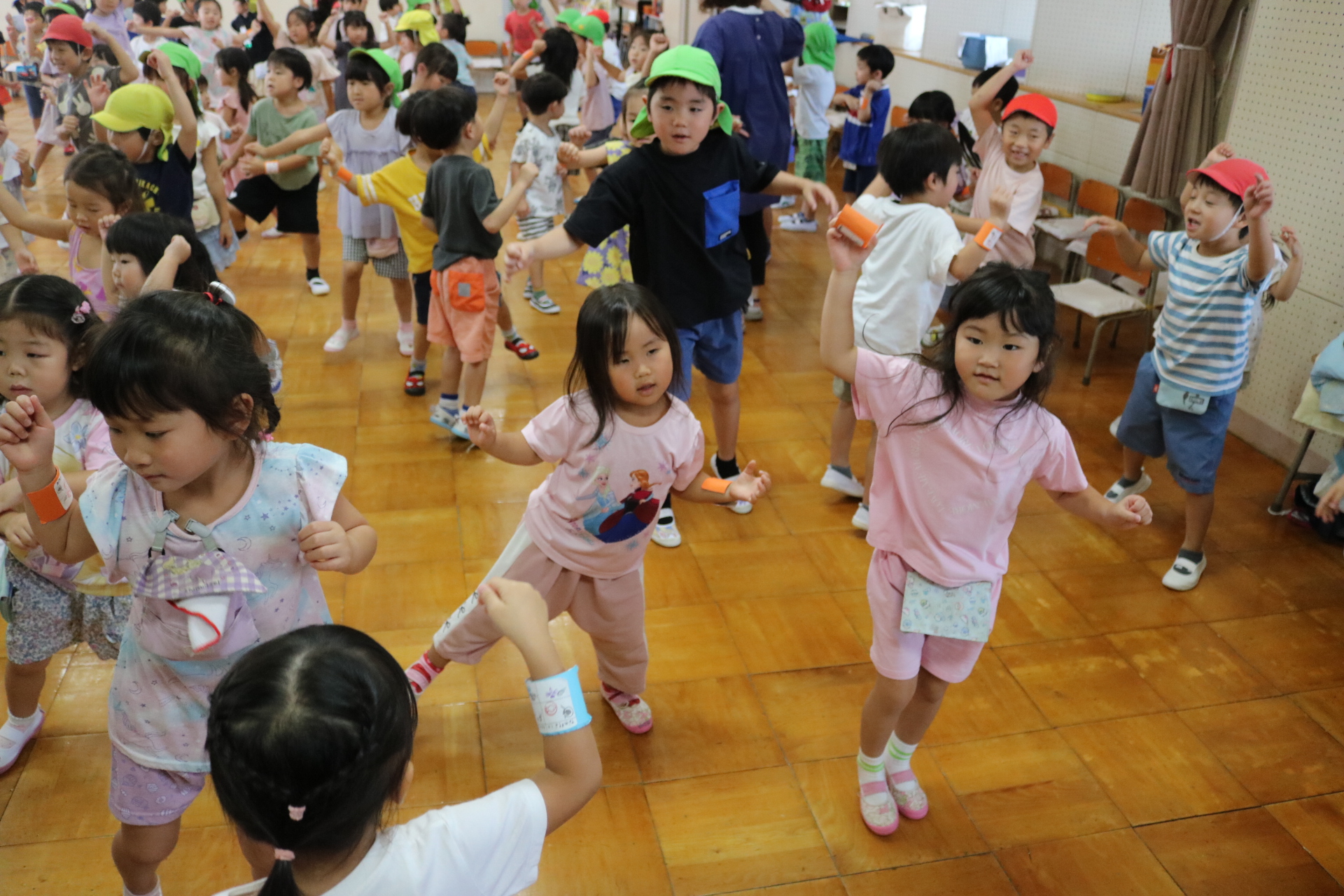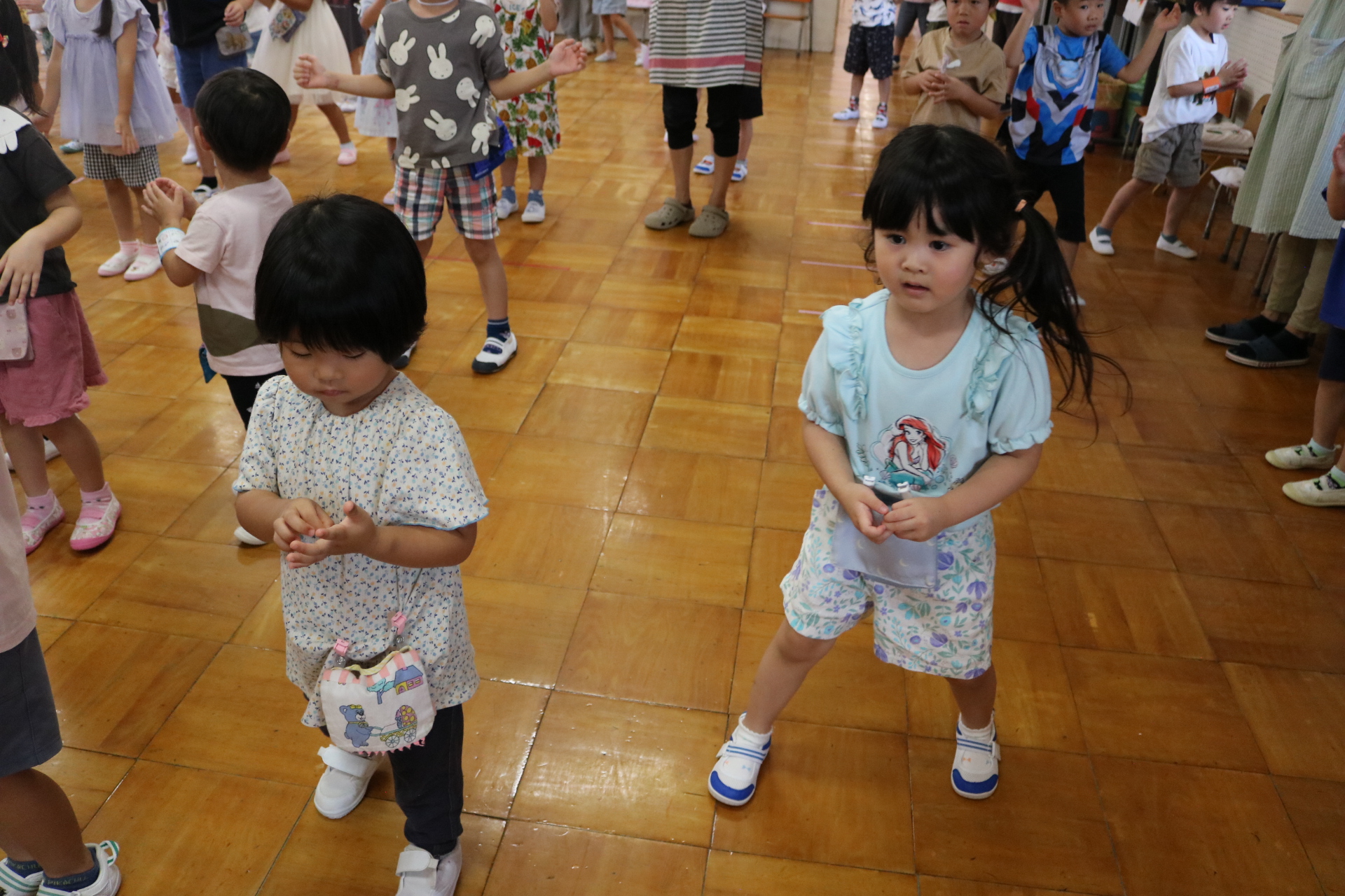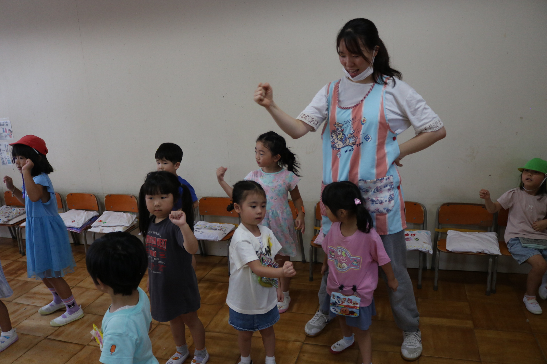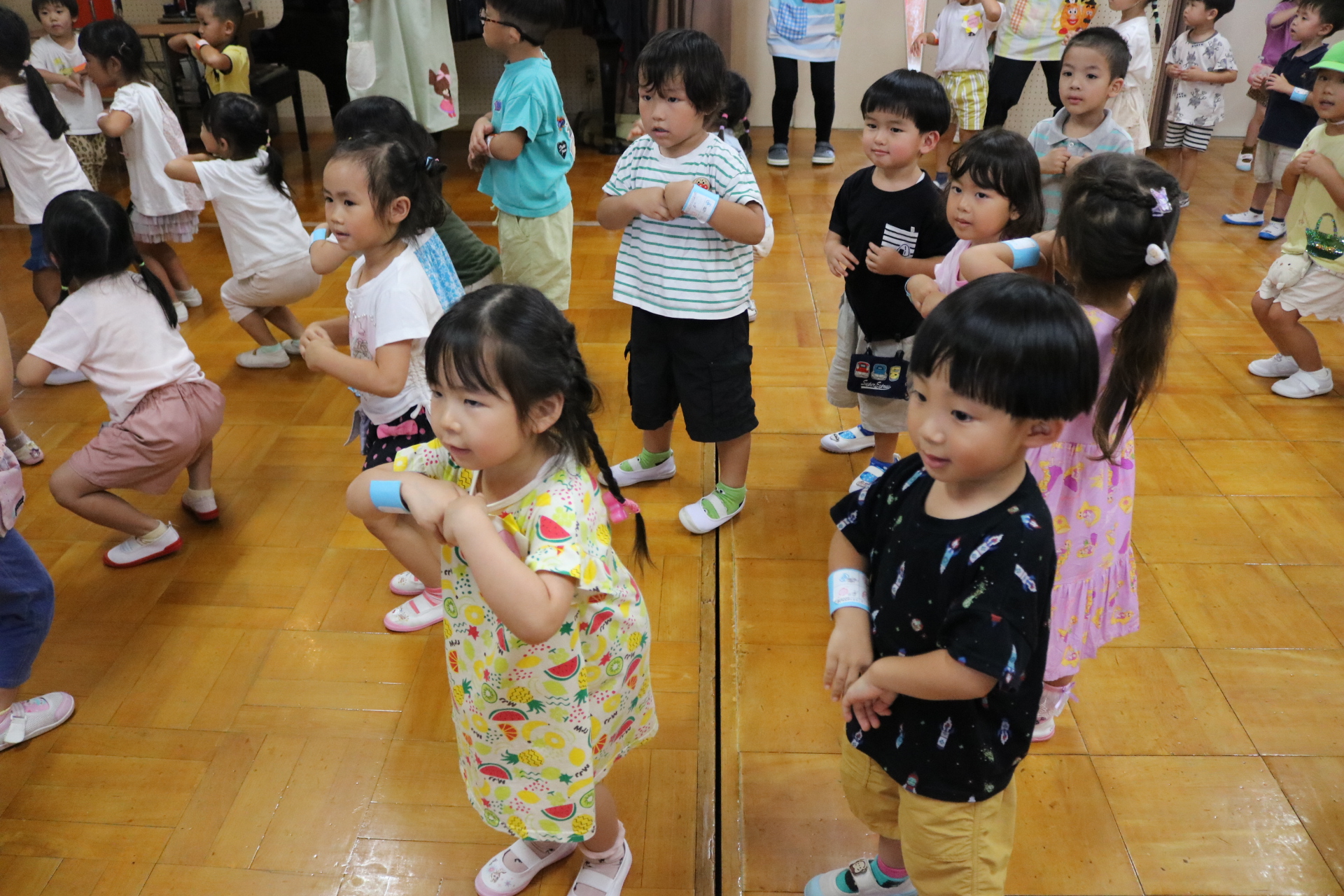 スティッチの曲に合わせて踊る子どもたち!キラキラの棒を上手に振って踊っています😊