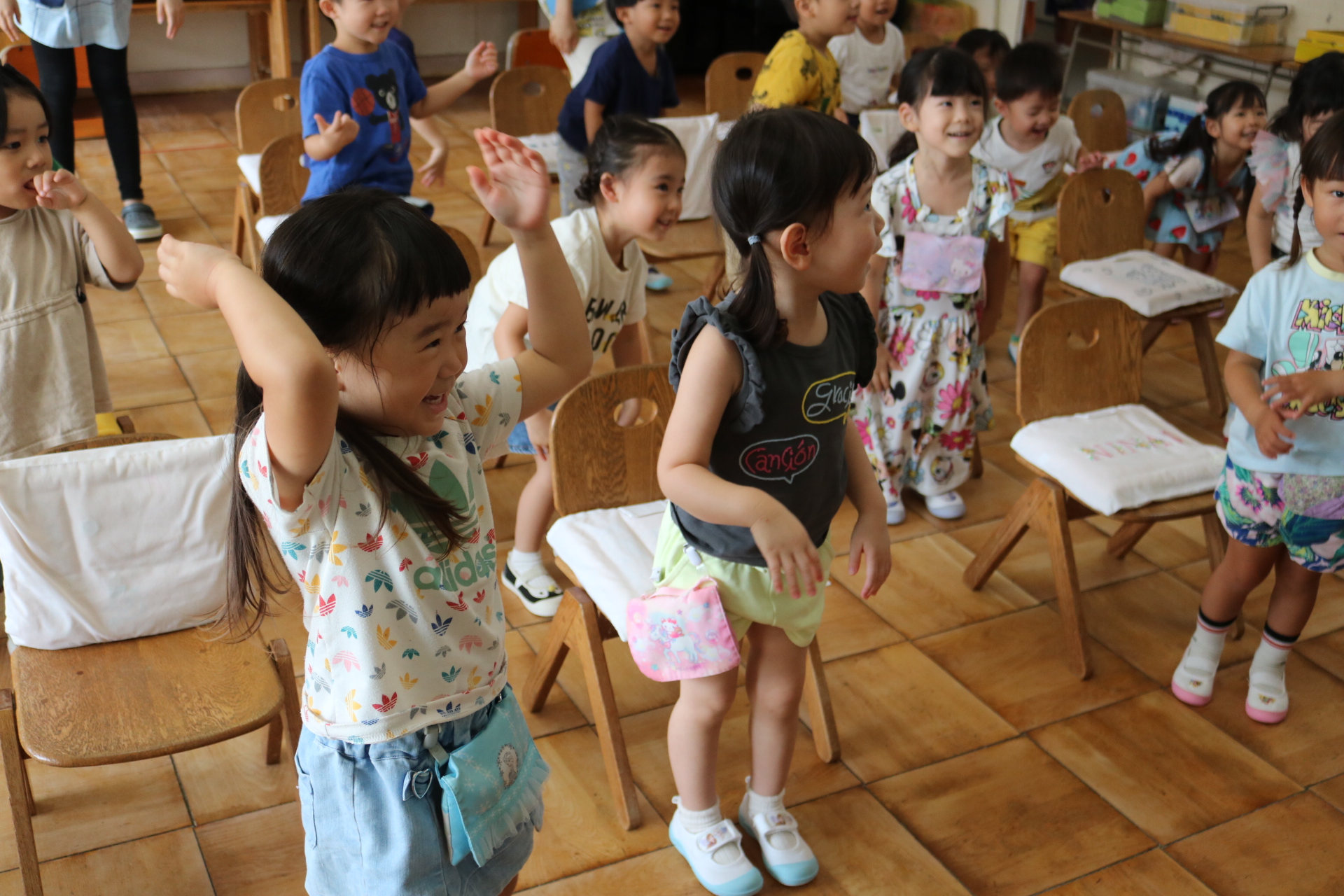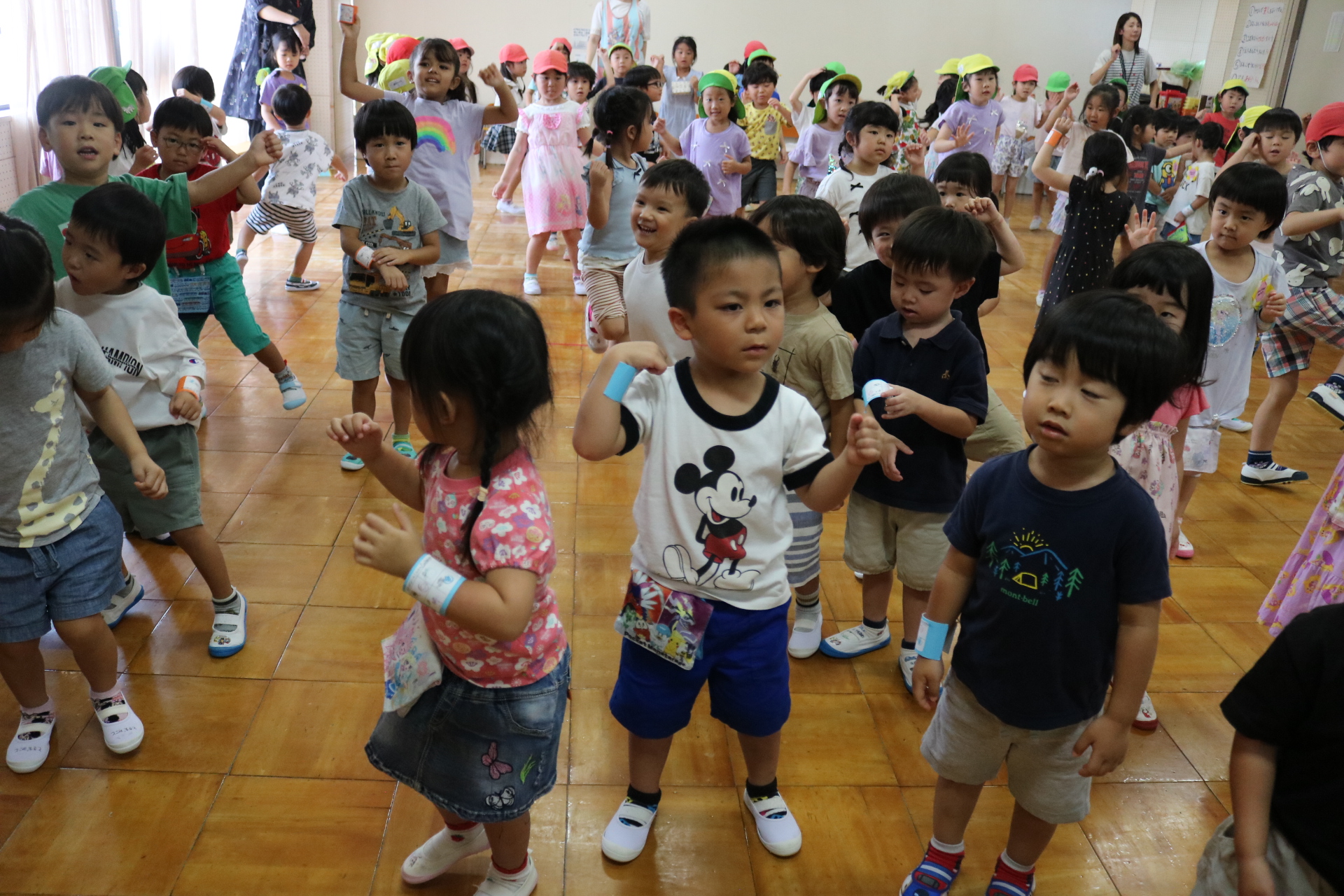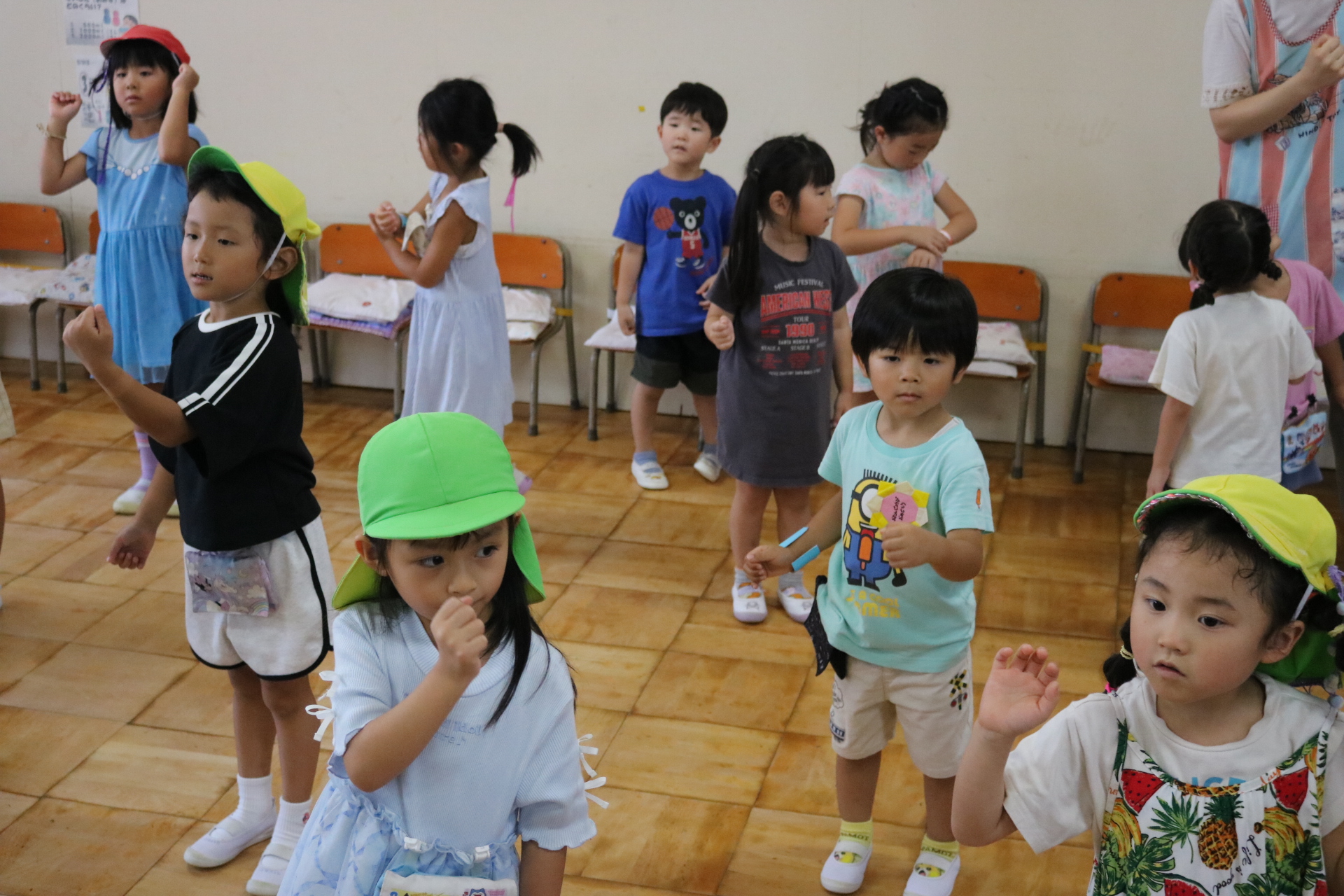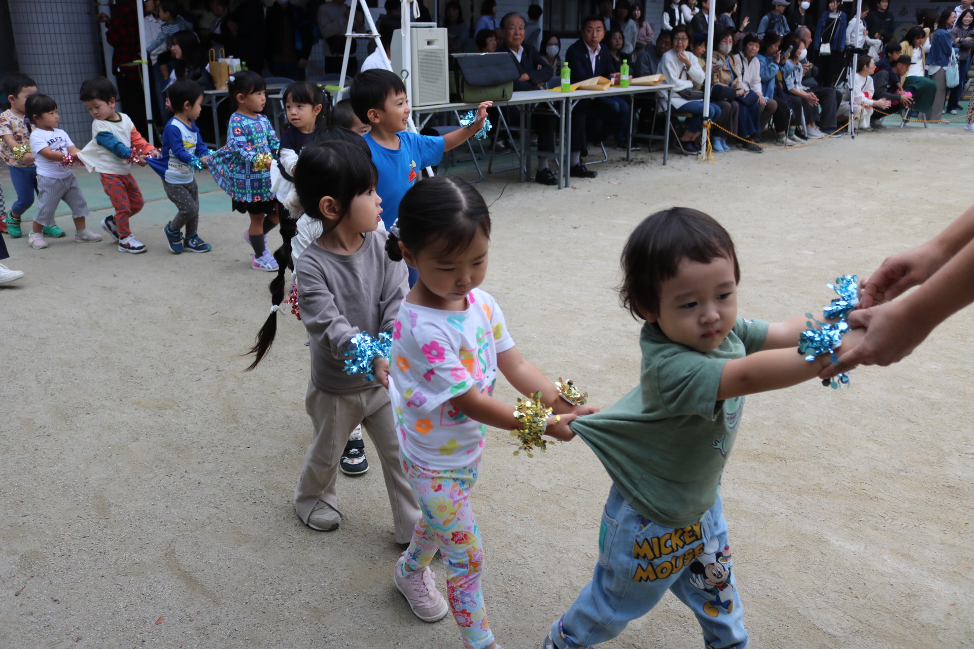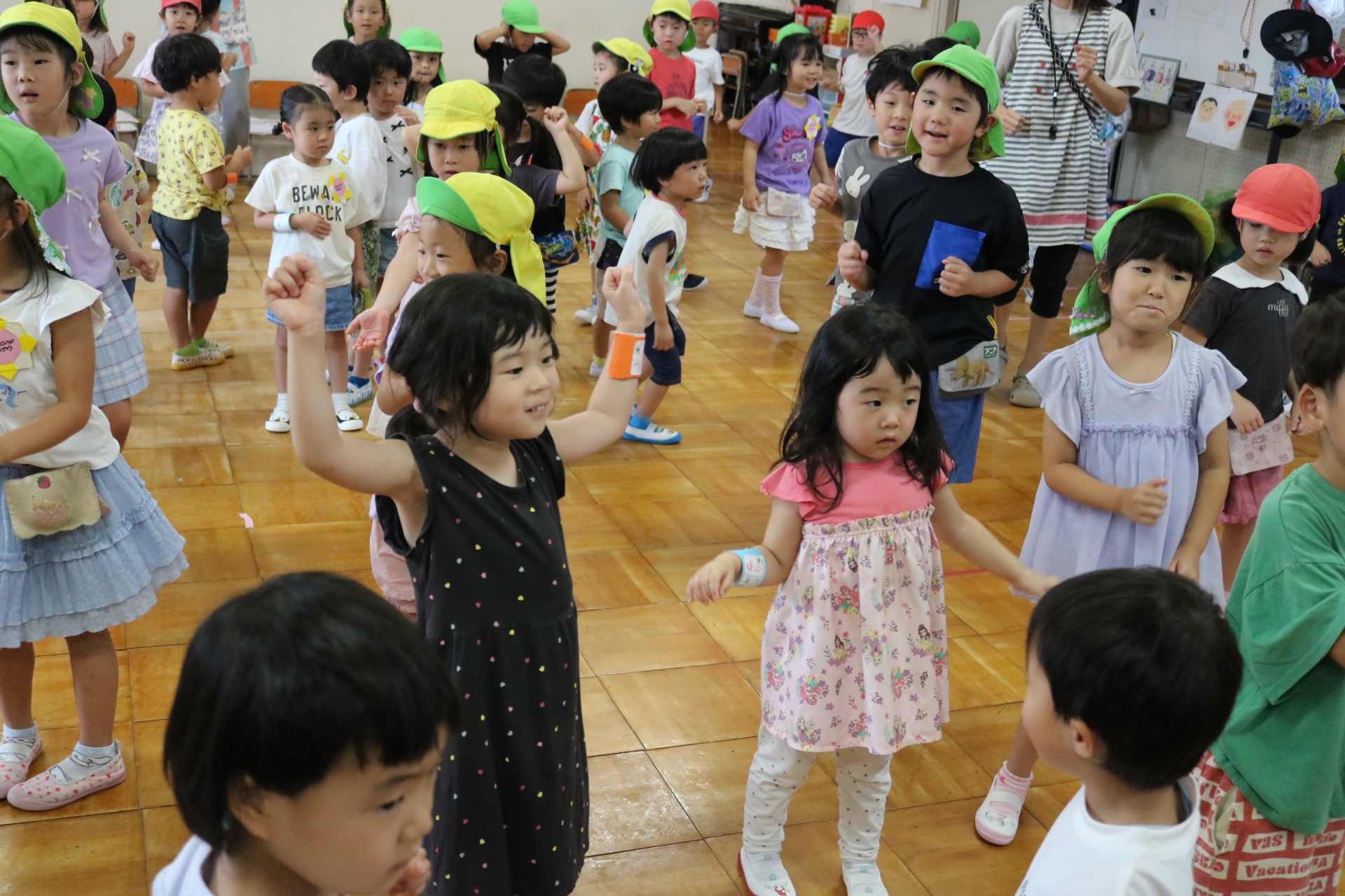 スティッチの曲に合わせて踊る子どもたち!キラキラの棒を上手に振って踊っています😊