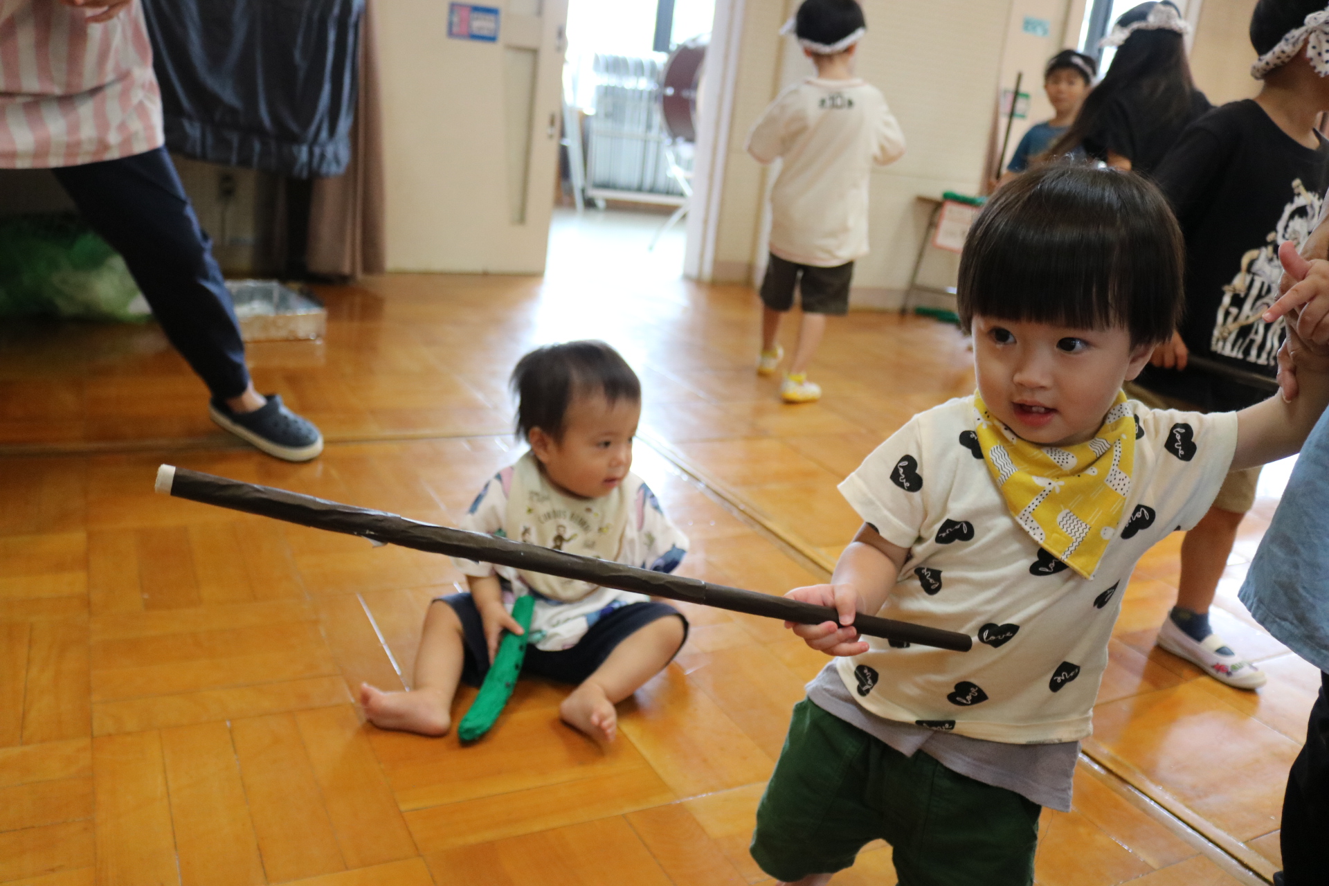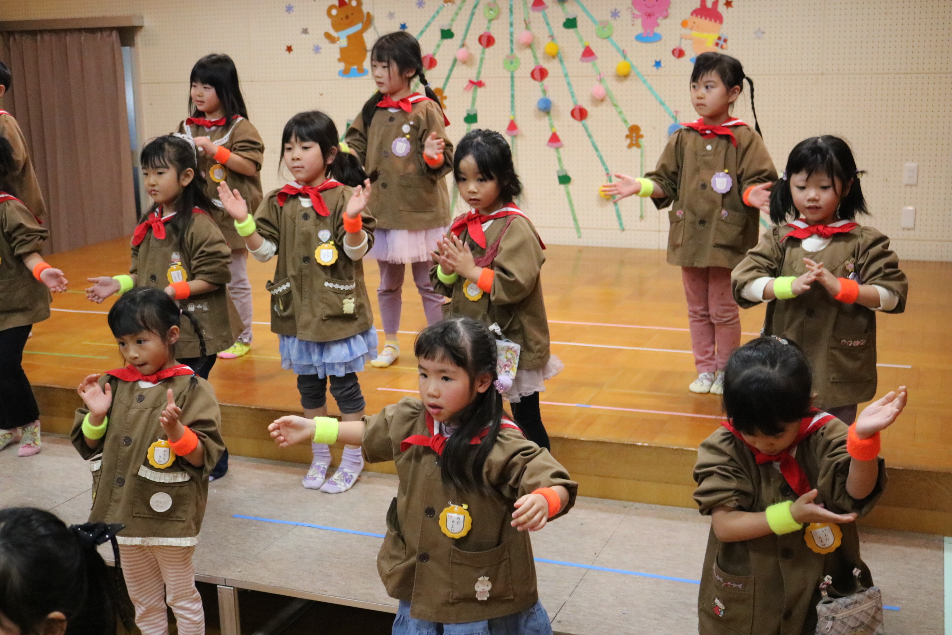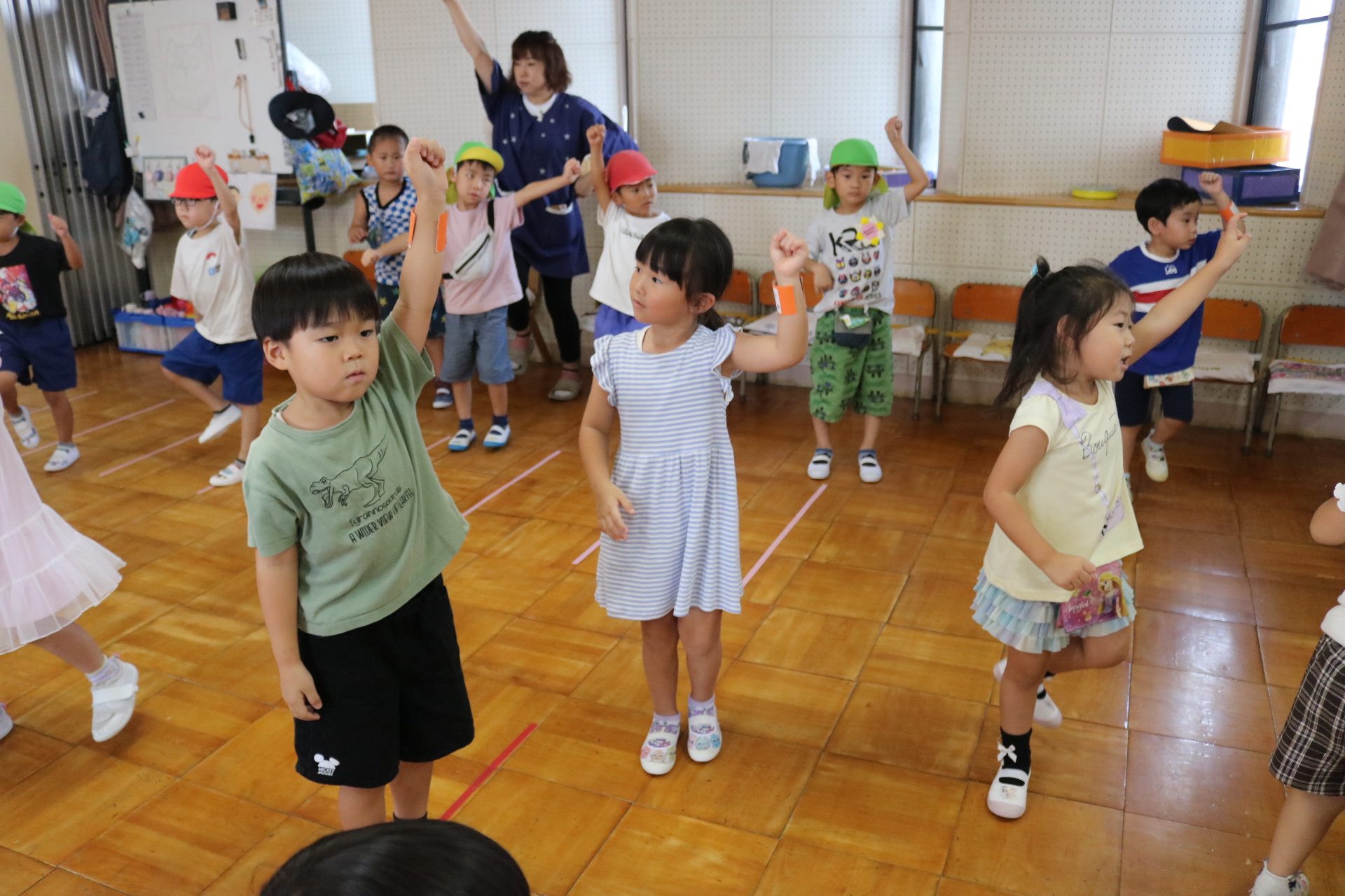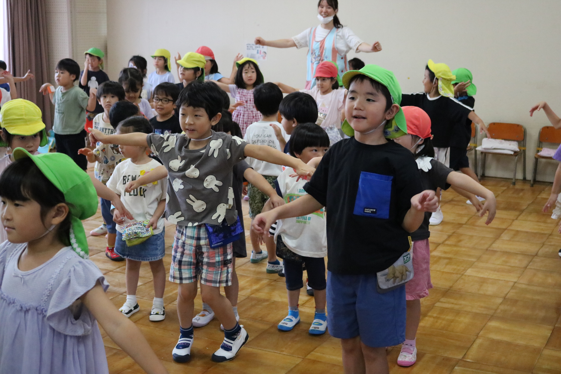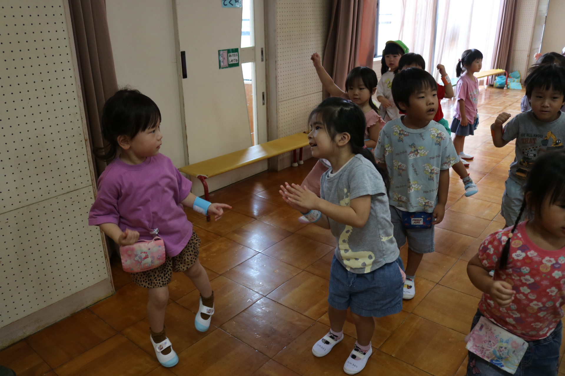 スティッチの曲に合わせて踊る子どもたち!キラキラの棒を上手に振って踊っています😊