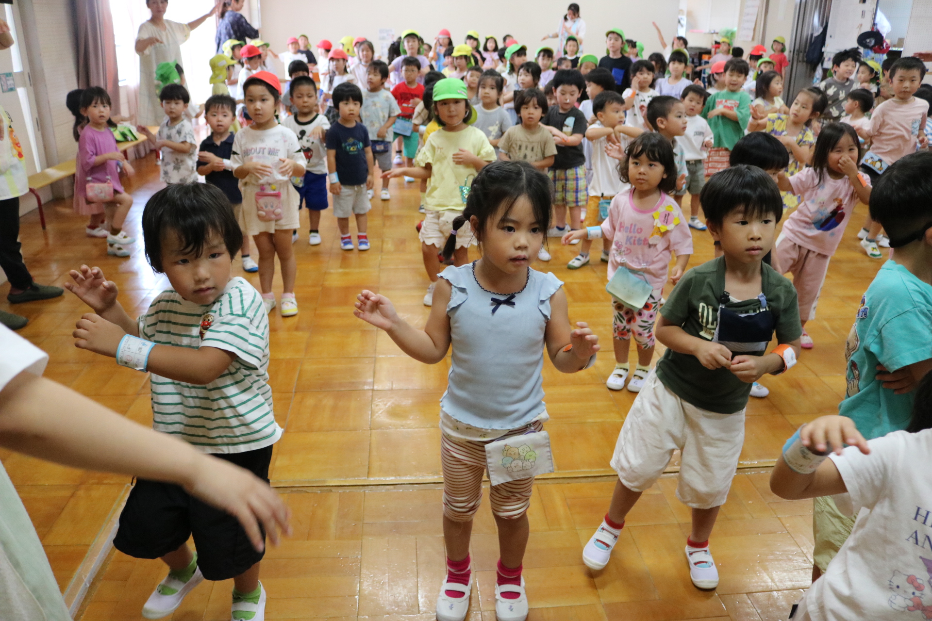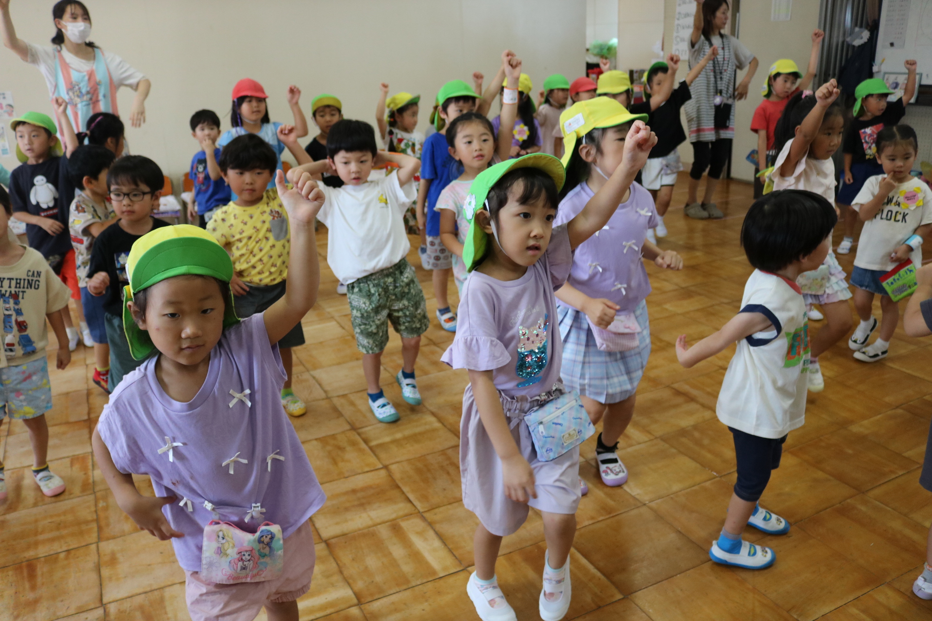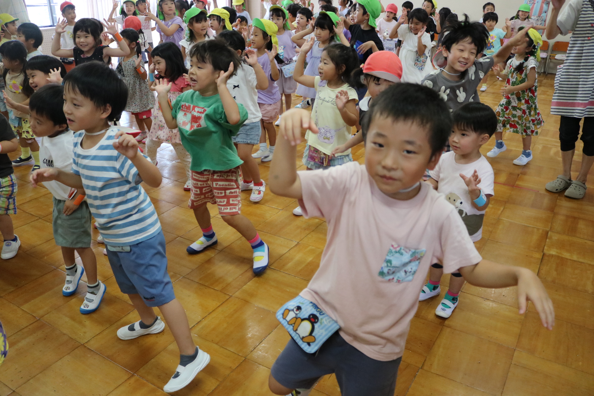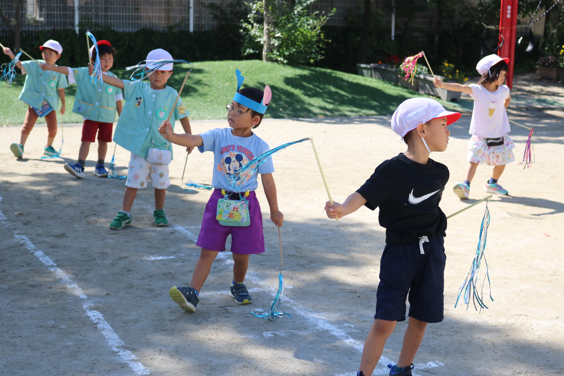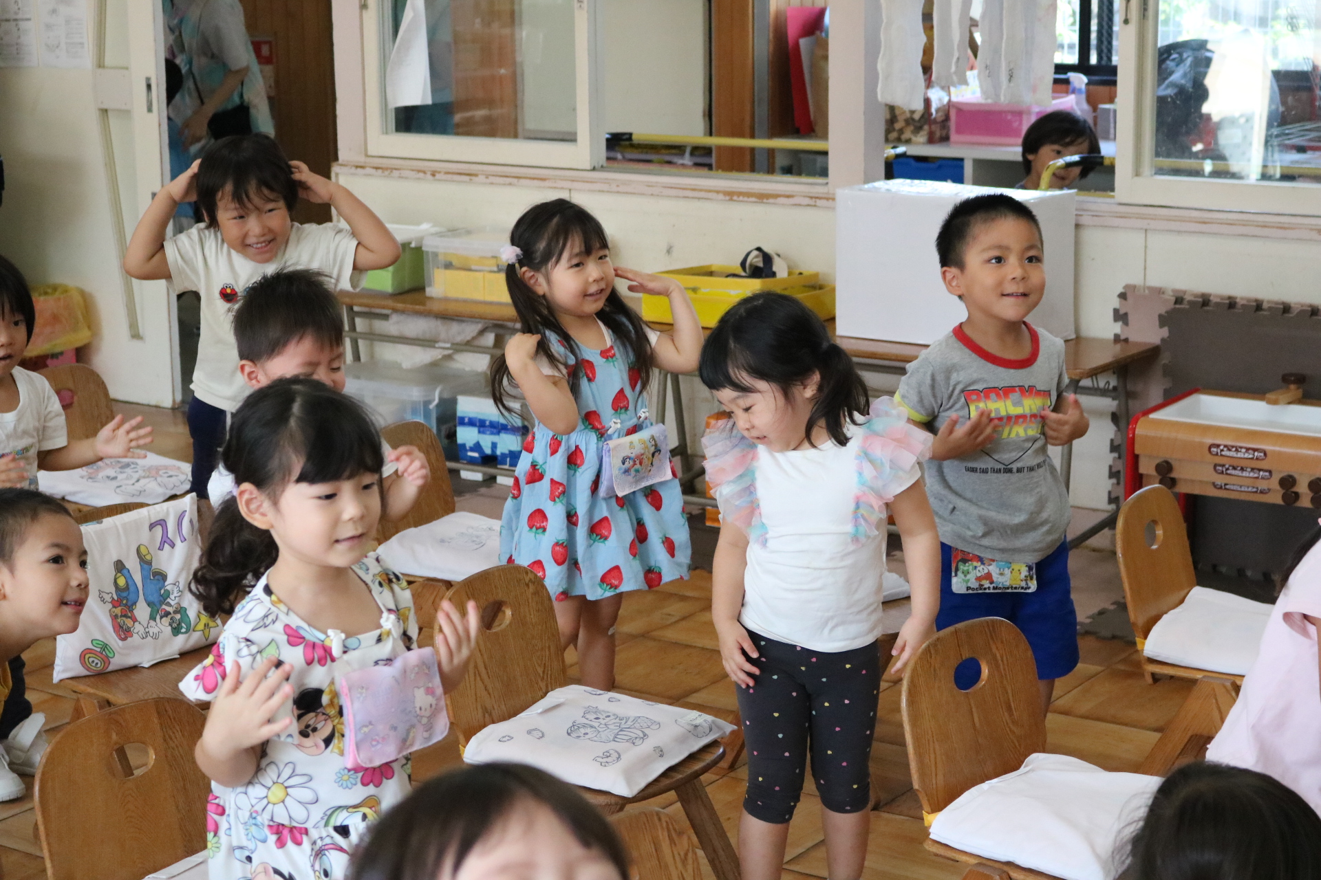 スティッチの曲に合わせて踊る子どもたち!キラキラの棒を上手に振って踊っています😊