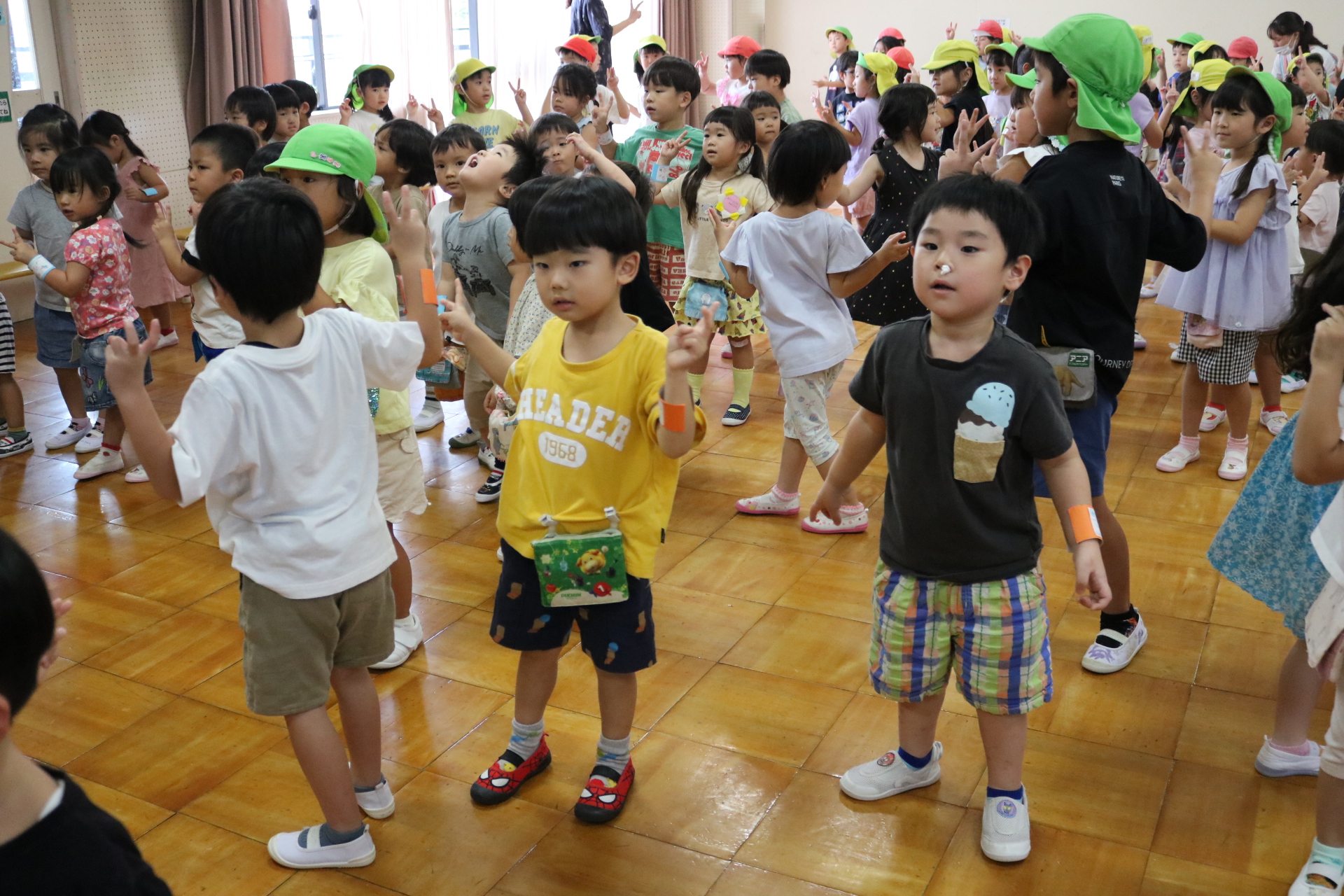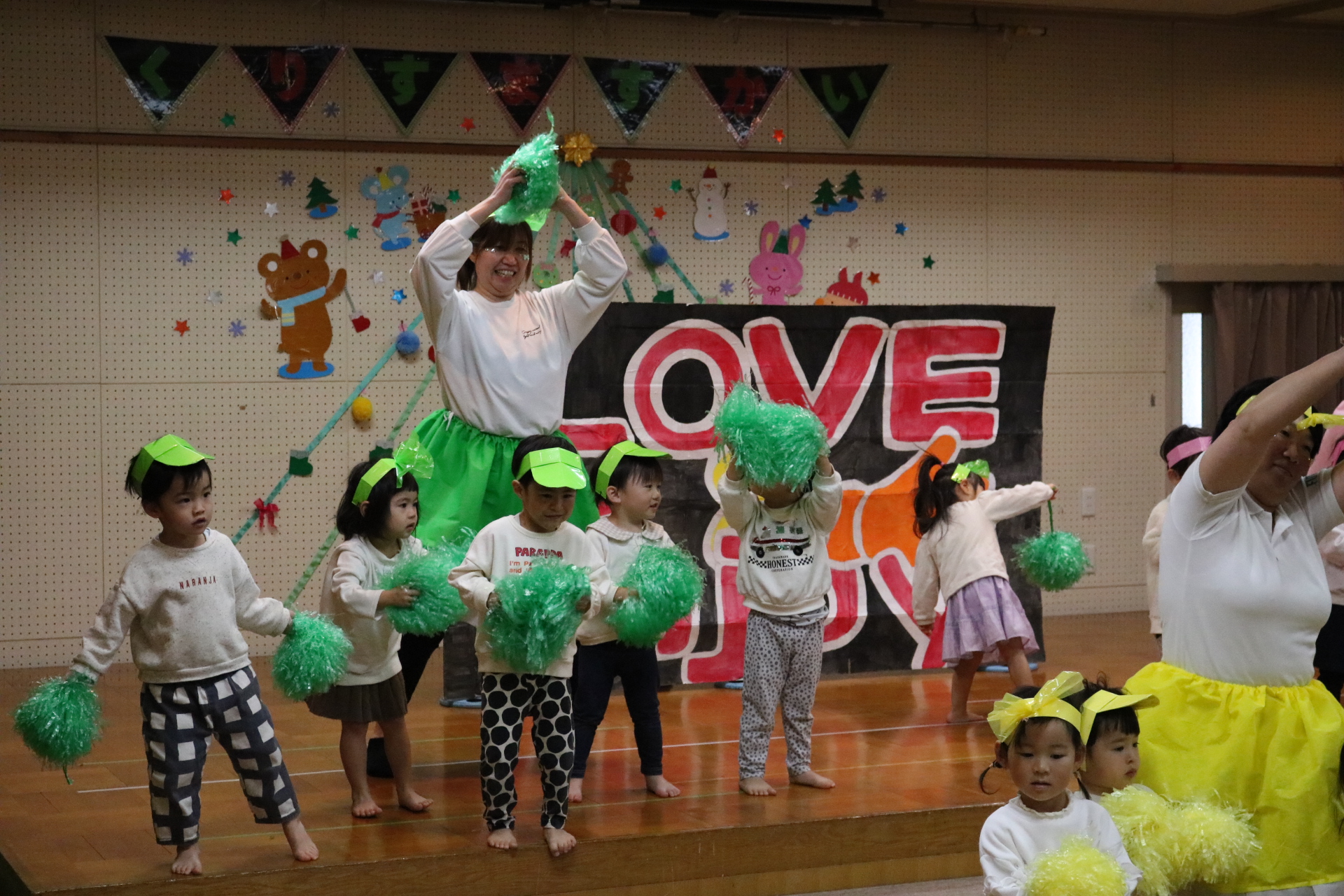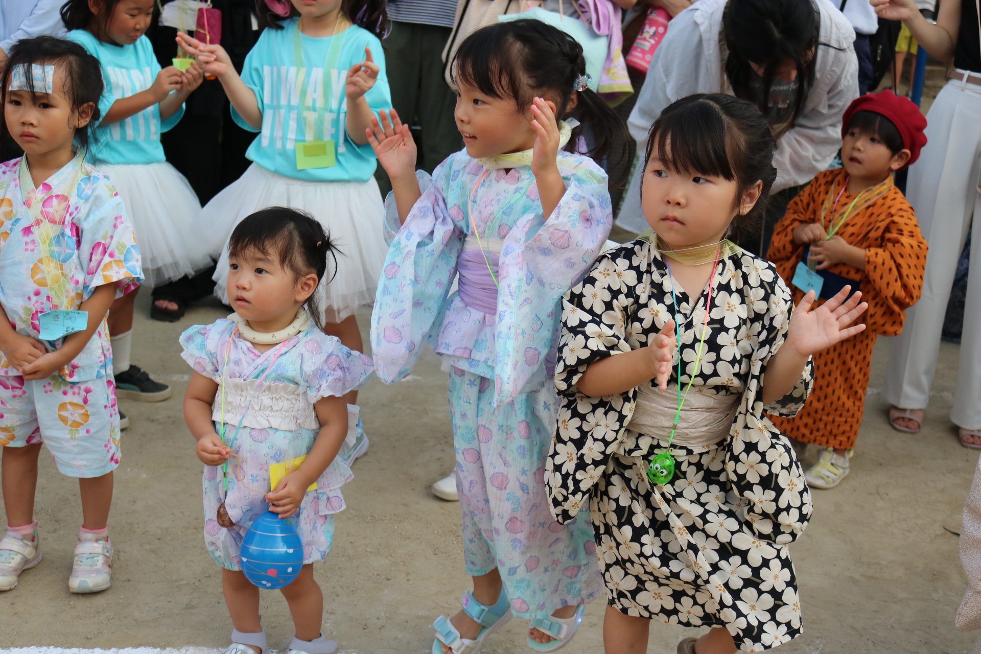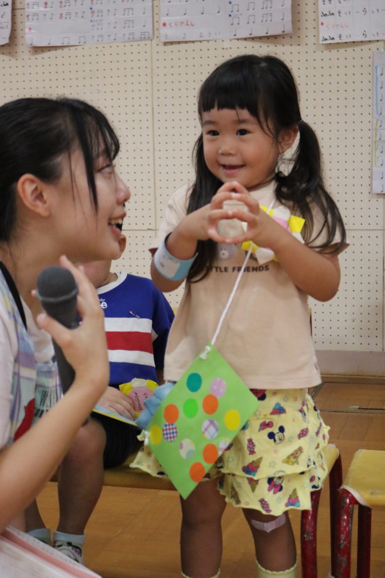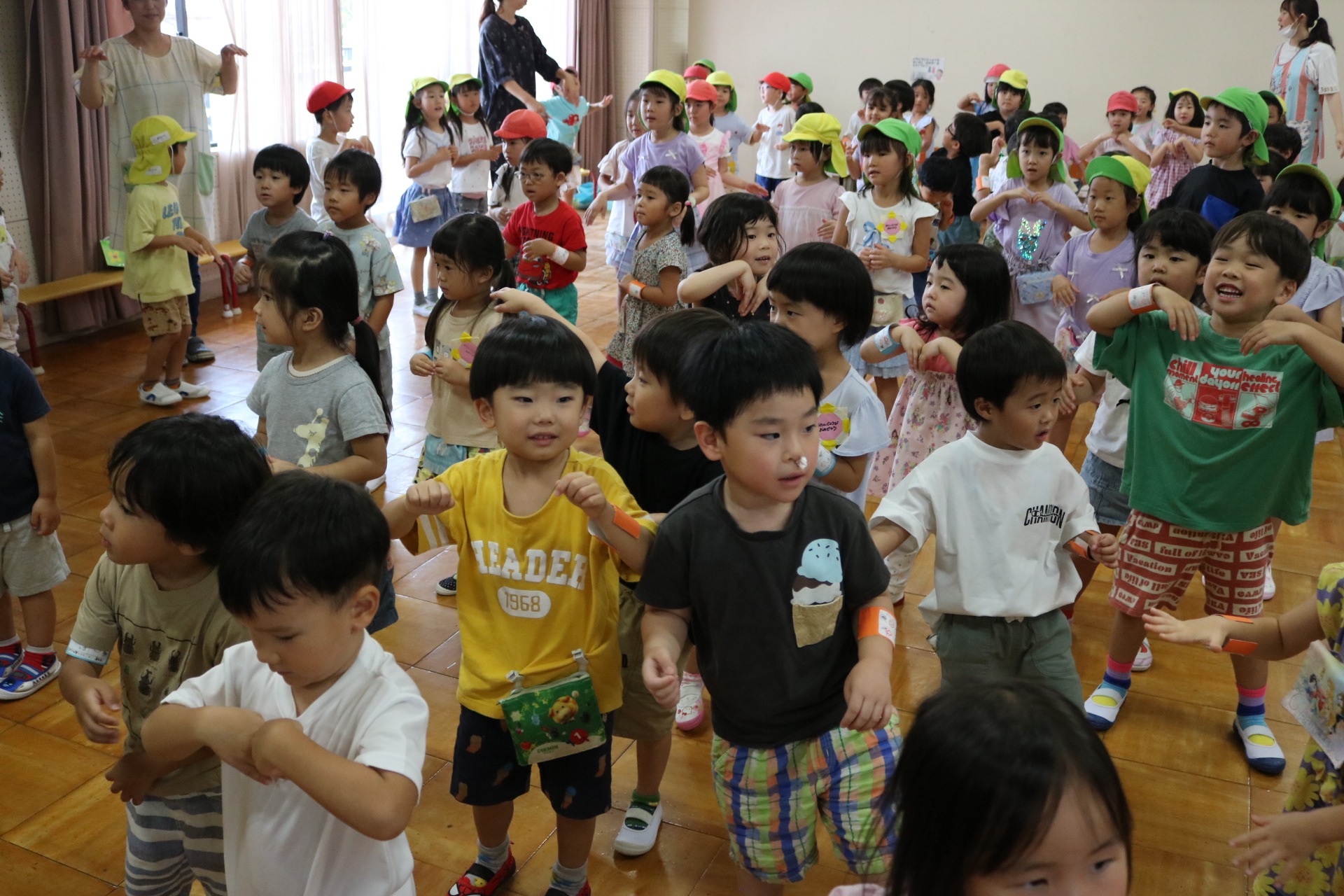 スティッチの曲に合わせて踊る子どもたち!キラキラの棒を上手に振って踊っています😊