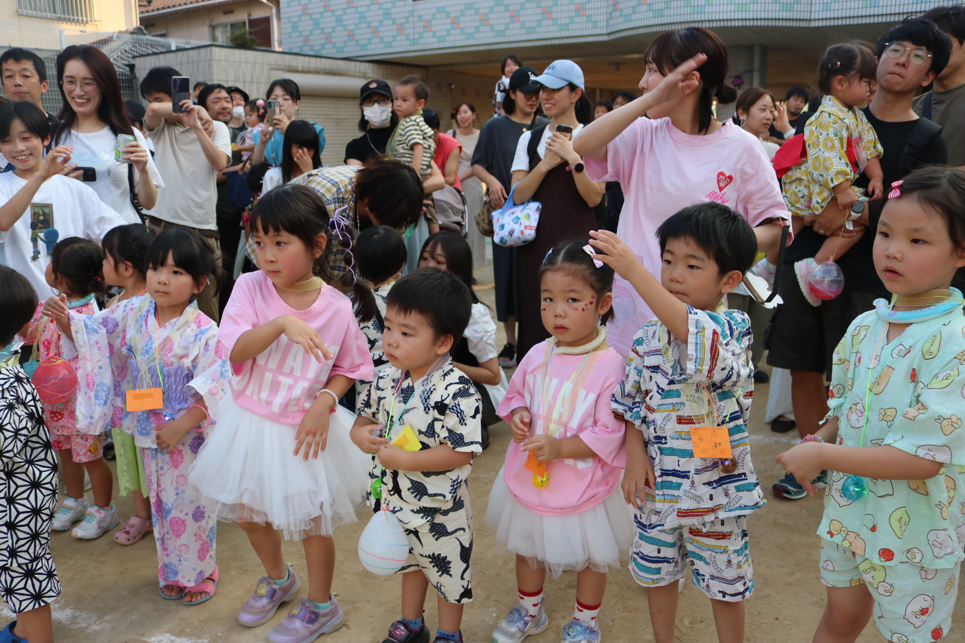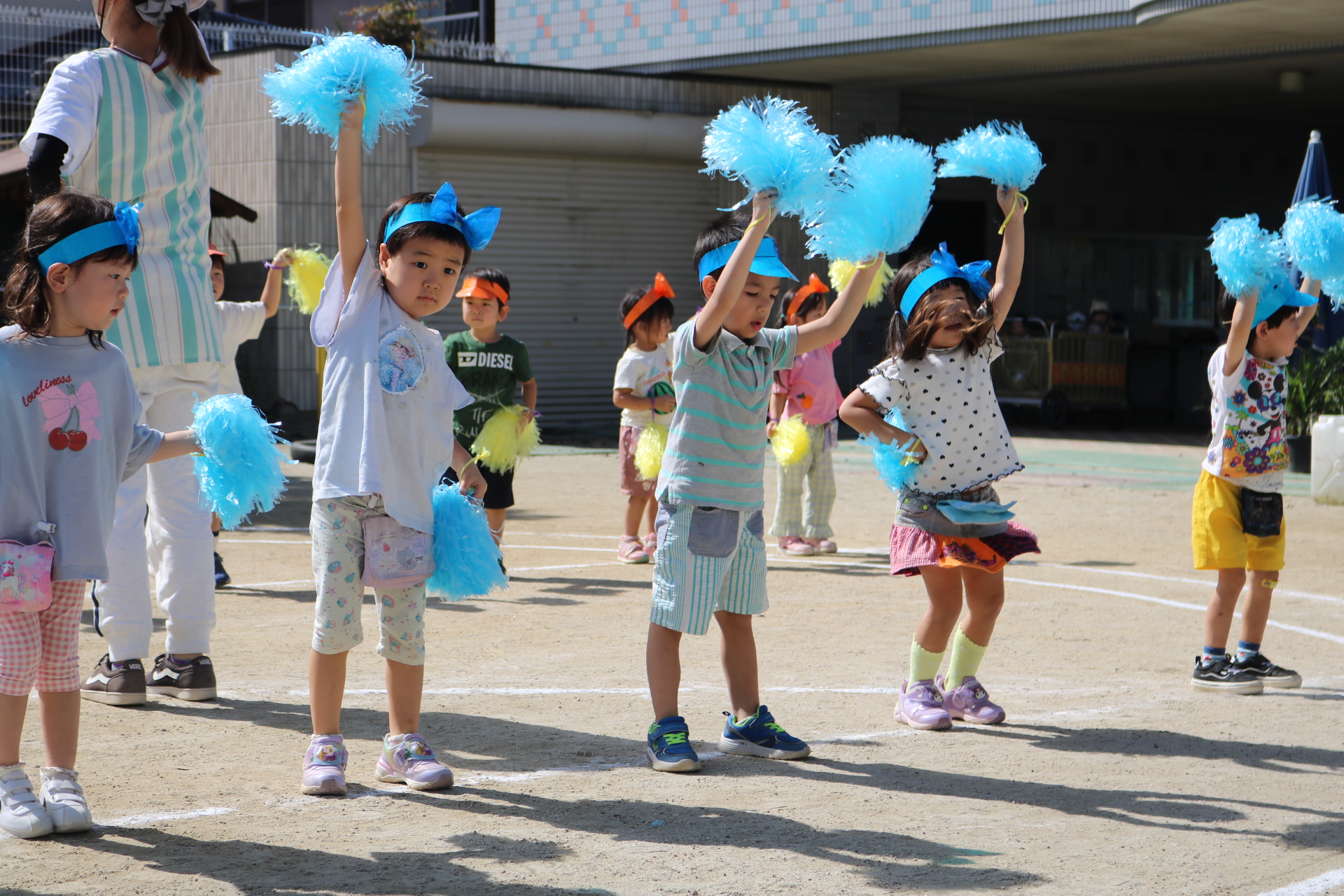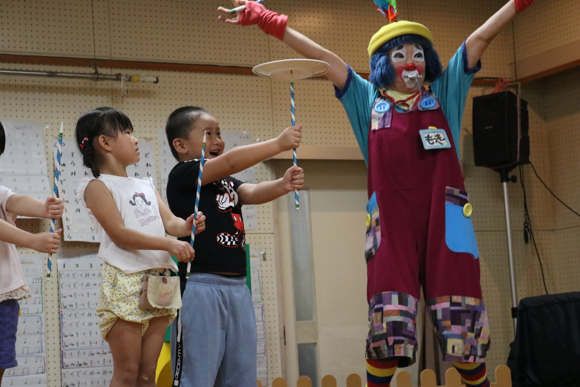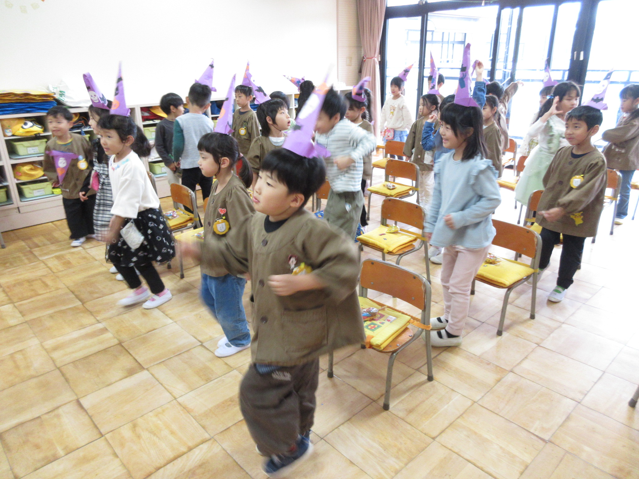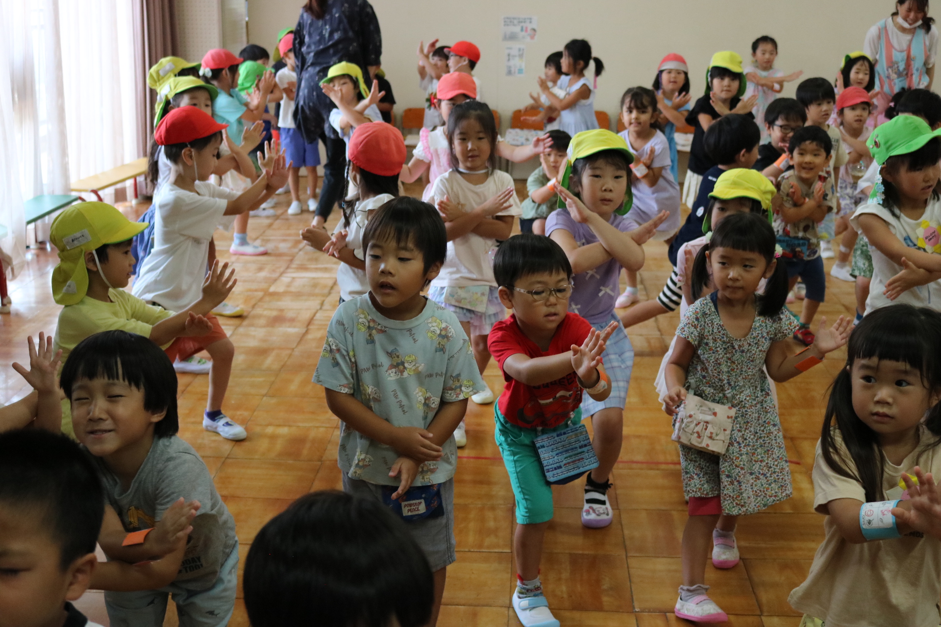 スティッチの曲に合わせて踊る子どもたち!キラキラの棒を上手に振って踊っています😊