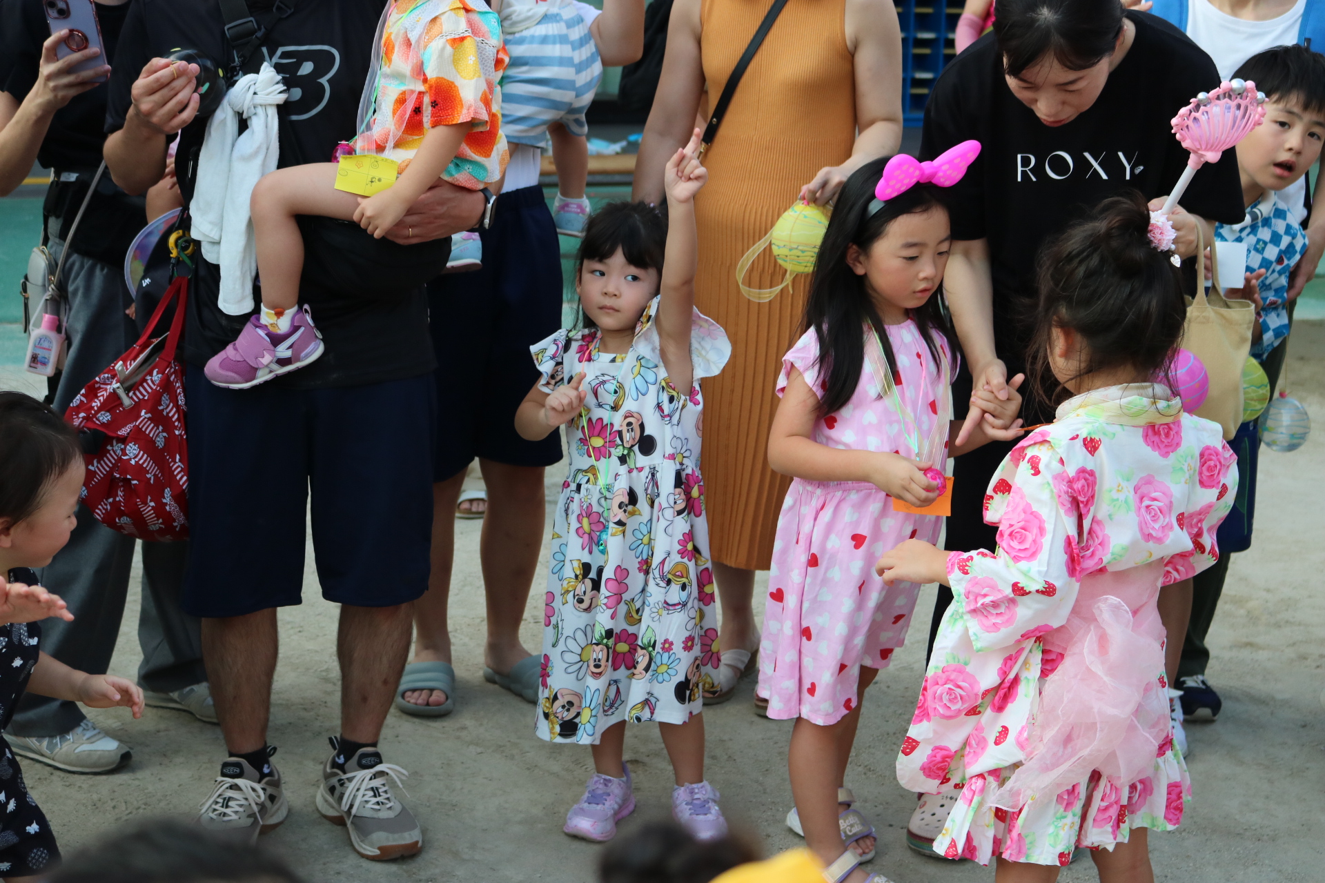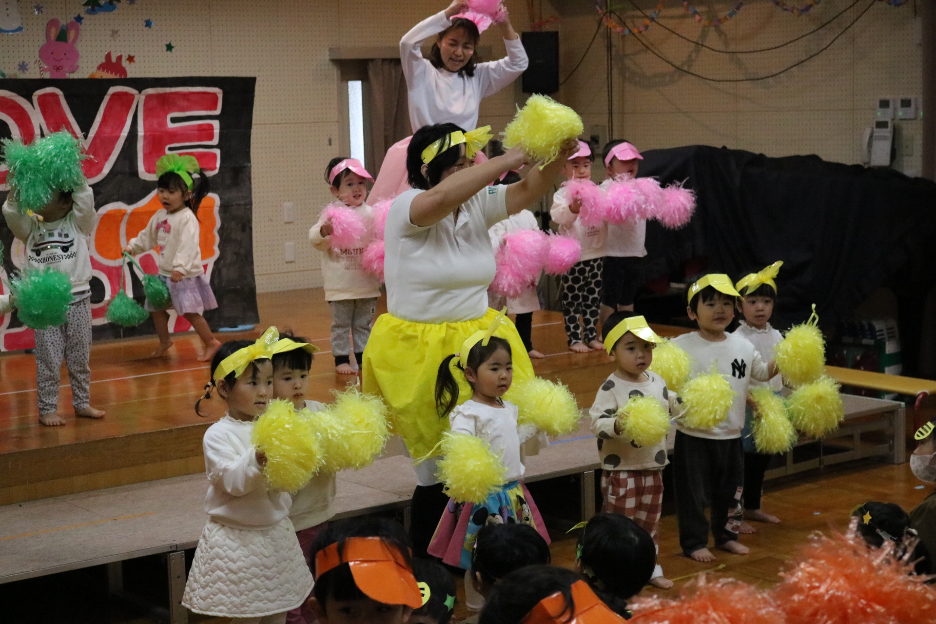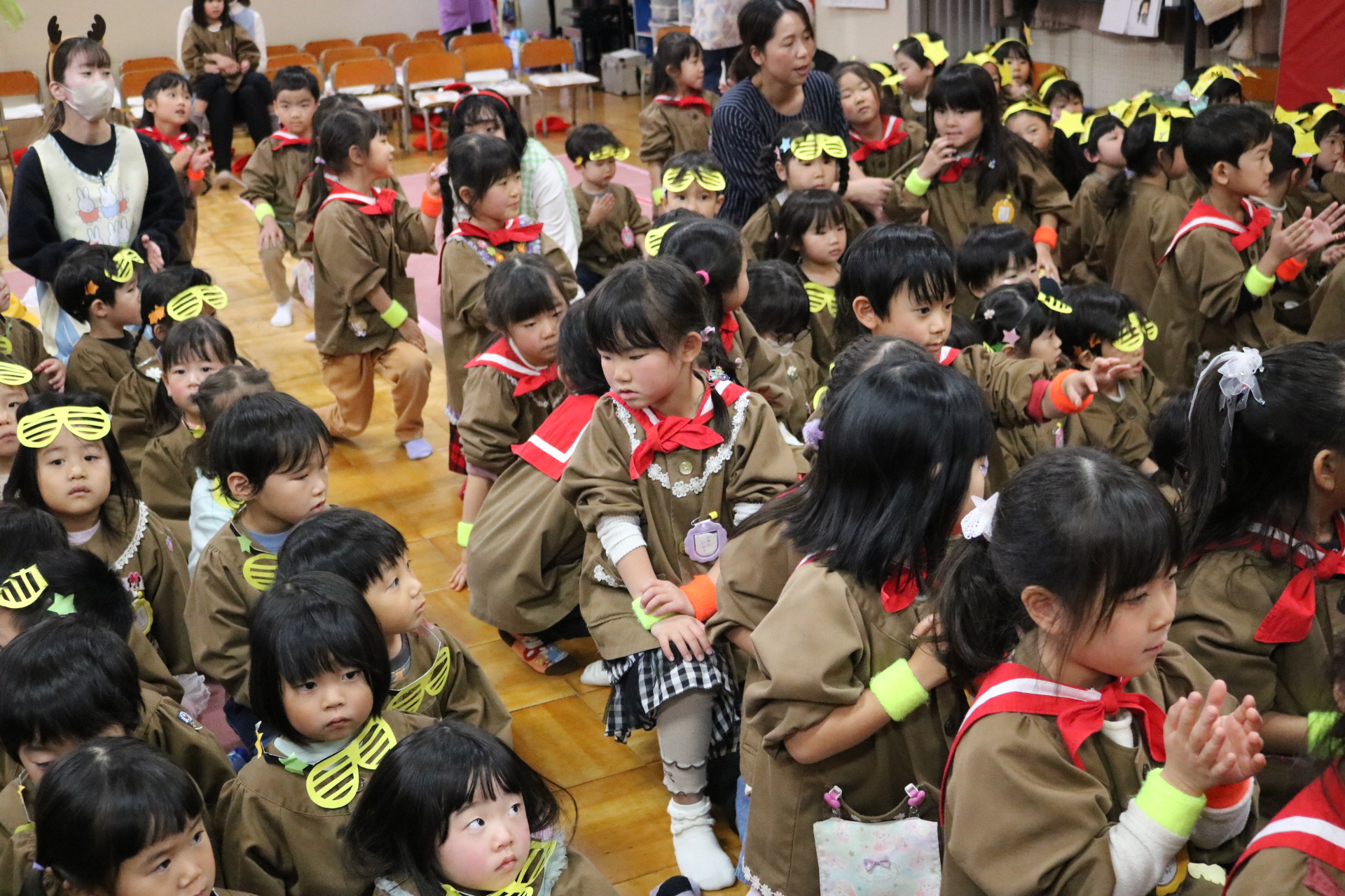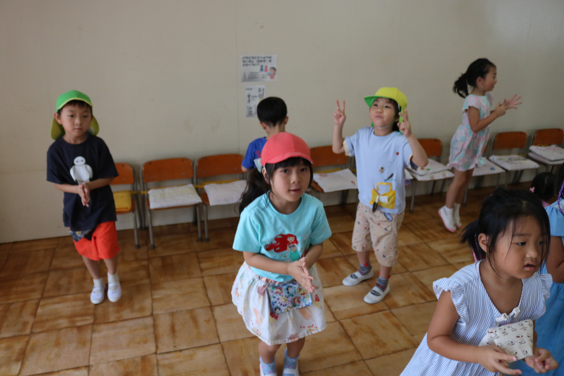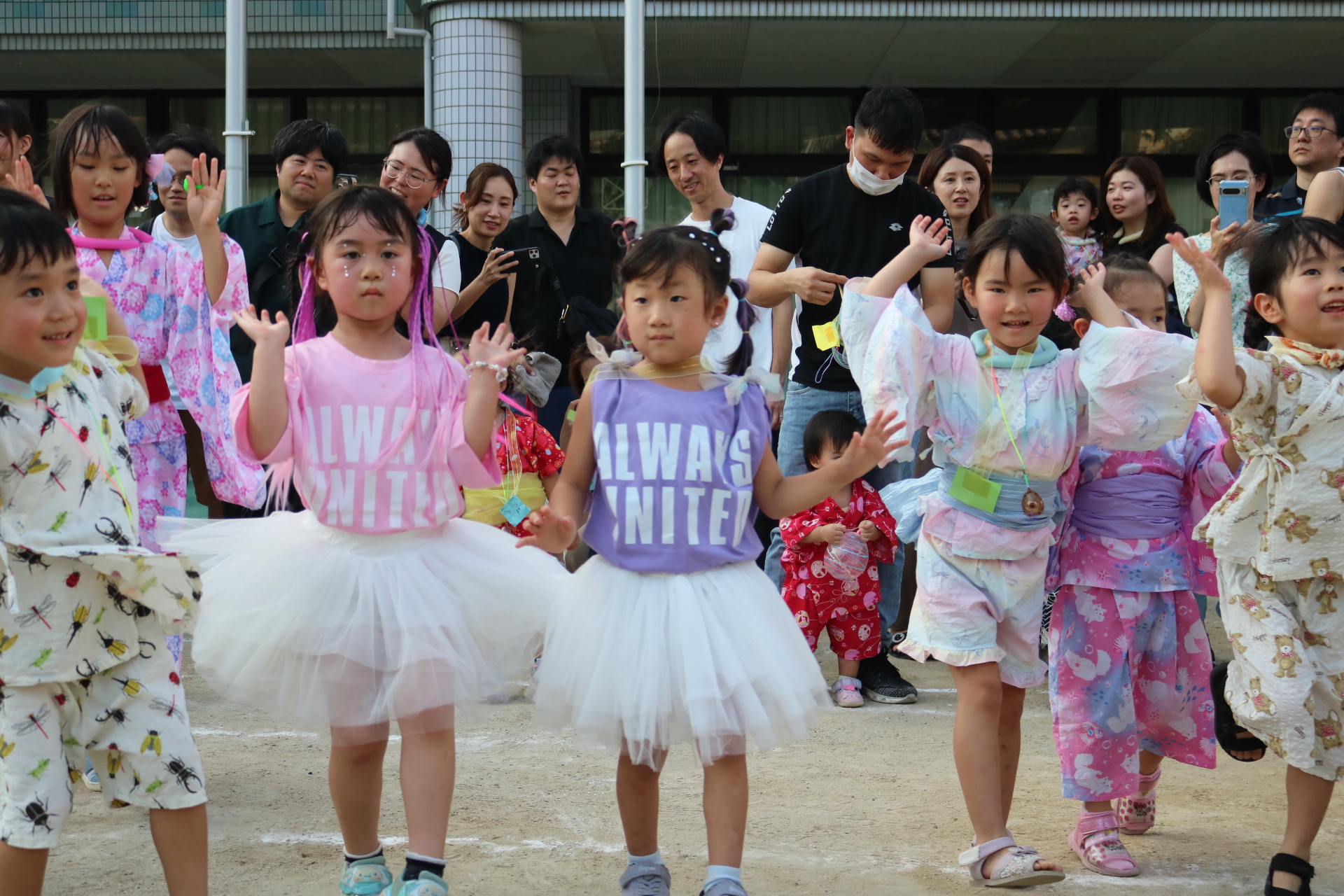 スティッチの曲に合わせて踊る子どもたち!キラキラの棒を上手に振って踊っています😊