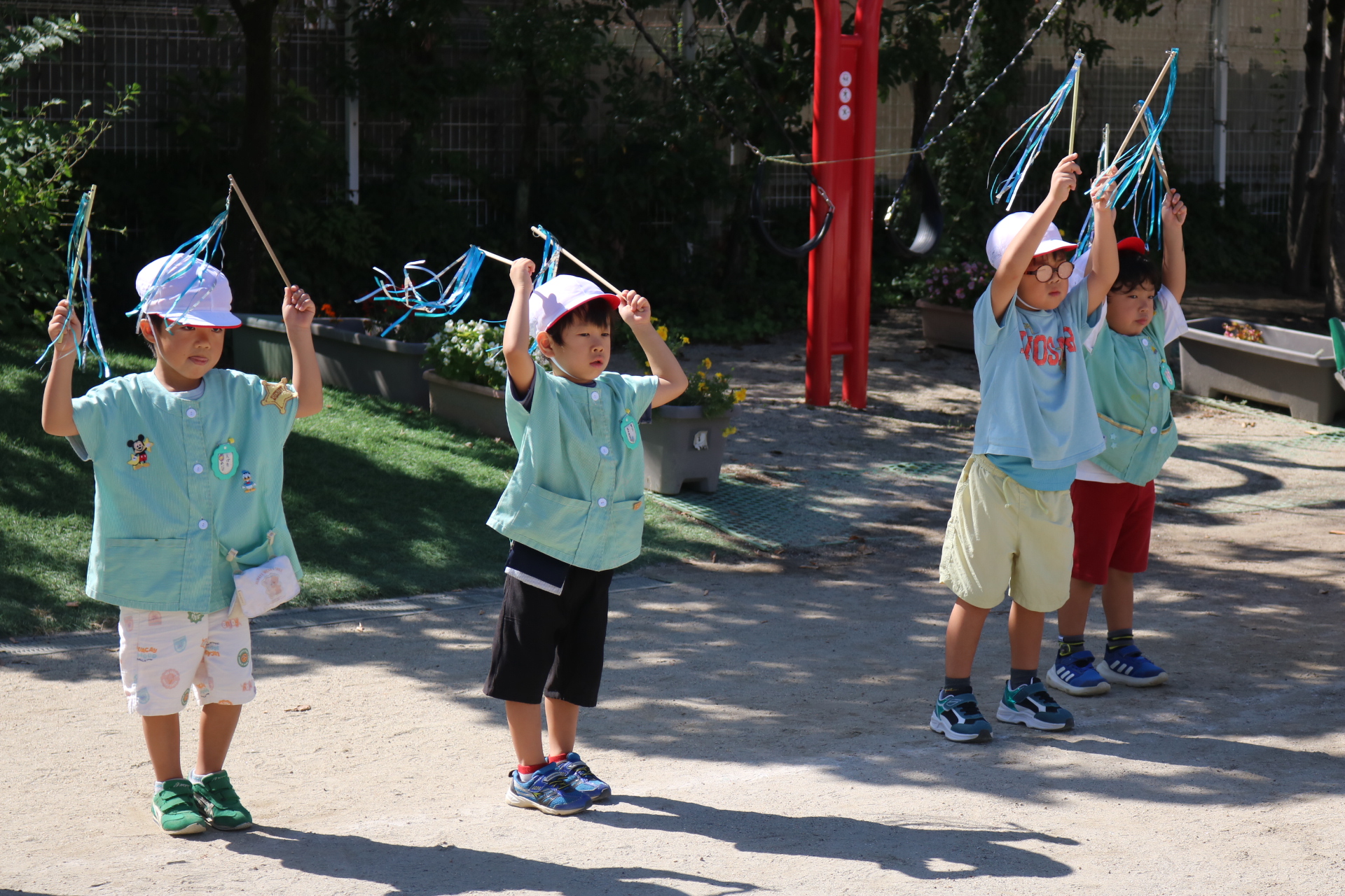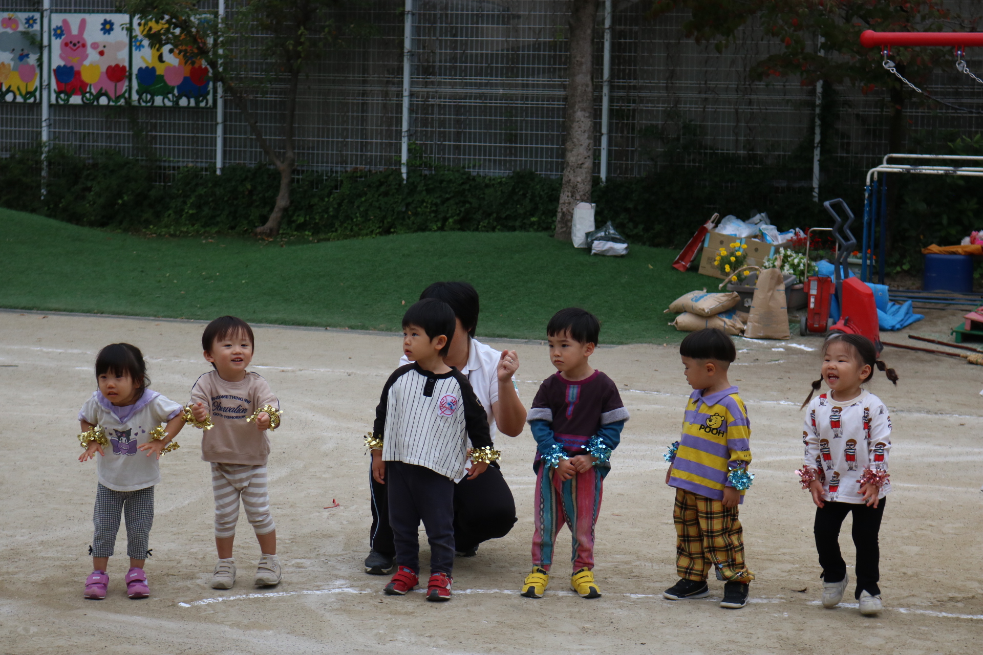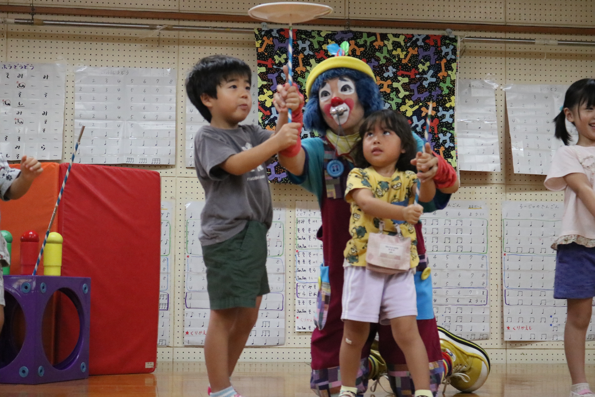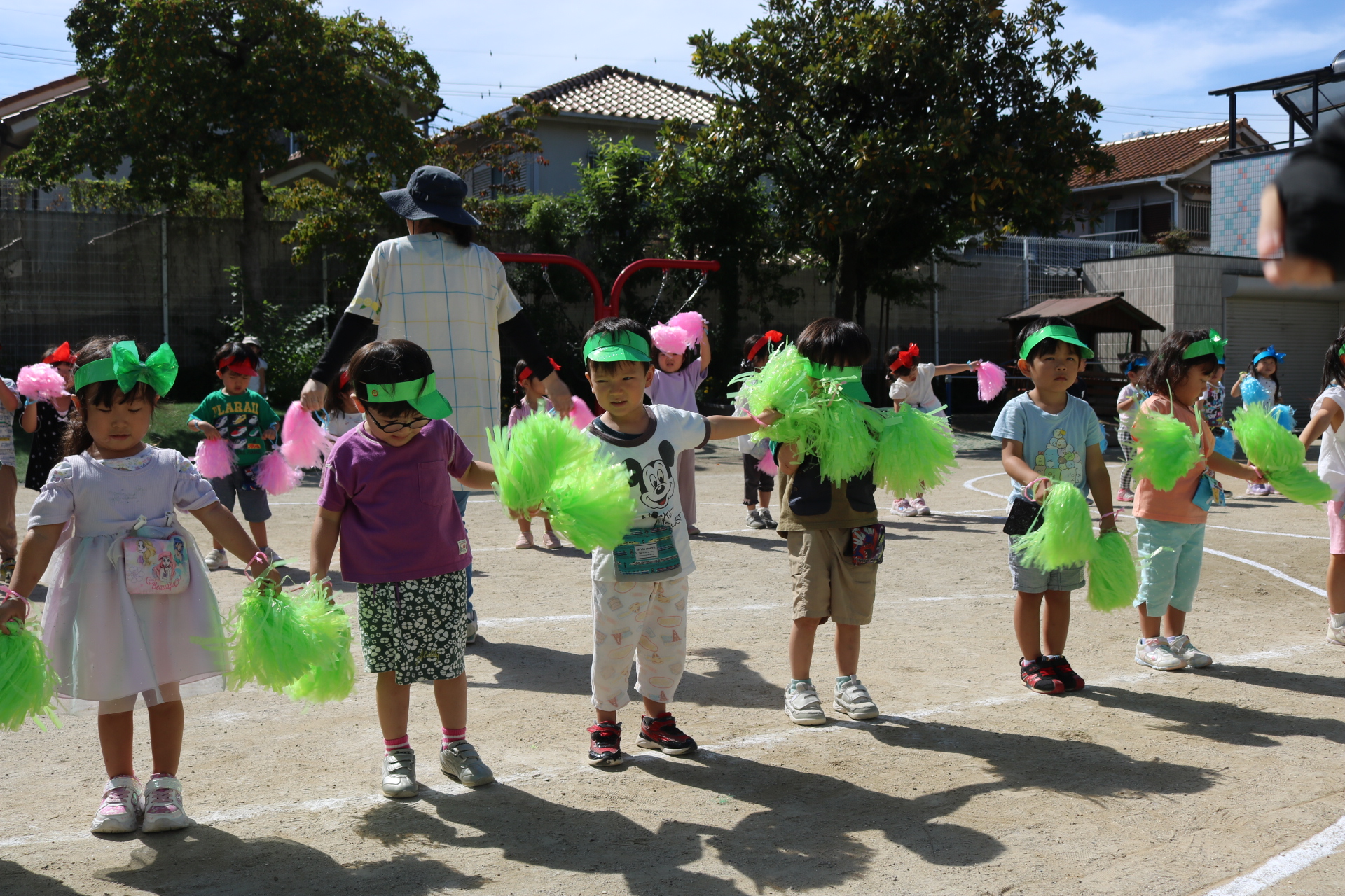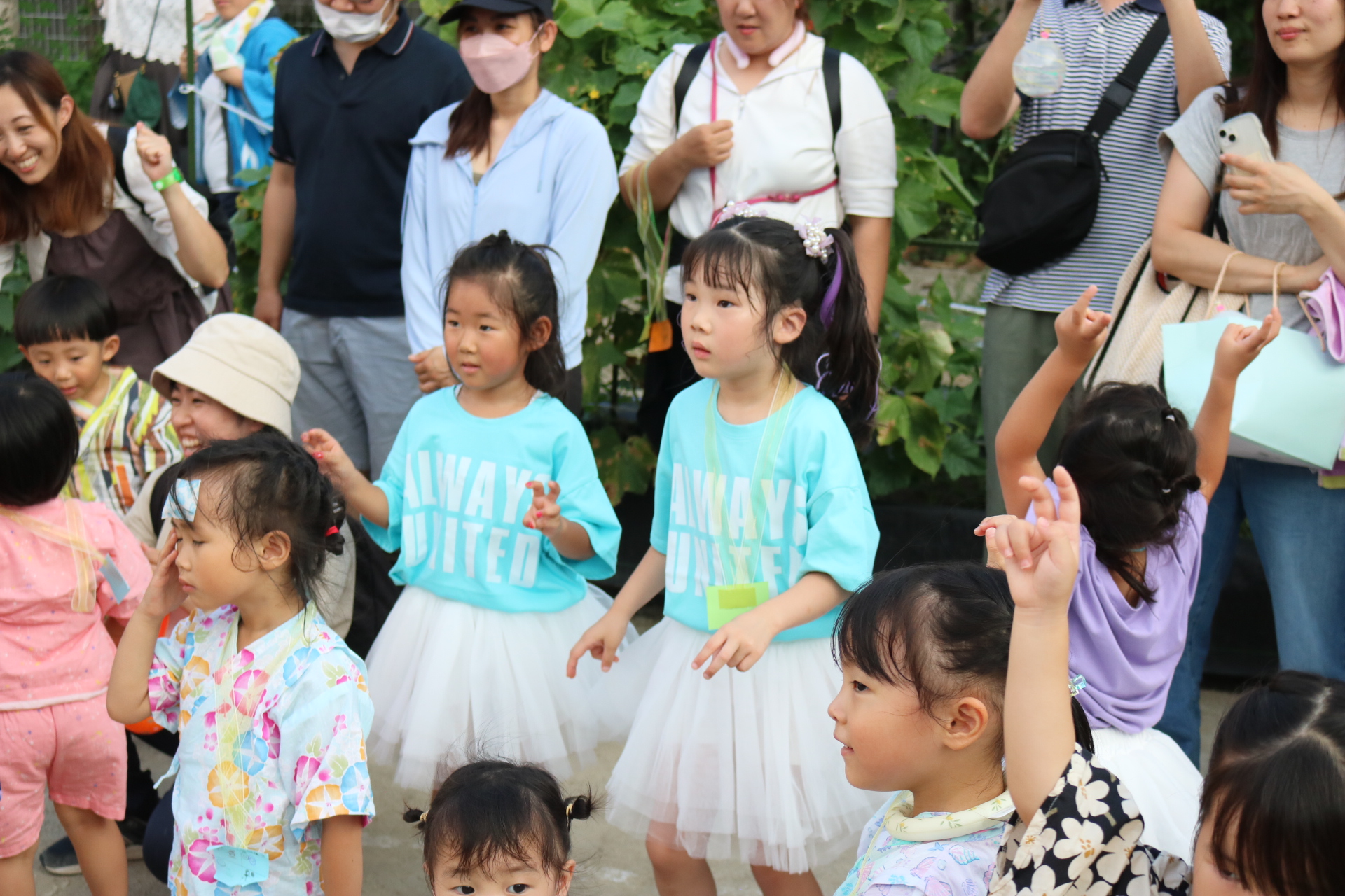 スティッチの曲に合わせて踊る子どもたち!キラキラの棒を上手に振って踊っています😊