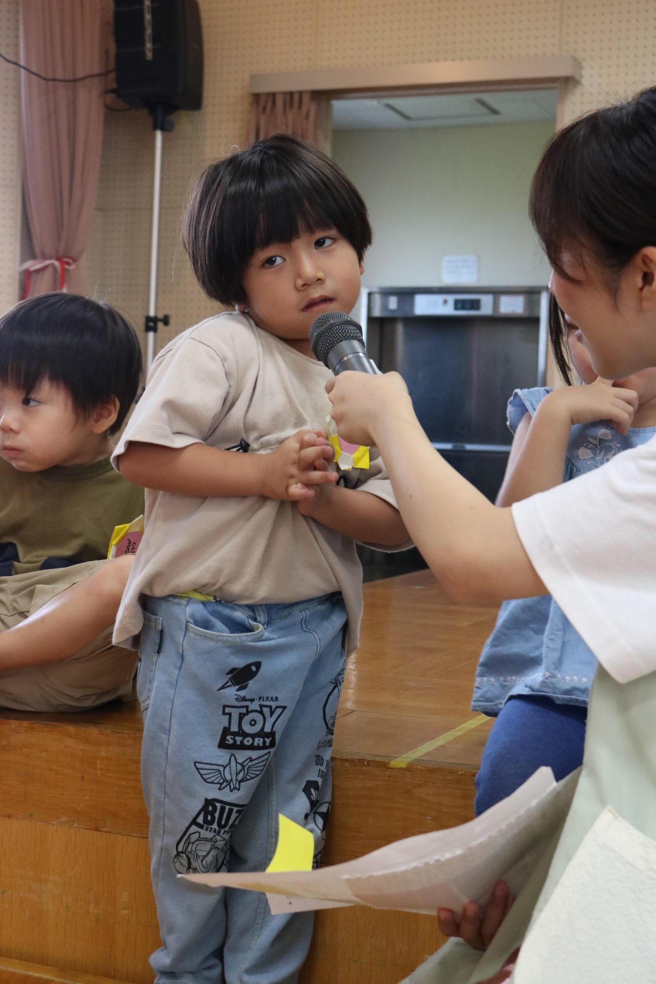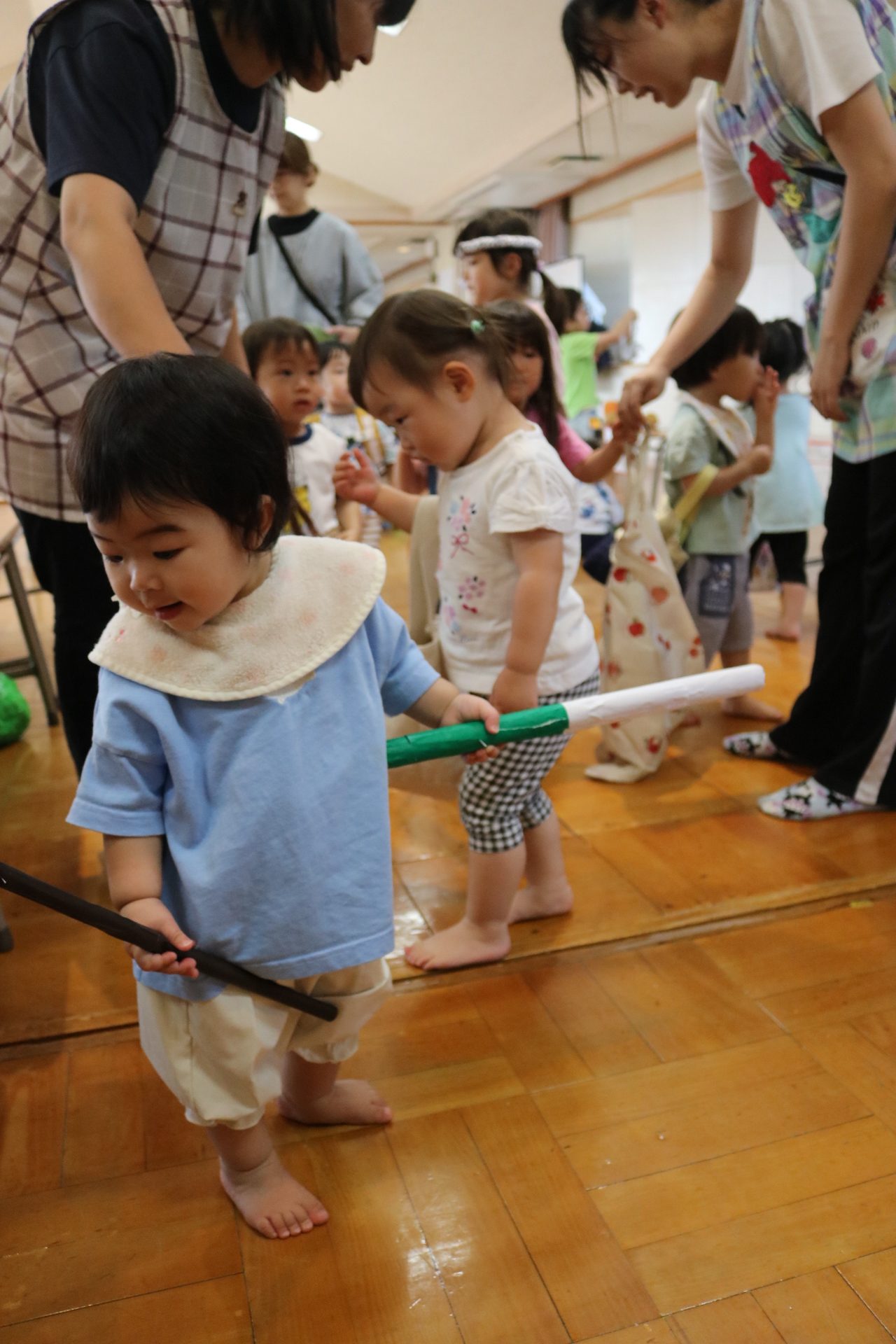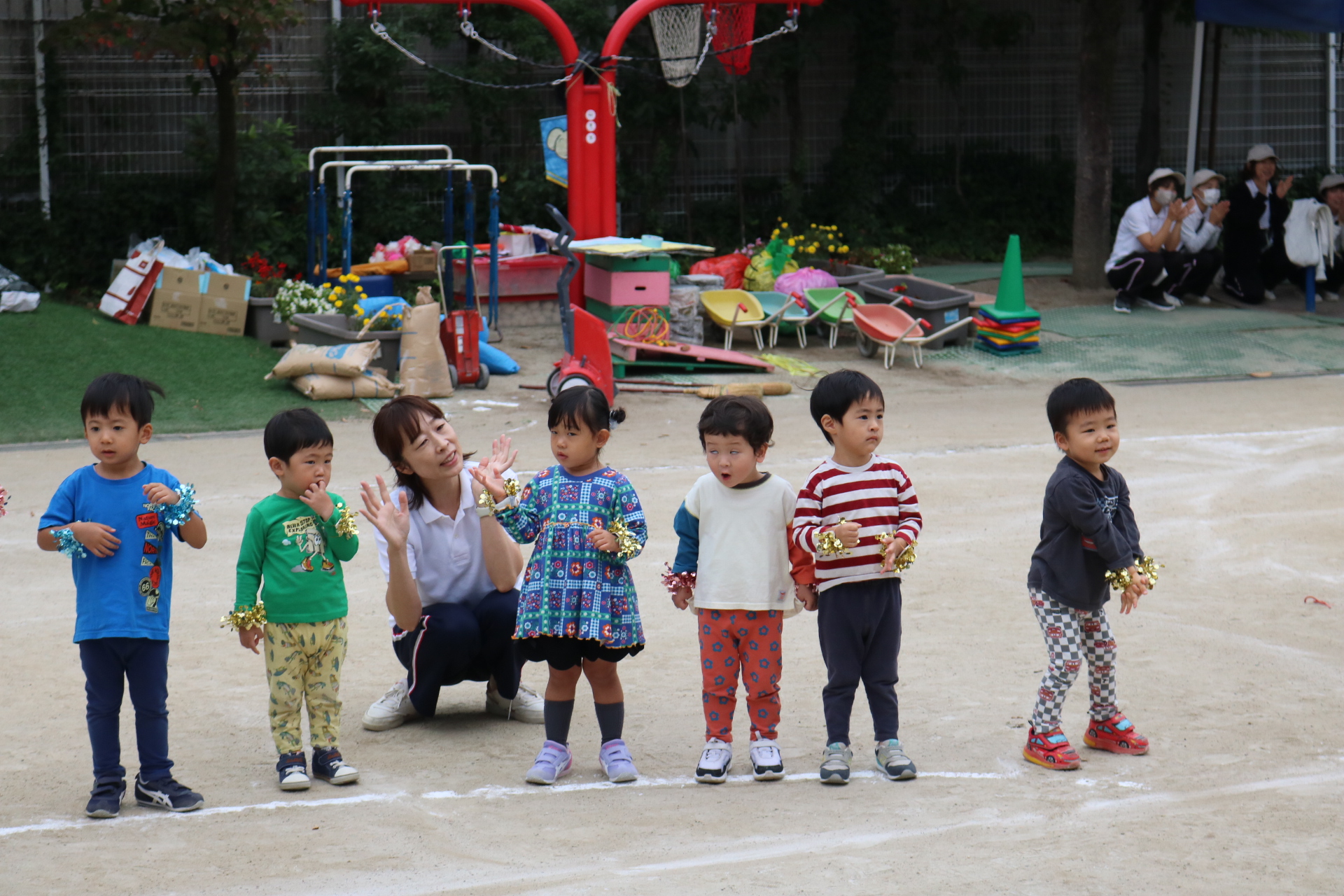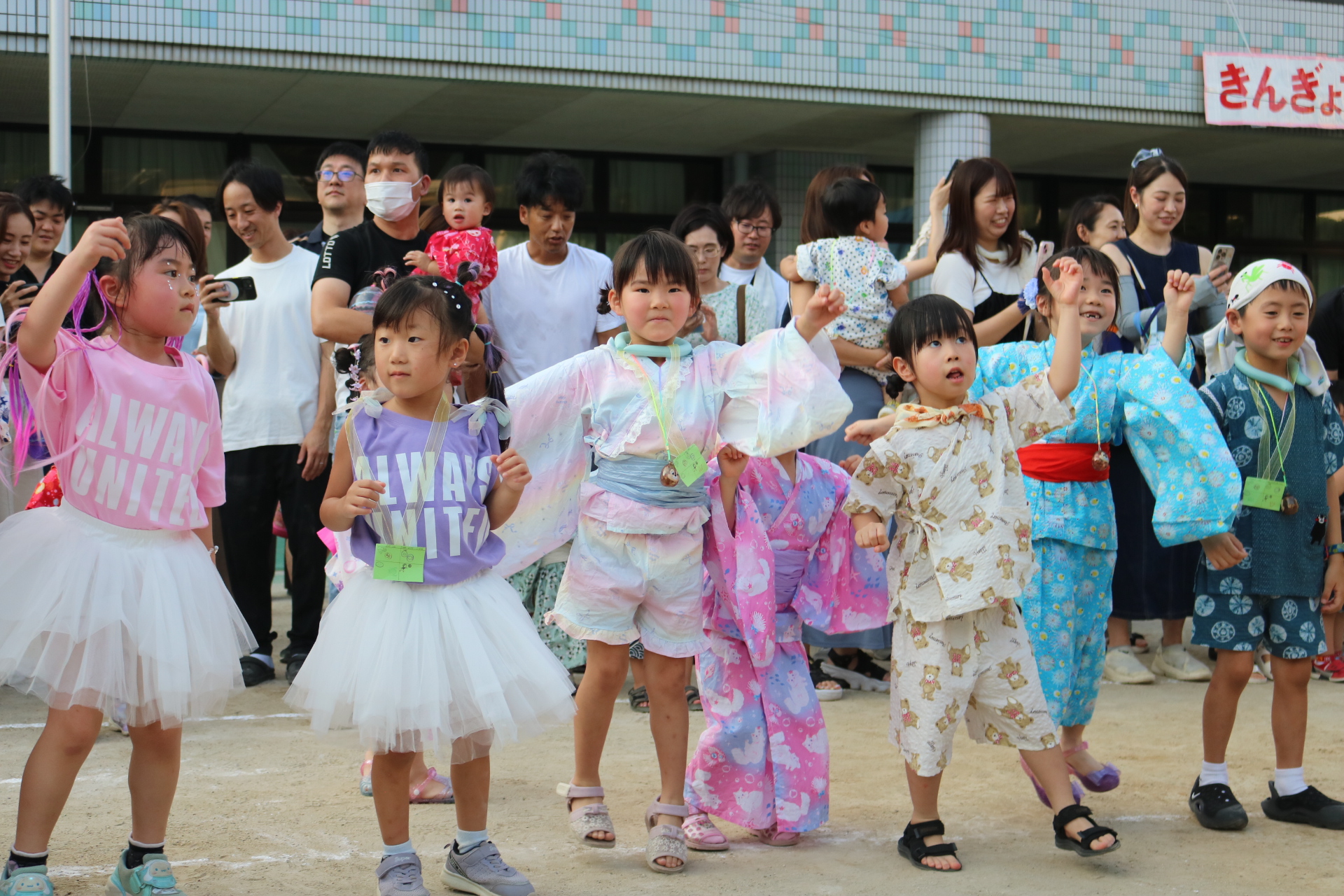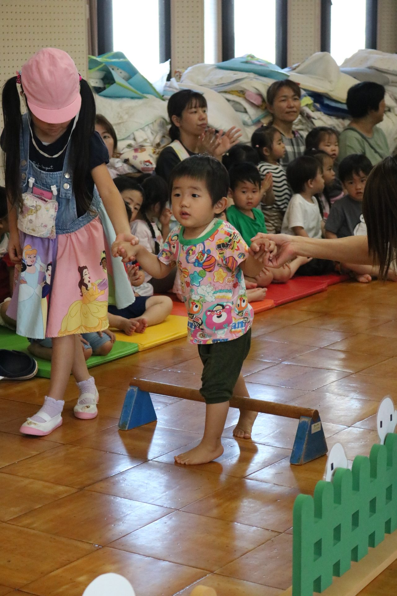 スティッチの曲に合わせて踊る子どもたち!キラキラの棒を上手に振って踊っています😊