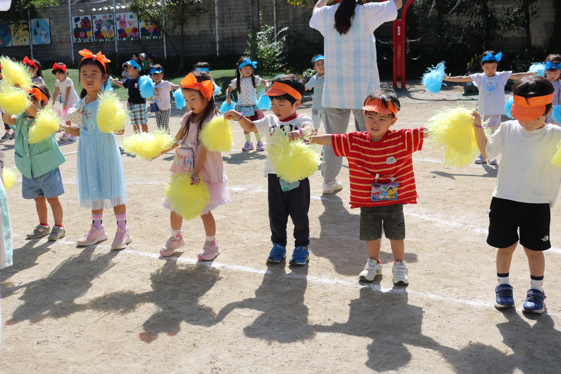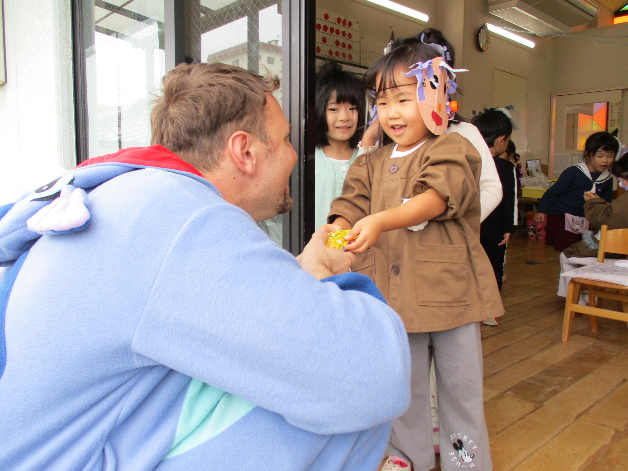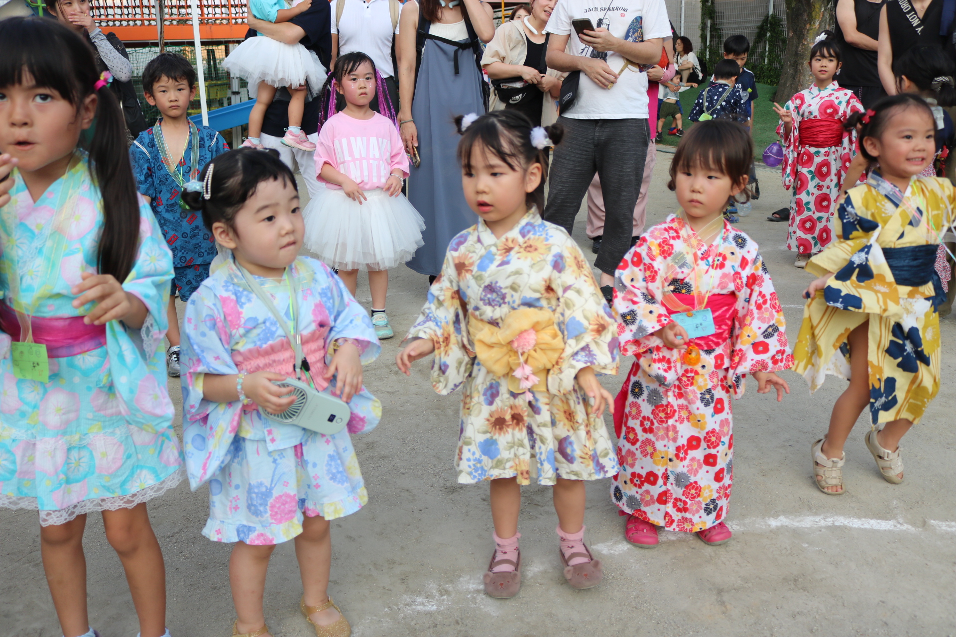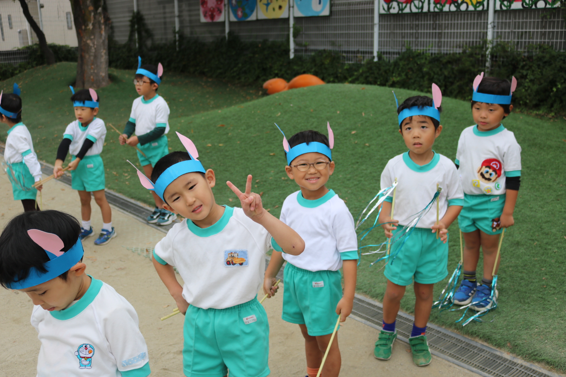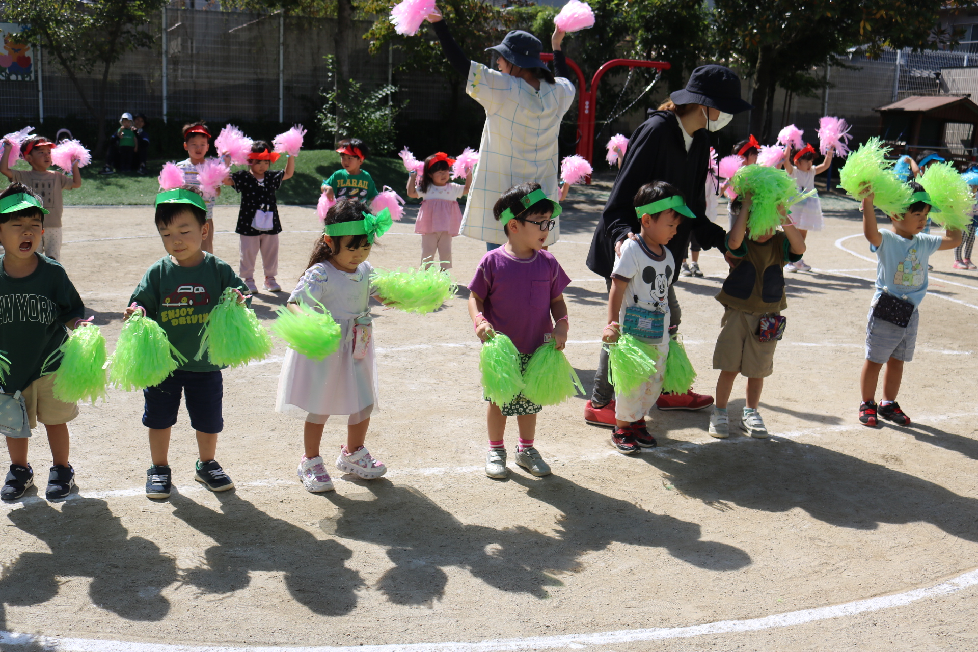 スティッチの曲に合わせて踊る子どもたち!キラキラの棒を上手に振って踊っています😊