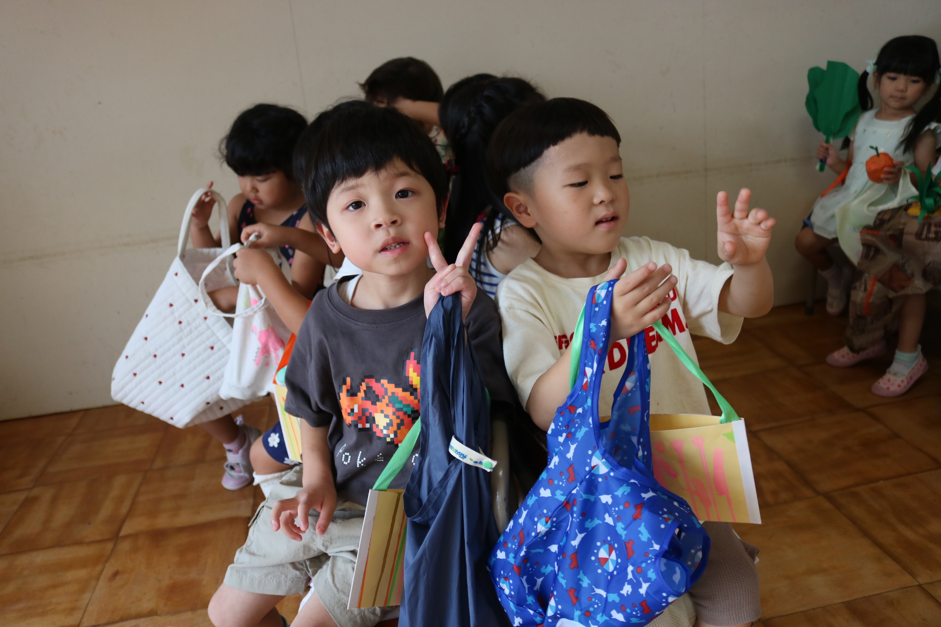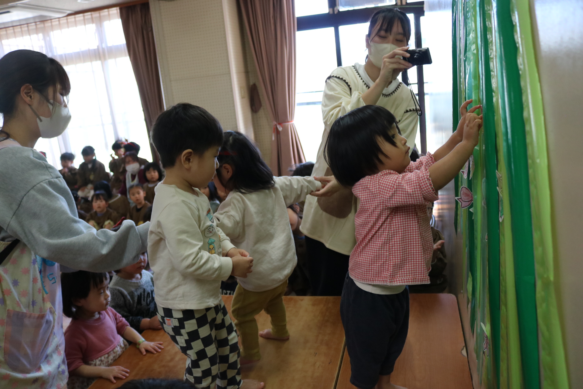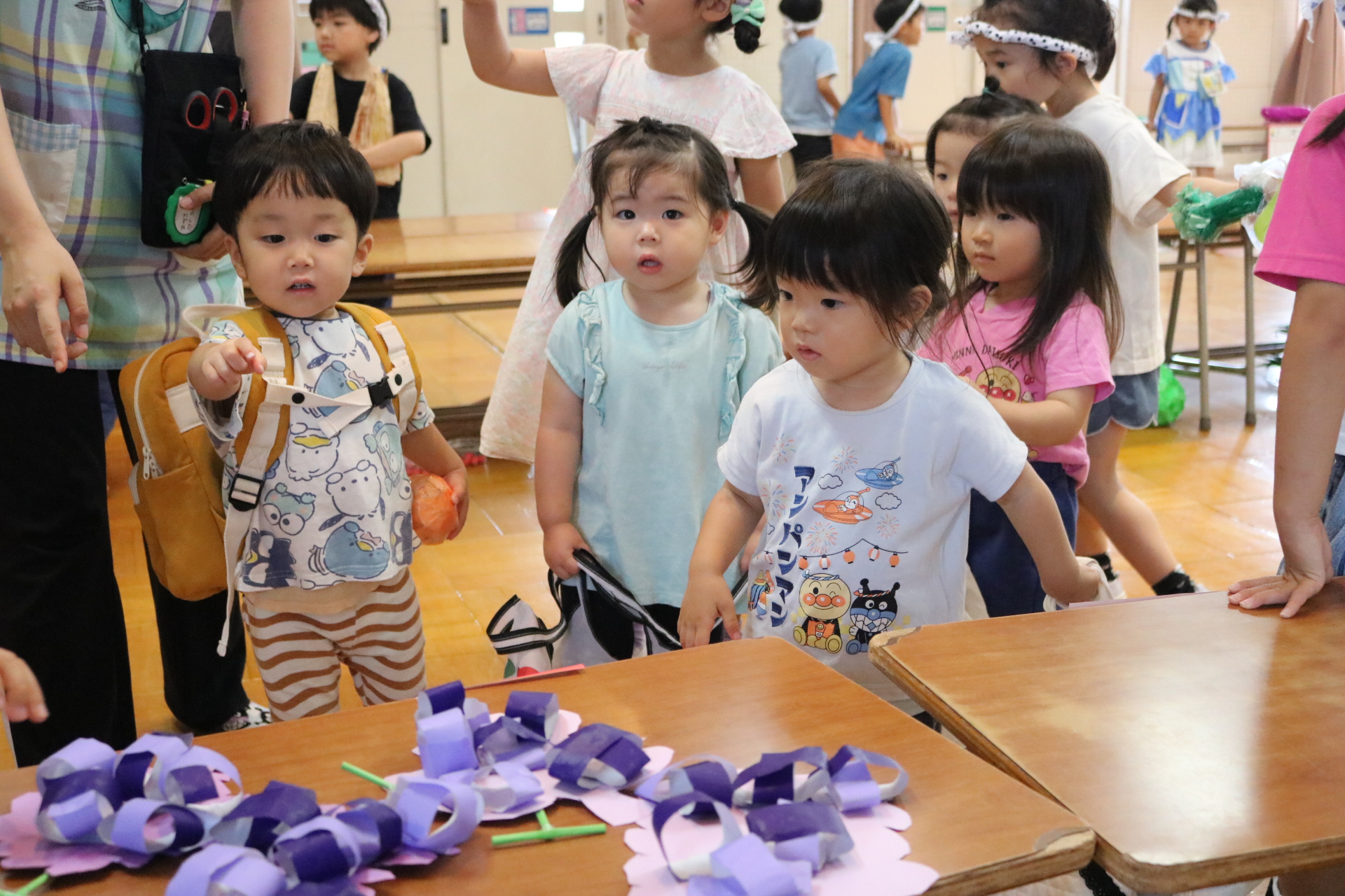 今日は、ふじ組・あじさい組・なのはな組・さくら組(うさぎグループ)・すみれ組が保育参観を行いました。