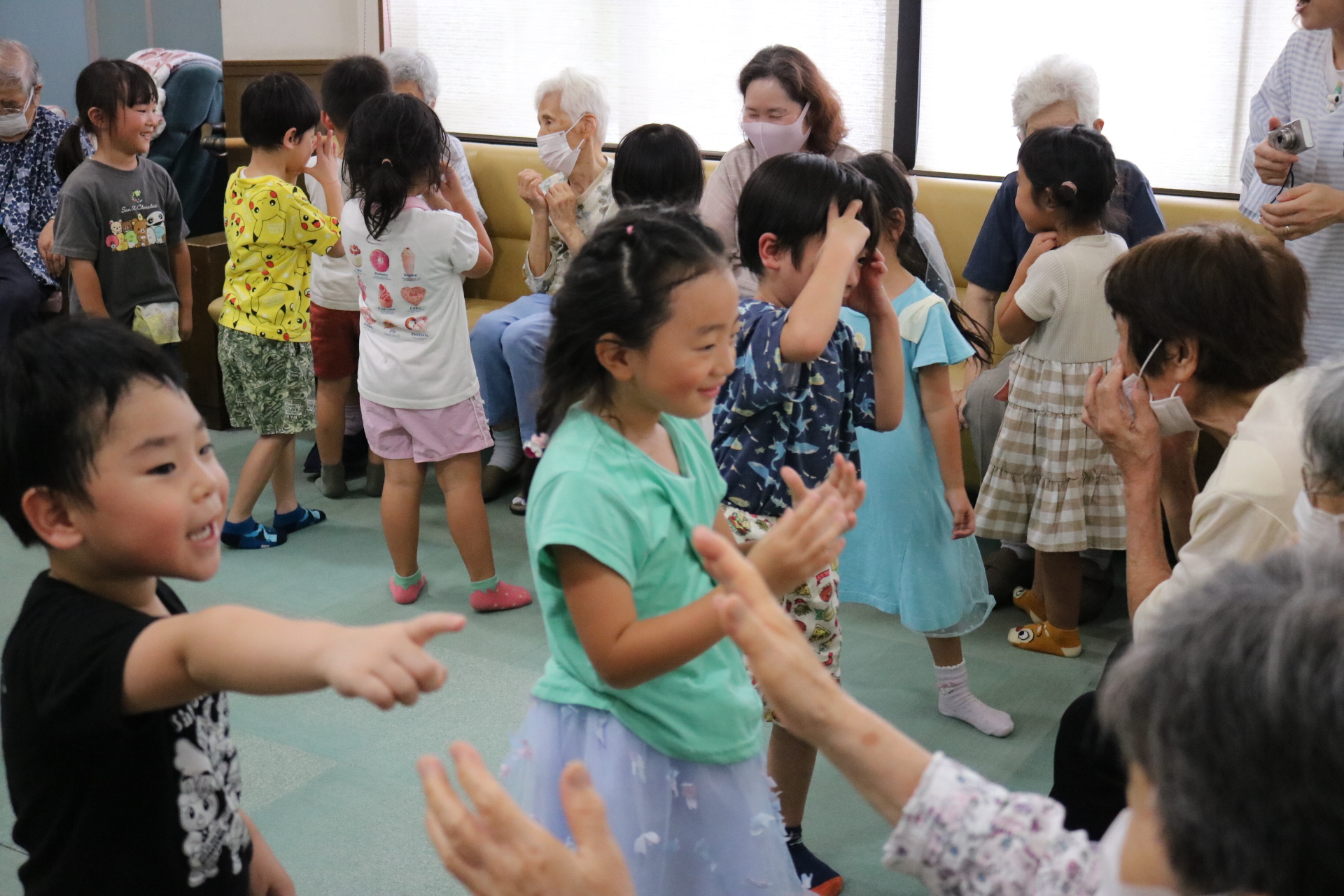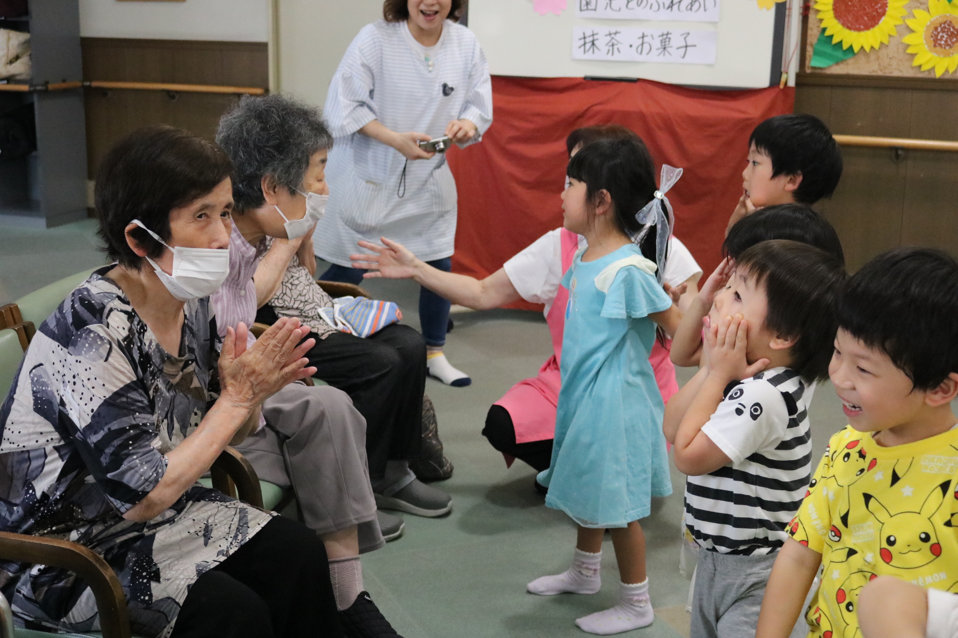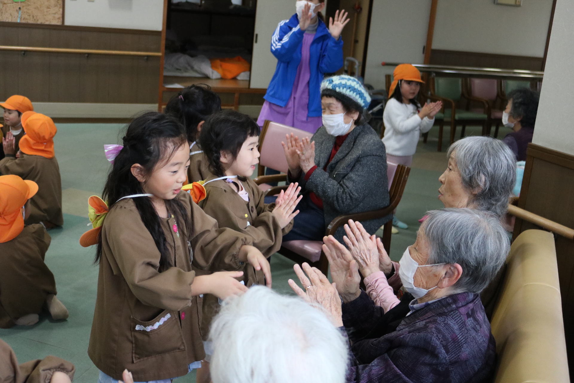 触れ合いゲームをして遊んだよ。また歌や踊りも披露してきました!