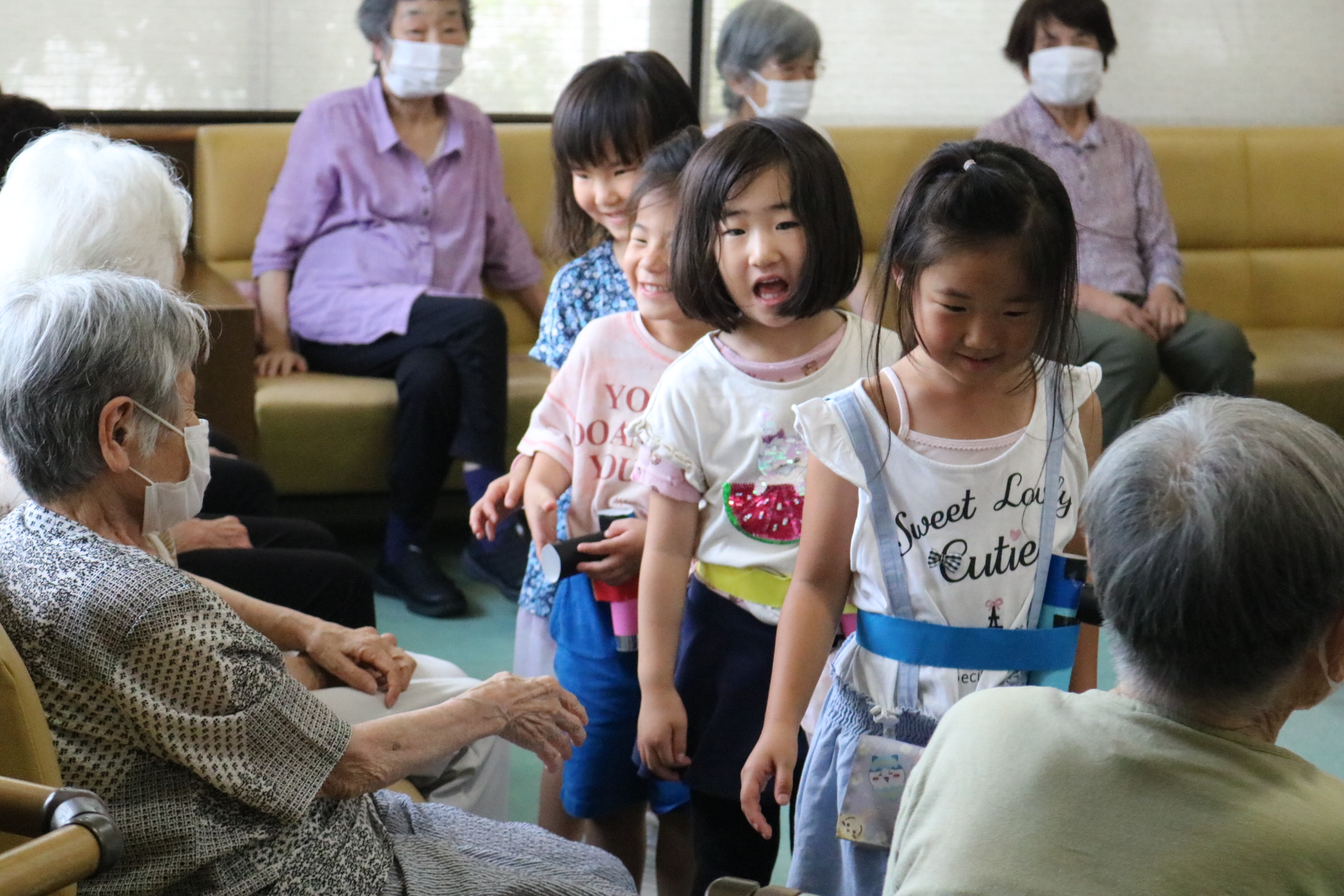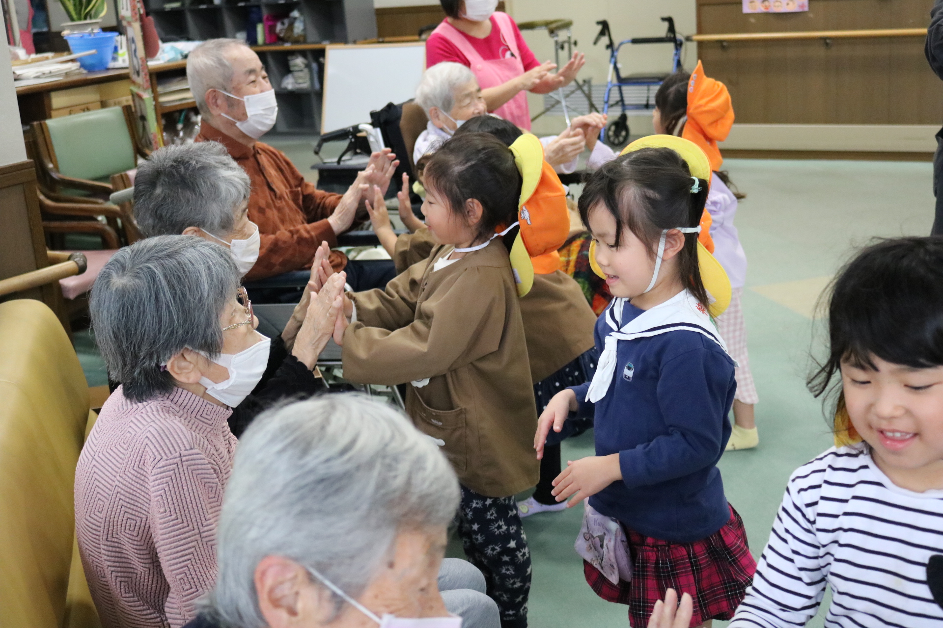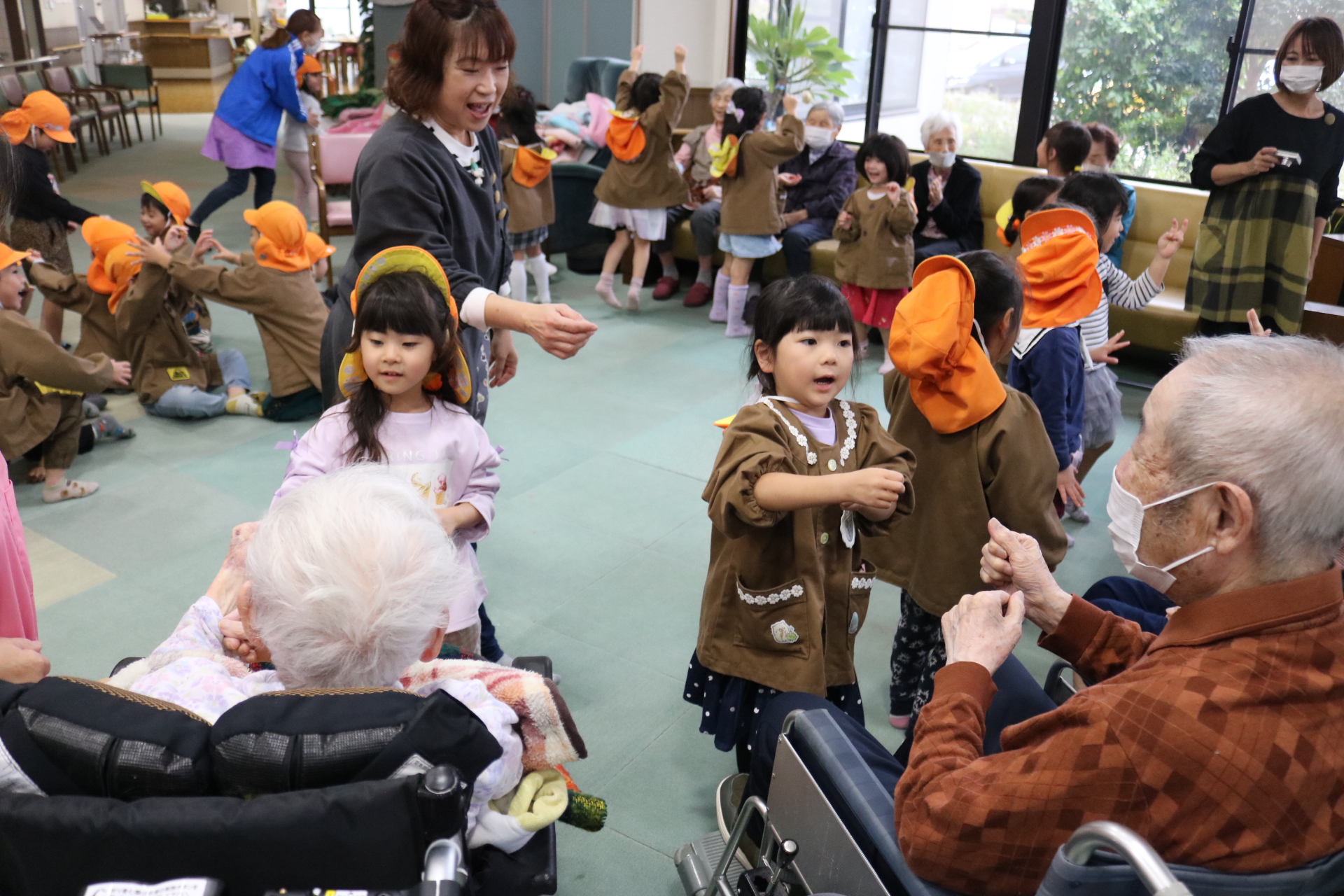 触れ合いゲームをして遊んだよ。また歌や踊りも披露してきました!