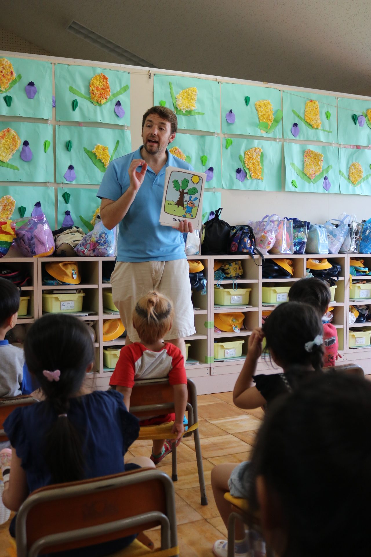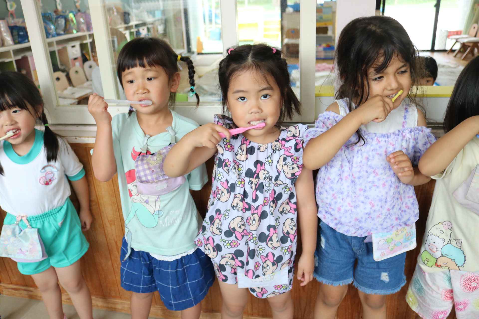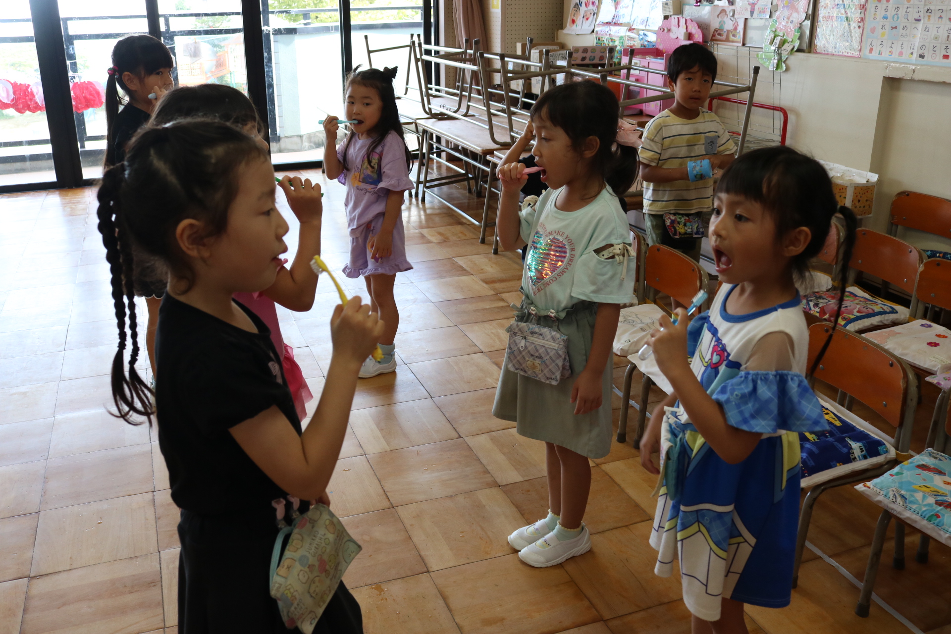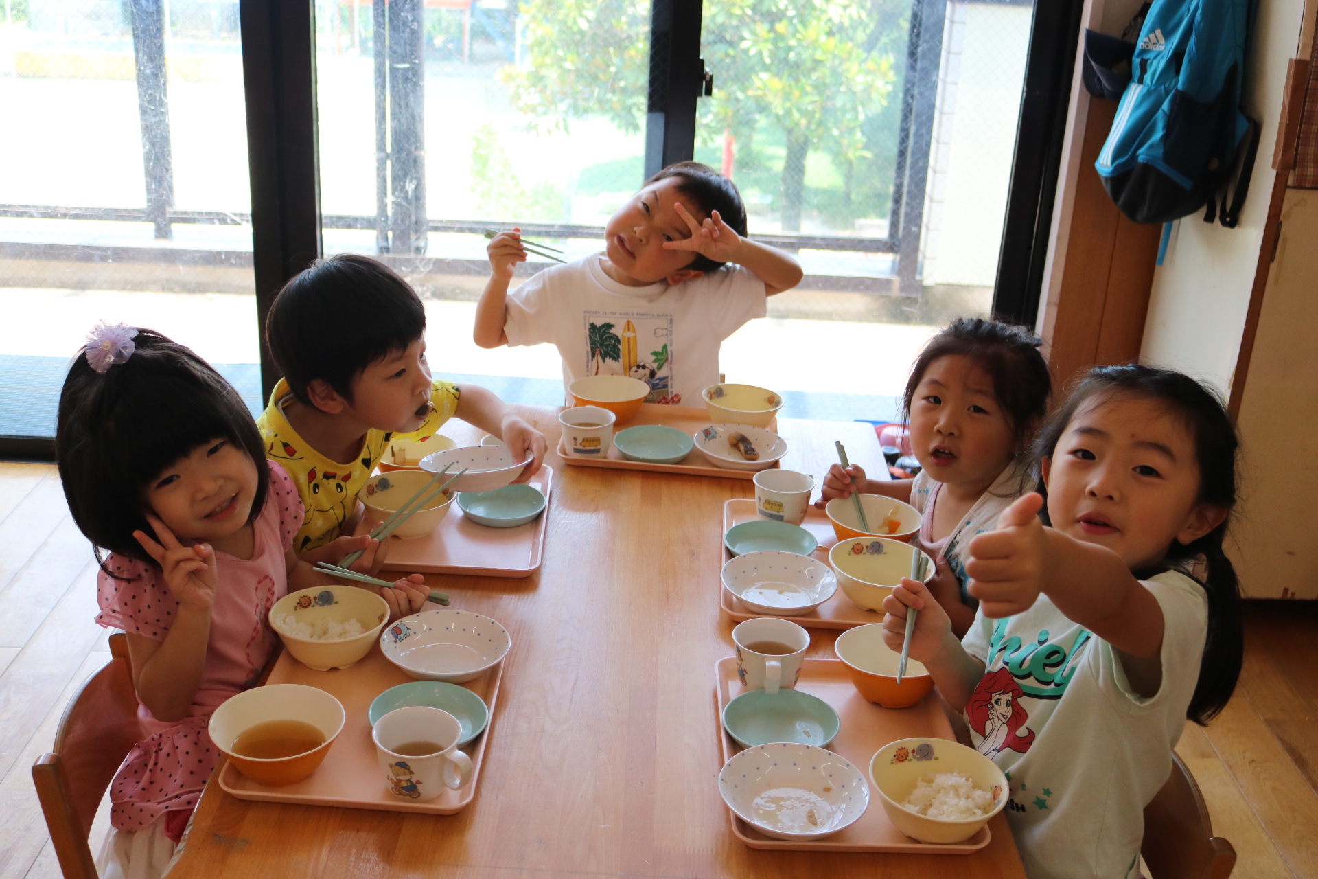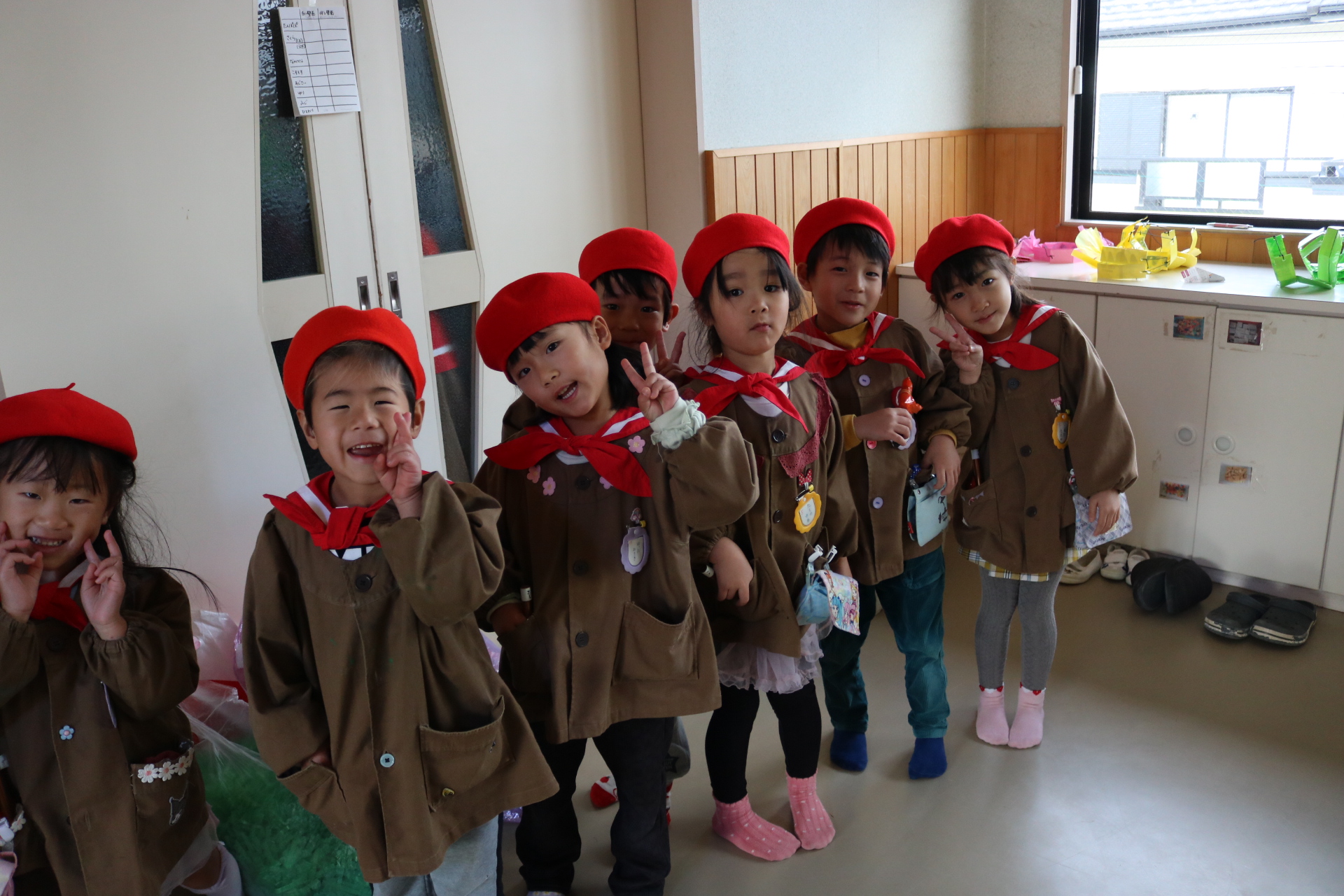 ひまわり組・ゆり組・こすもす組・さくら(くまグループ)・たんぽぽ組・つくし組