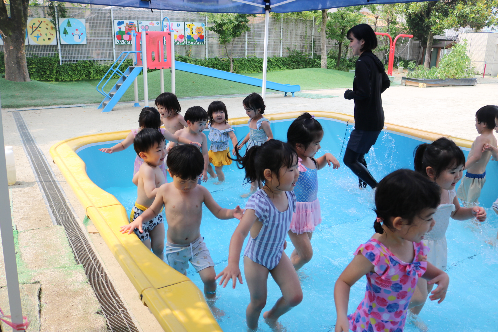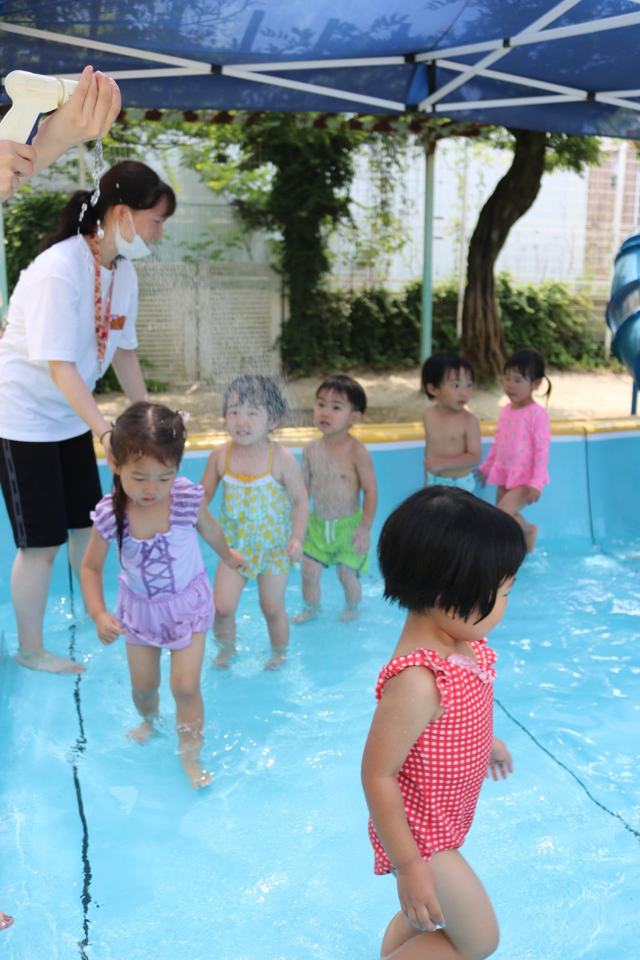 今日はプール開き😊園長先生にお祓いをしてもらった後に、思いっきりプール遊びを満喫しました😊
