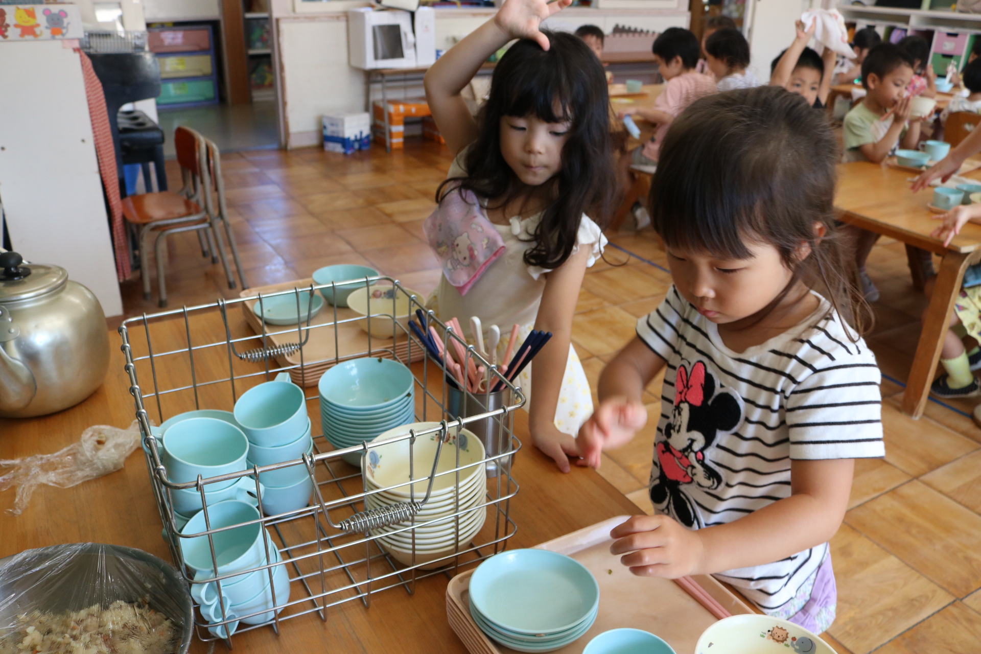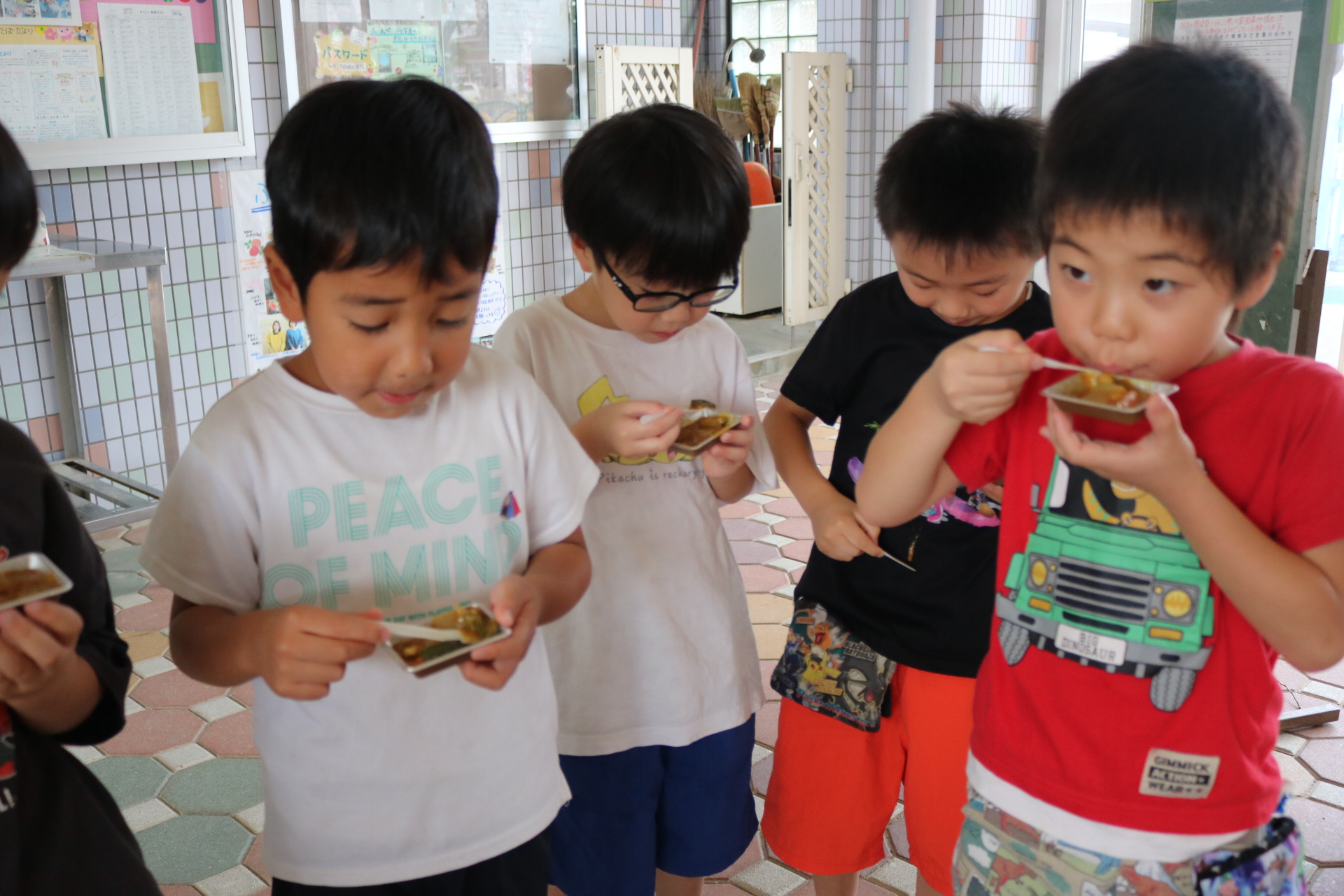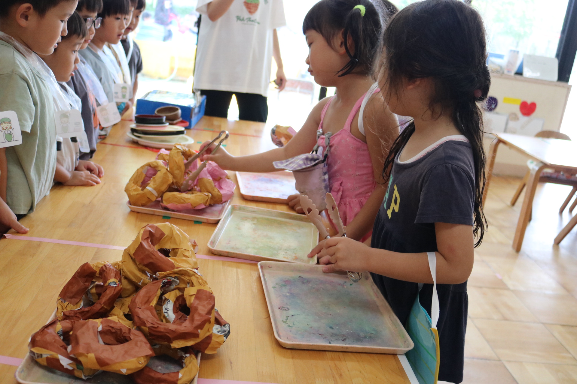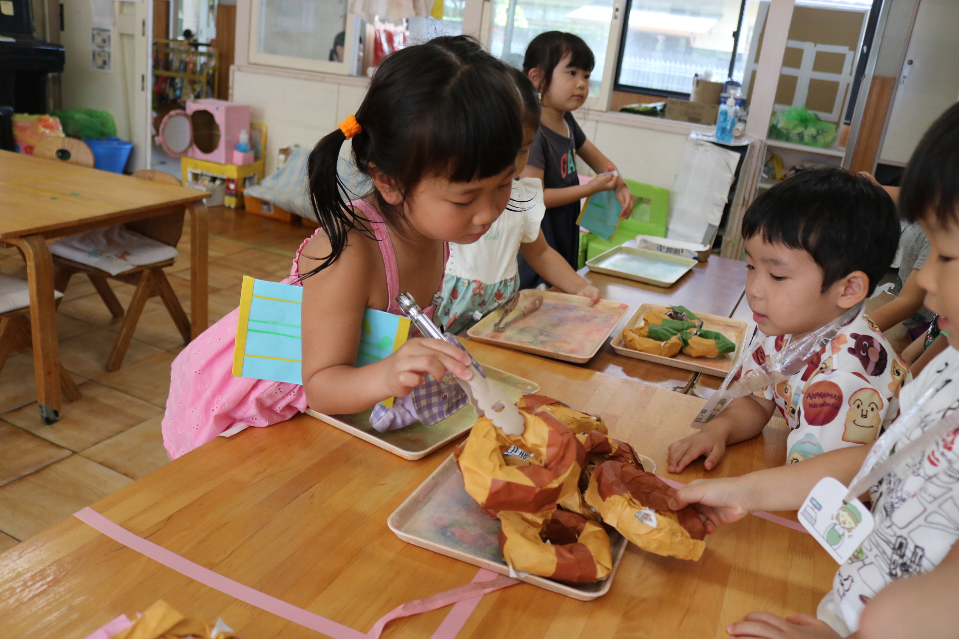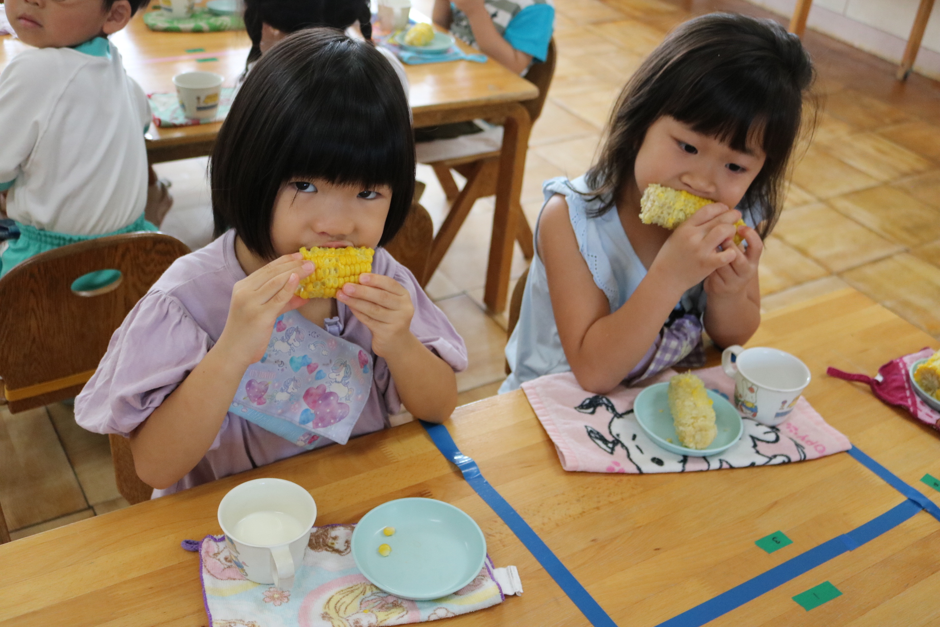 おやつに出すとうもろこしの皮むきを年長さんがしてくれました😊
