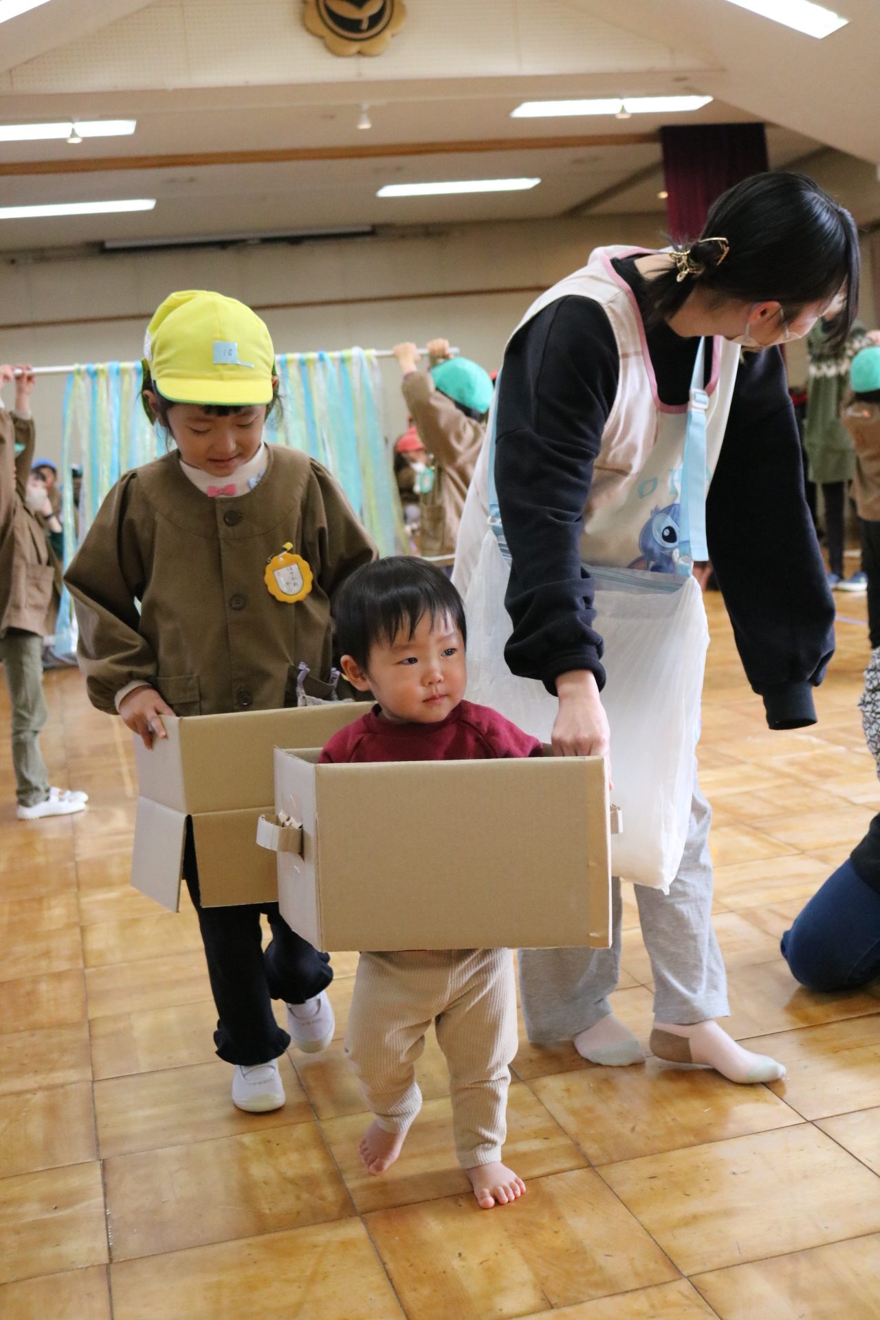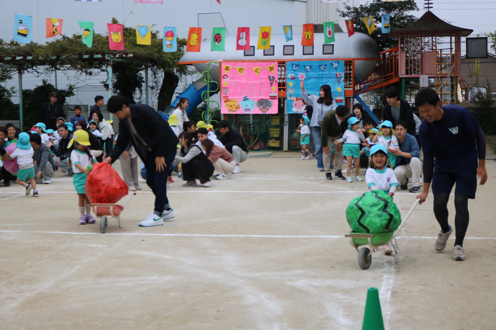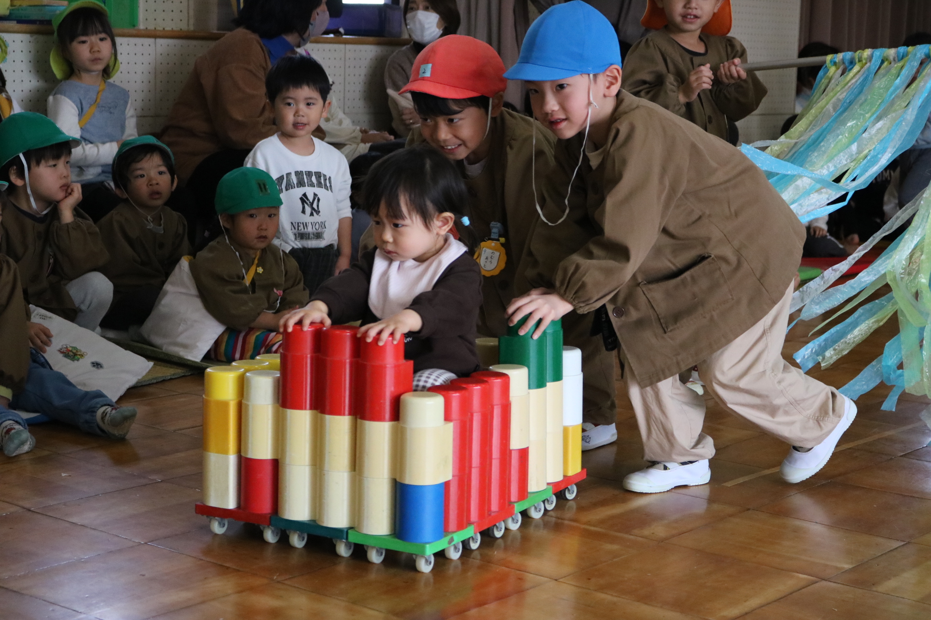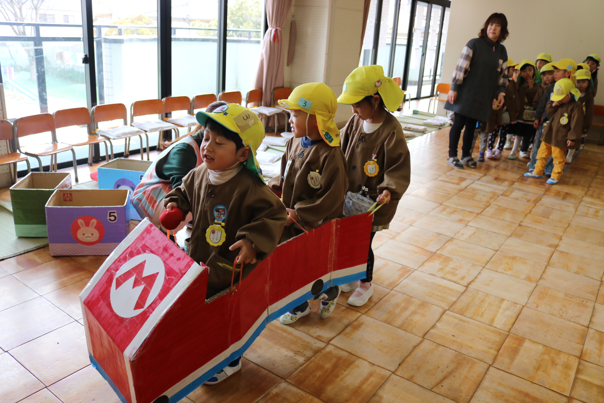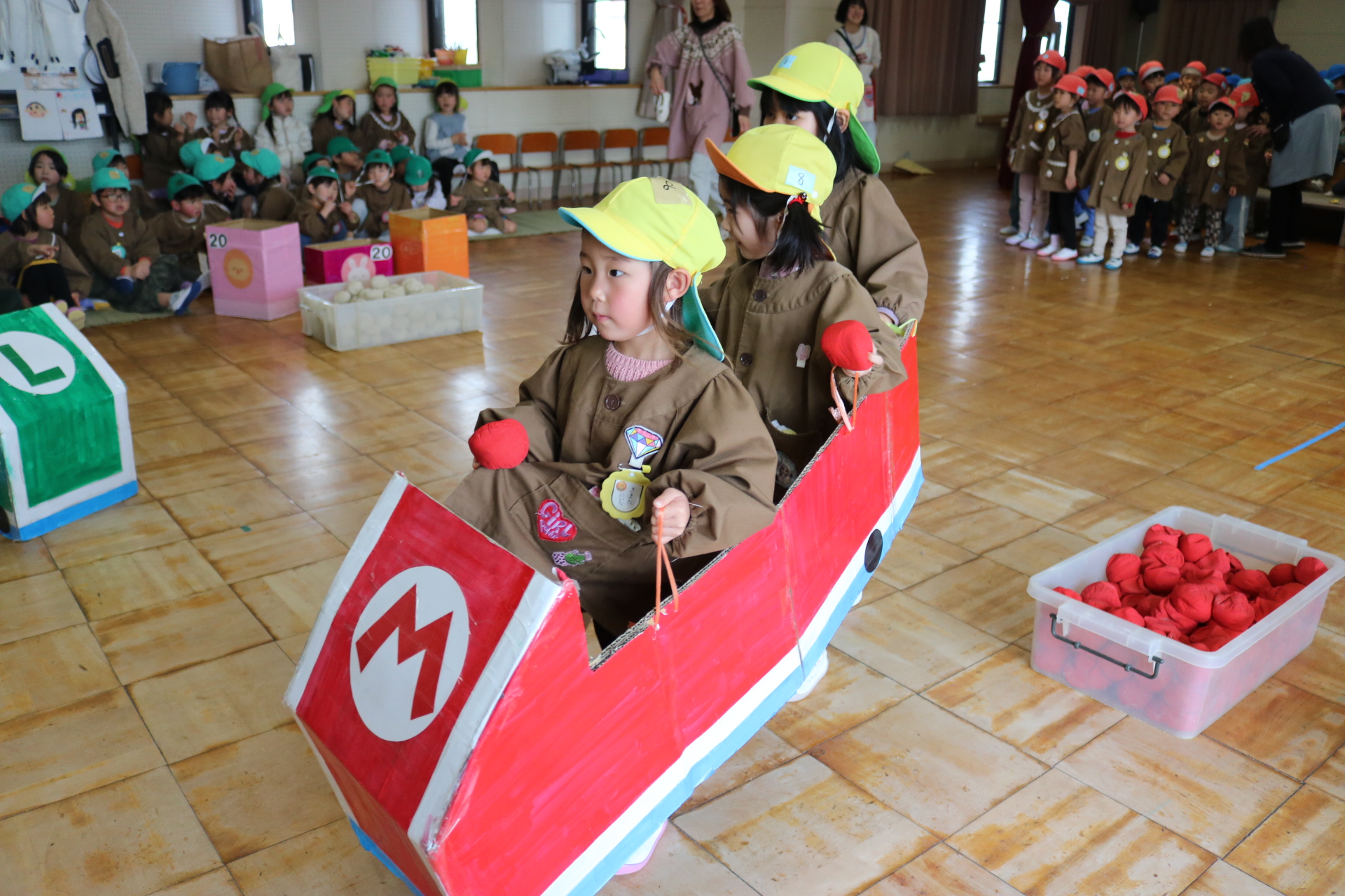 電車や車に乗ったり、玉入れやボール運びなどいろんなゲームを楽しみましたよ😆