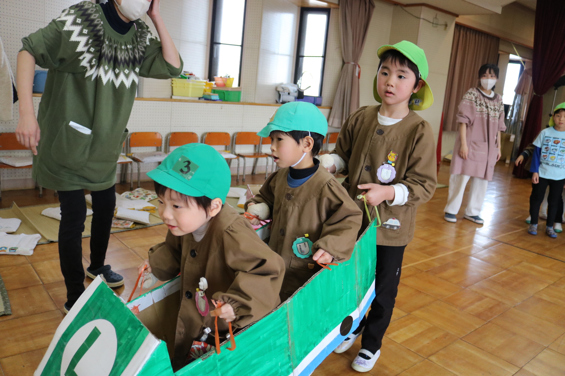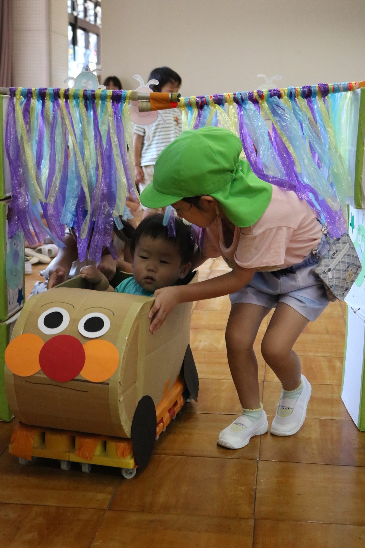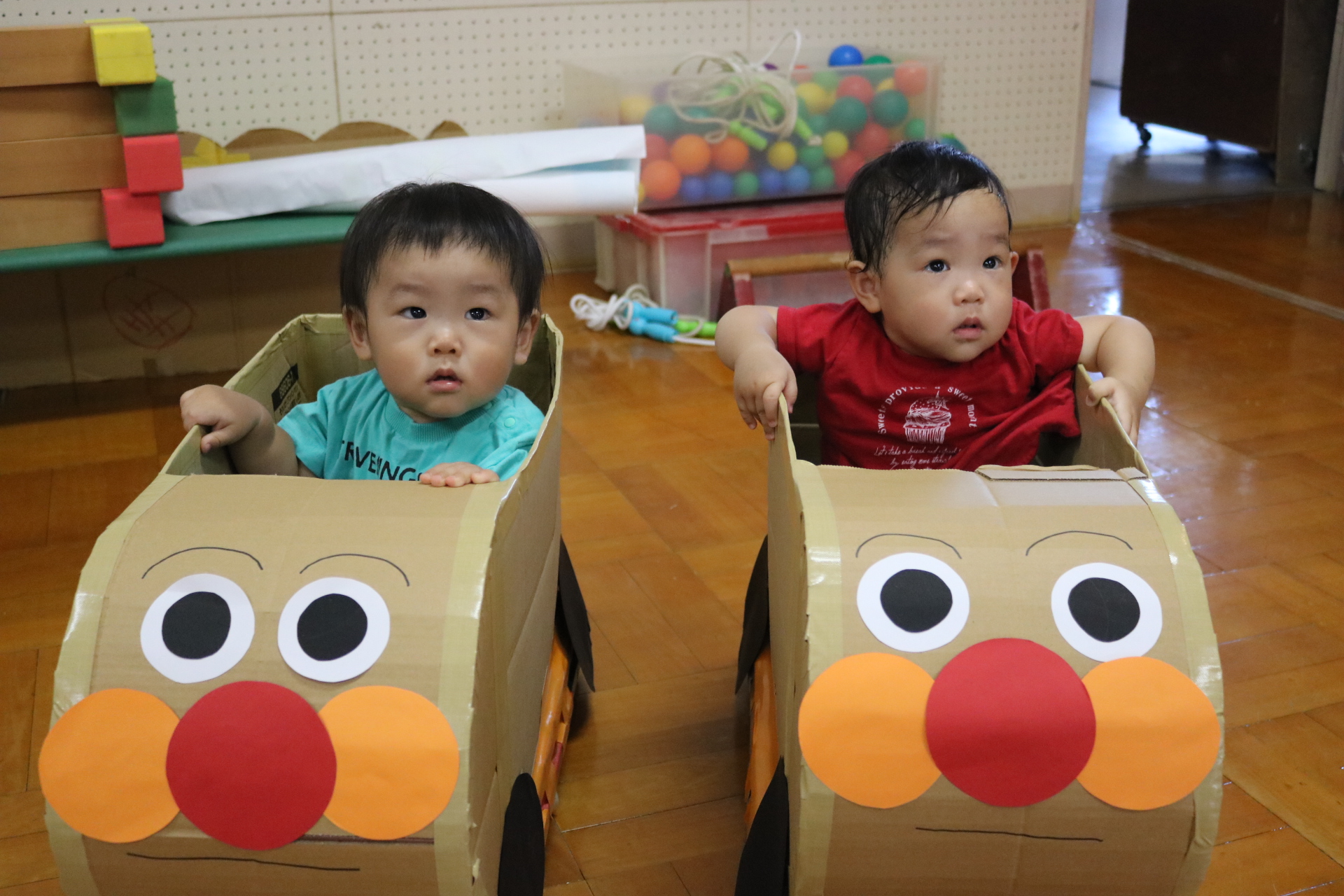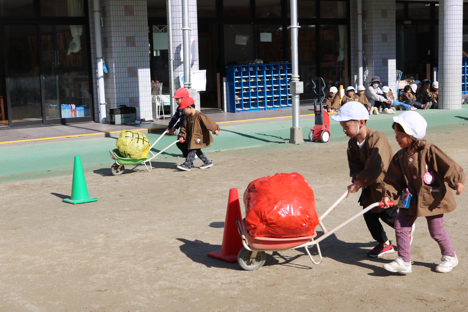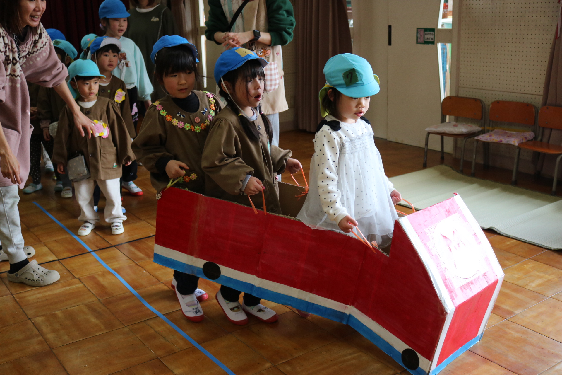 電車や車に乗ったり、玉入れやボール運びなどいろんなゲームを楽しみましたよ😆