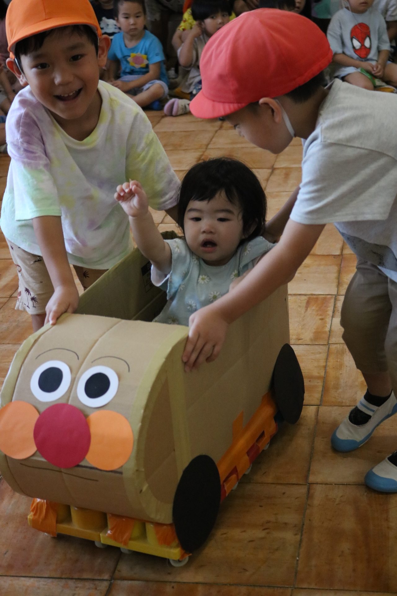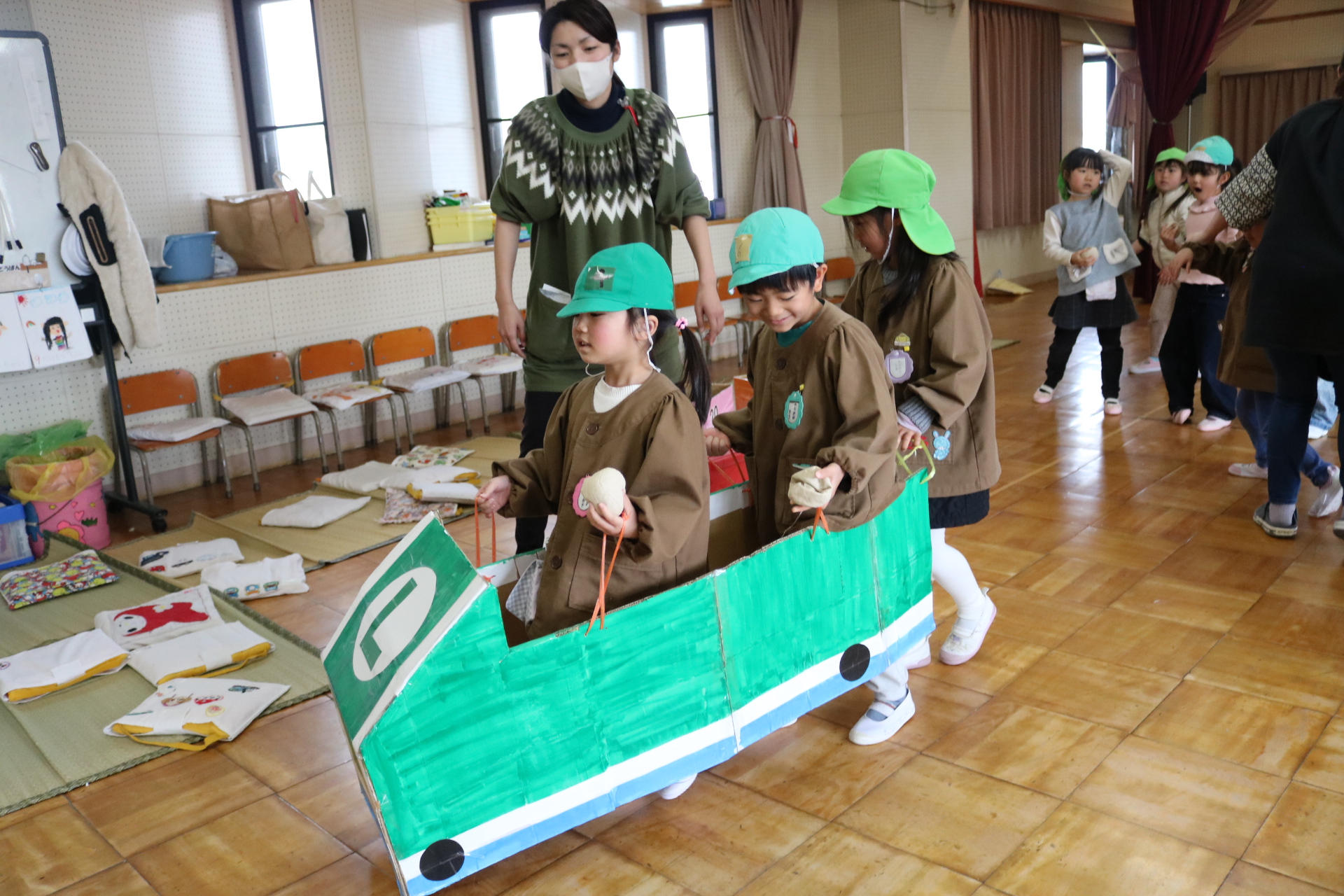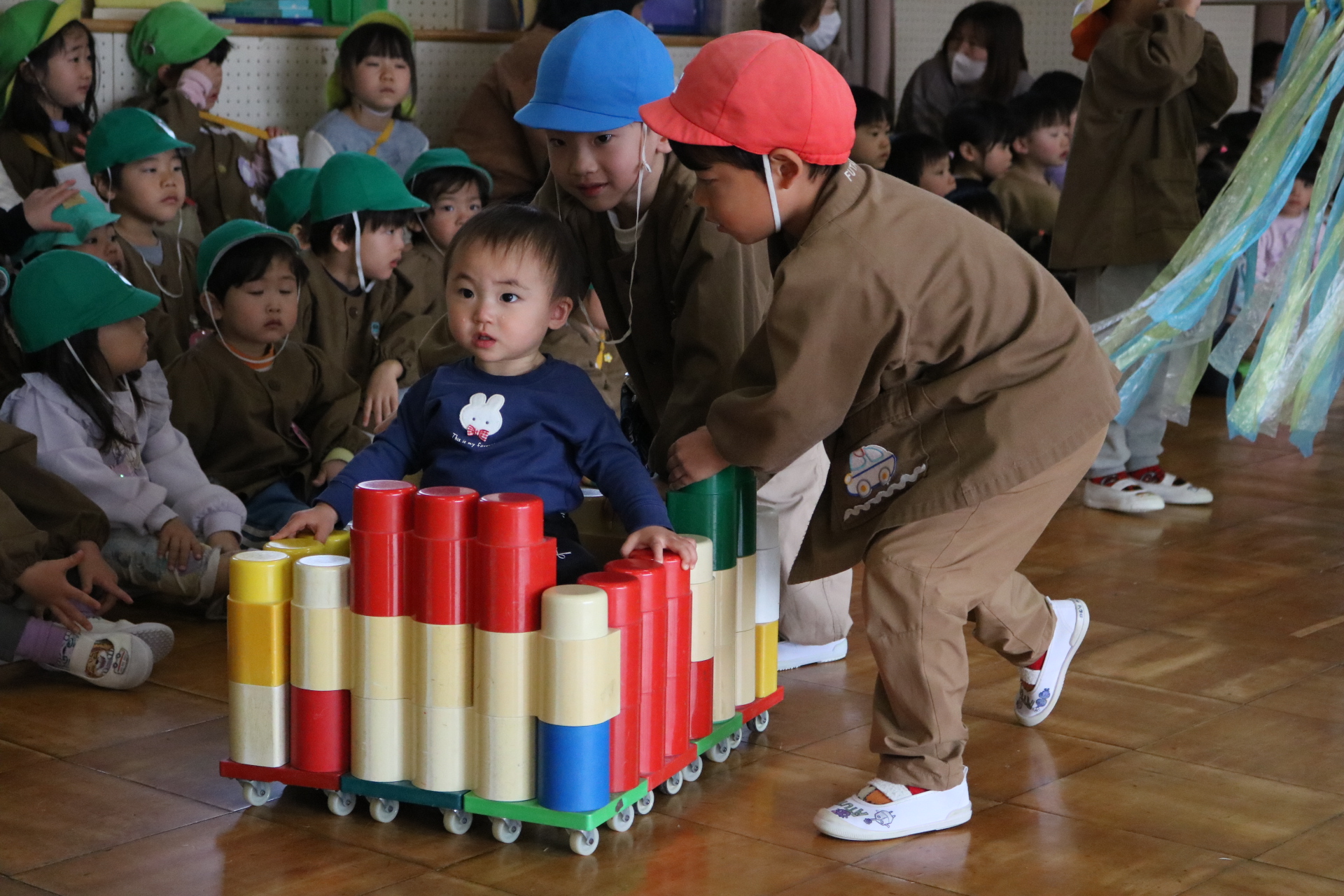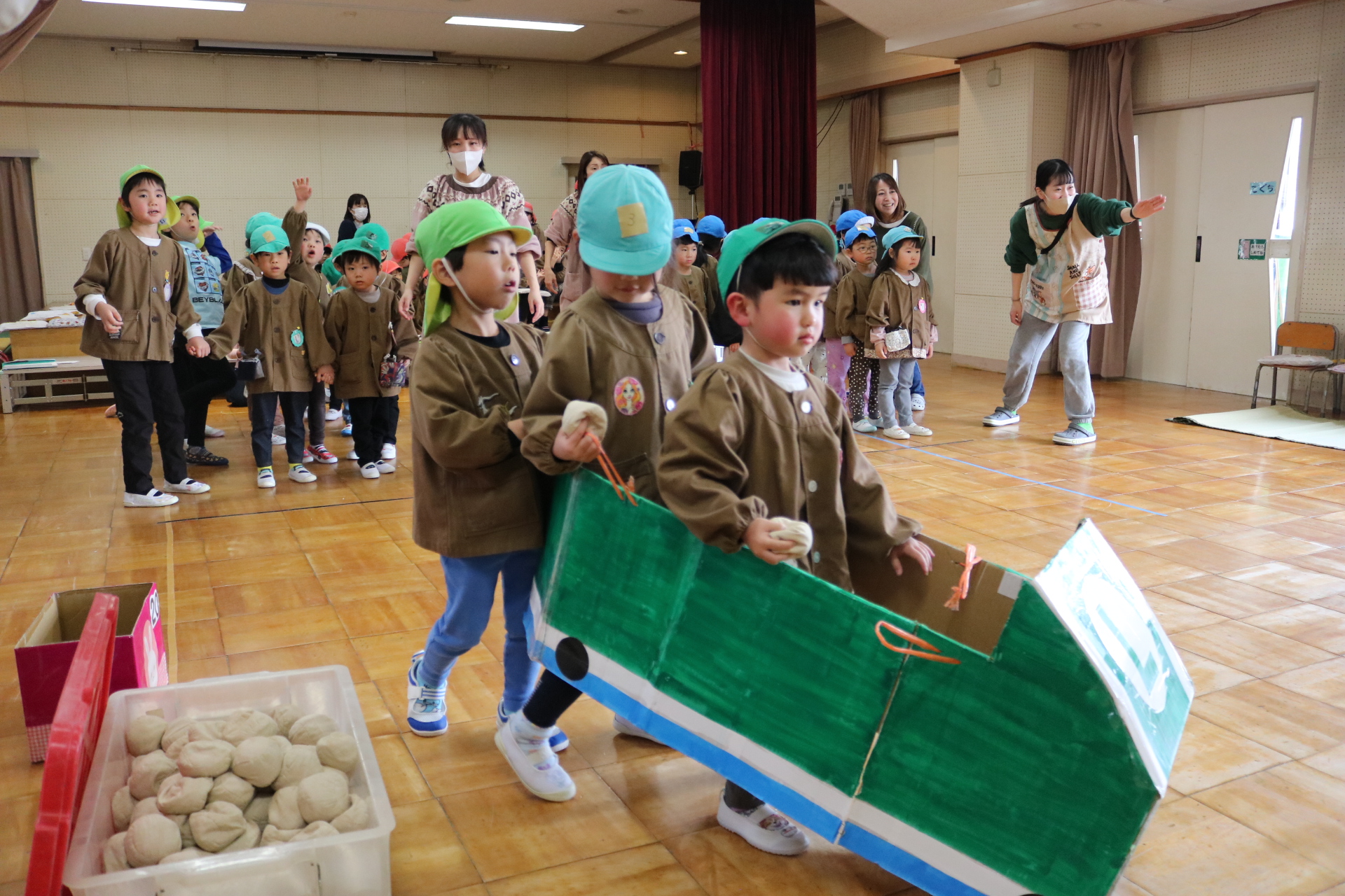 電車や車に乗ったり、玉入れやボール運びなどいろんなゲームを楽しみましたよ😆