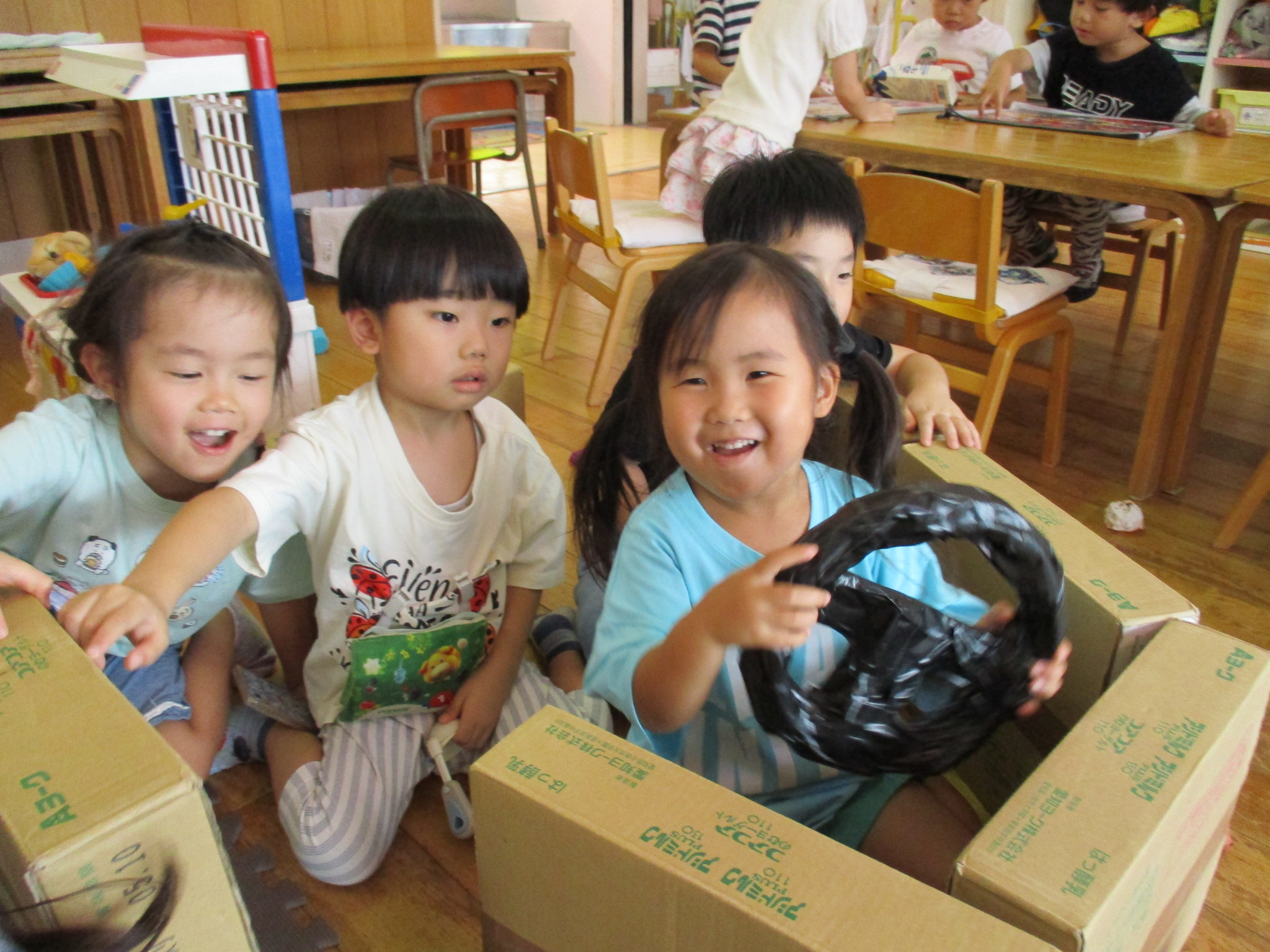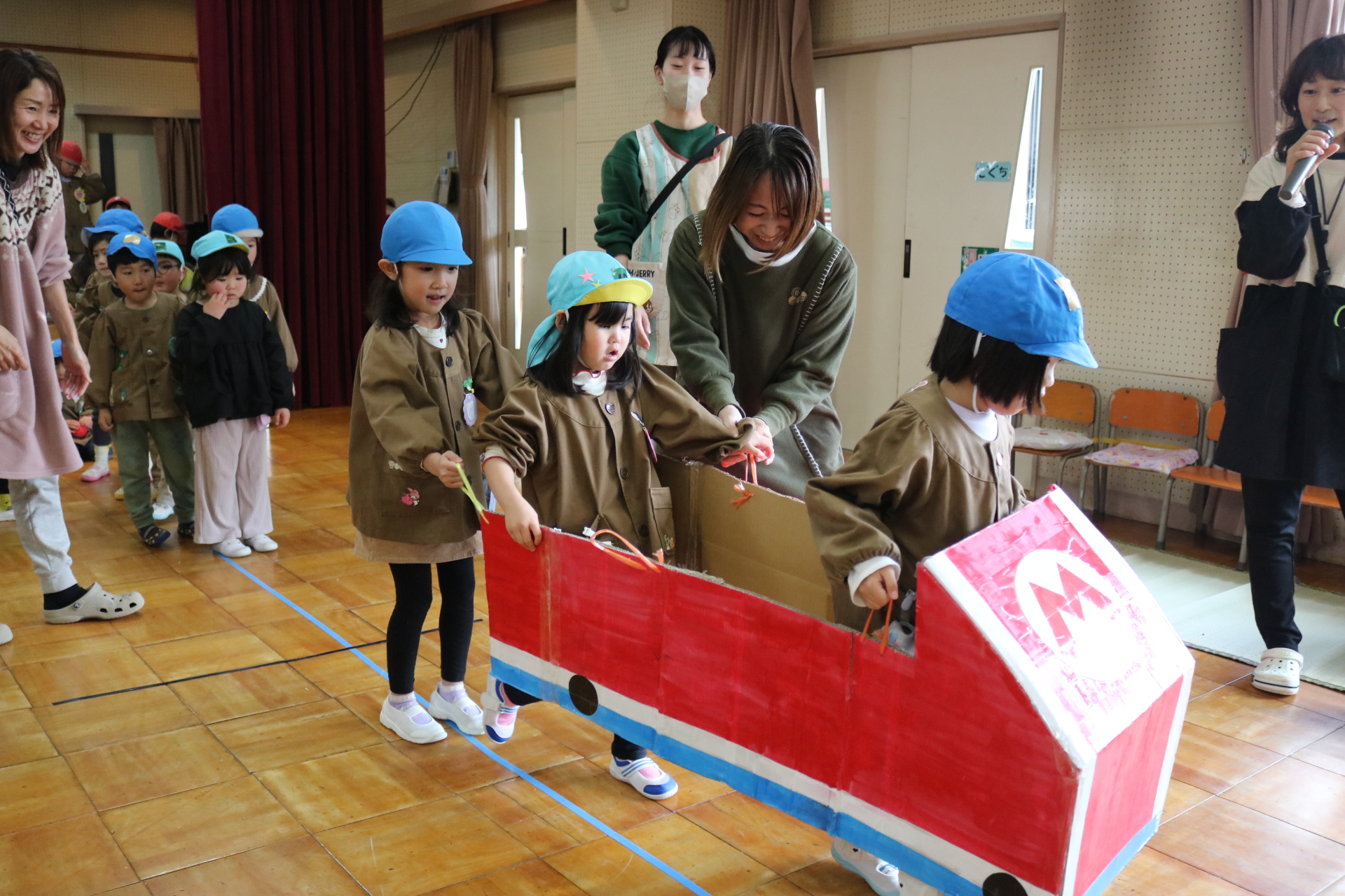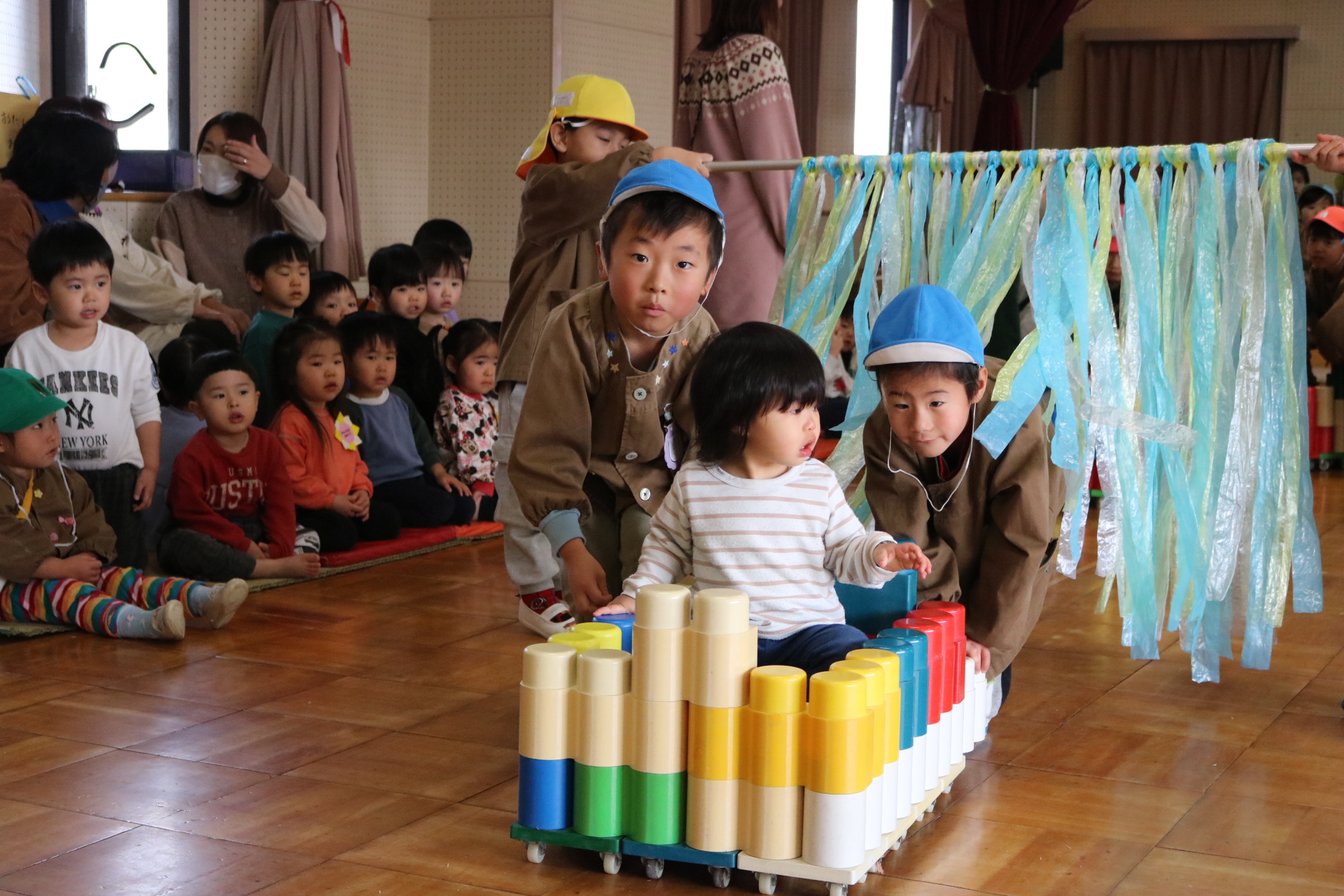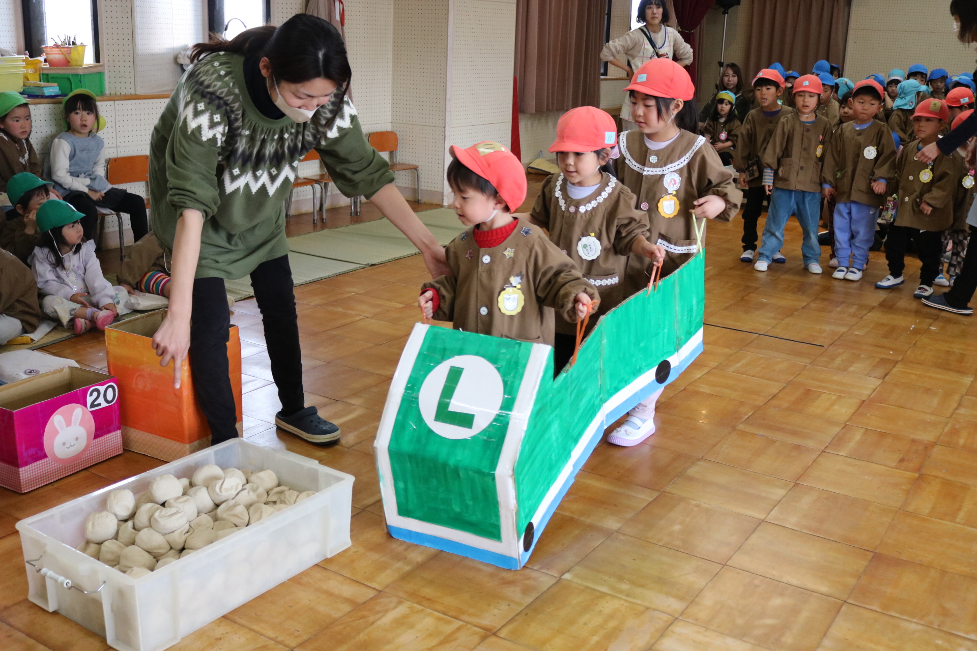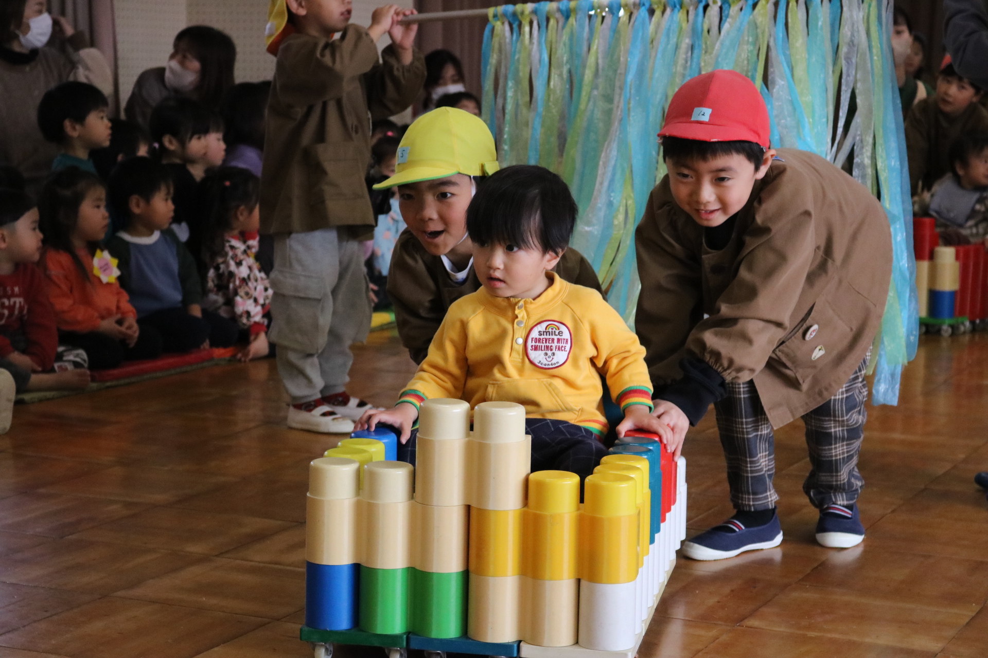 電車や車に乗ったり、玉入れやボール運びなどいろんなゲームを楽しみましたよ😆