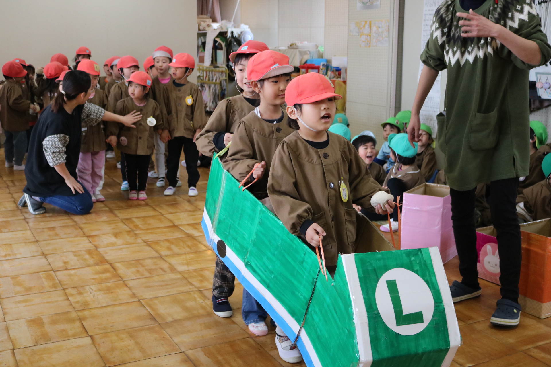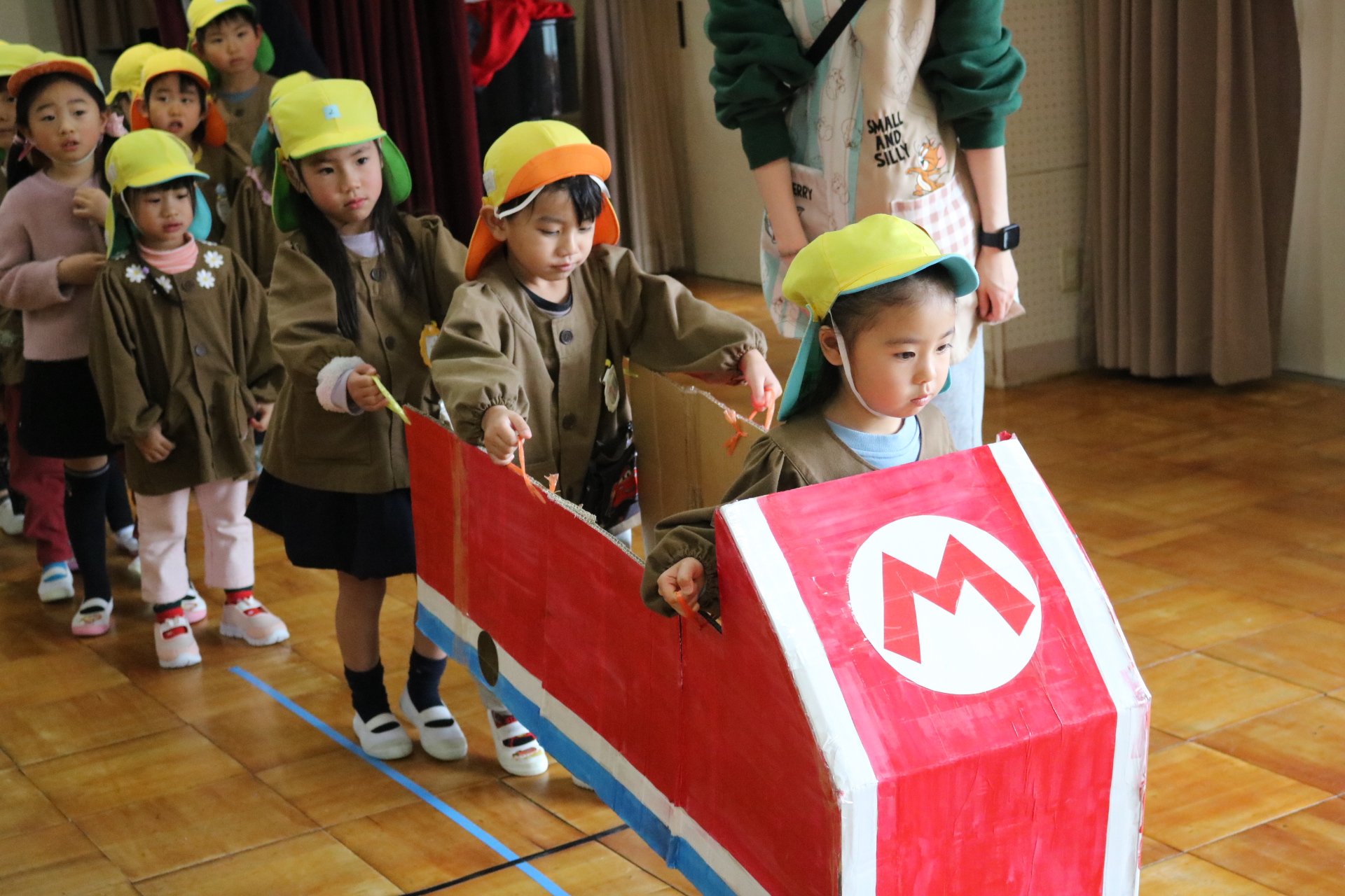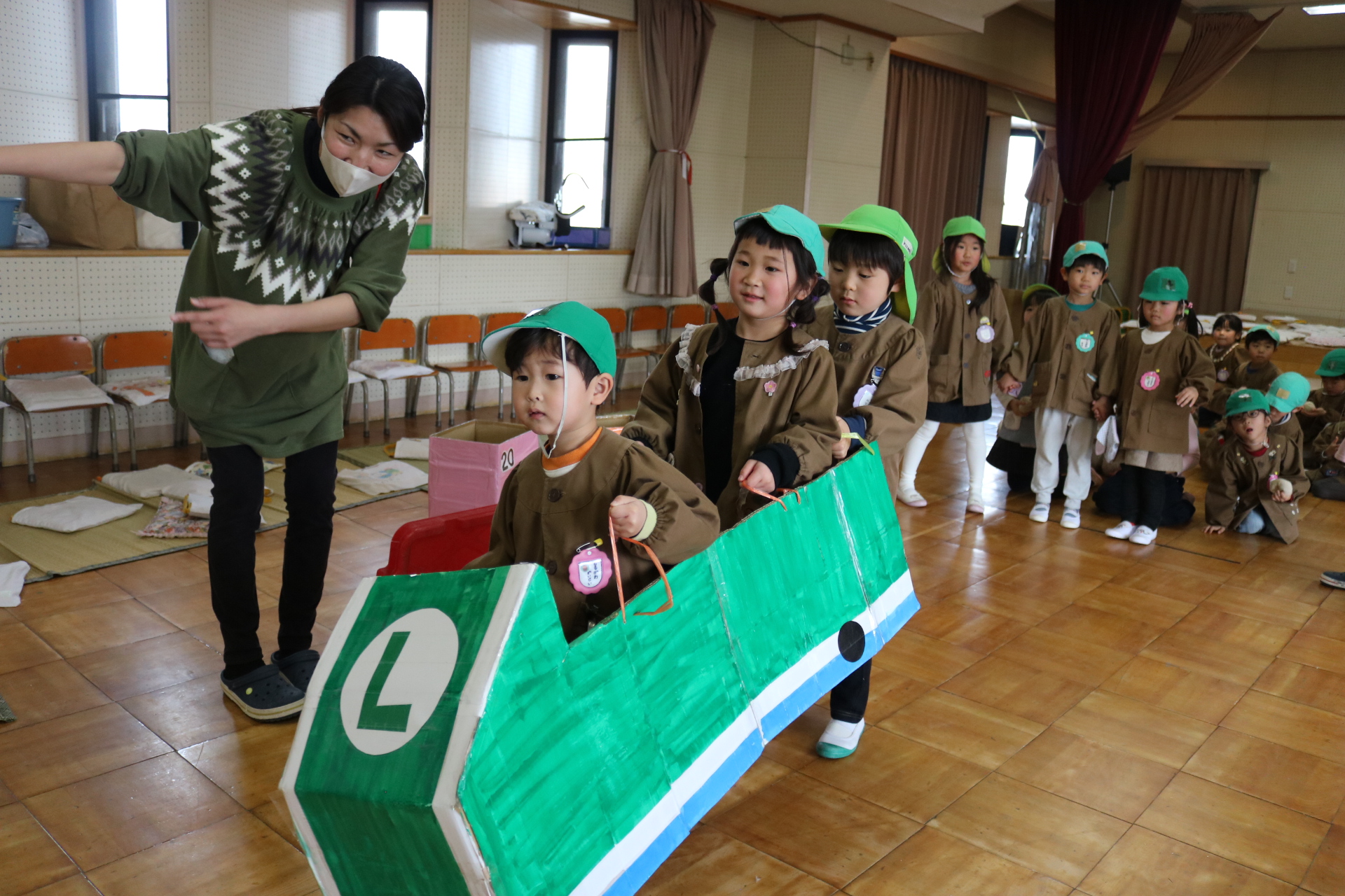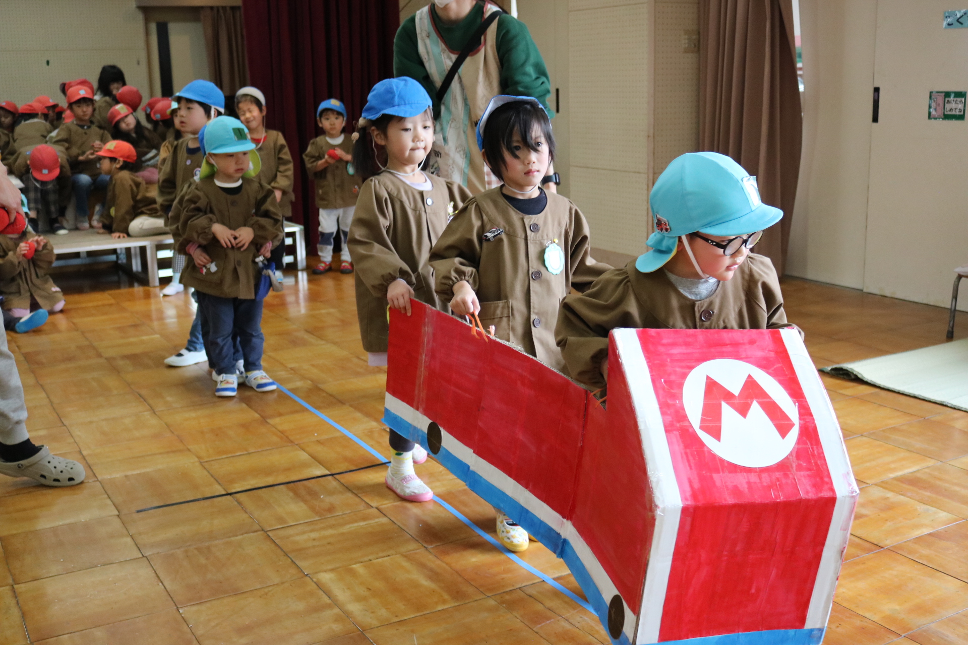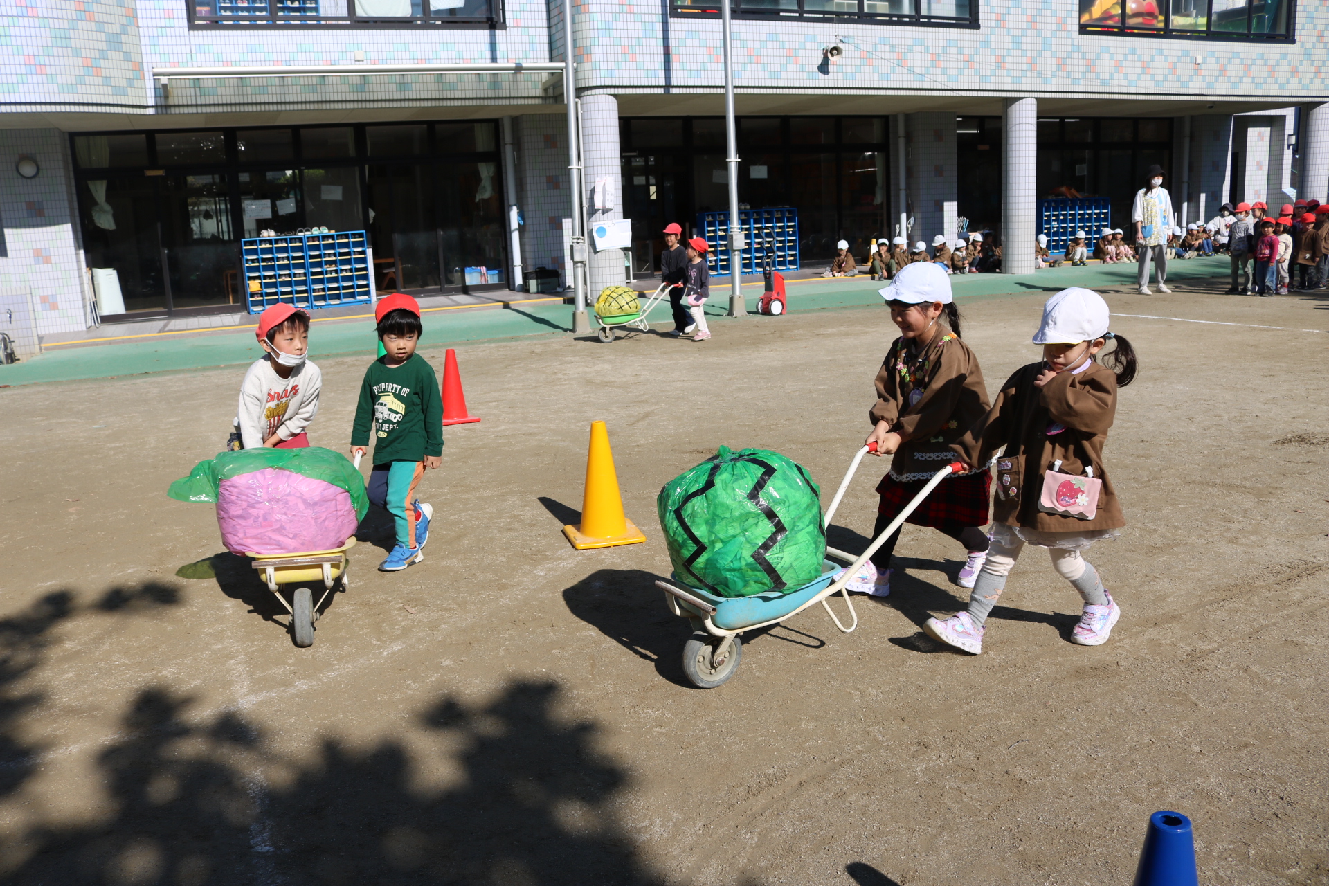 電車や車に乗ったり、玉入れやボール運びなどいろんなゲームを楽しみましたよ😆