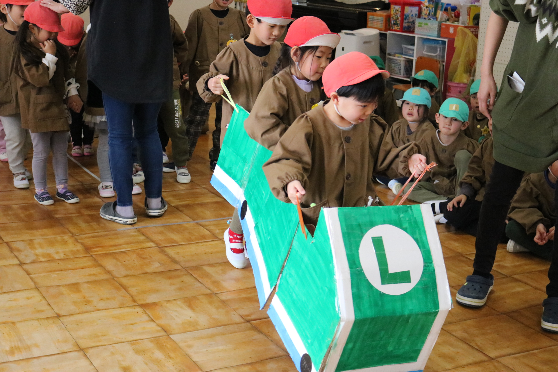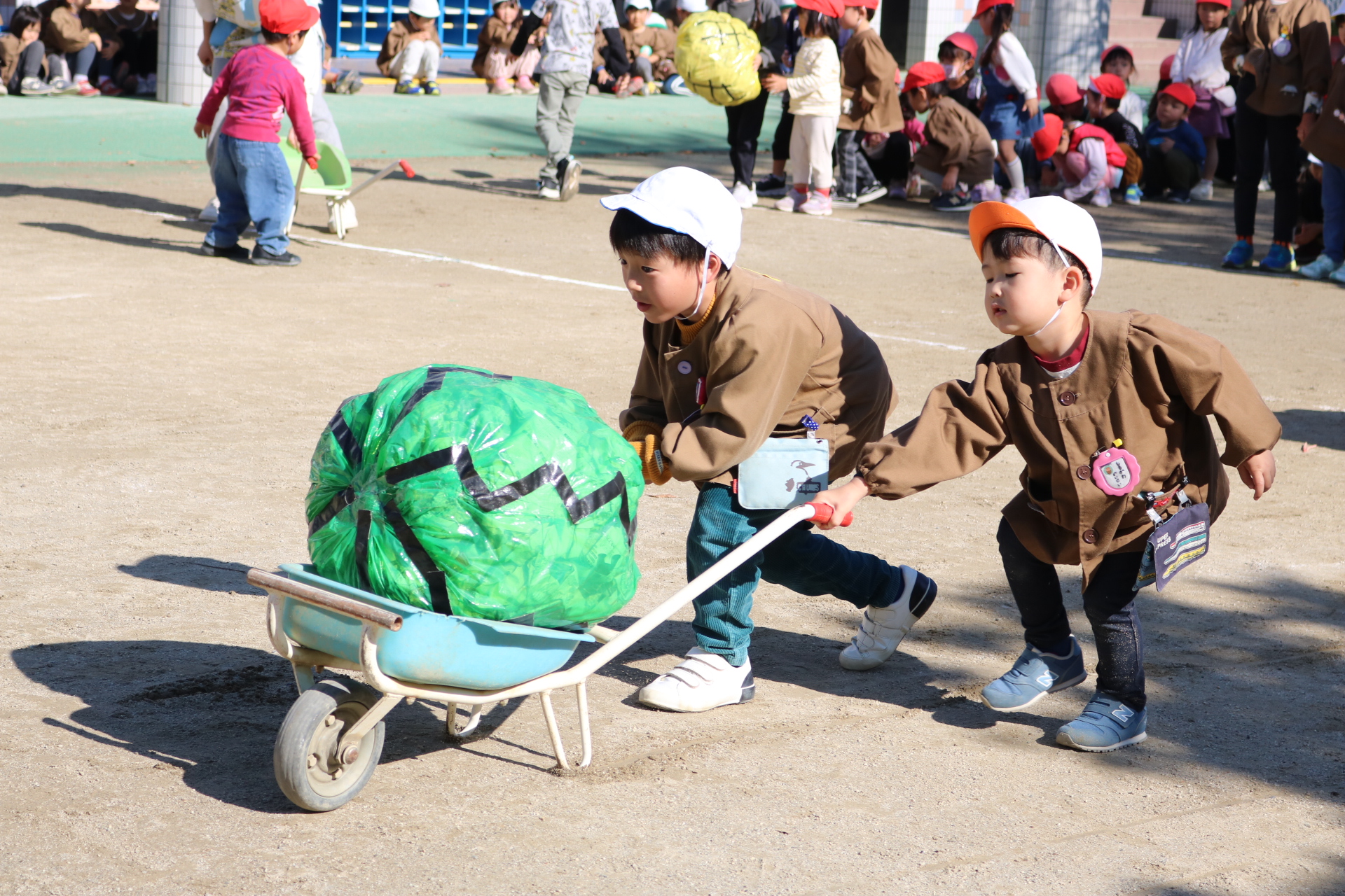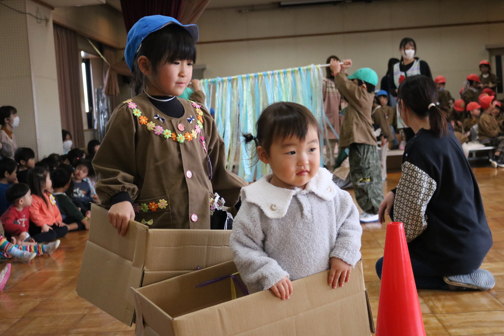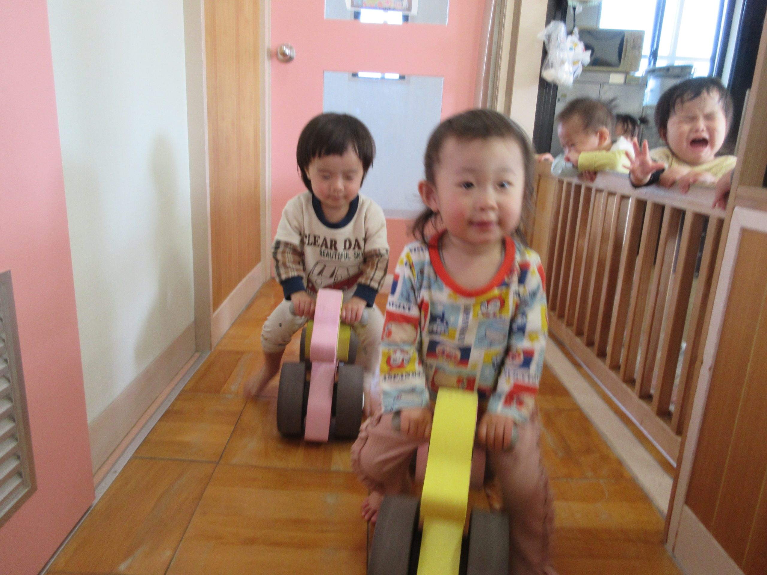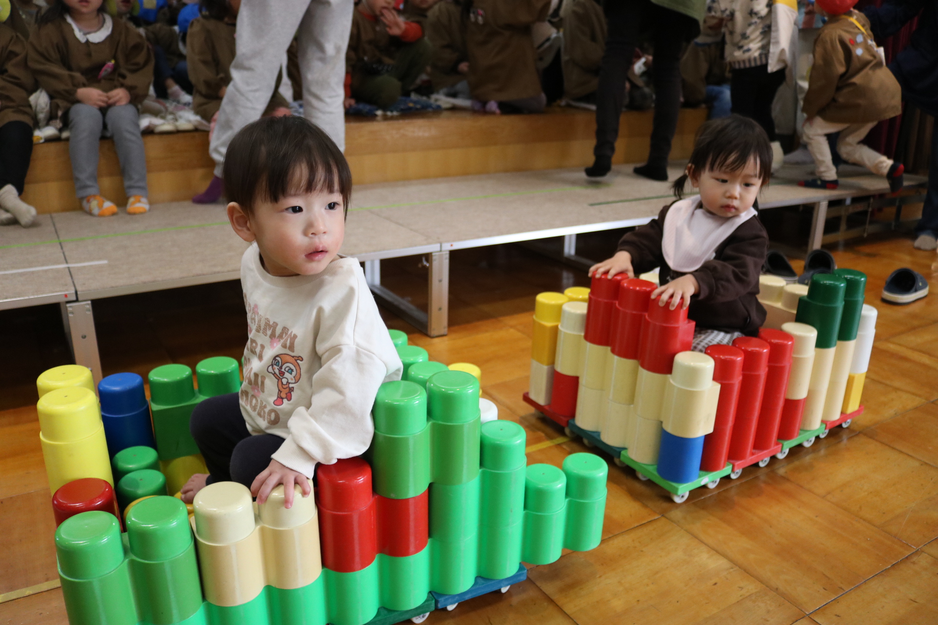電車や車に乗ったり、玉入れやボール運びなどいろんなゲームを楽しみましたよ😆