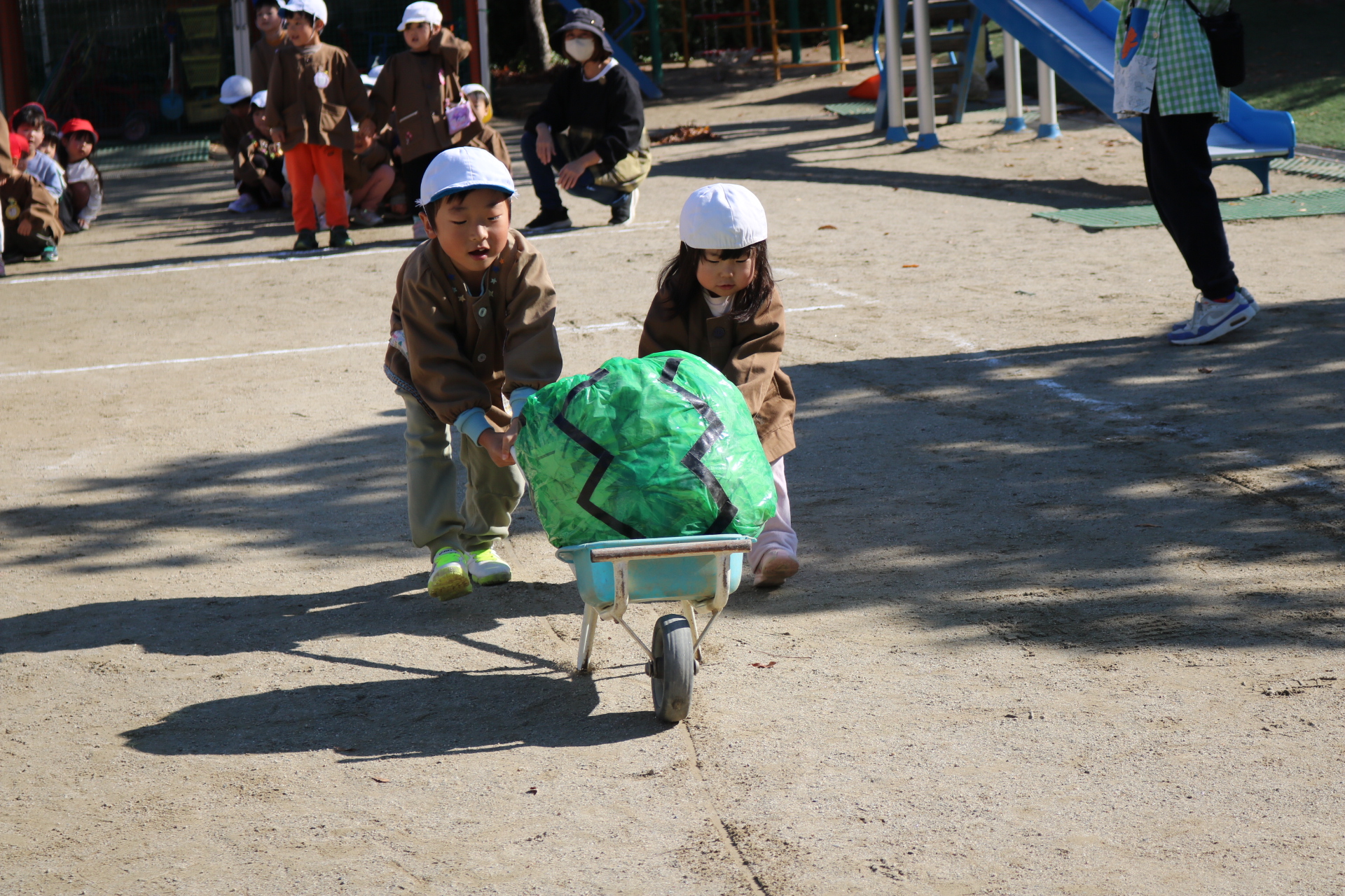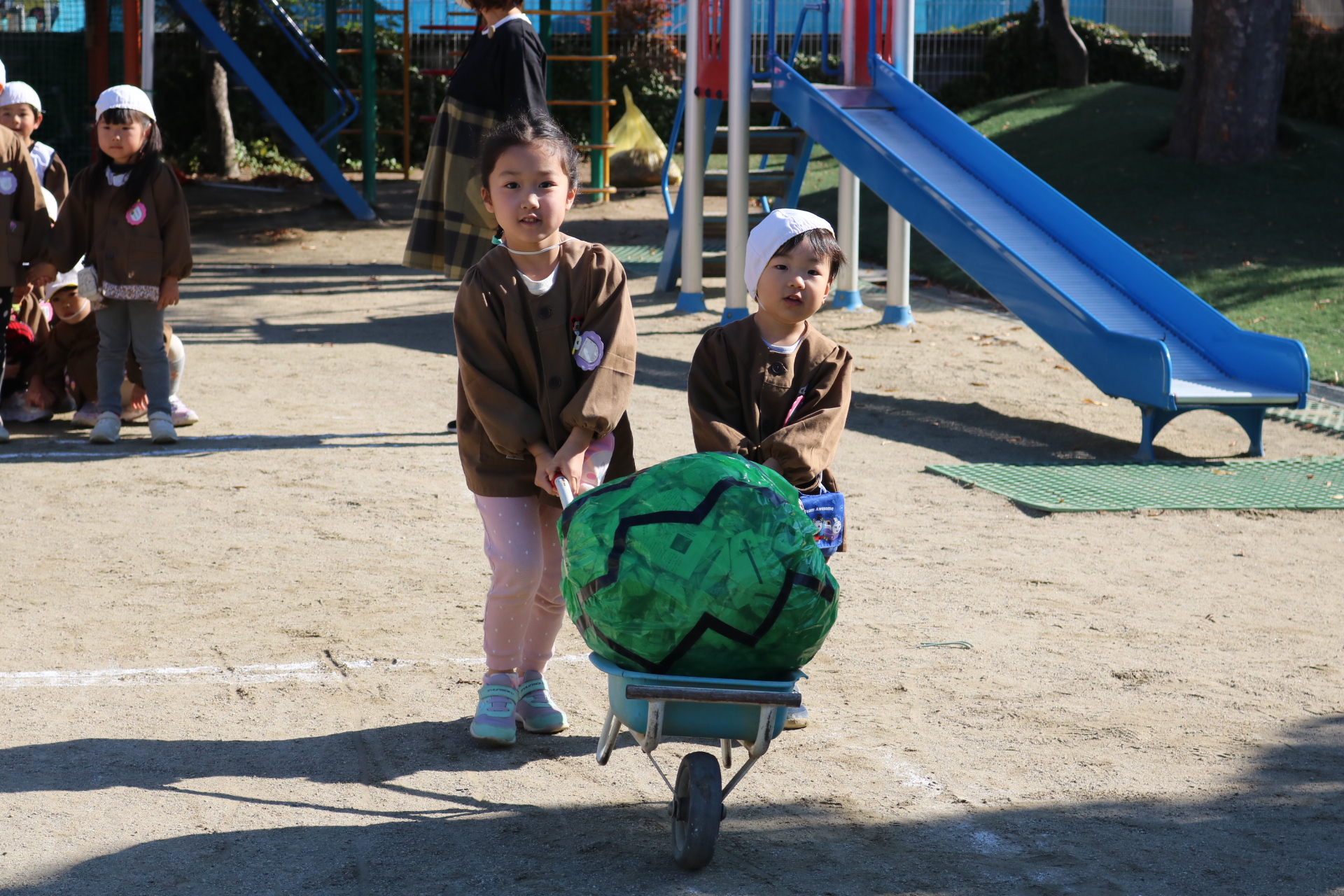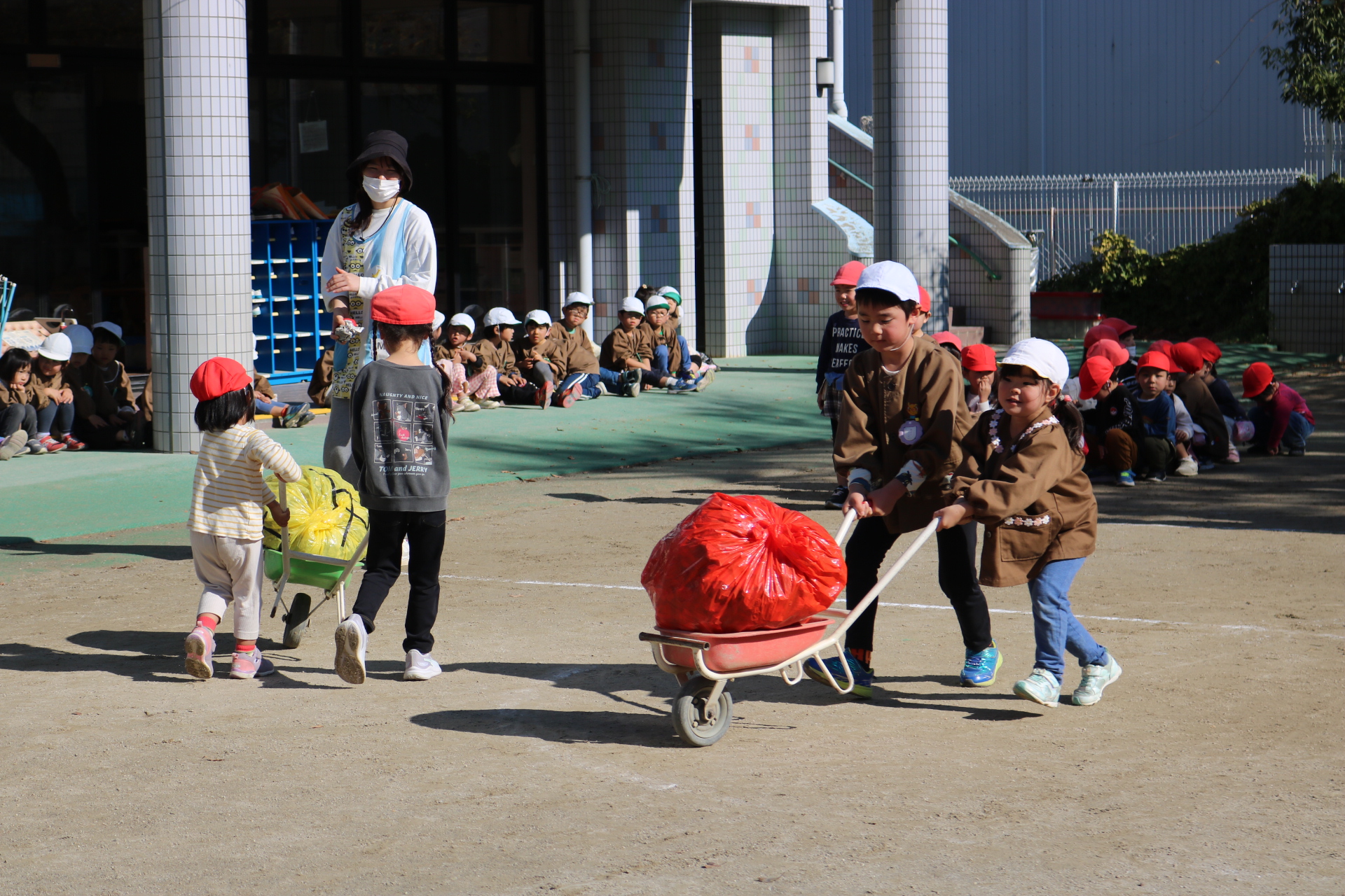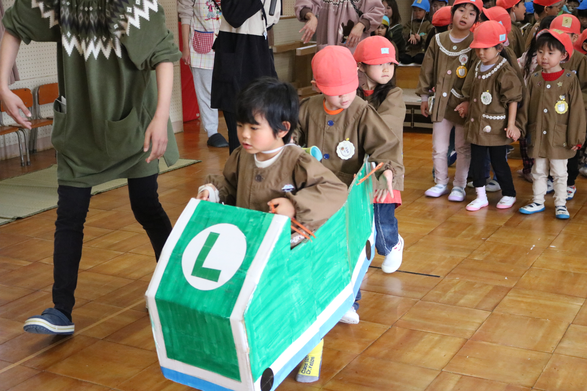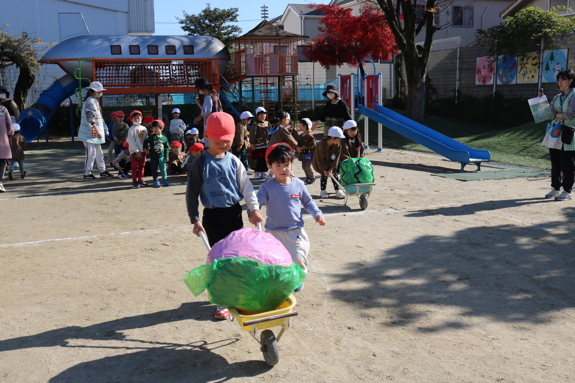 電車や車に乗ったり、玉入れやボール運びなどいろんなゲームを楽しみましたよ😆