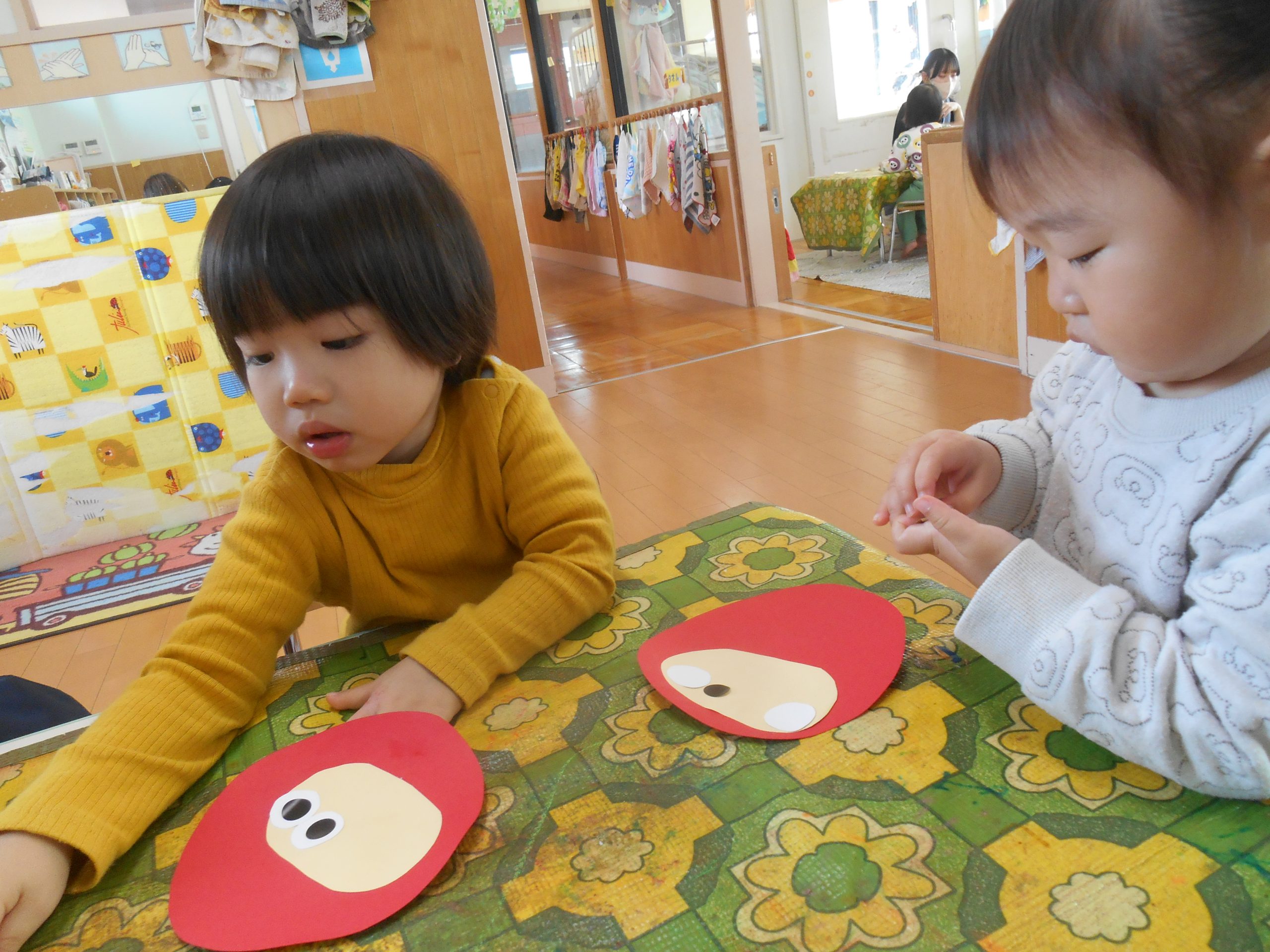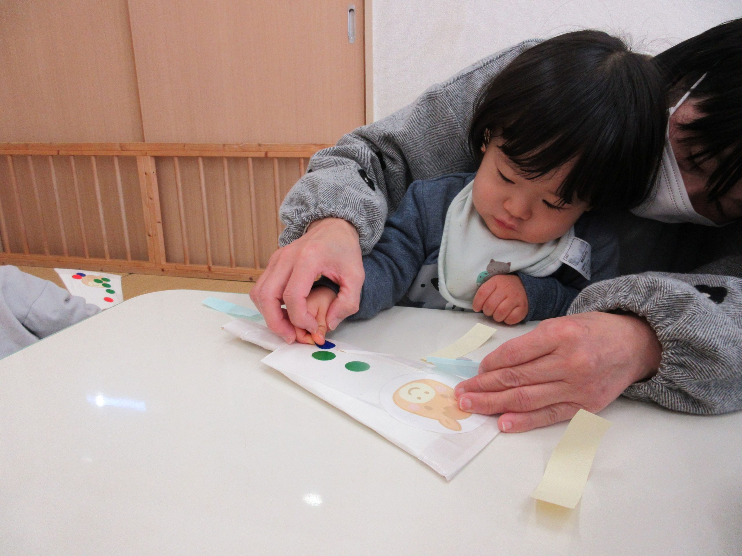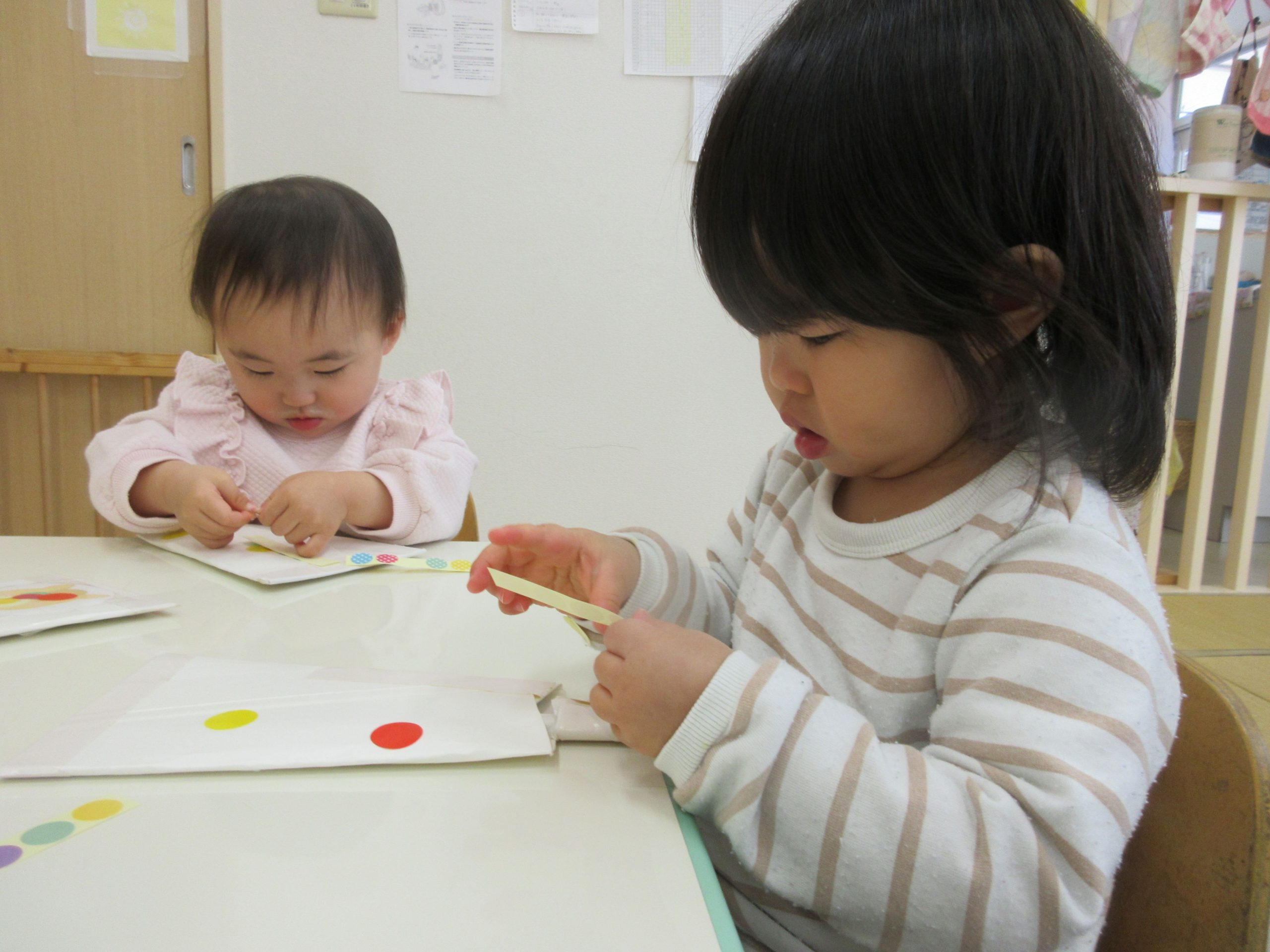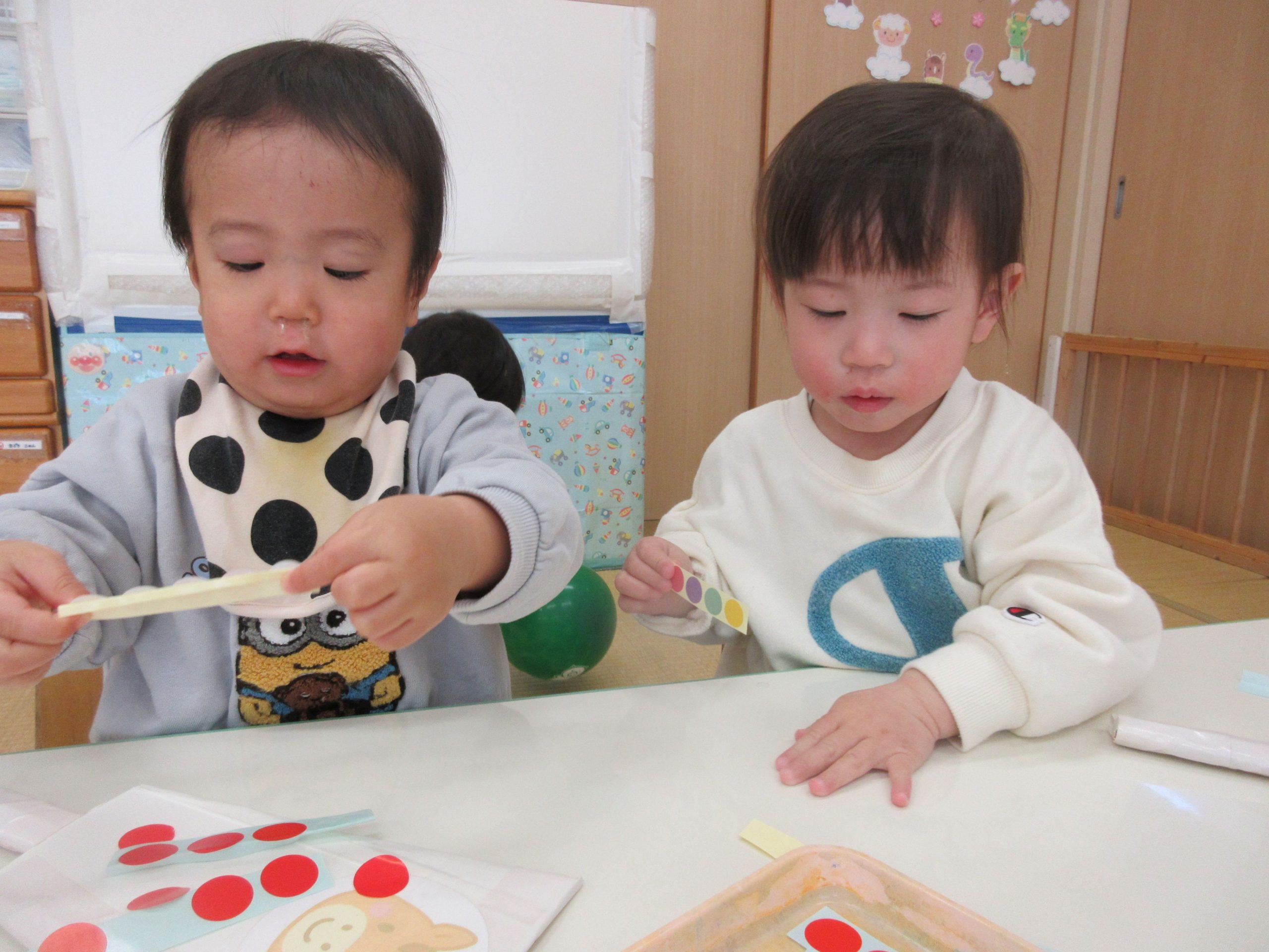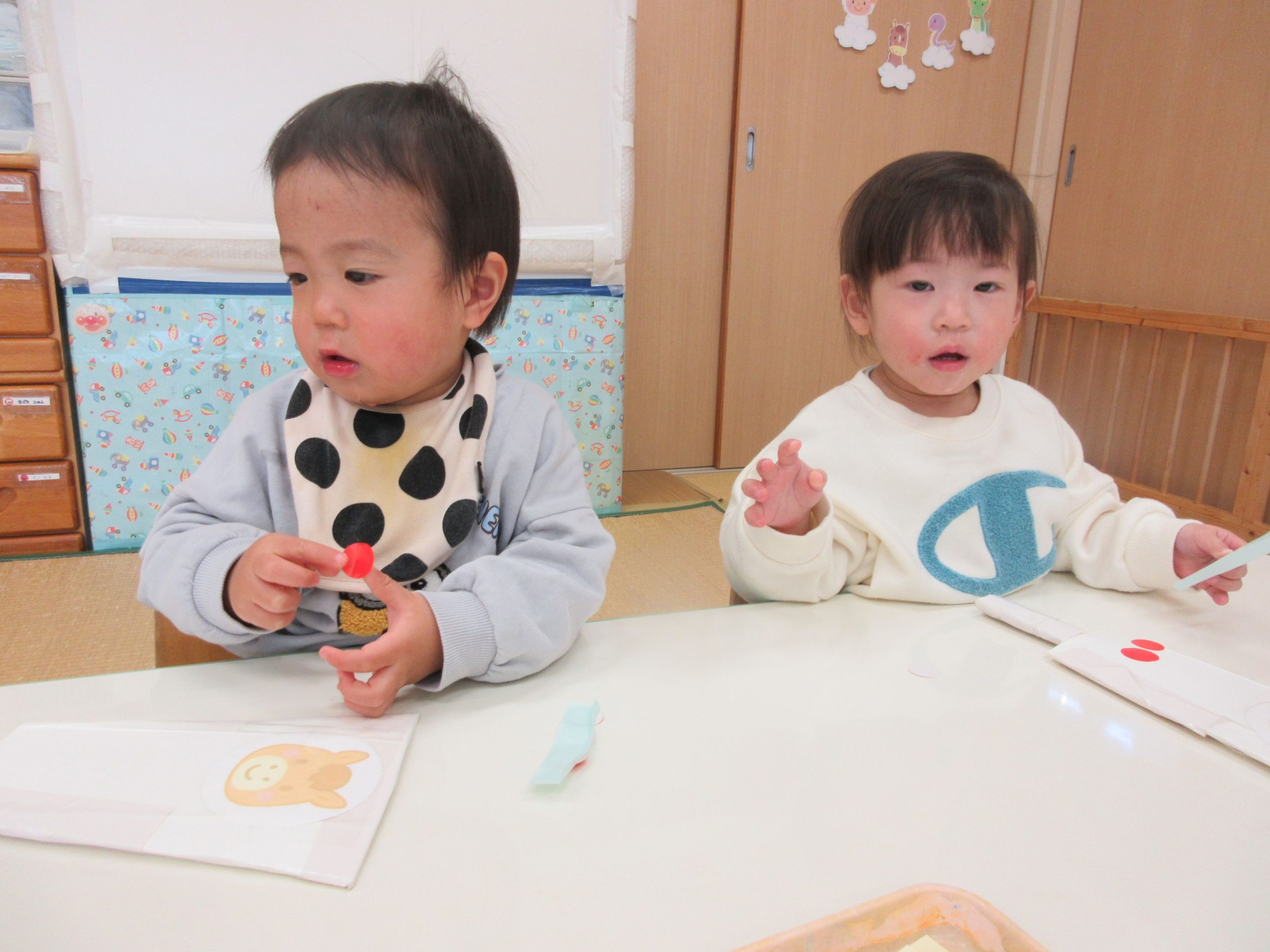 2歳児クラスのお友だちが、フィンガーペイントを楽しみましたよ😊