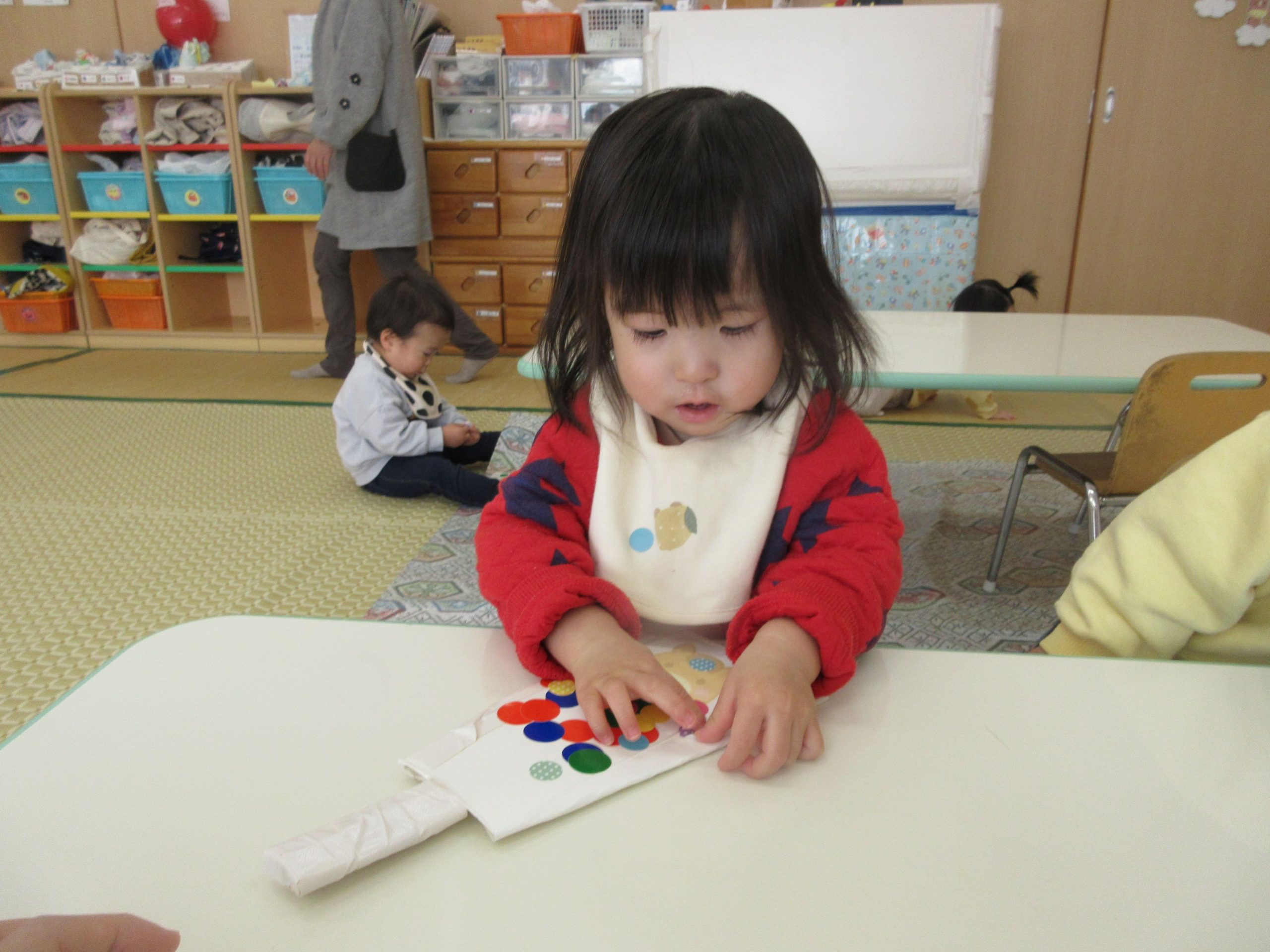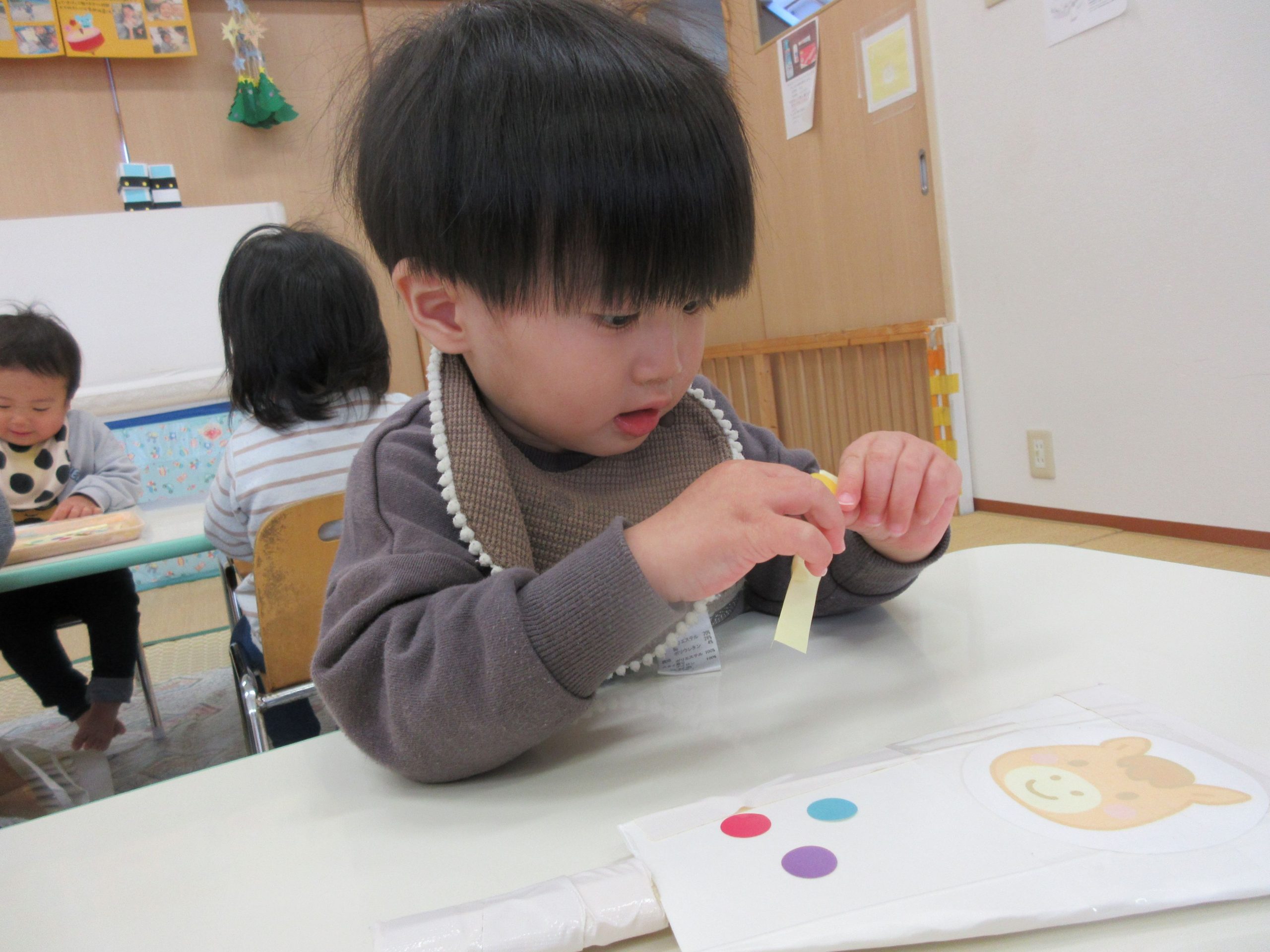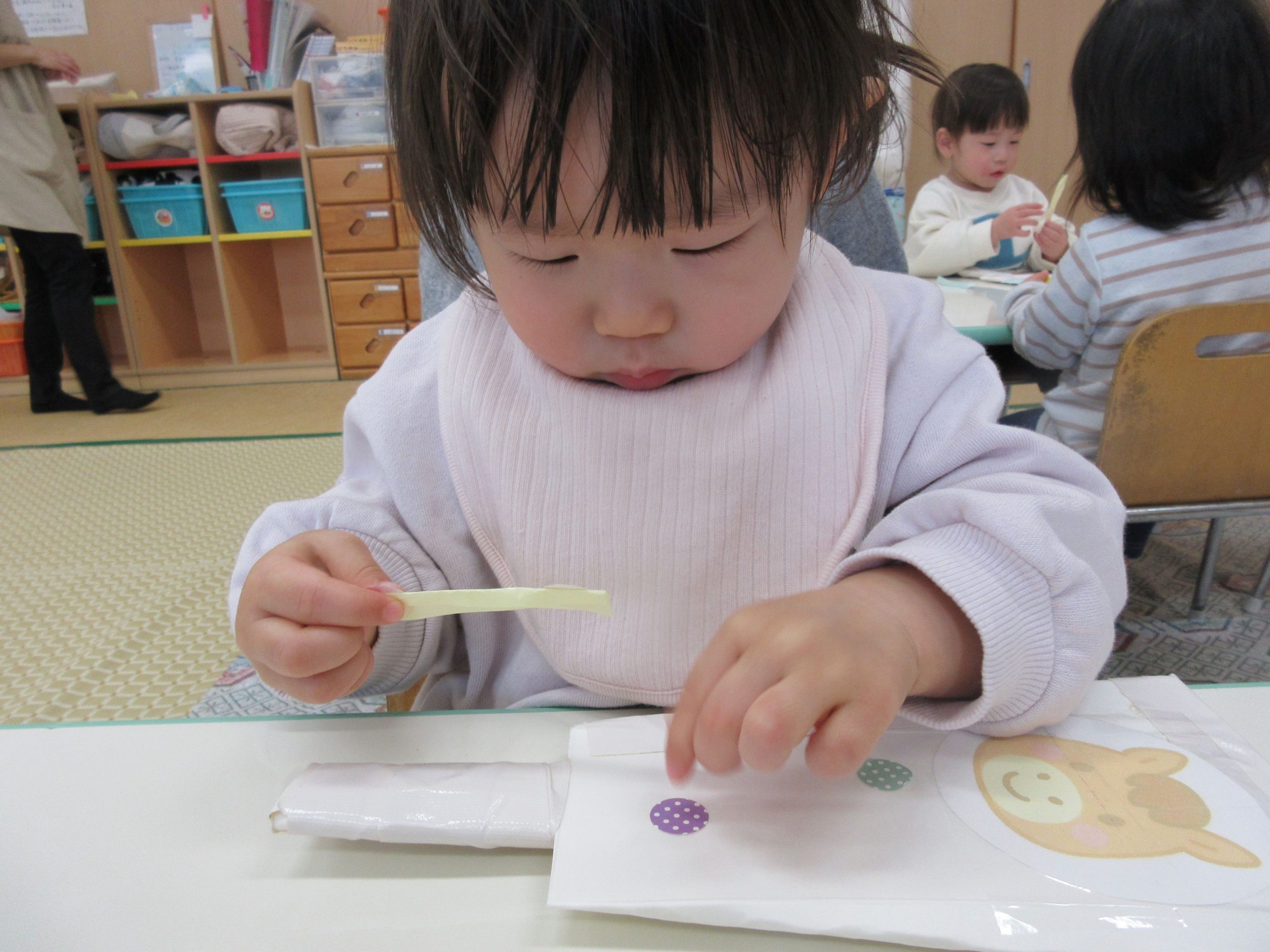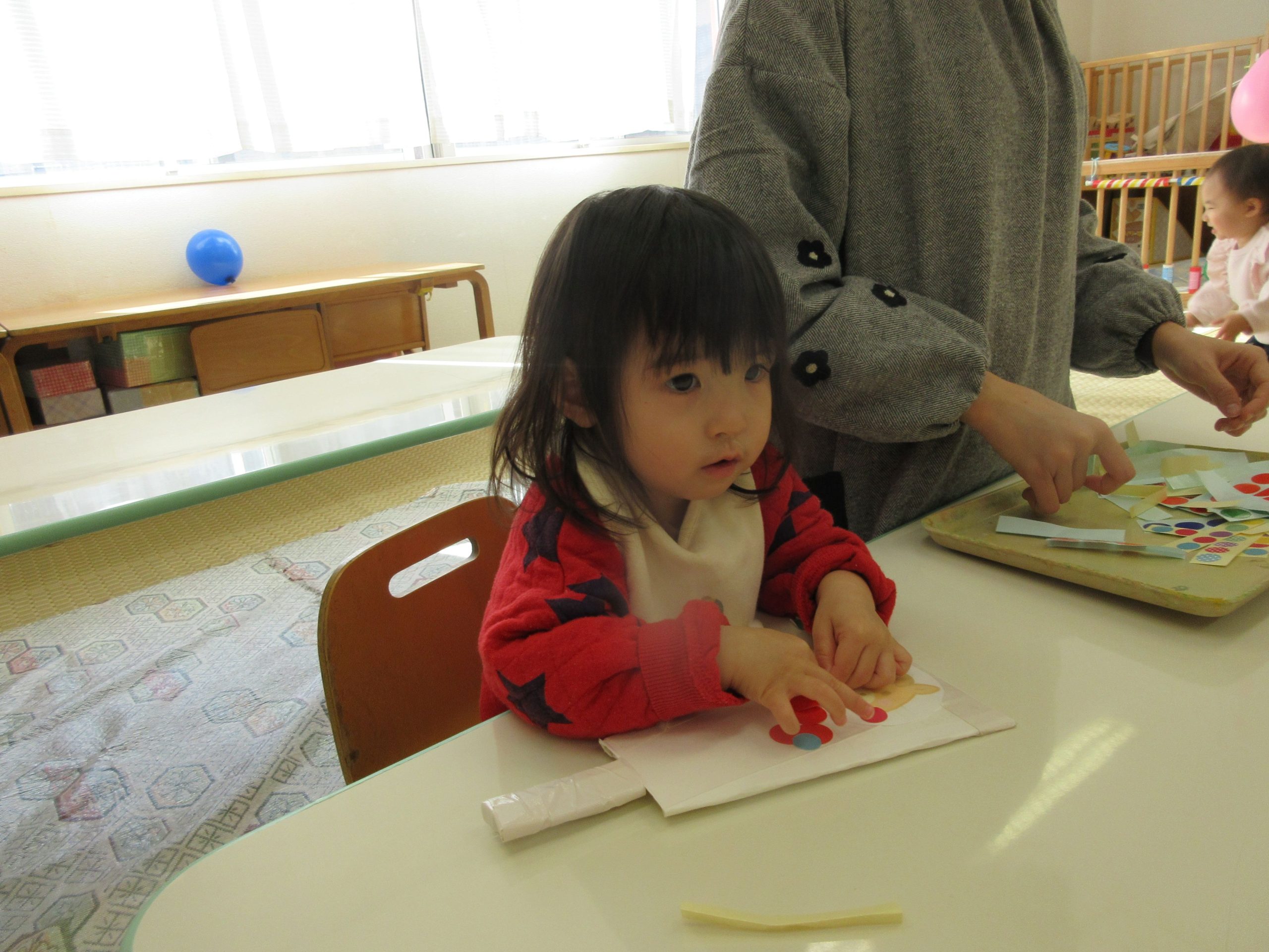 2歳児クラスのお友だちが、フィンガーペイントを楽しみましたよ😊