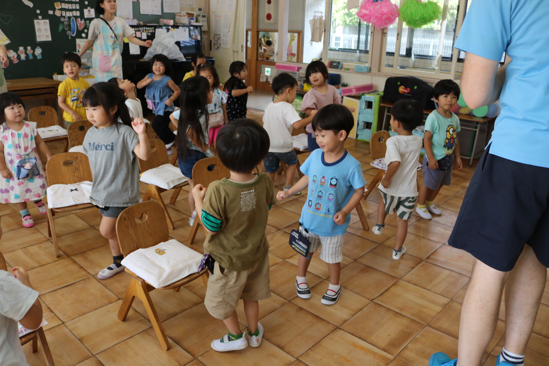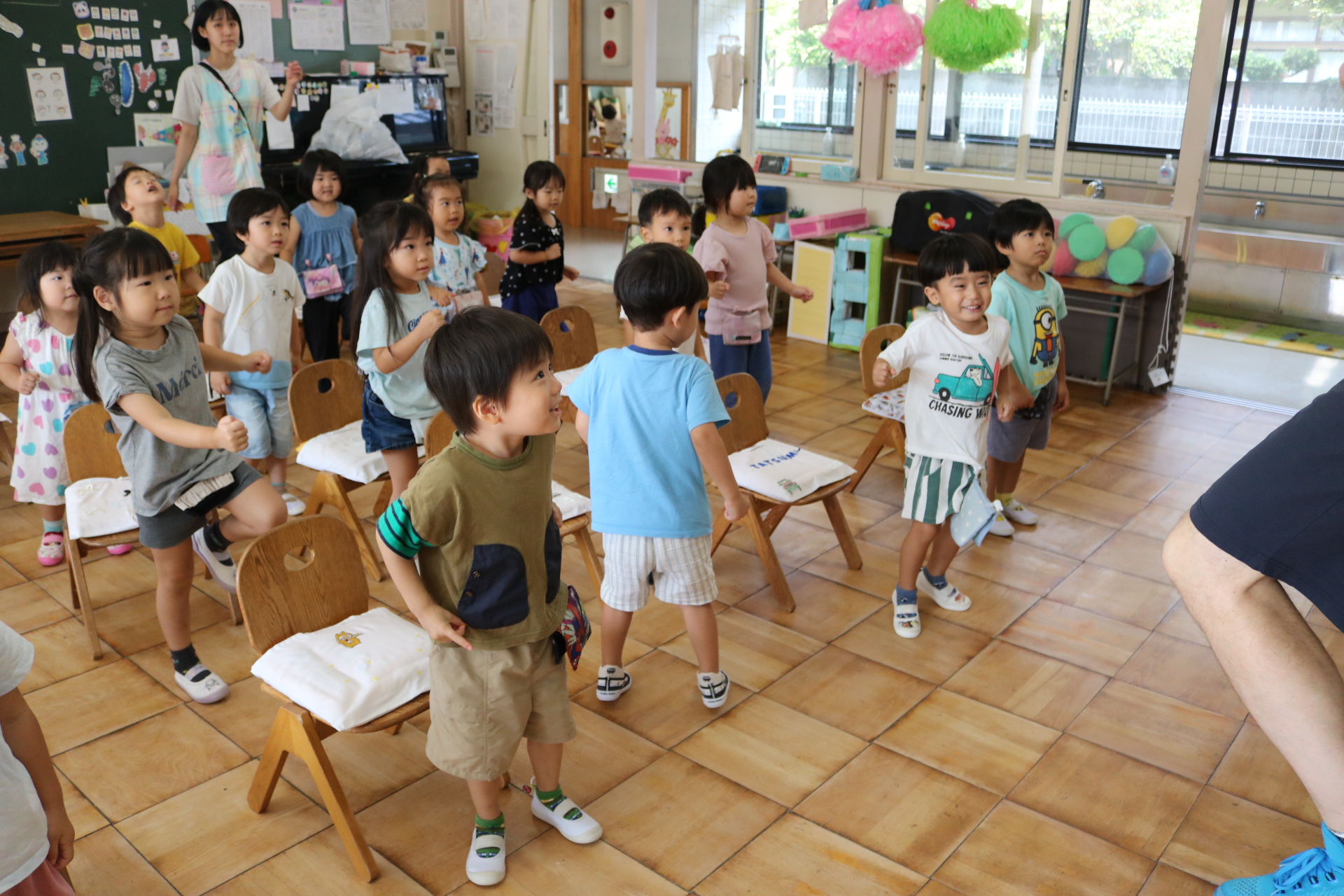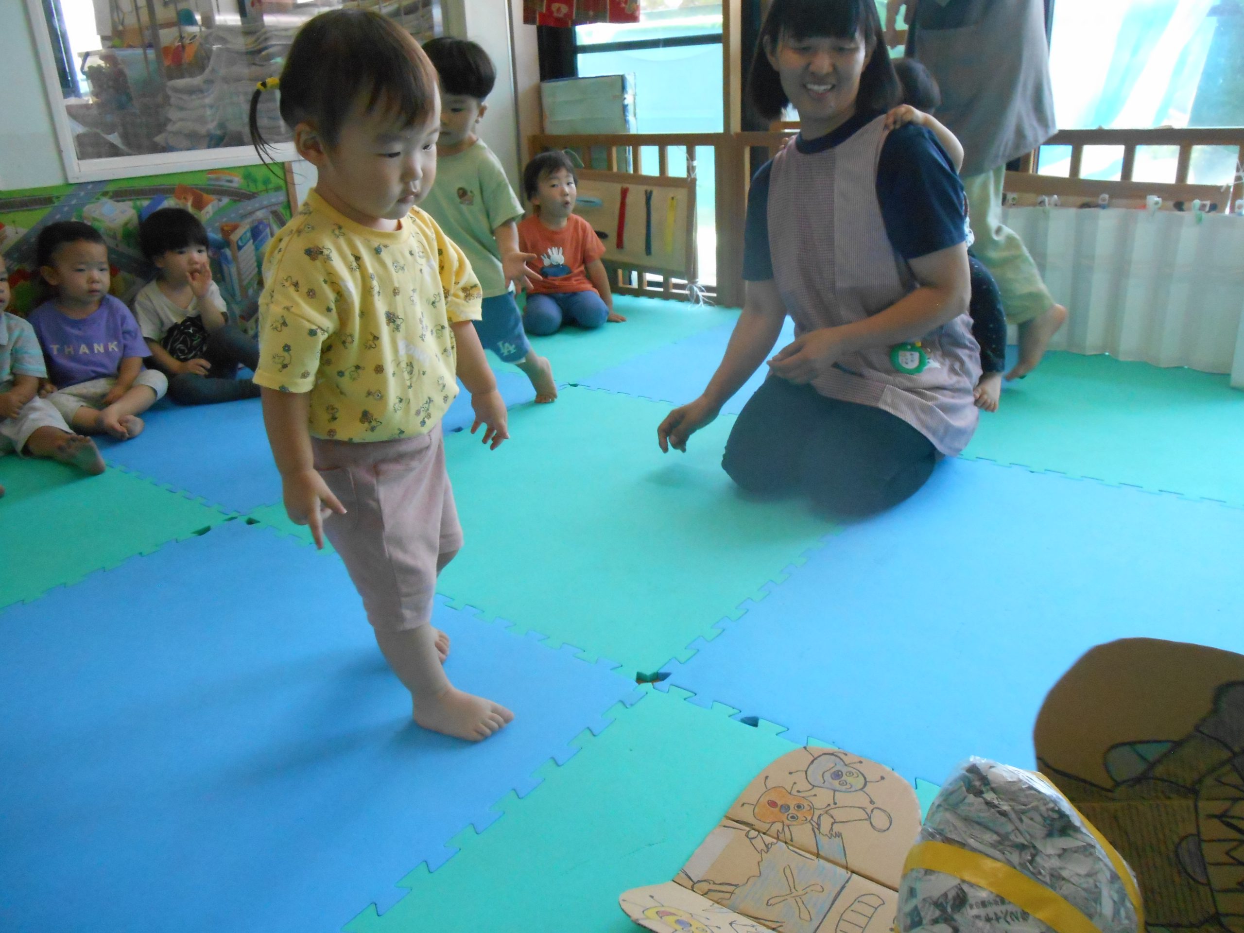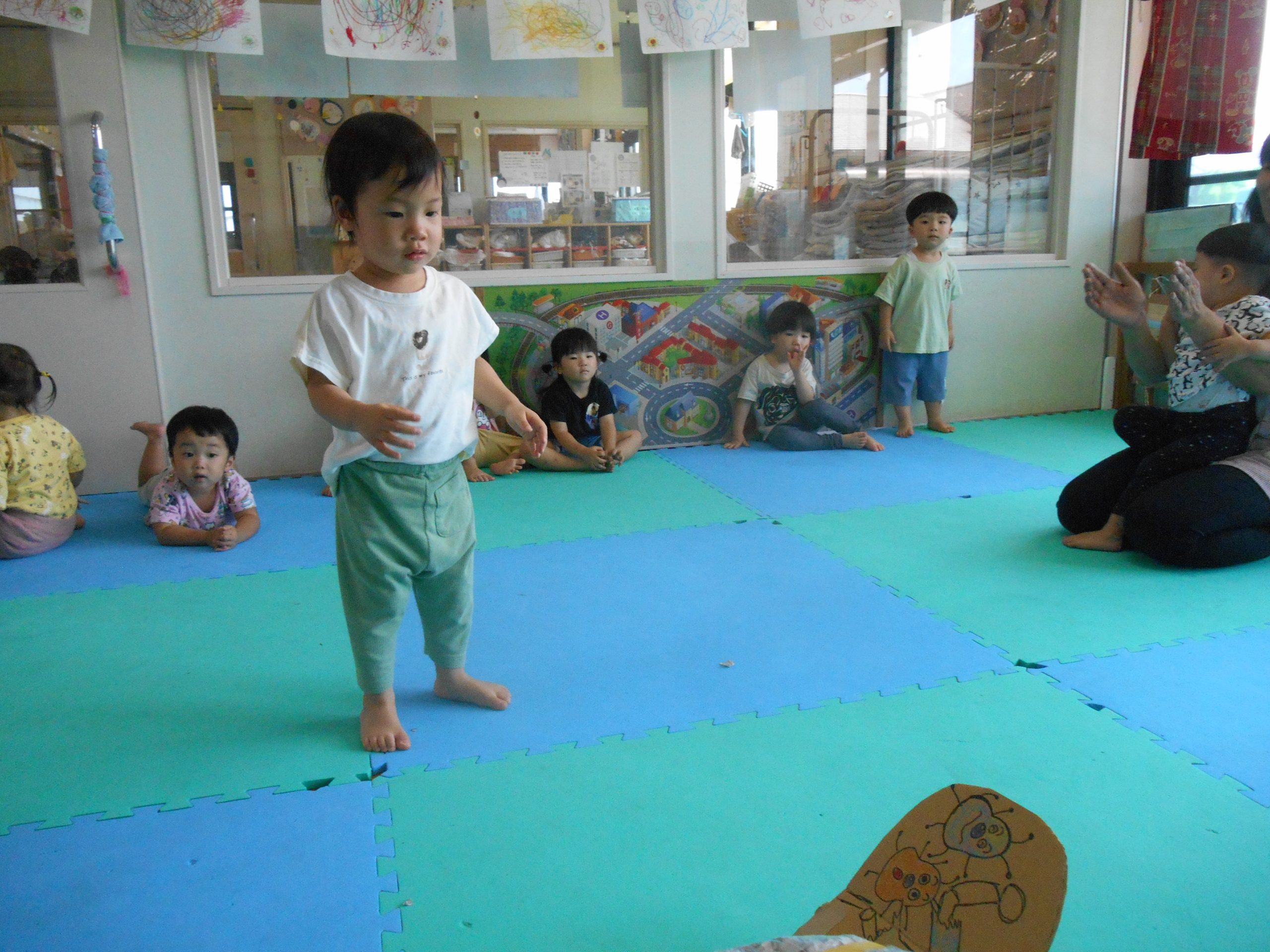 実習の先生とお絵描きしたり、体操をして楽しみました😊