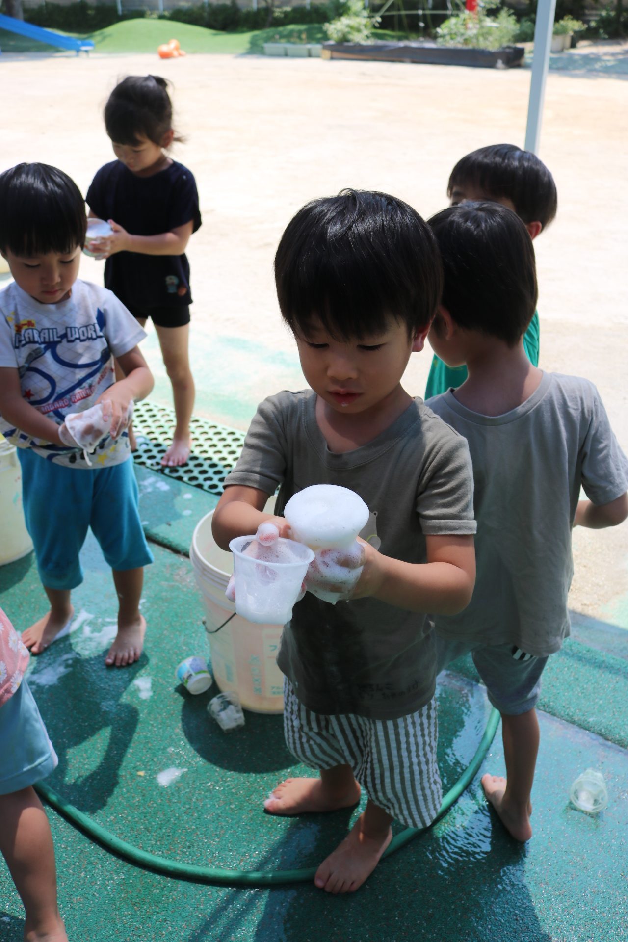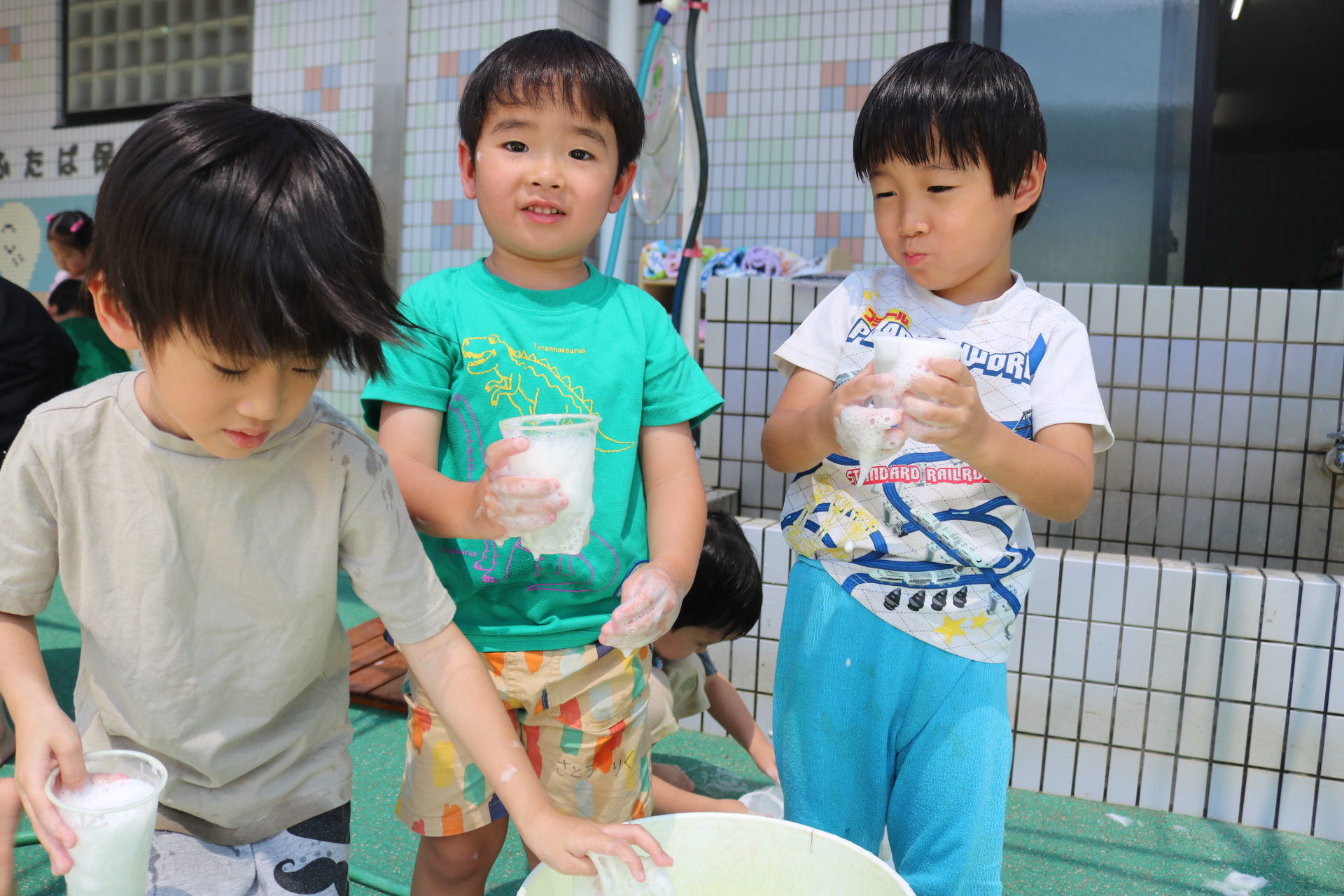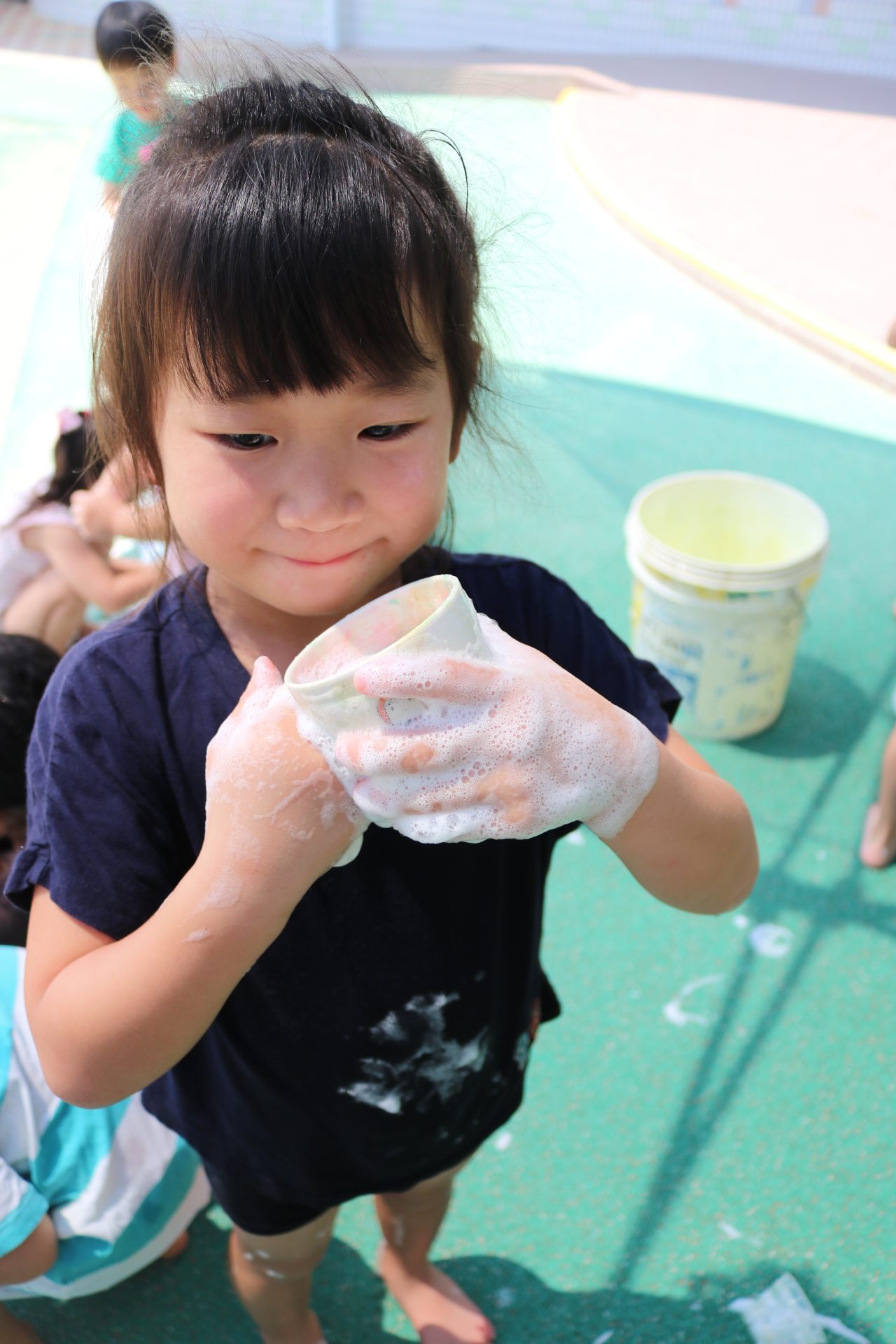 あわあわ遊びしたよ😊(あじさい組)
