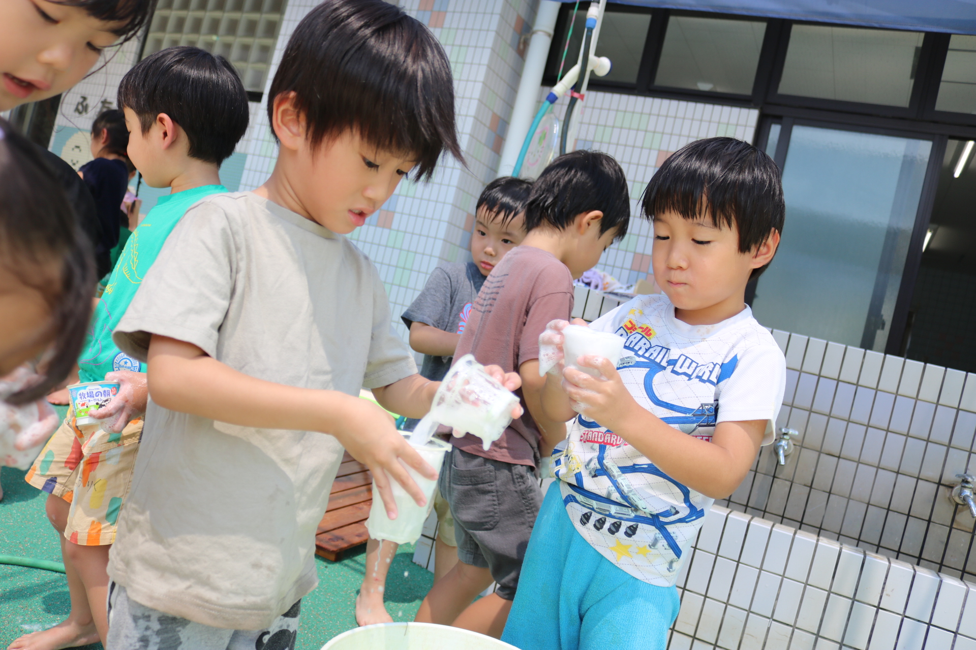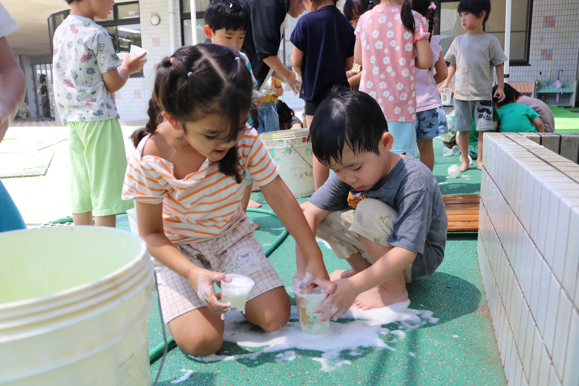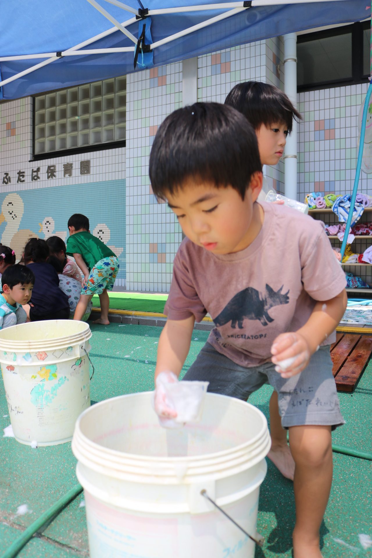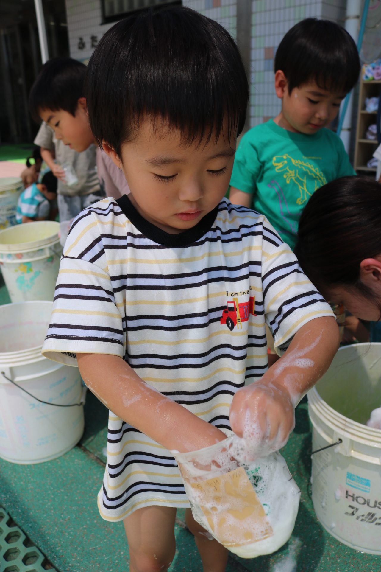 あわあわ遊びしたよ😊(あじさい組)