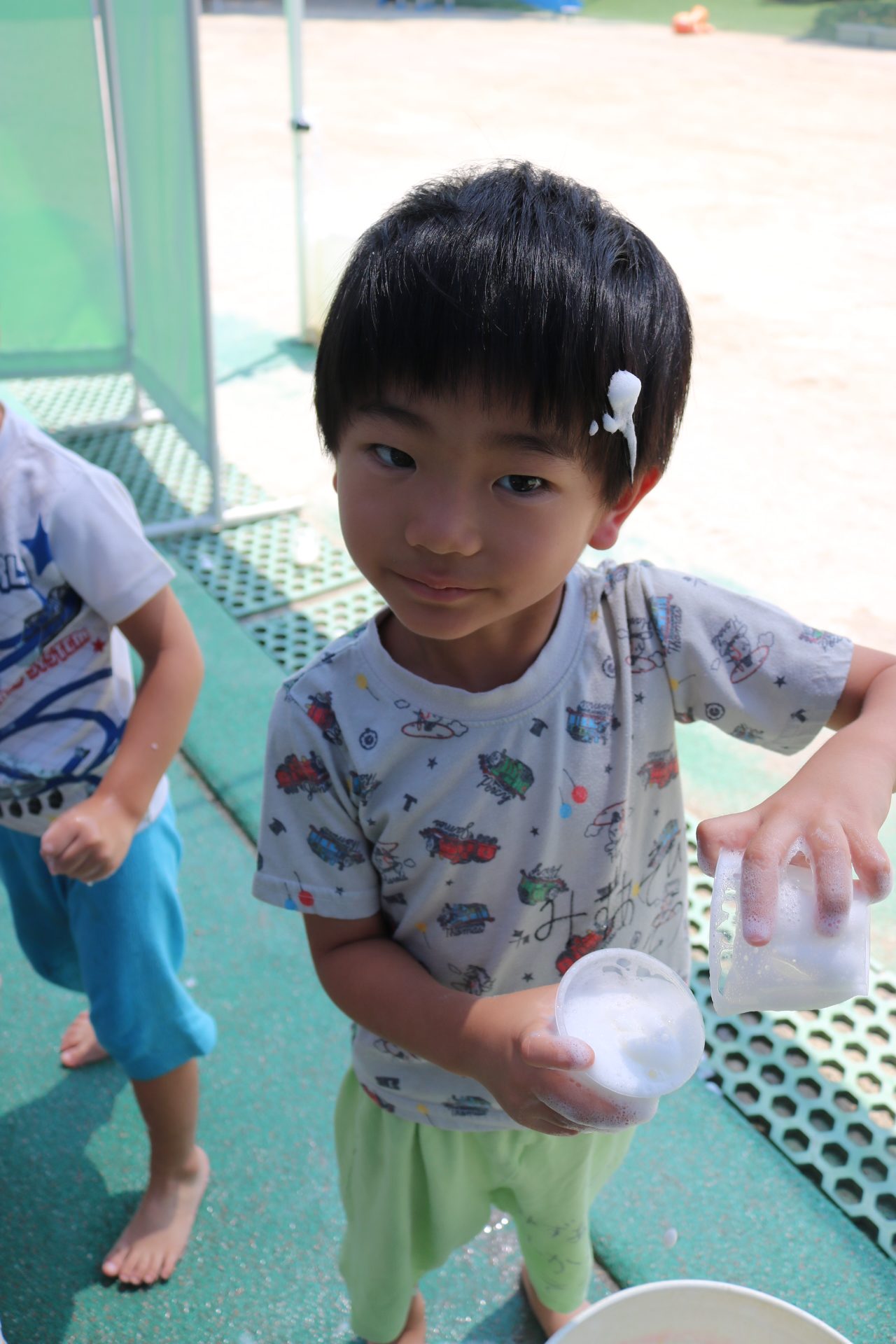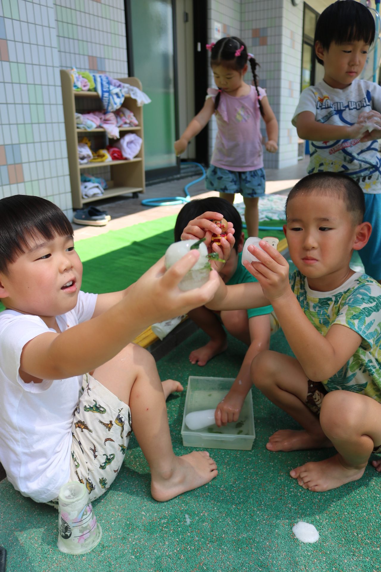 泡の感触や氷の気持ち良さを感じながら遊びを満喫しました😊