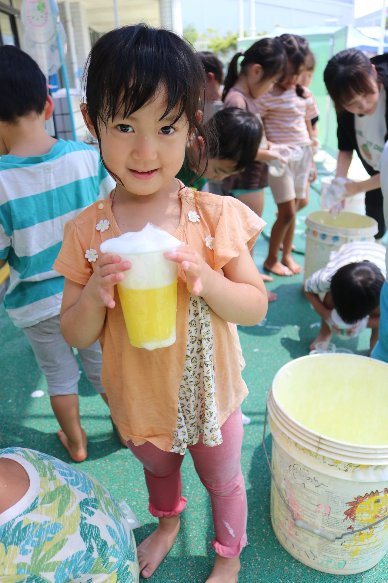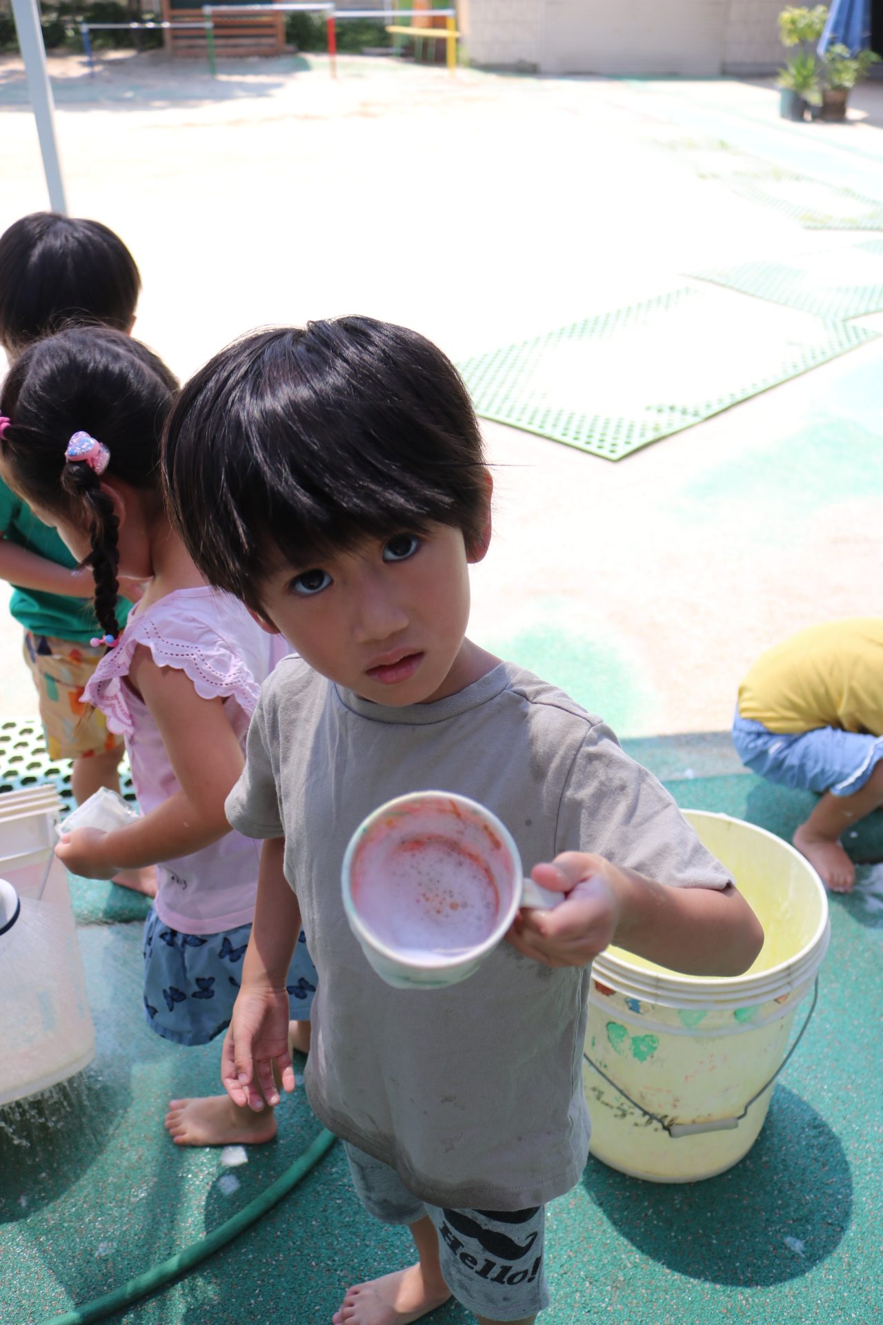 みんなで天気が良かったので、色水遊びや泥んこをして遊んだよ😊