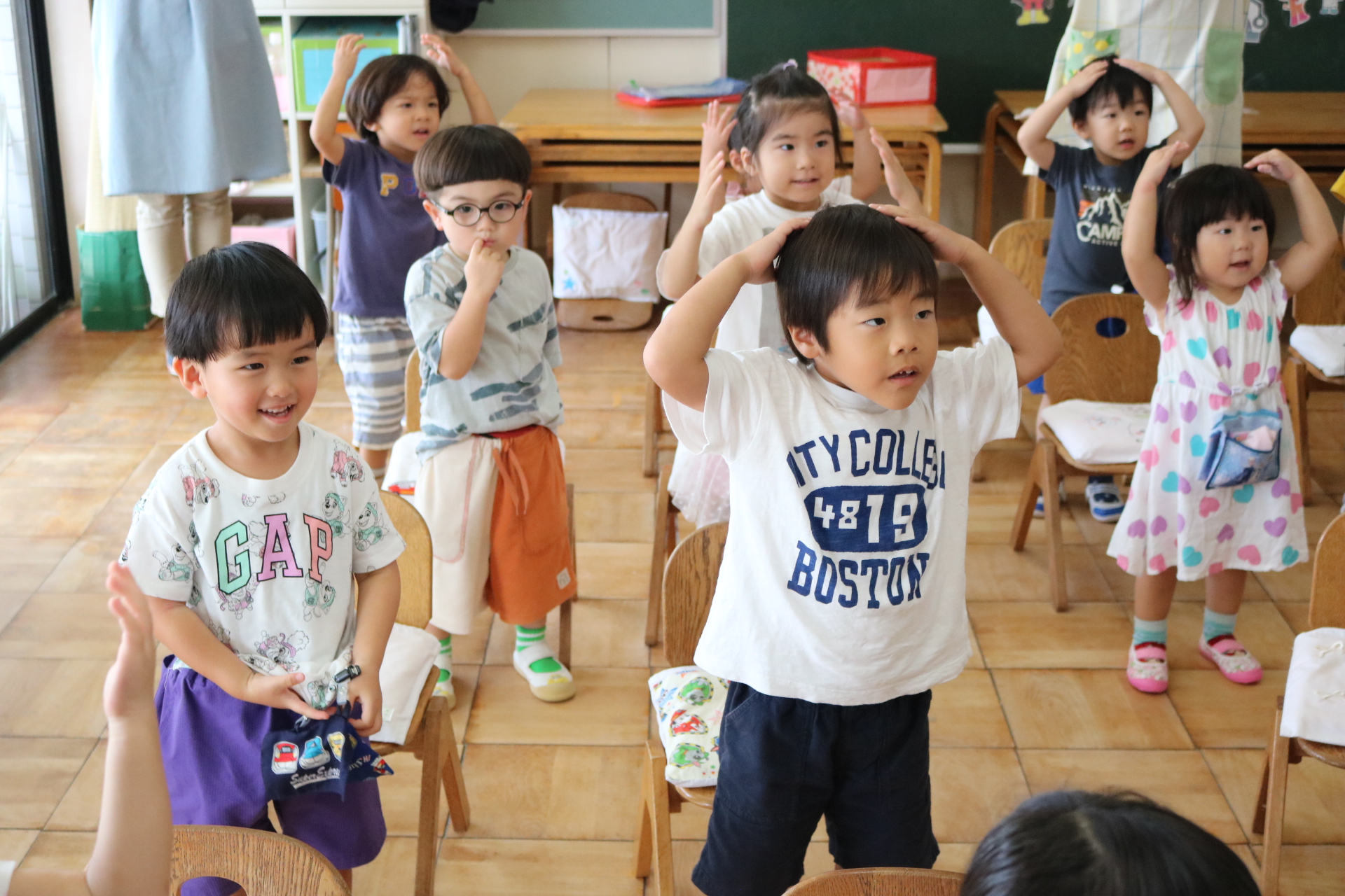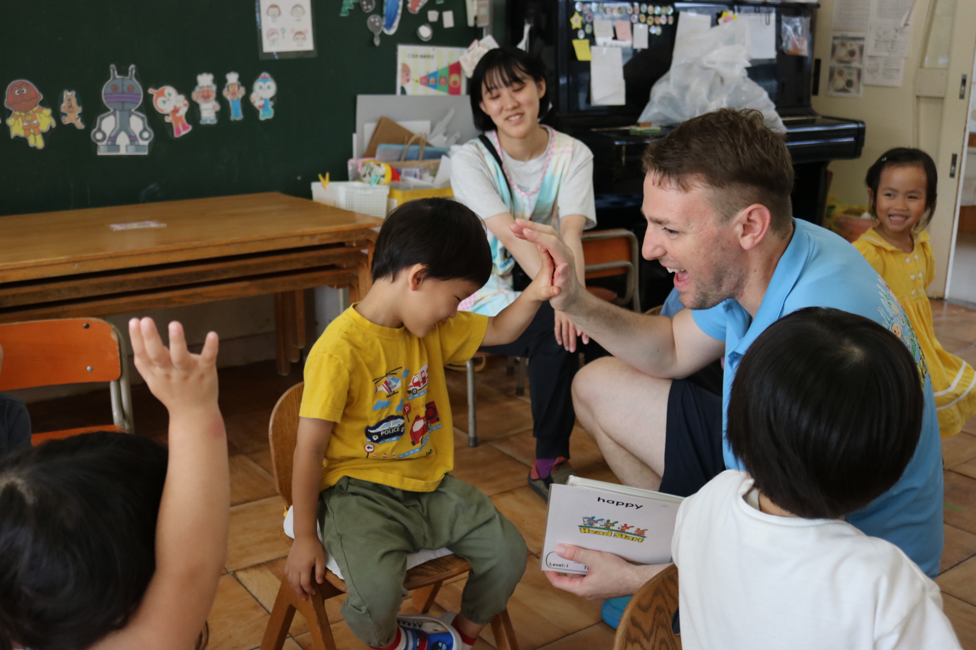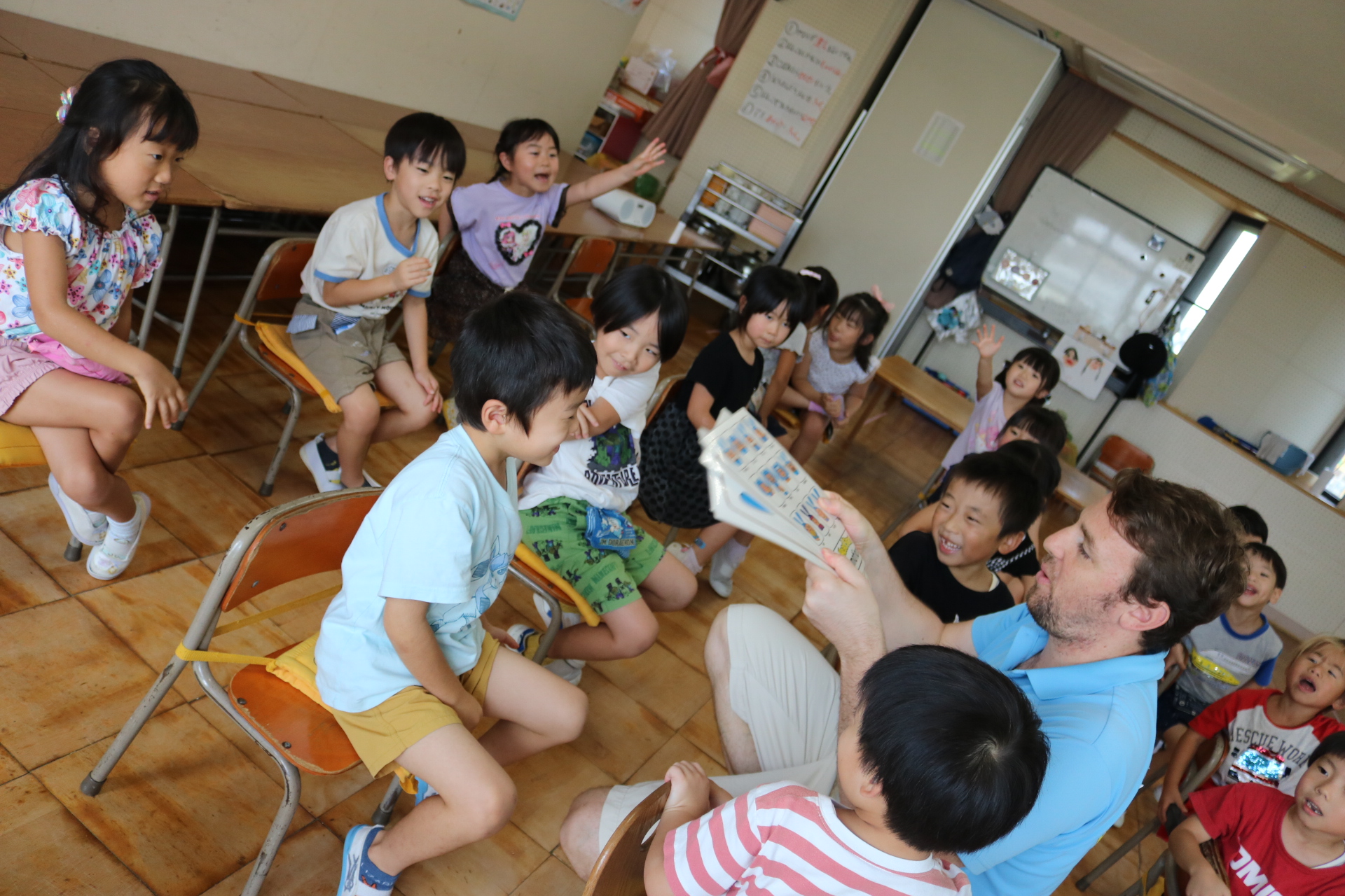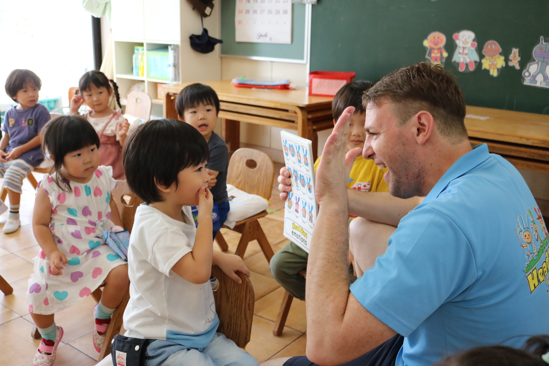 クリス先生と曲に合わせて踊ったり、英語を発音したり・・・