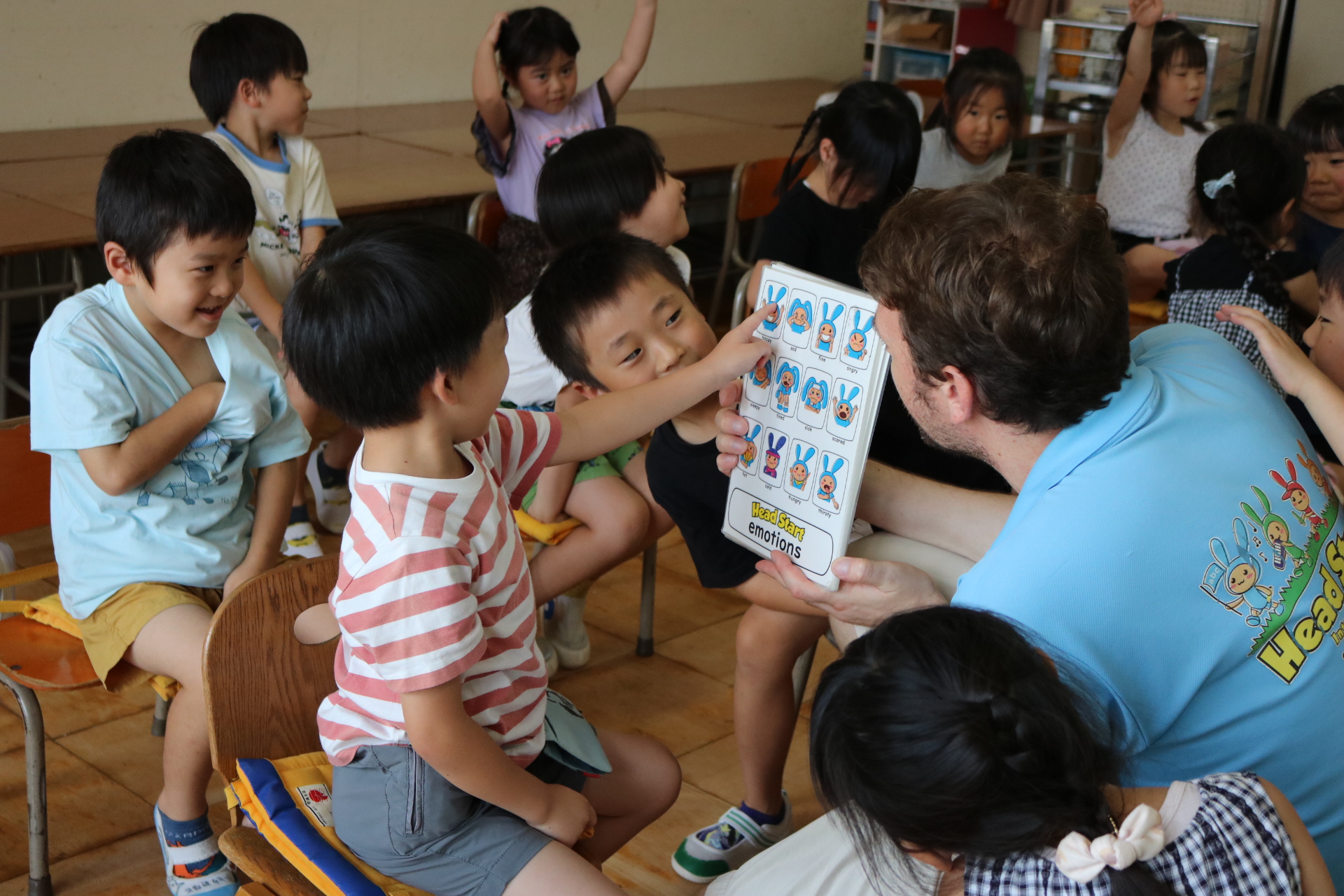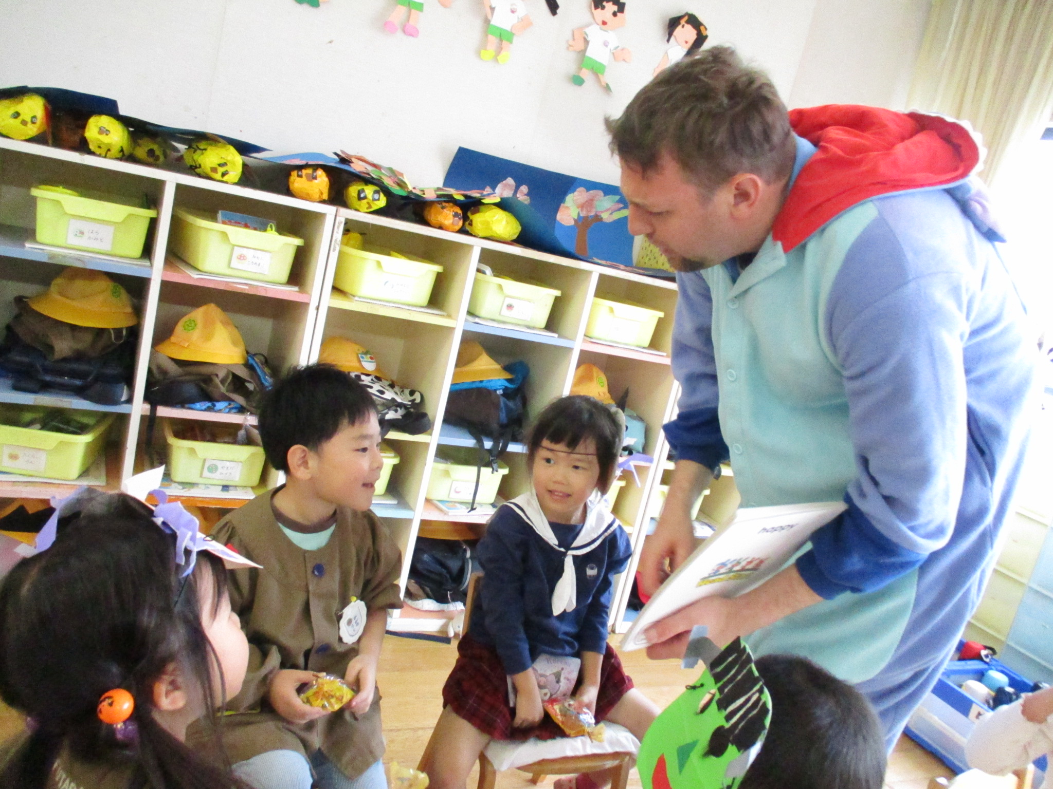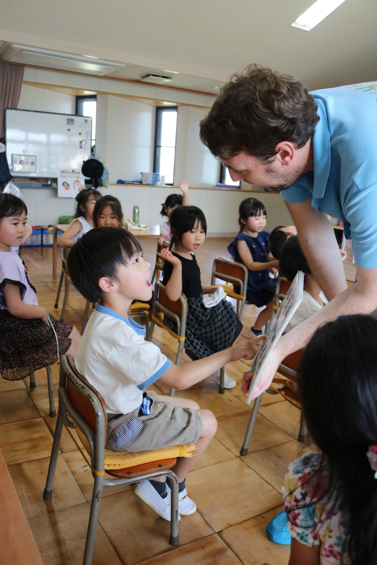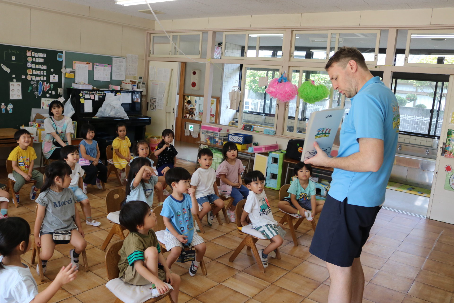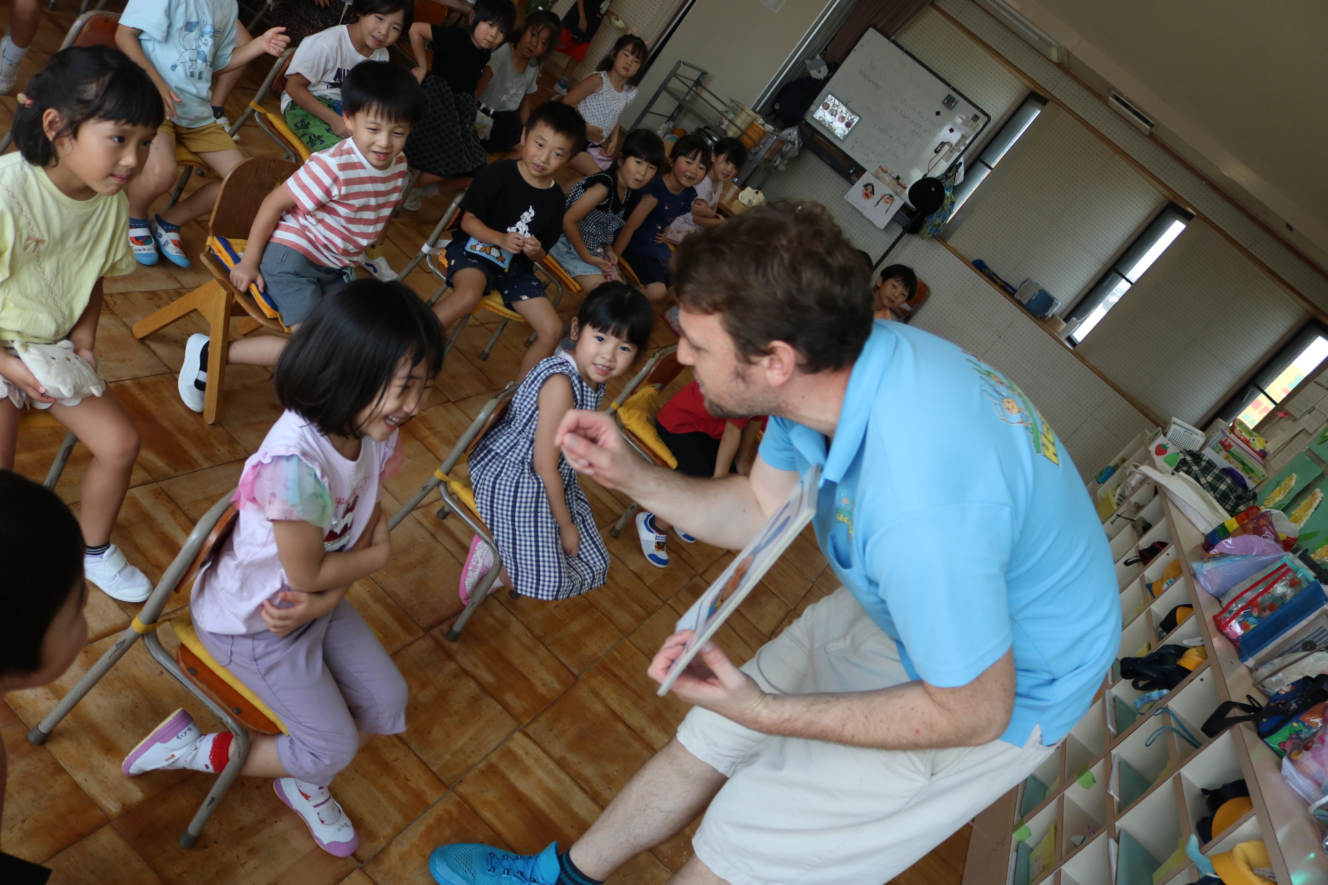 クリス先生と曲に合わせて踊ったり、英語を発音したり・・・