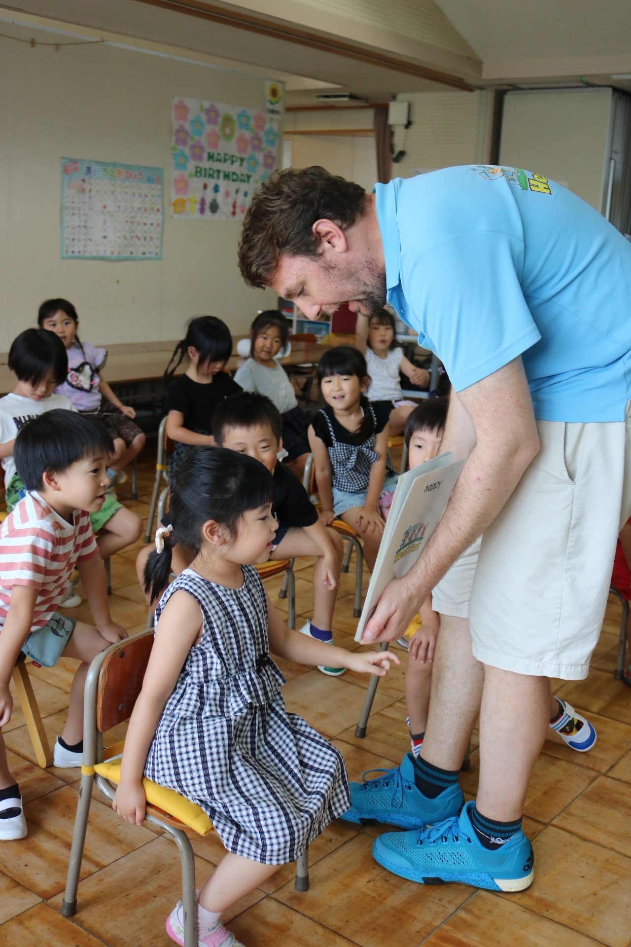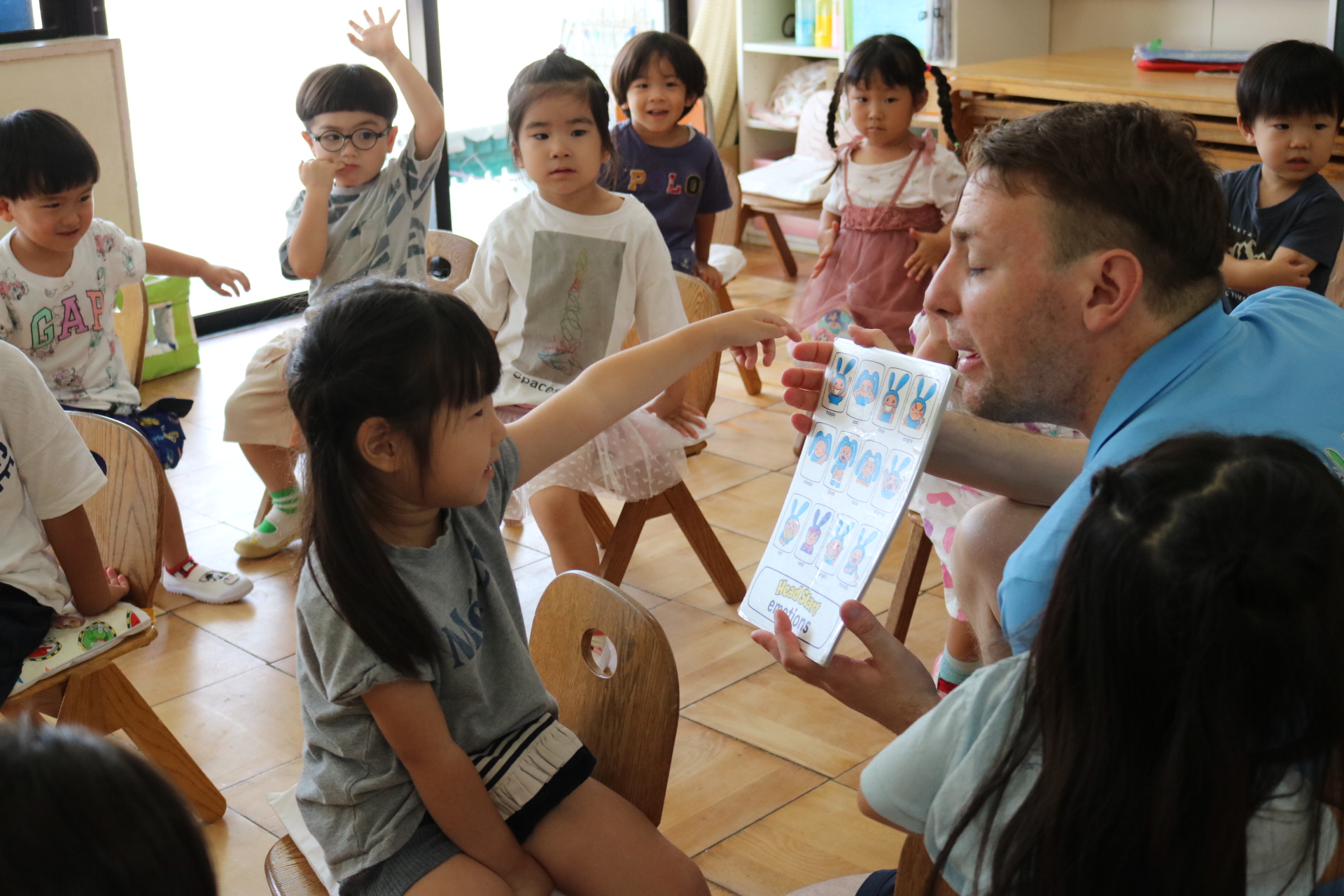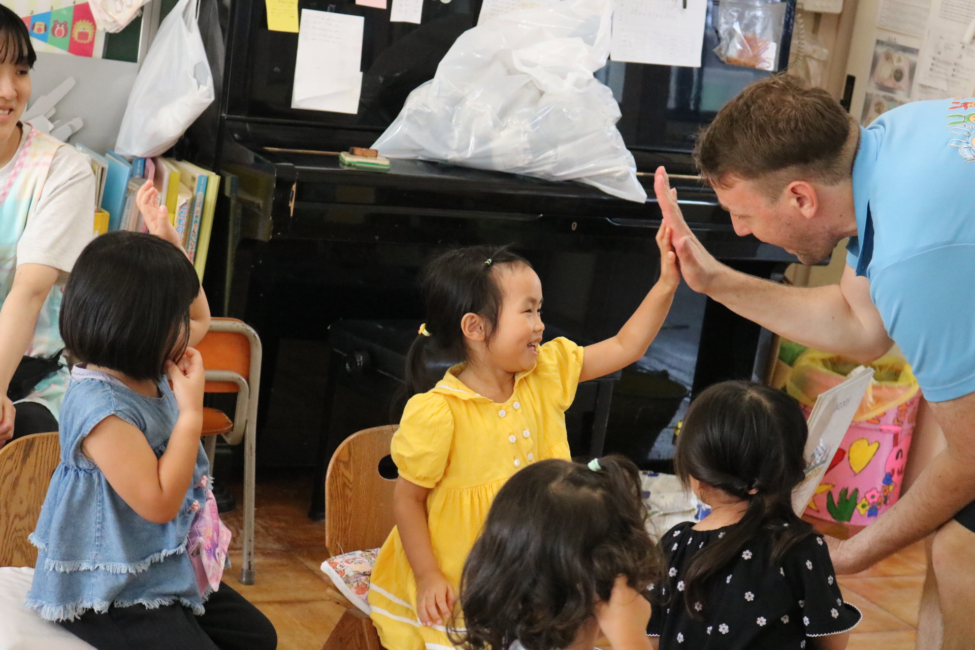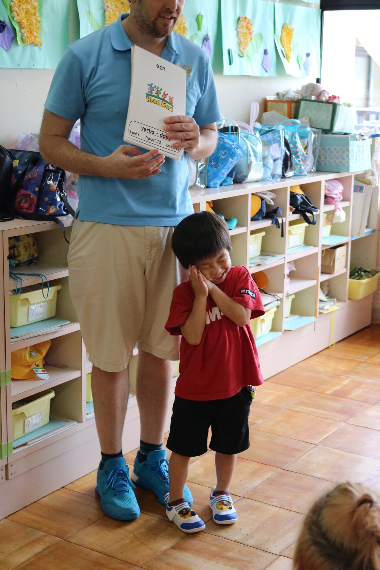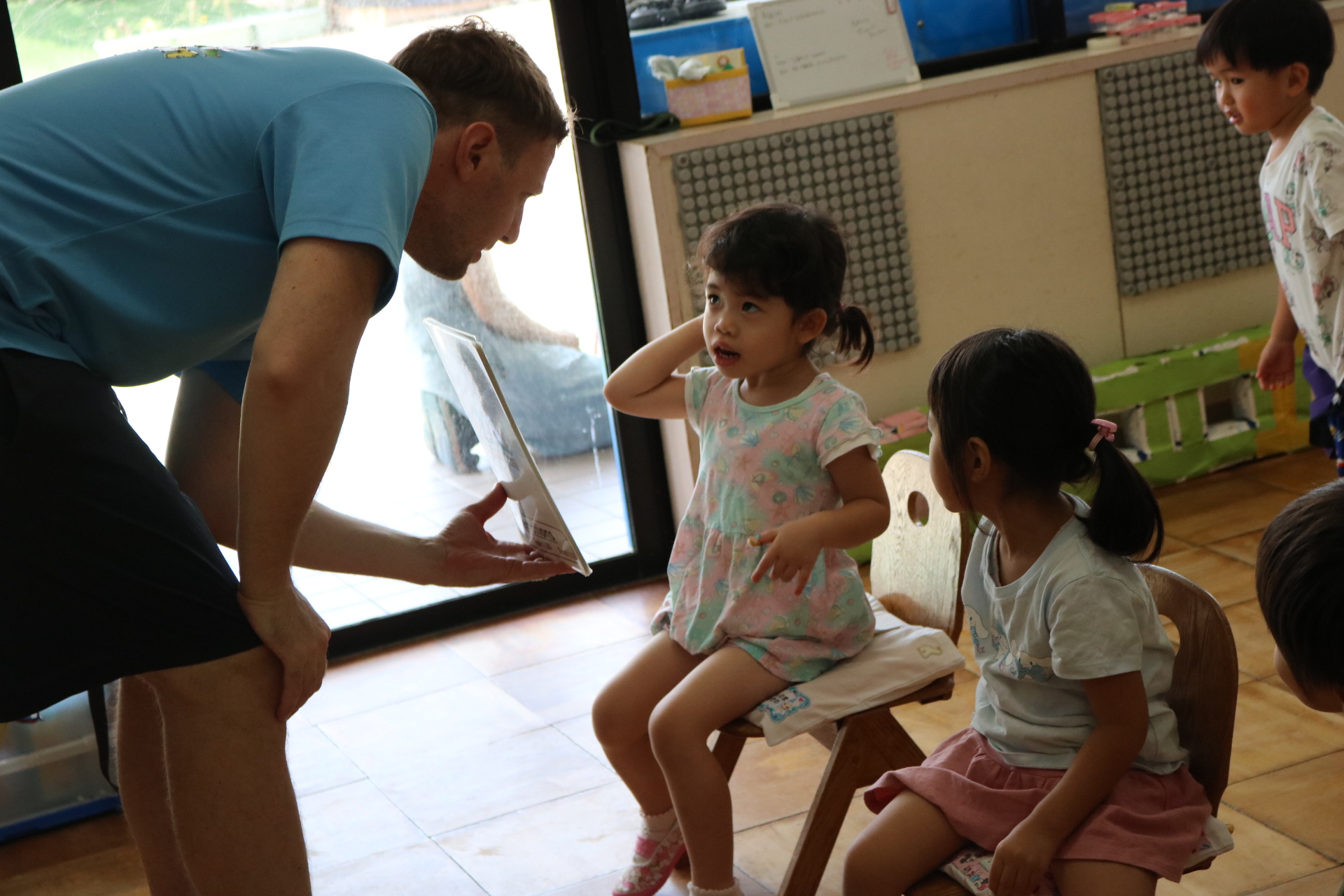 クリス先生と曲に合わせて踊ったり、英語を発音したり・・・