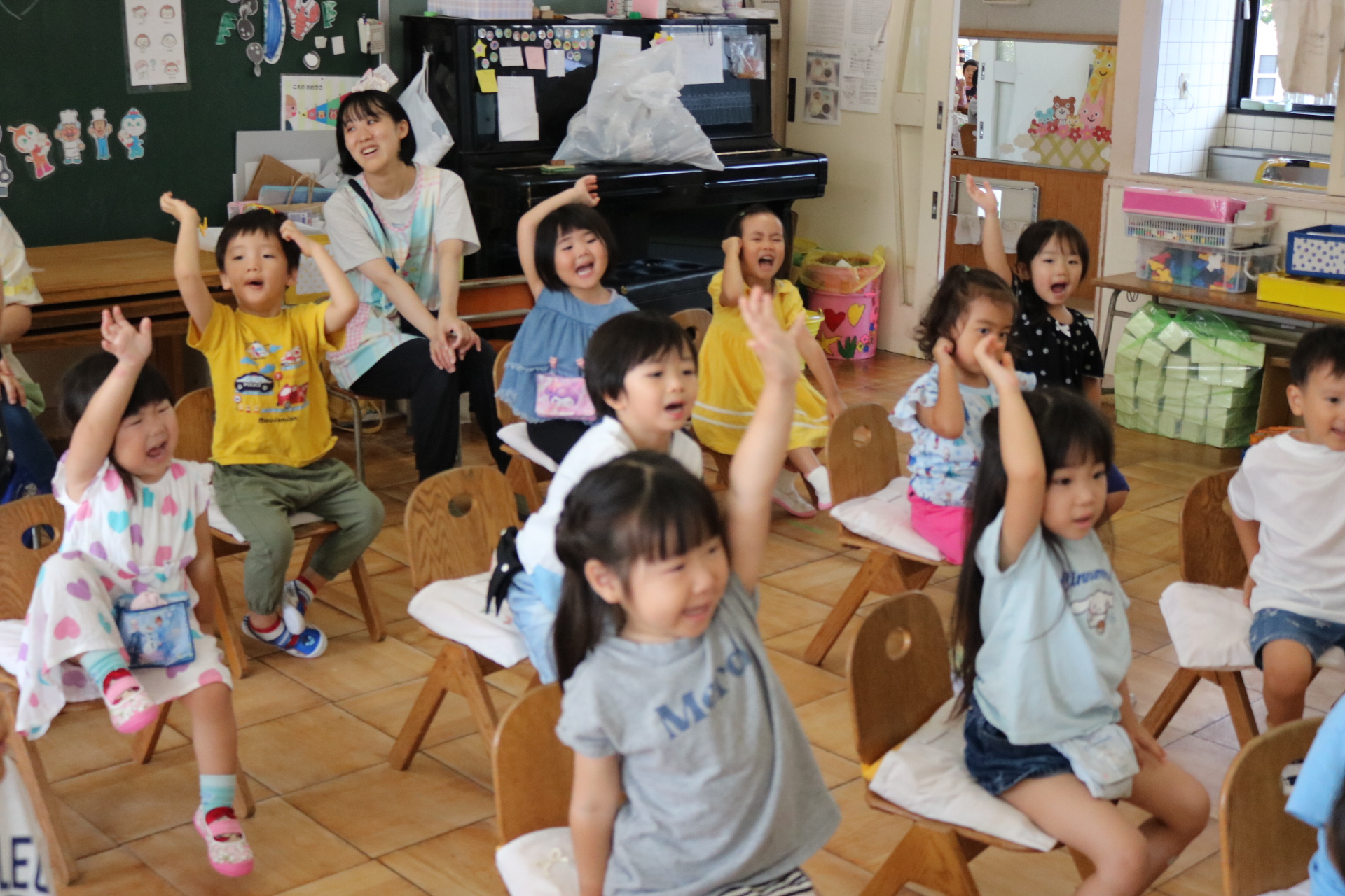 6月生まれのお友だちの誕生会がありました😊保育士劇を見て楽しみましたよ🎵