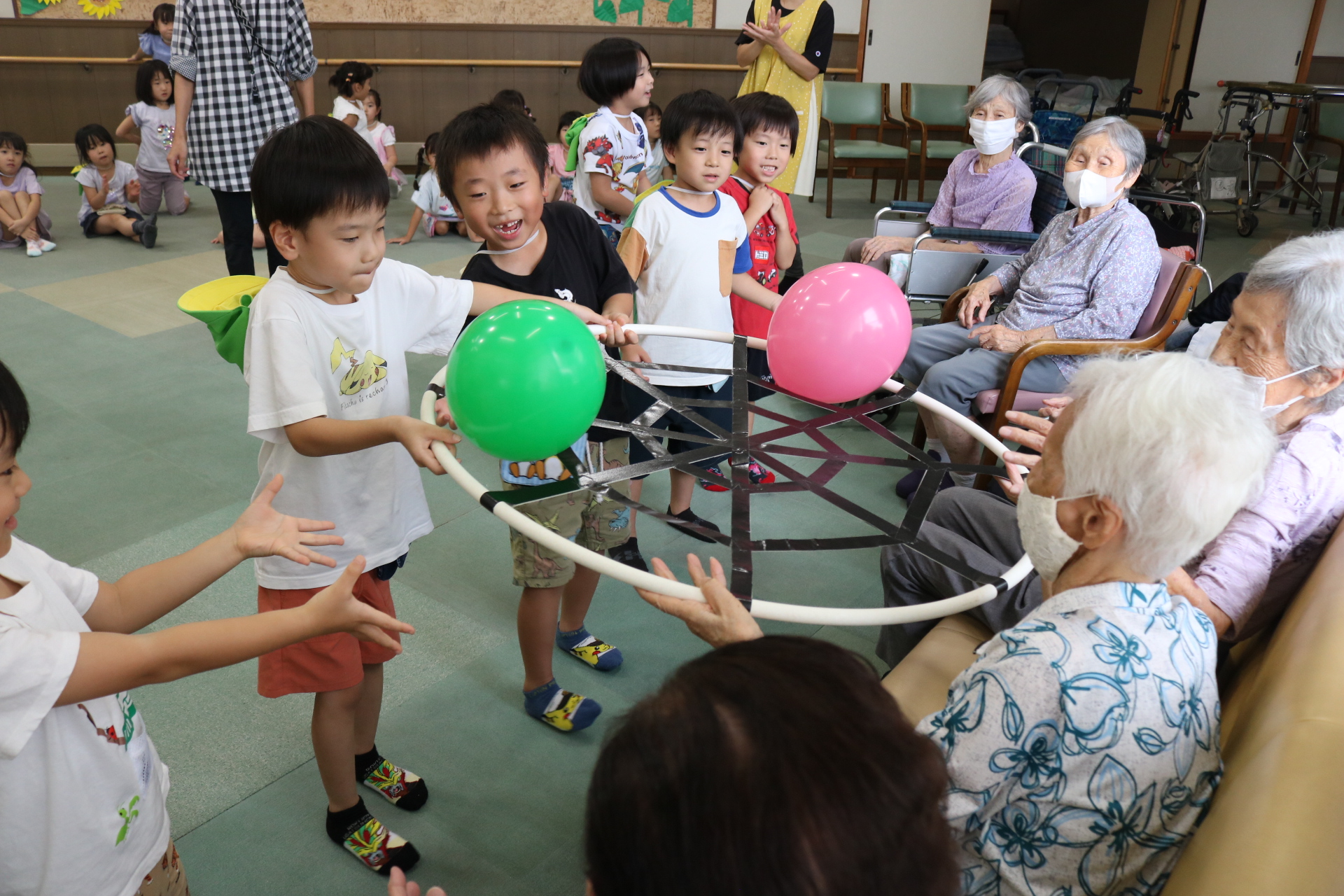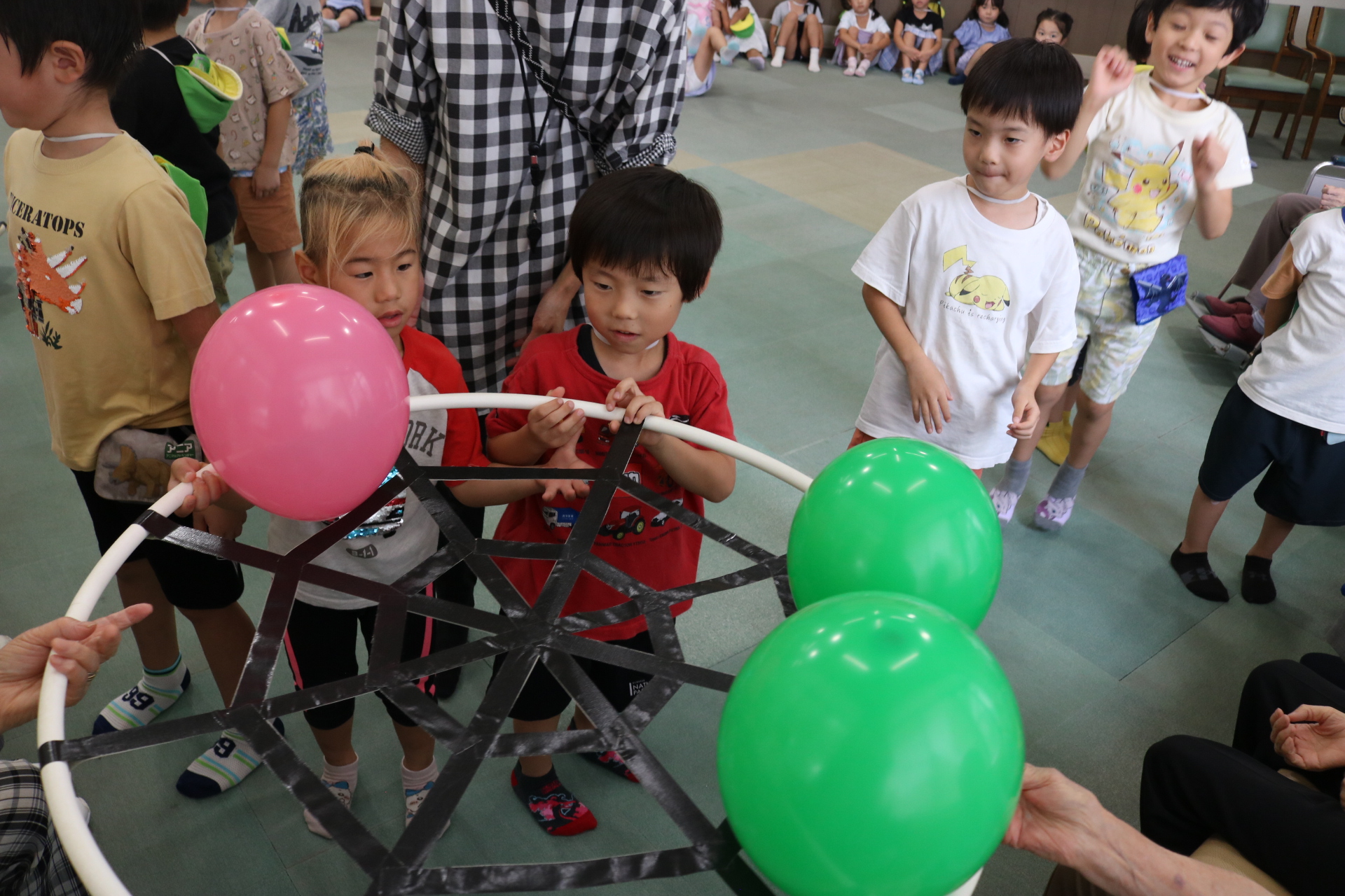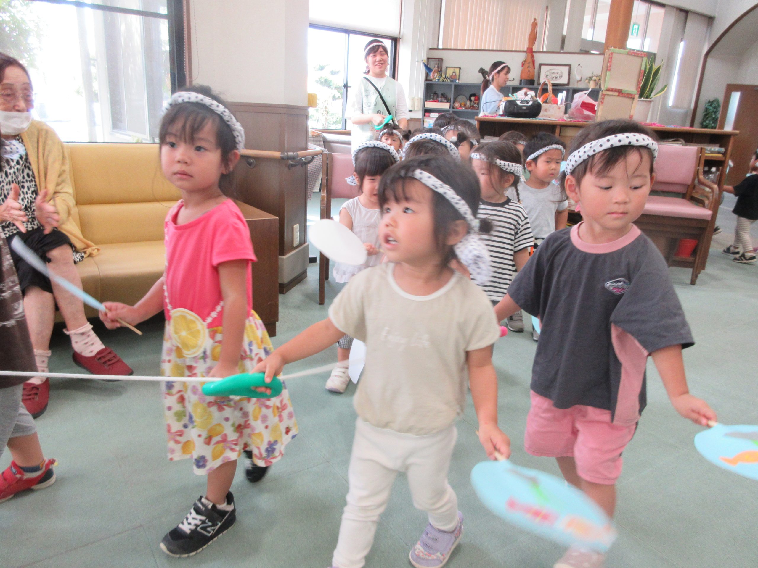 子どもの日の会でこいのぼりにちなんだゲームをみんなで行い楽しい時間を過ごしました。