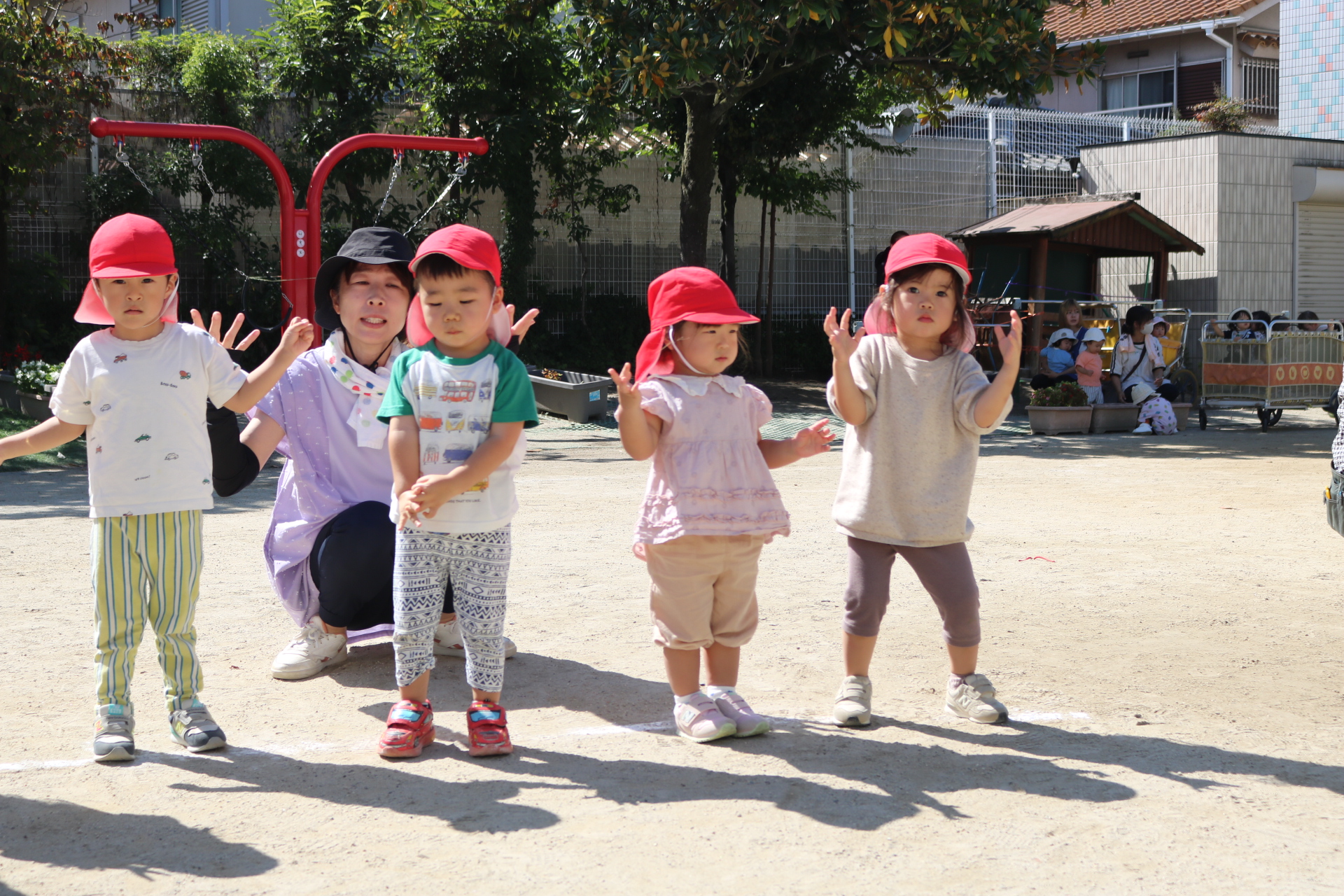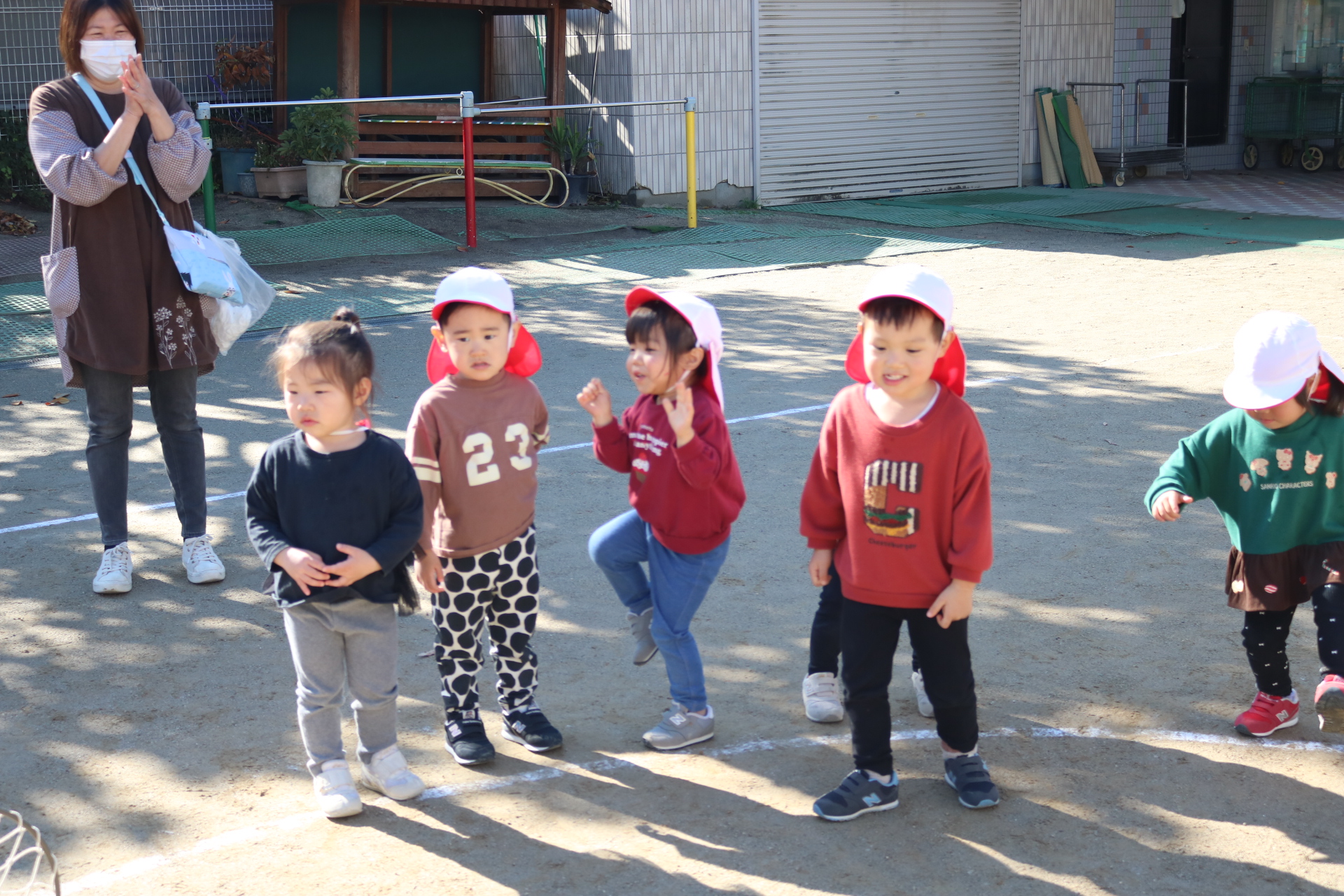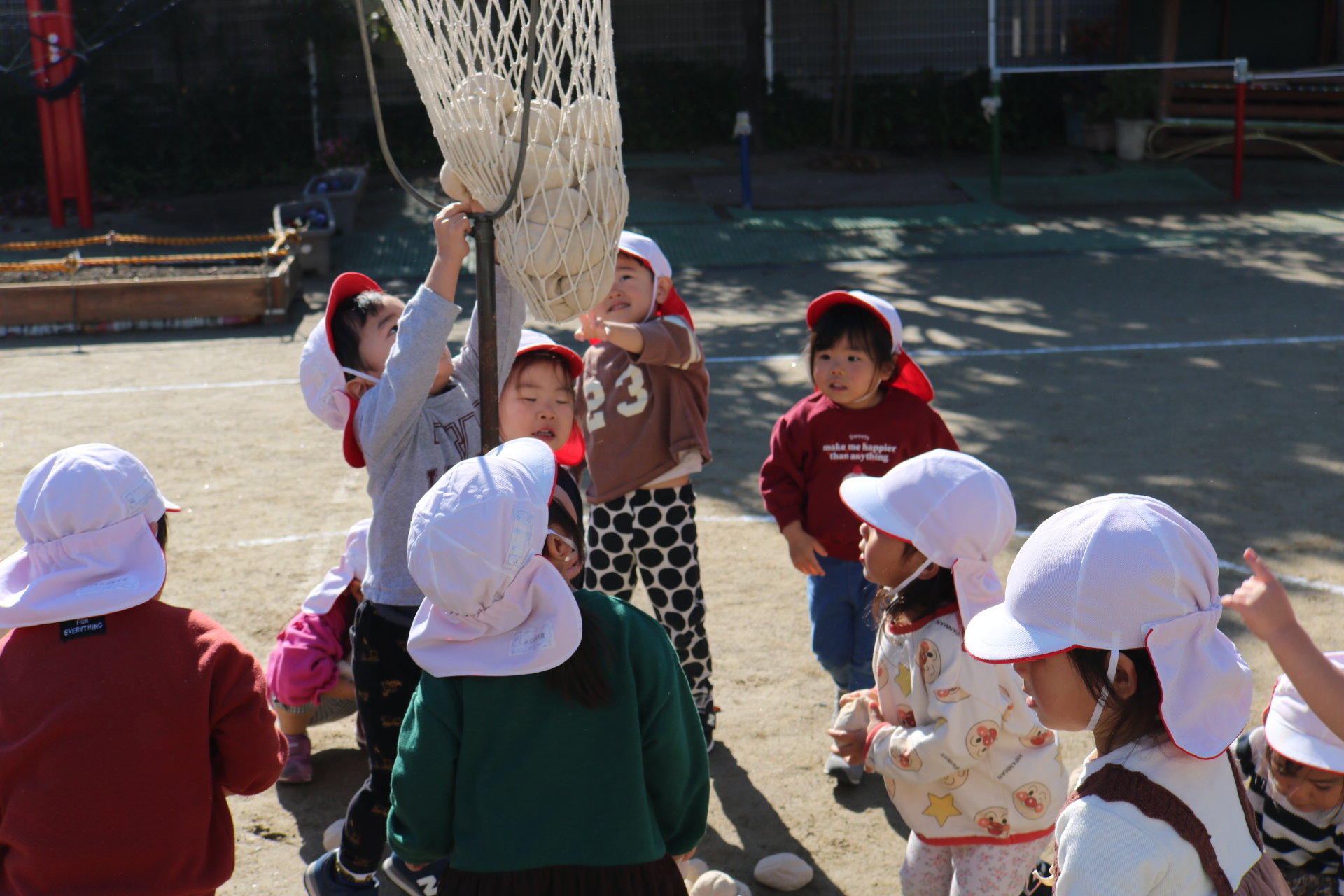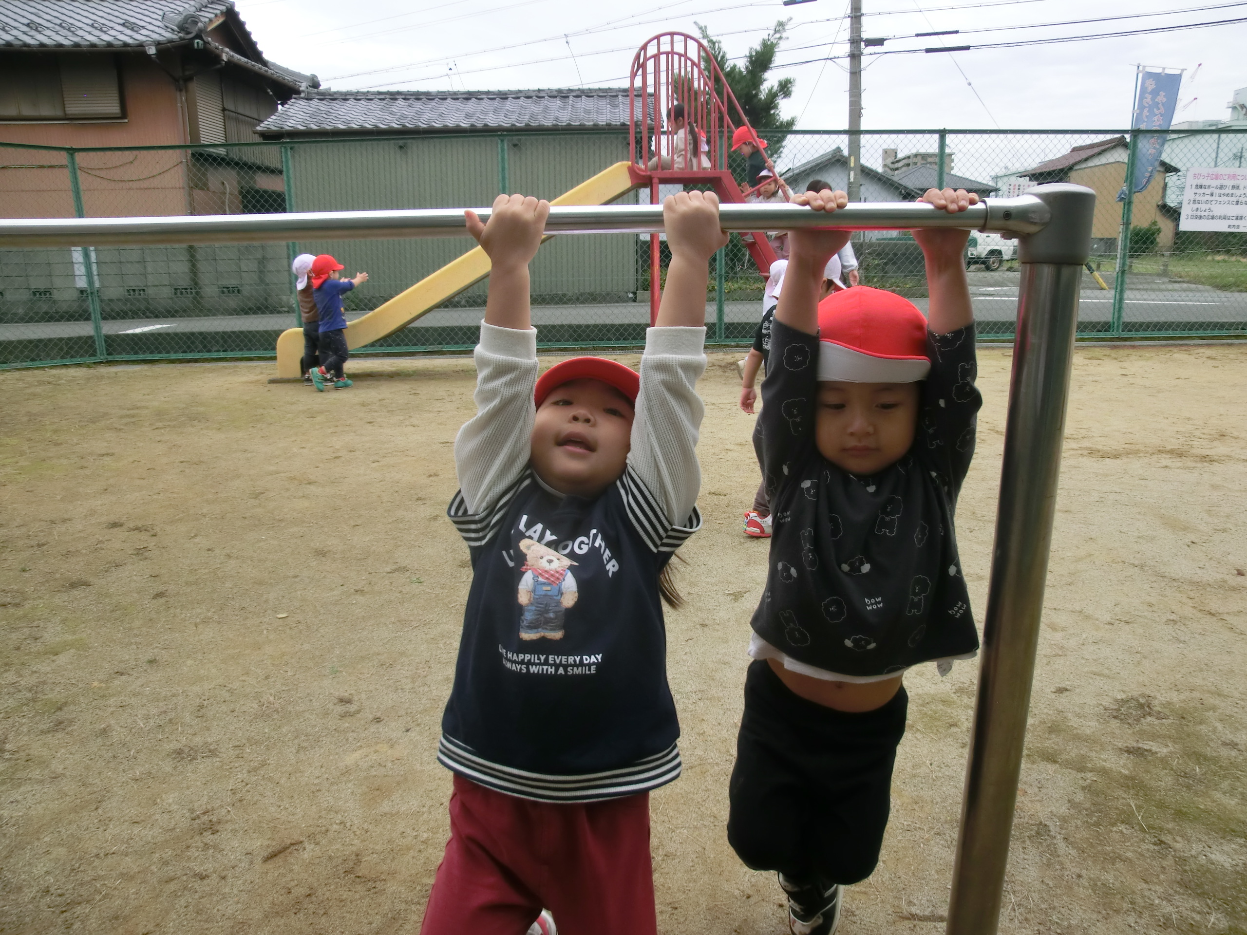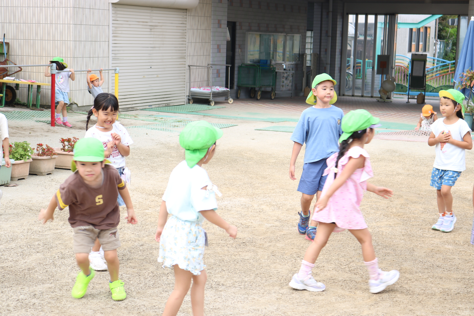 天気も良く、戸外で体を動かして元気に遊んでいた子どもたちです😊(年少・年中)