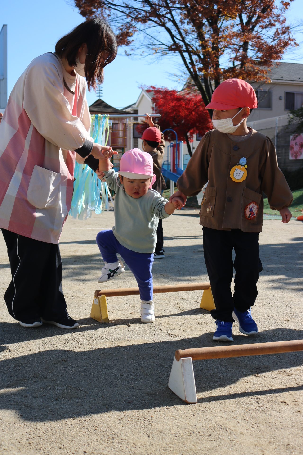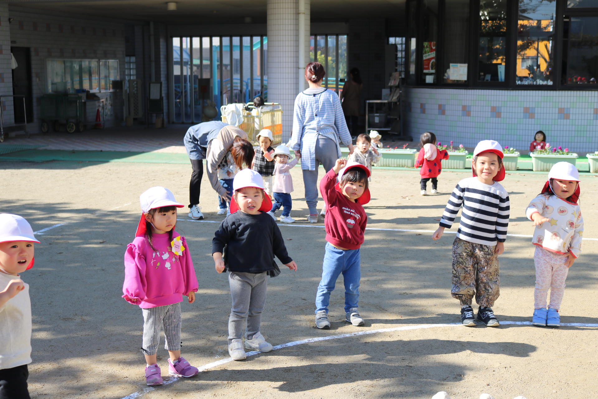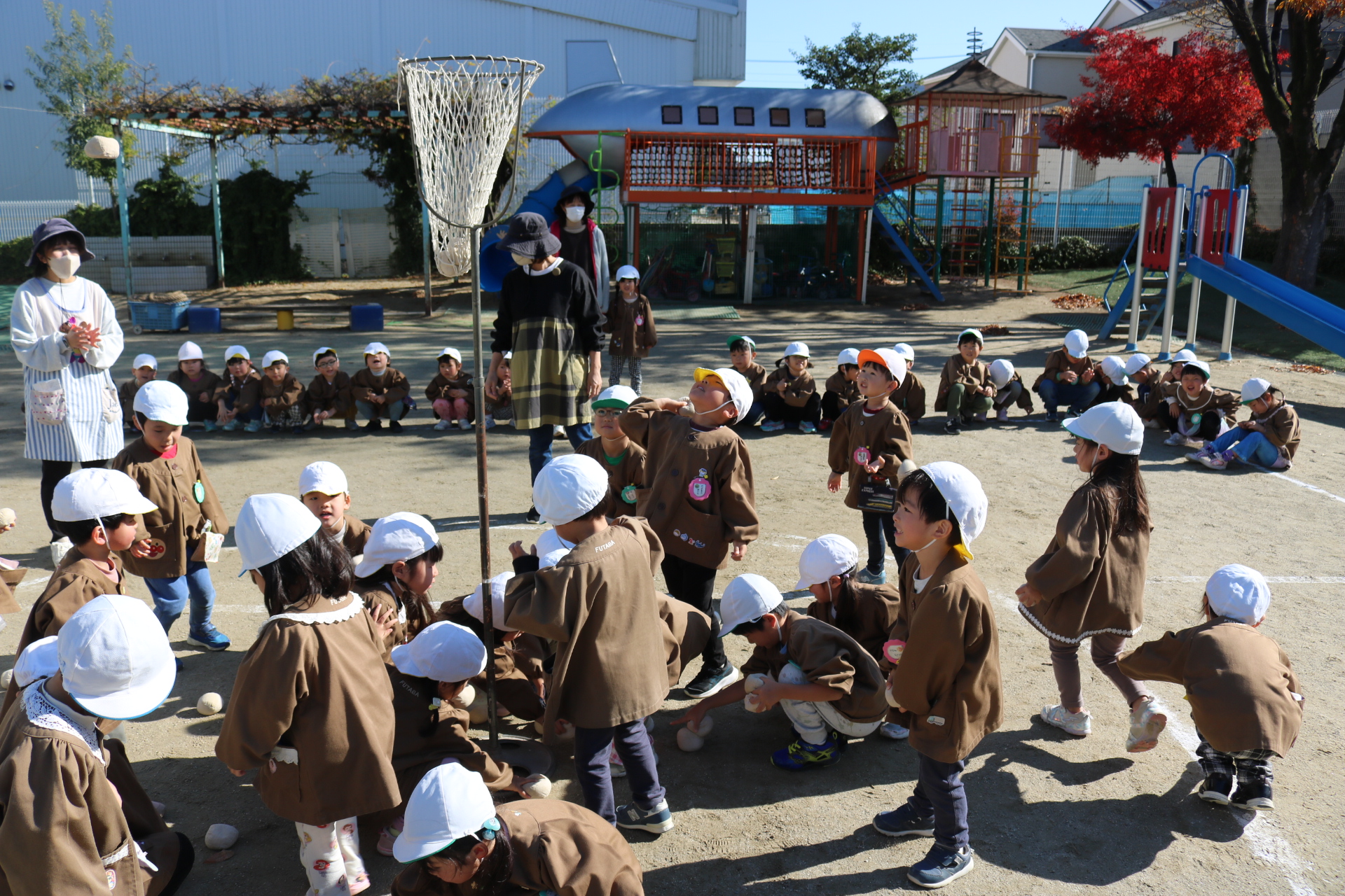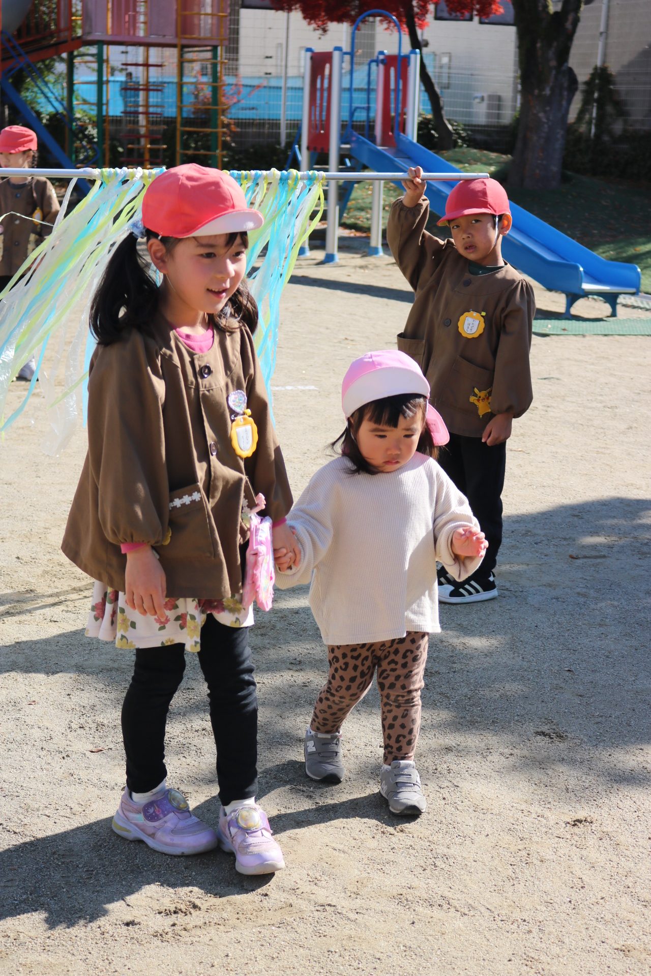 天気も良く、戸外で体を動かして元気に遊んでいた子どもたちです😊(年少・年中)