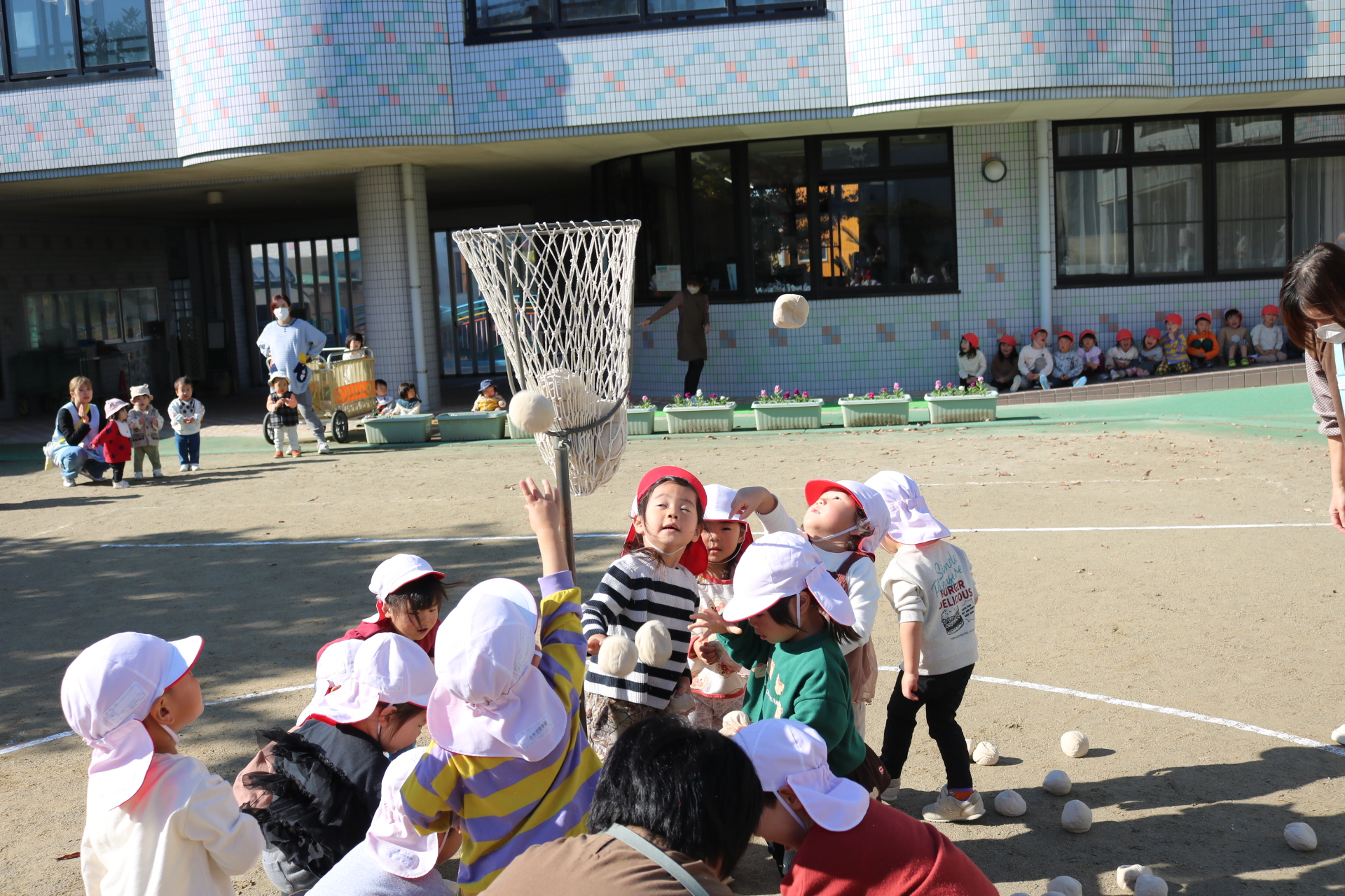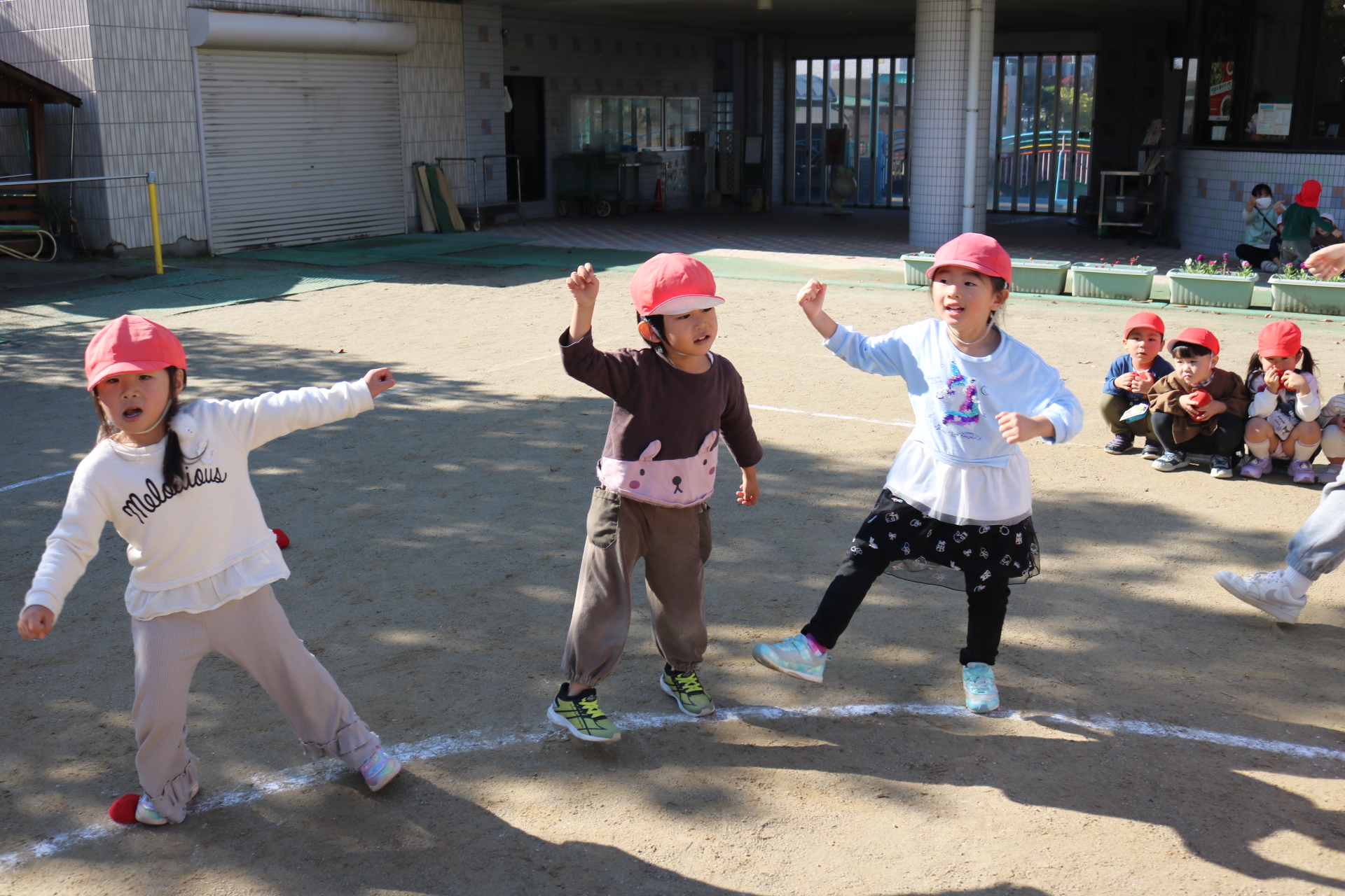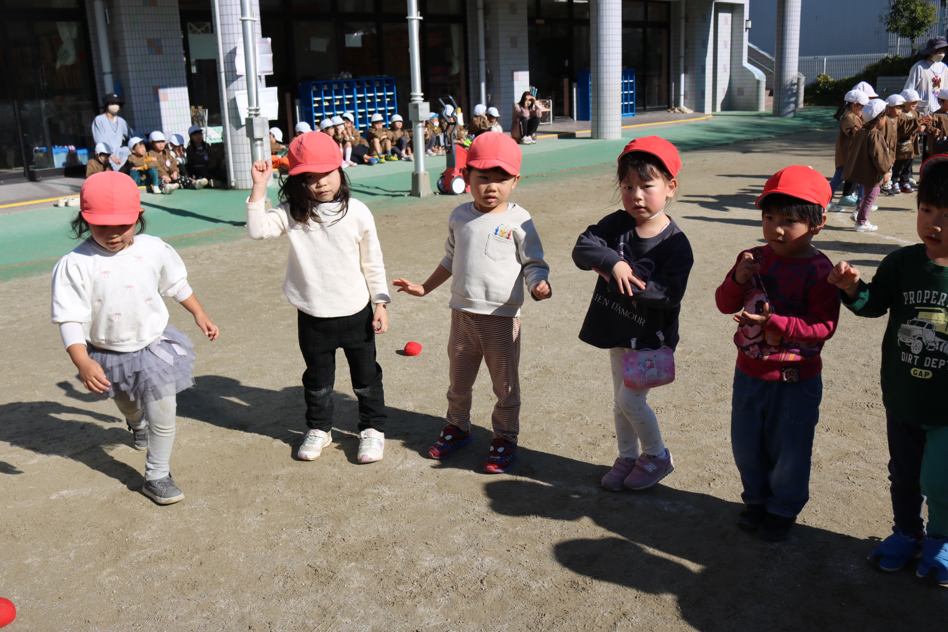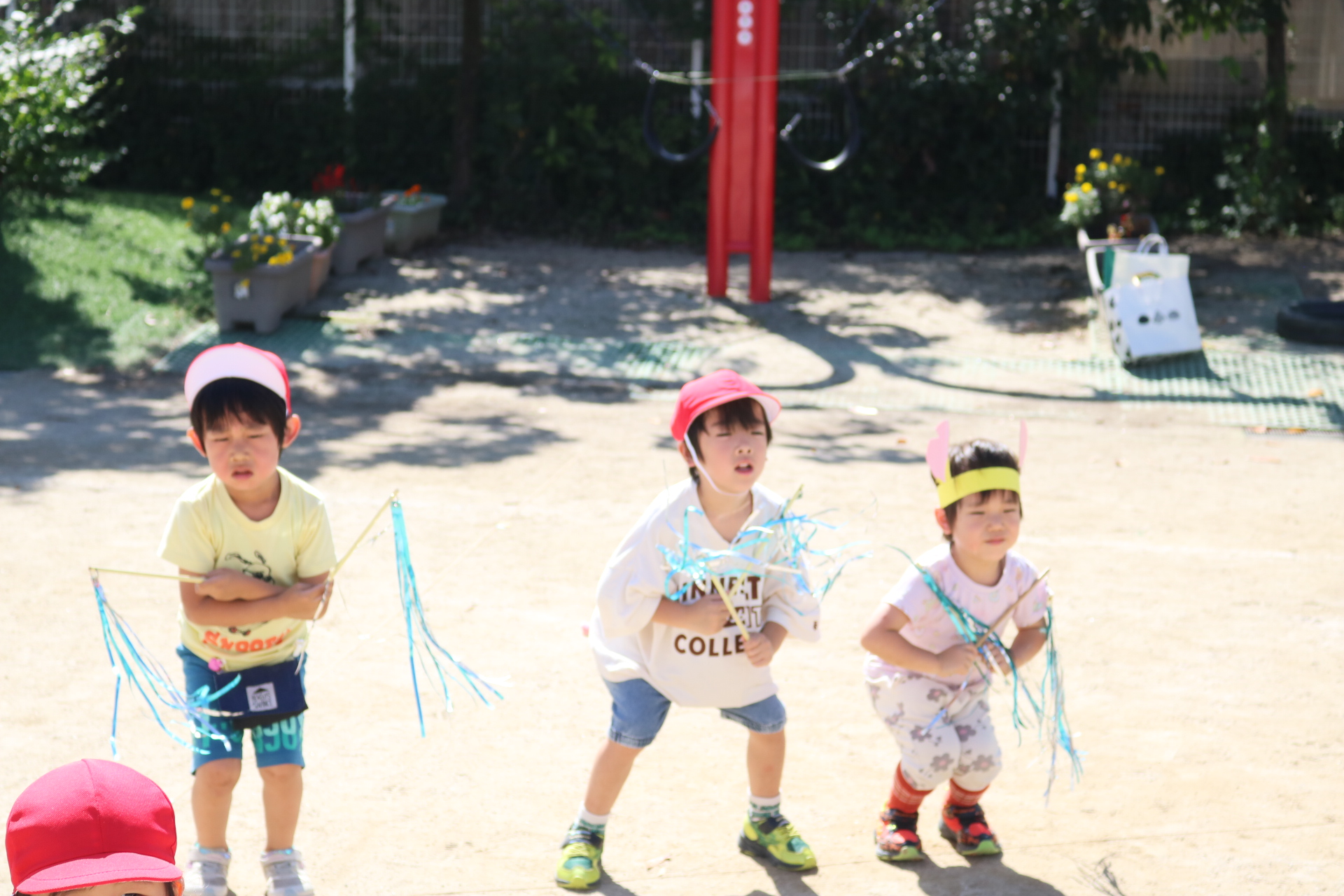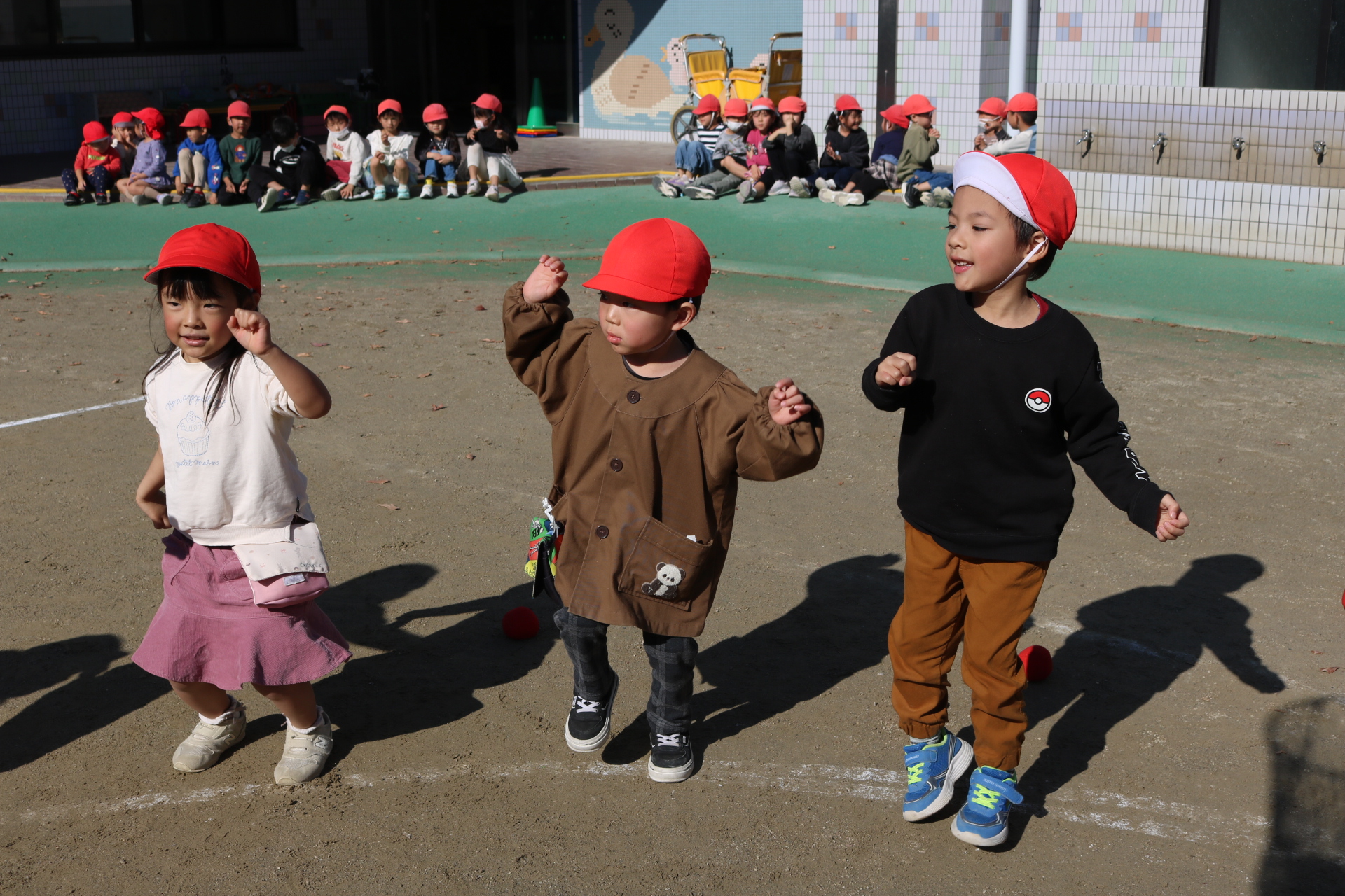 天気も良く、戸外で体を動かして元気に遊んでいた子どもたちです😊(年少・年中)