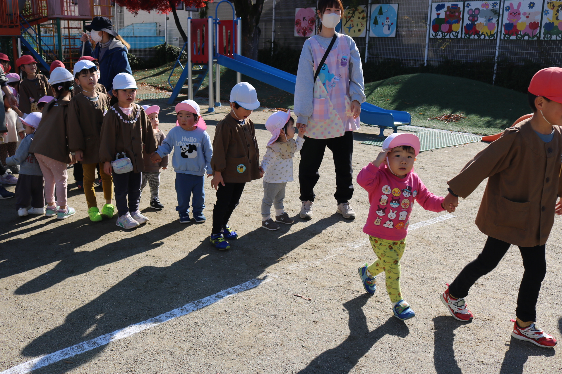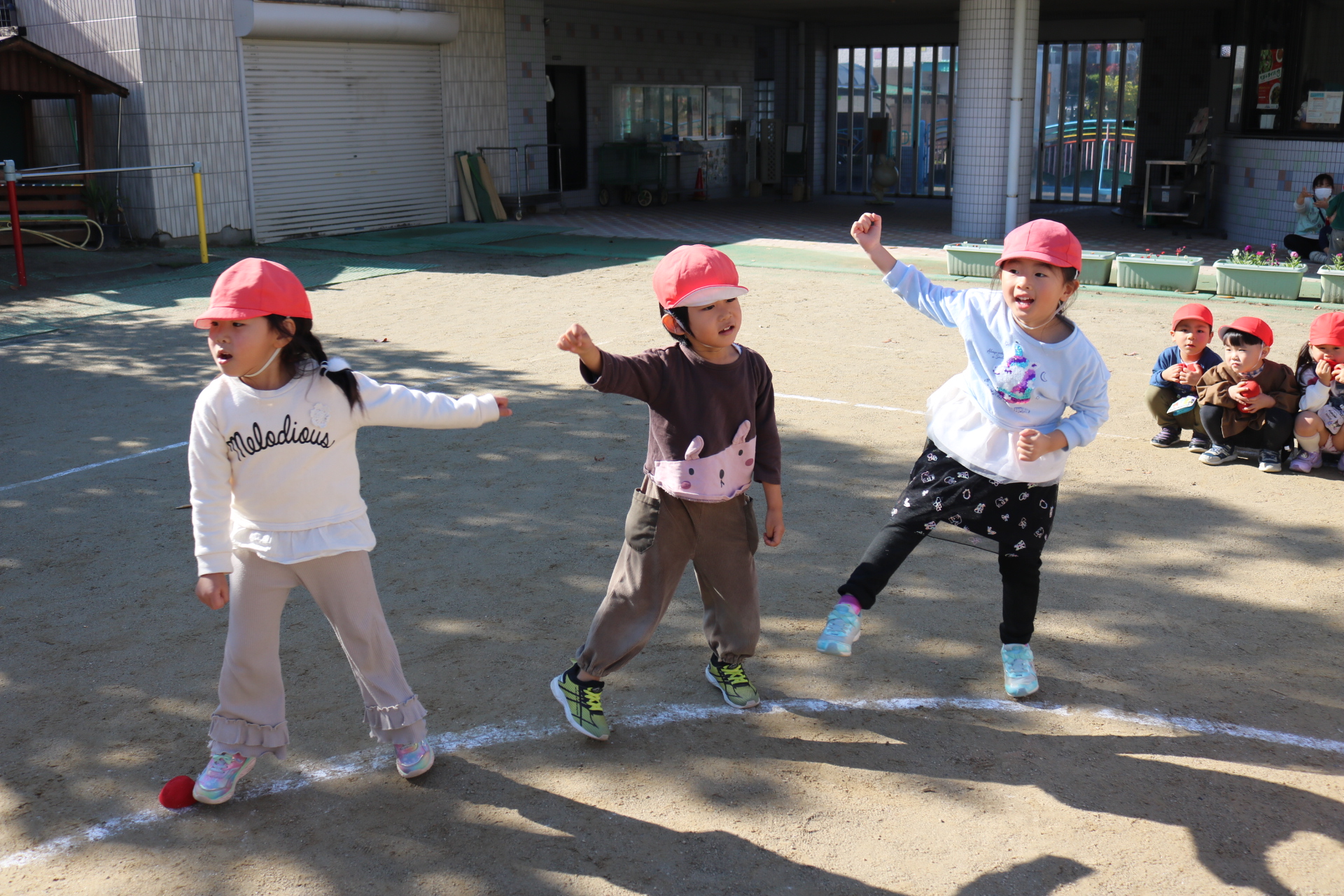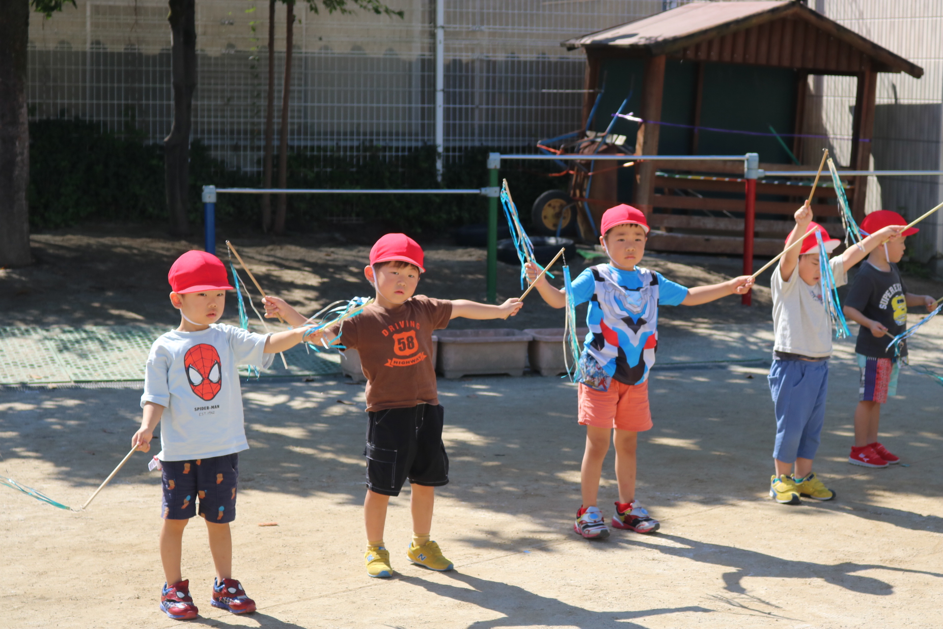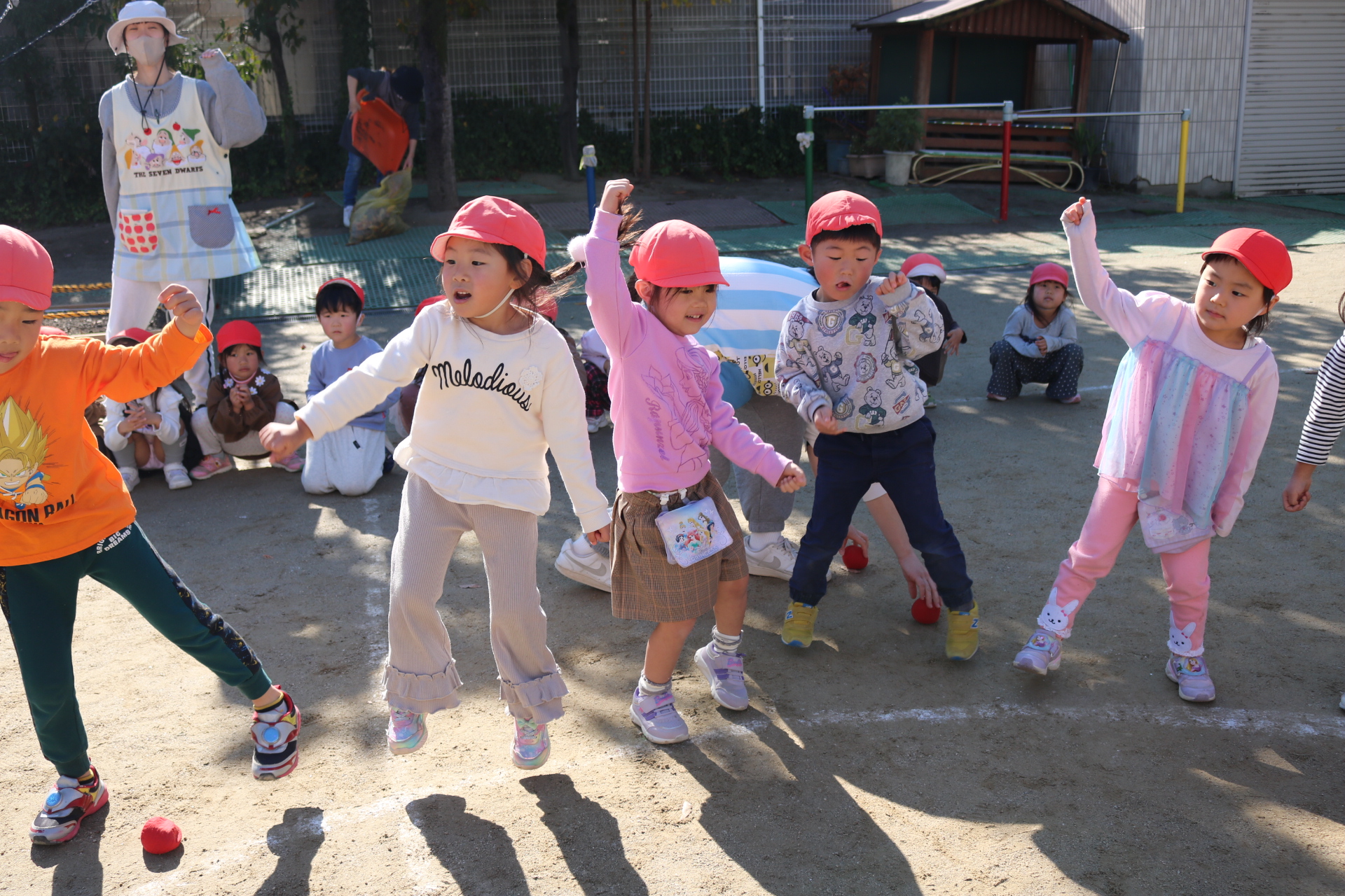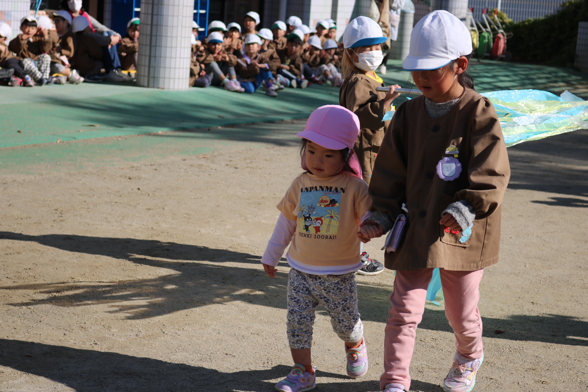 天気も良く、戸外で体を動かして元気に遊んでいた子どもたちです😊(年少・年中)