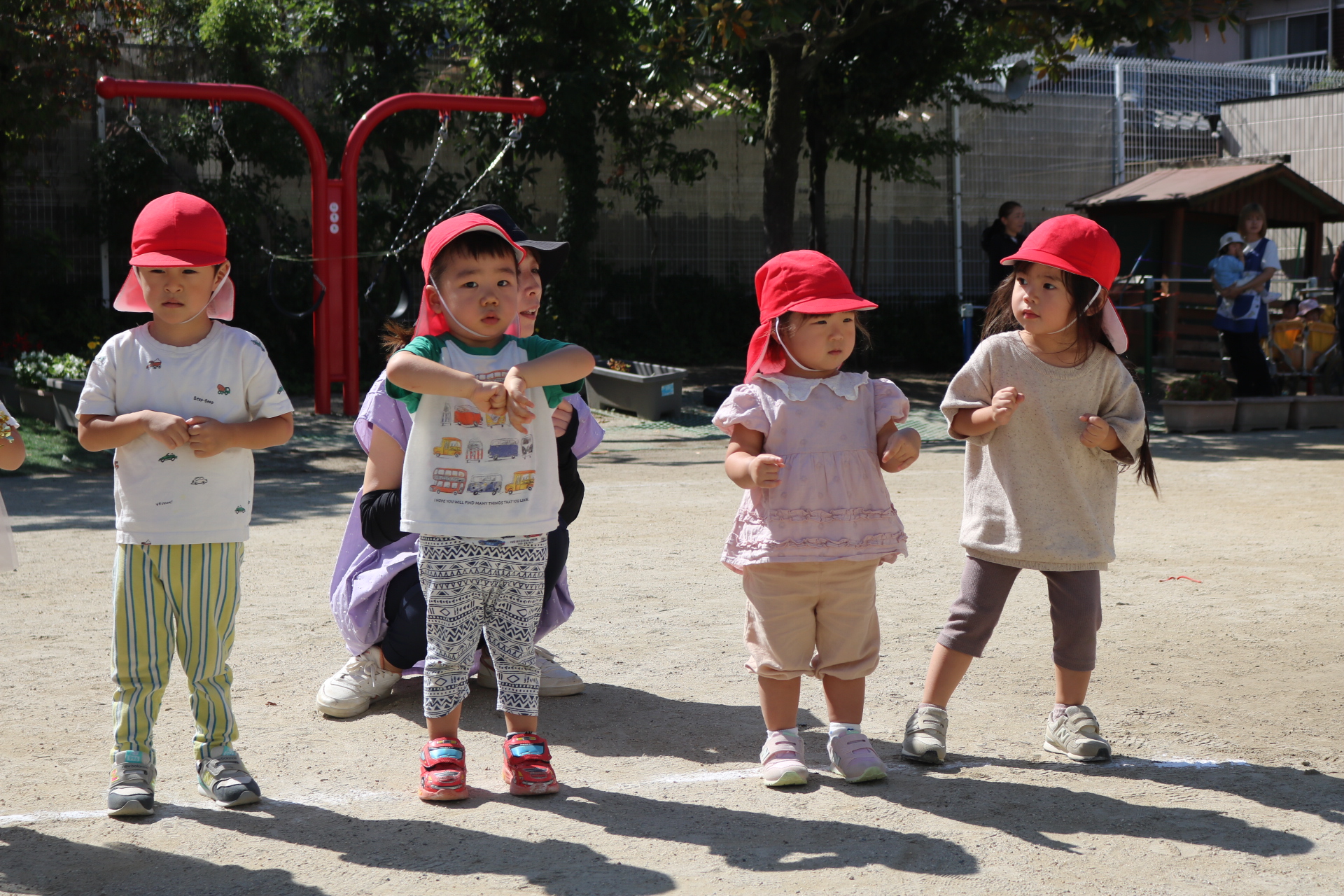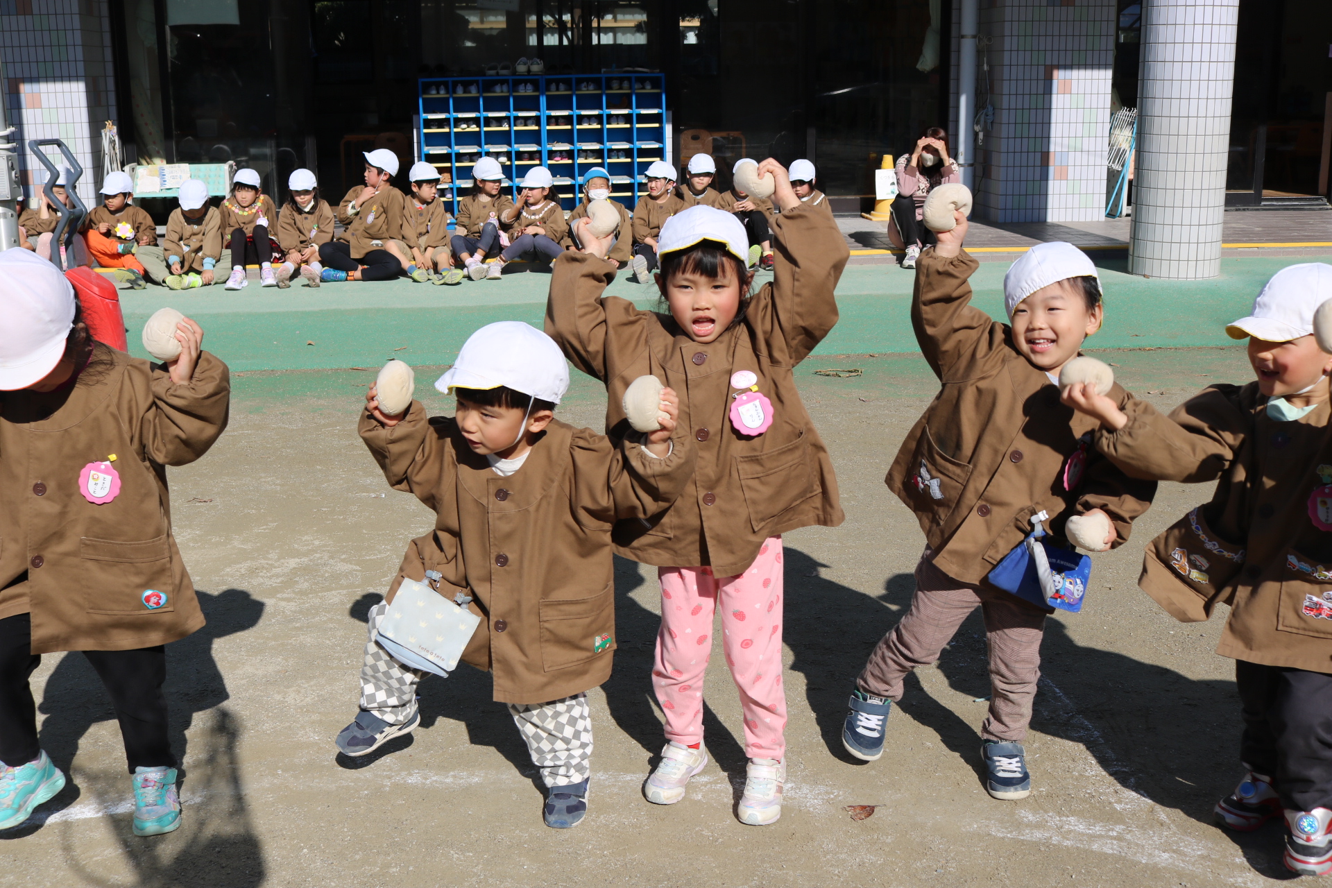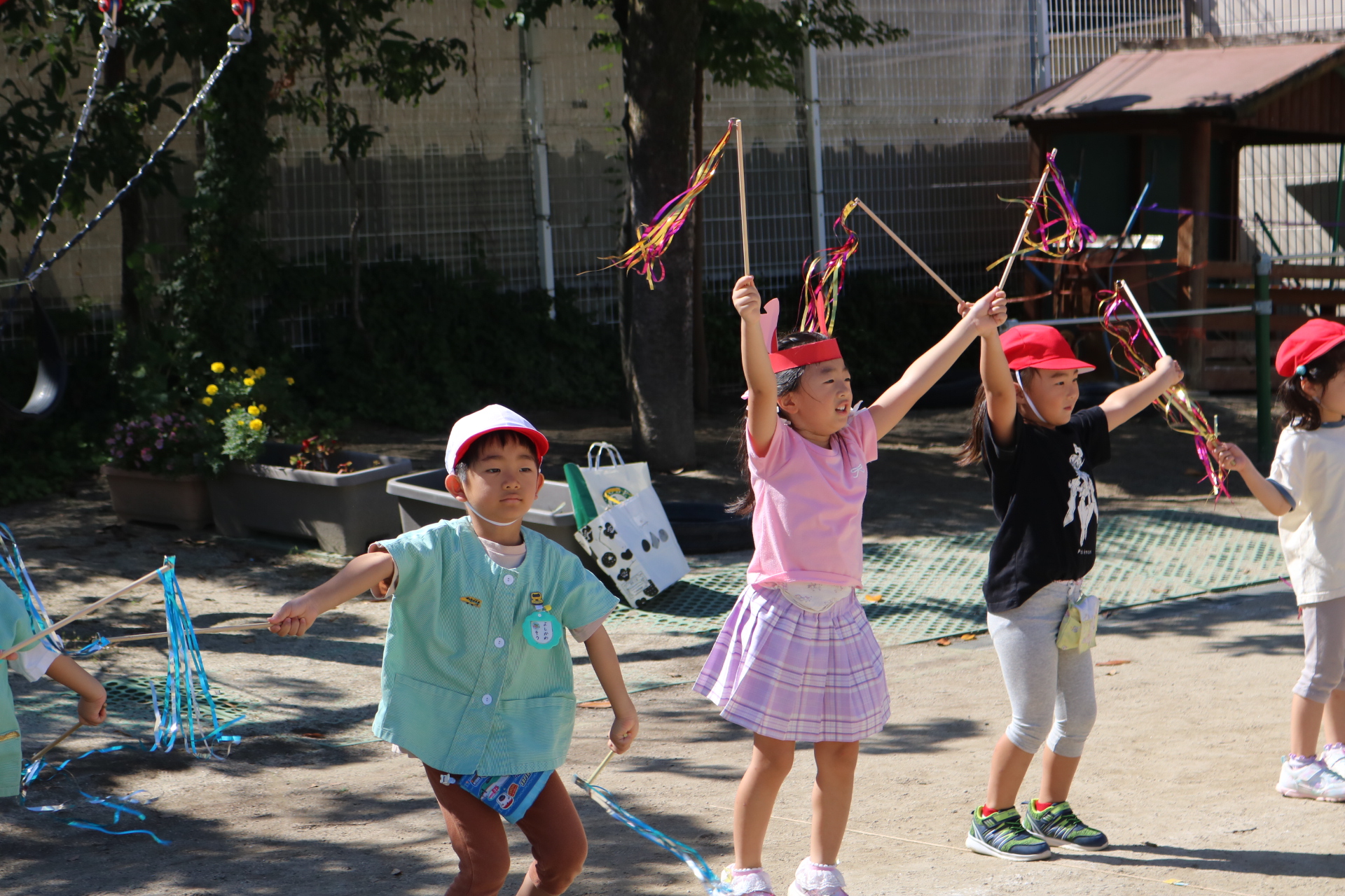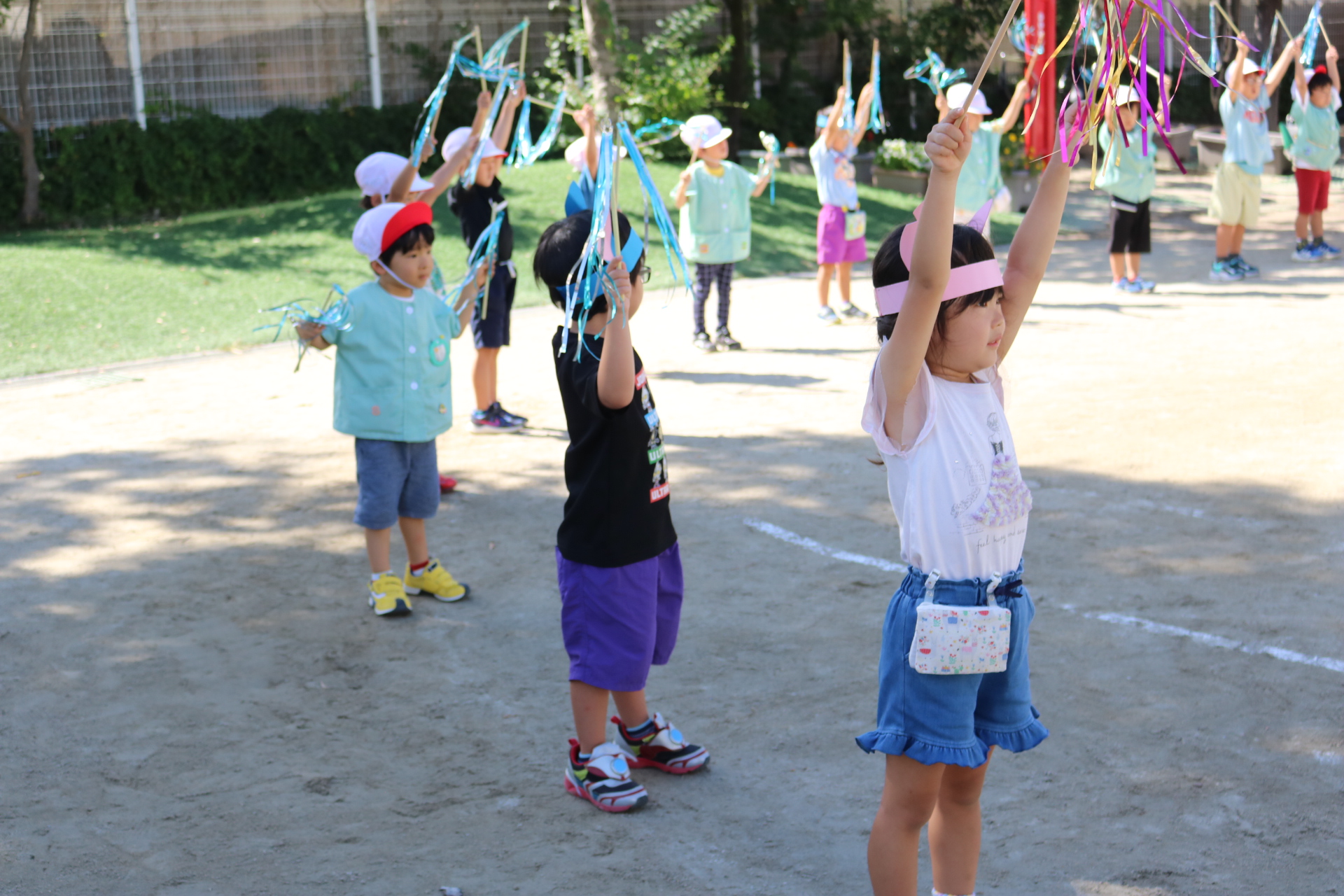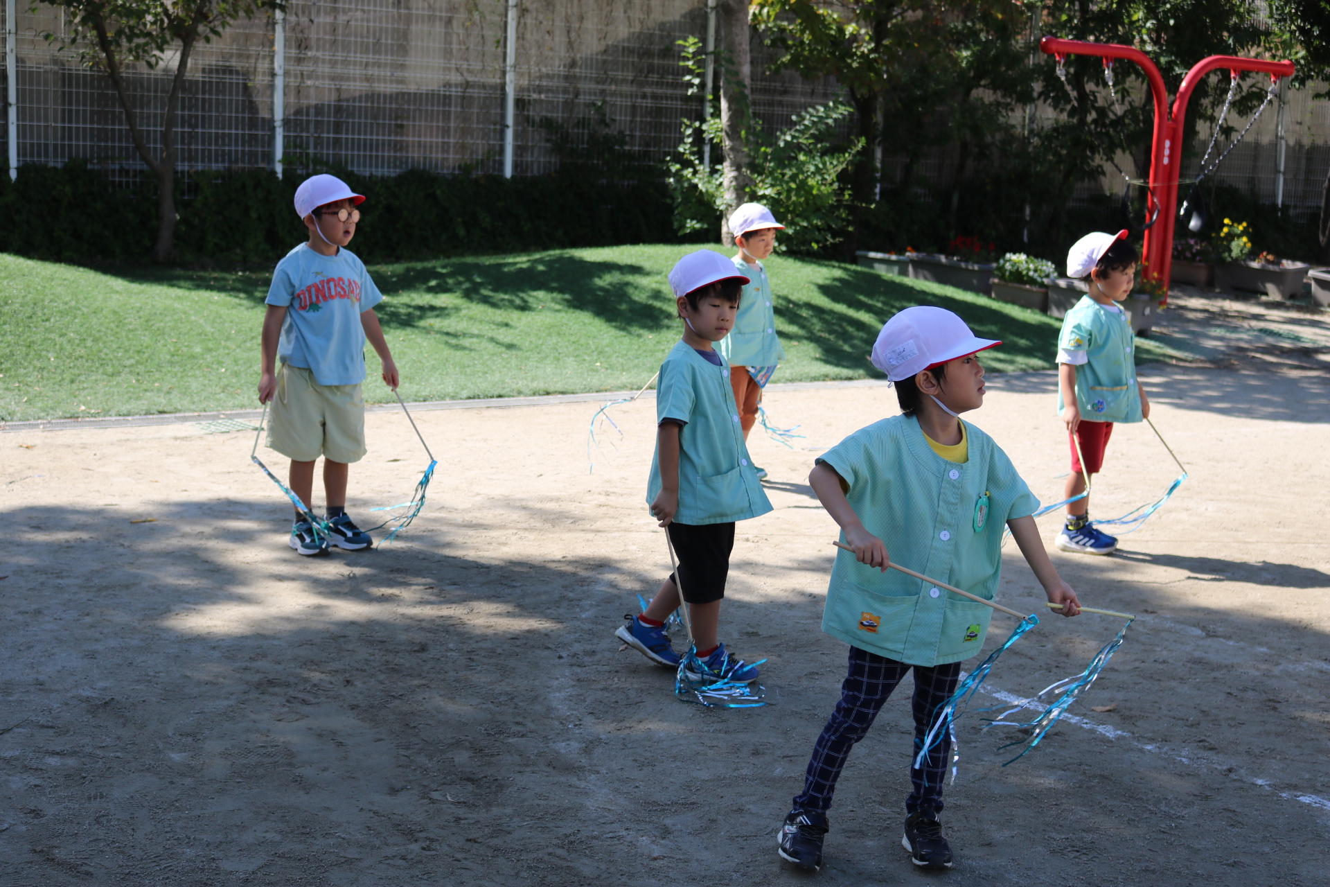 天気も良く、戸外で体を動かして元気に遊んでいた子どもたちです😊(年少・年中)