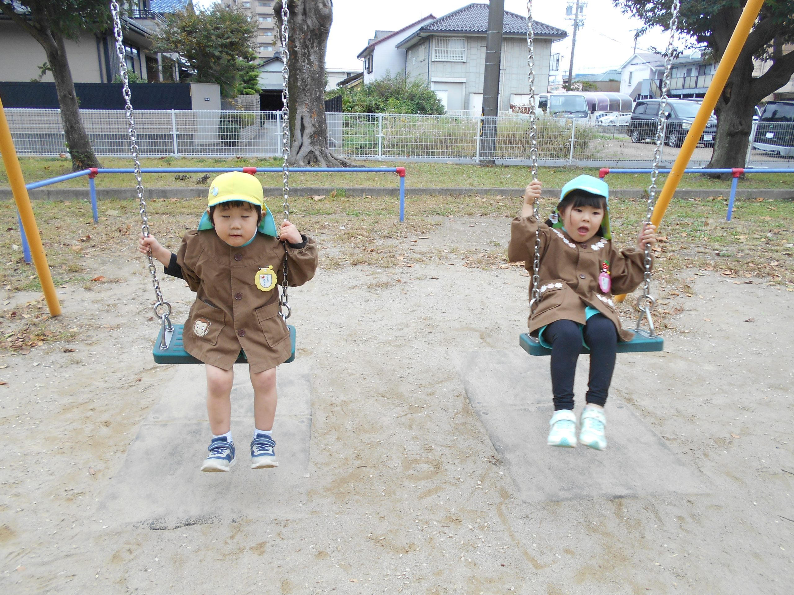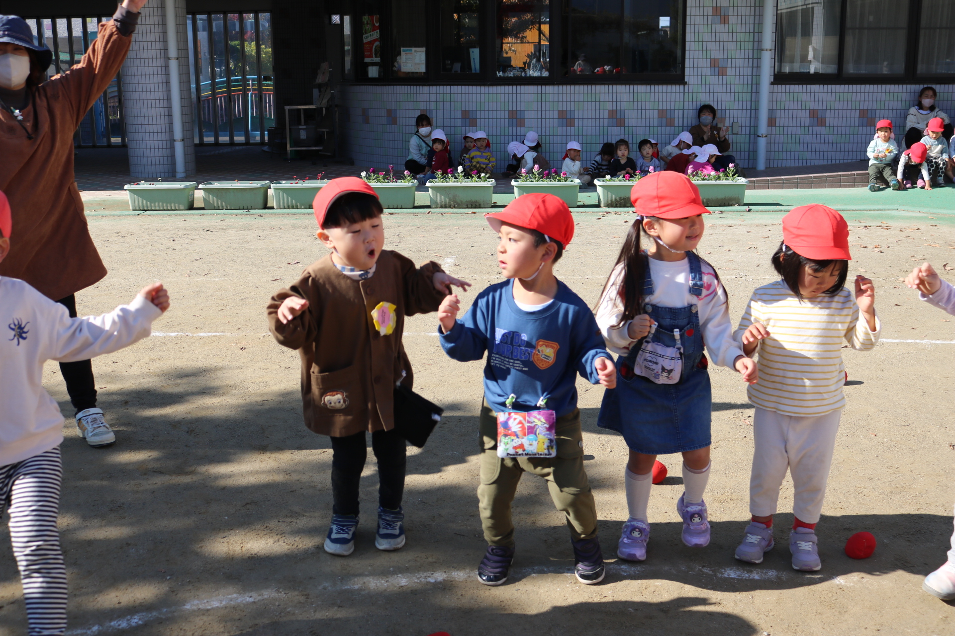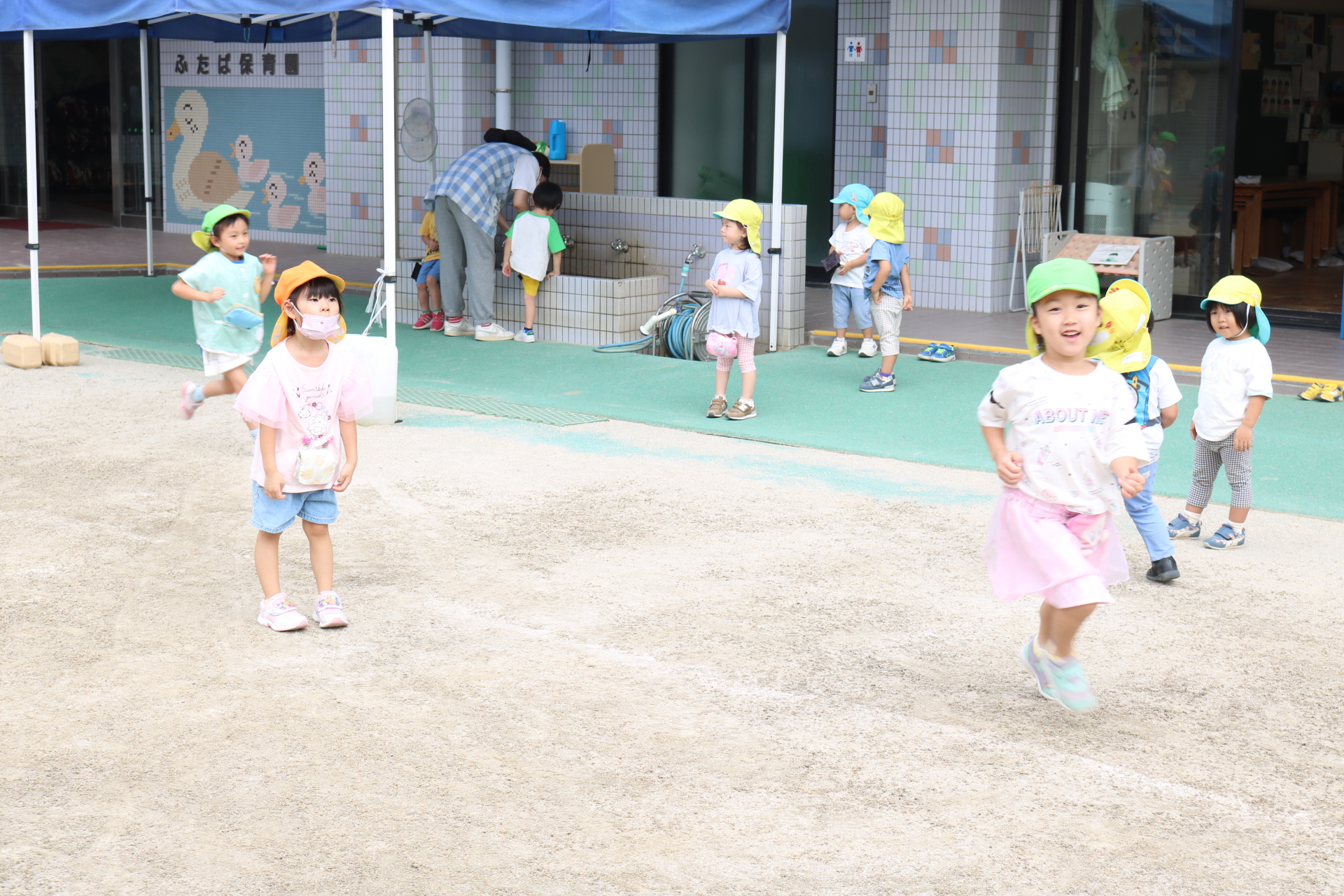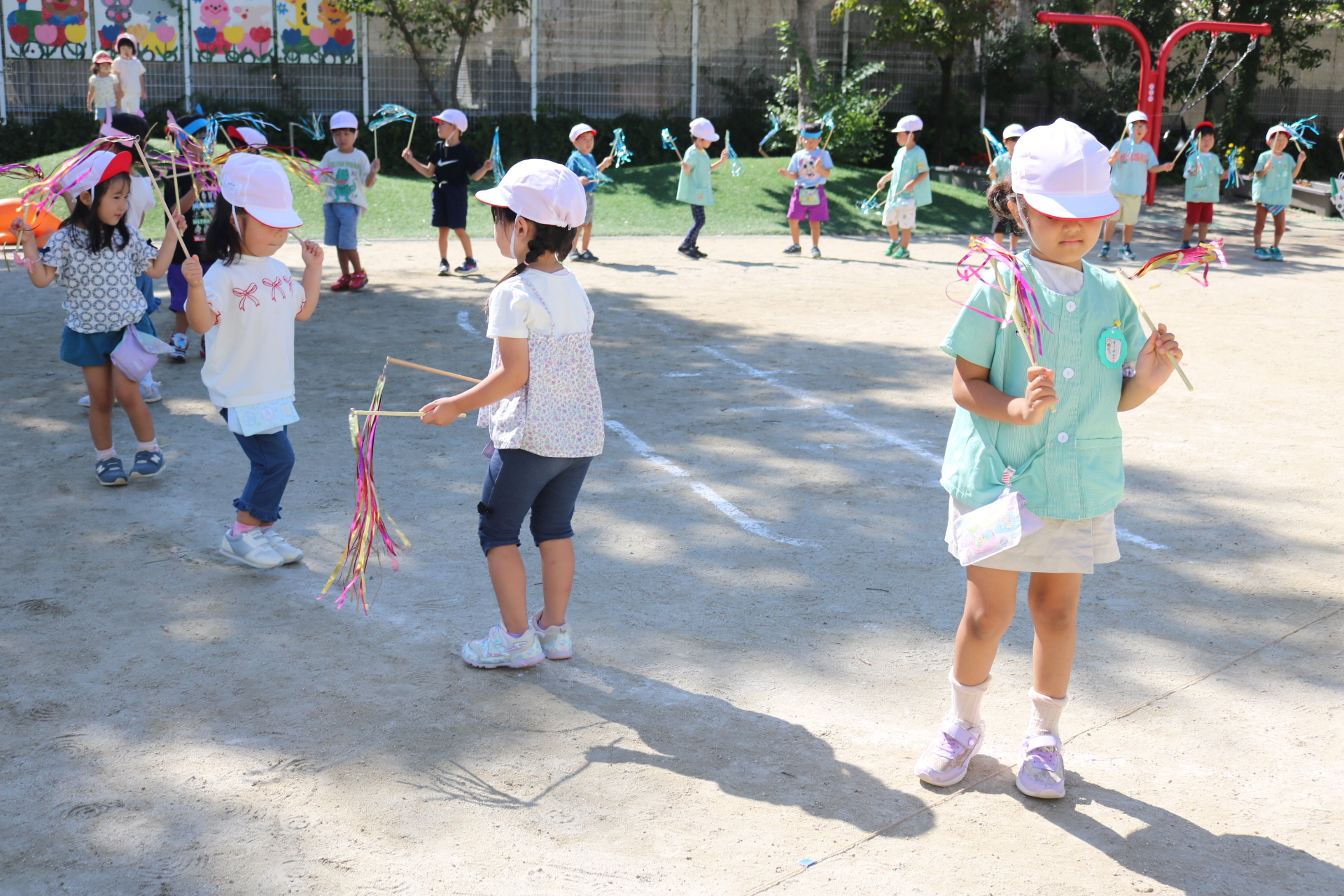 天気も良く、戸外で体を動かして元気に遊んでいた子どもたちです😊(年少・年中)